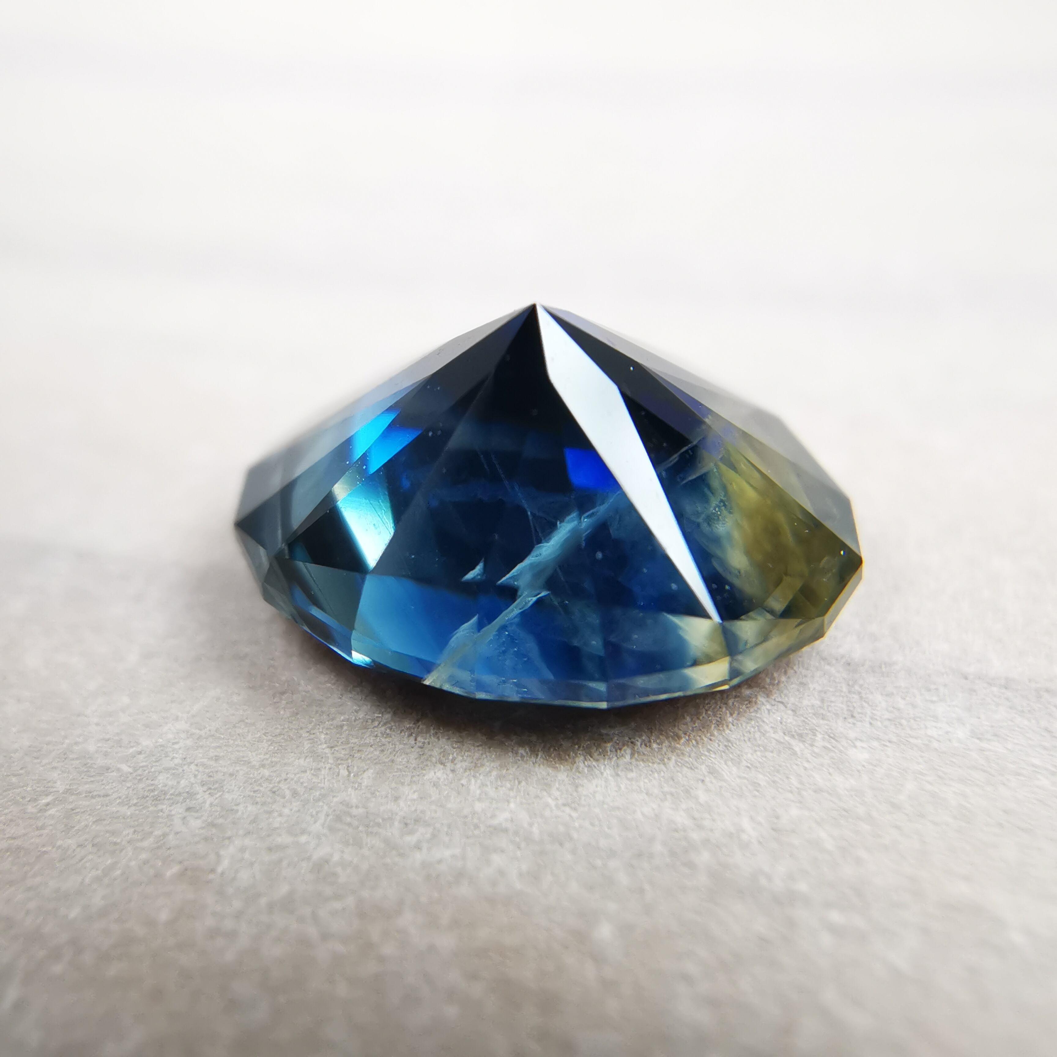 イエロー×ブルーのバイカラーのように見えますが、裏から見ると、イエロー×ブルー×カラーレスのトリカラーであることがわかります。