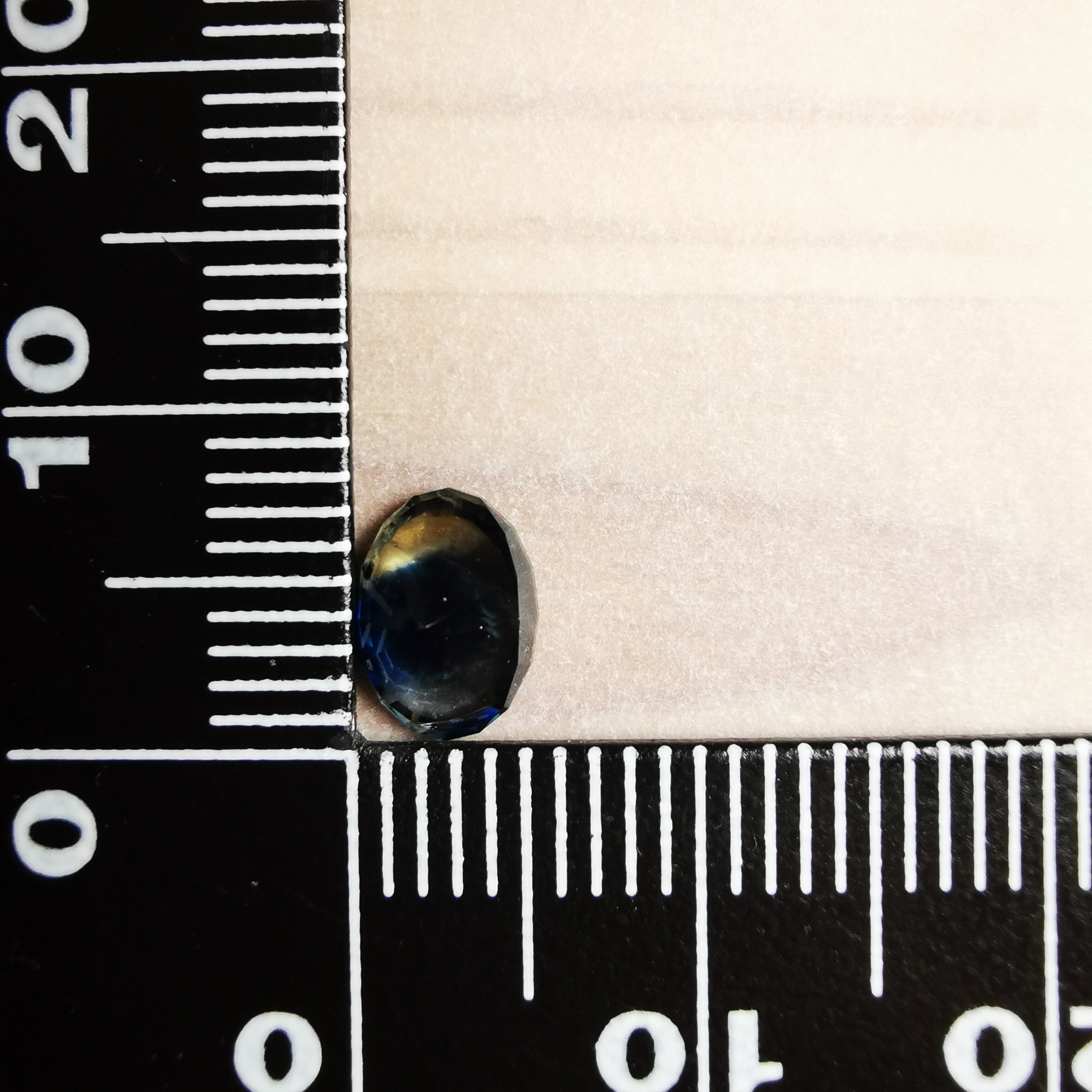 一見、正面からは暗く、傾けると美しいブルーがチラチラときらめき、様々な色の濃淡が見えてきます。
