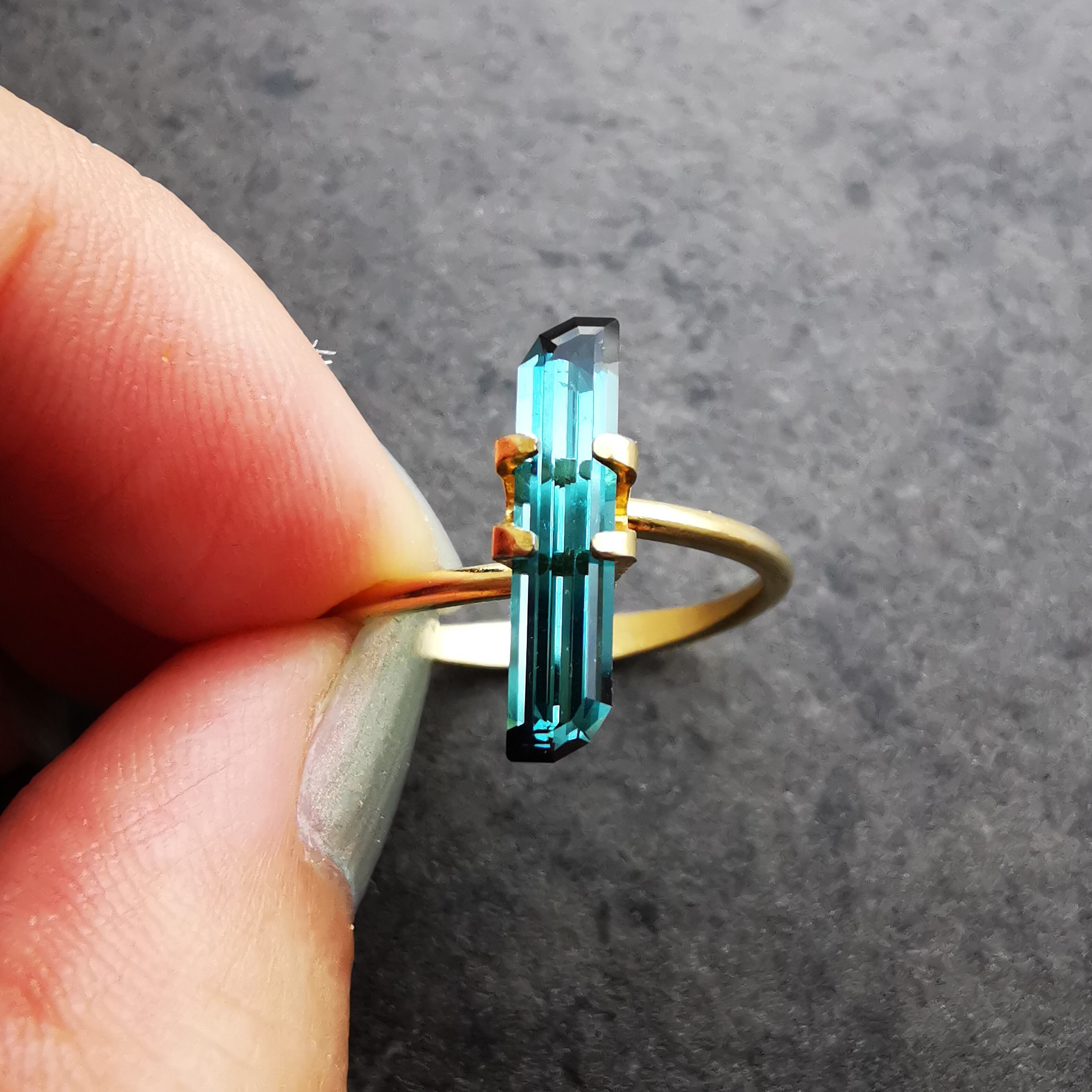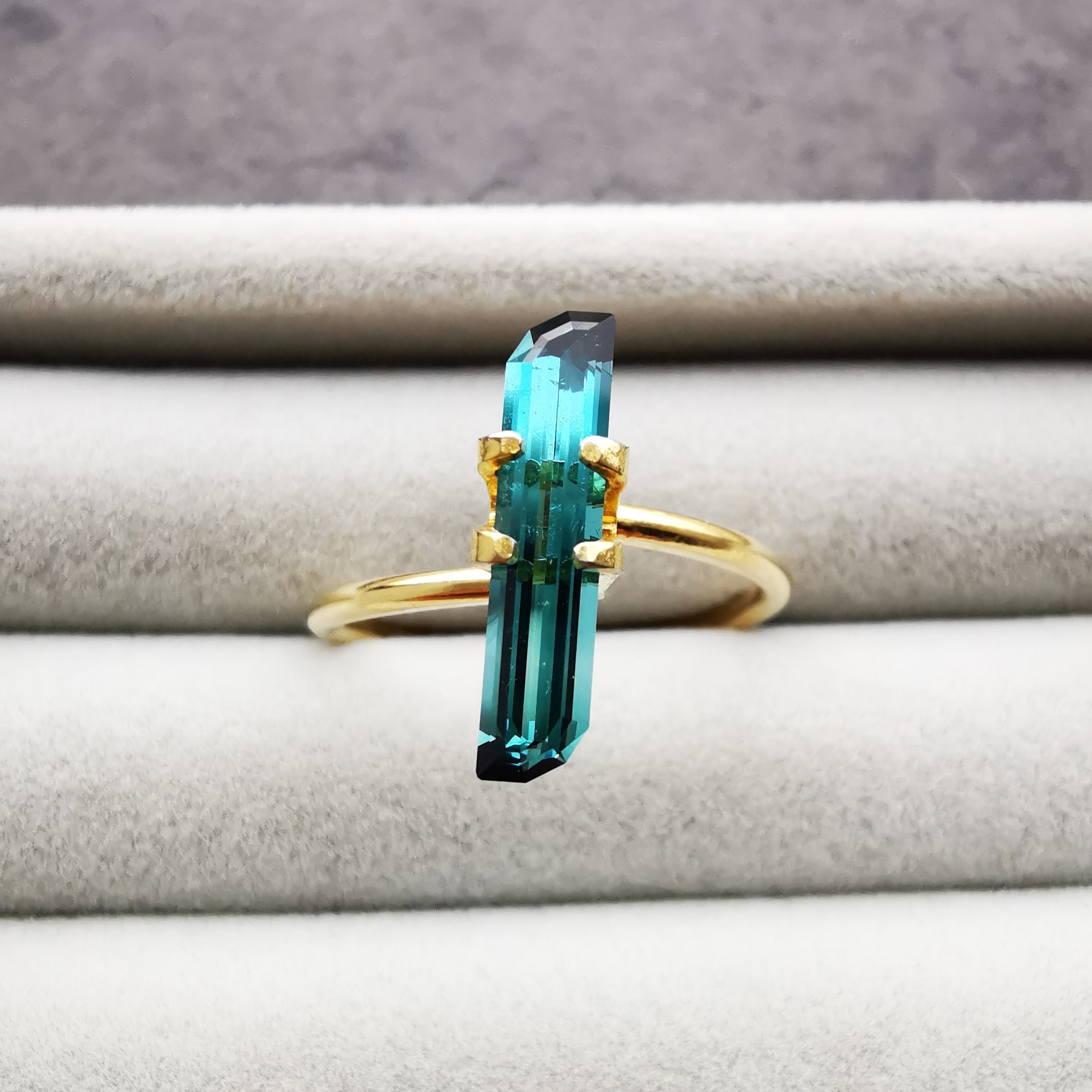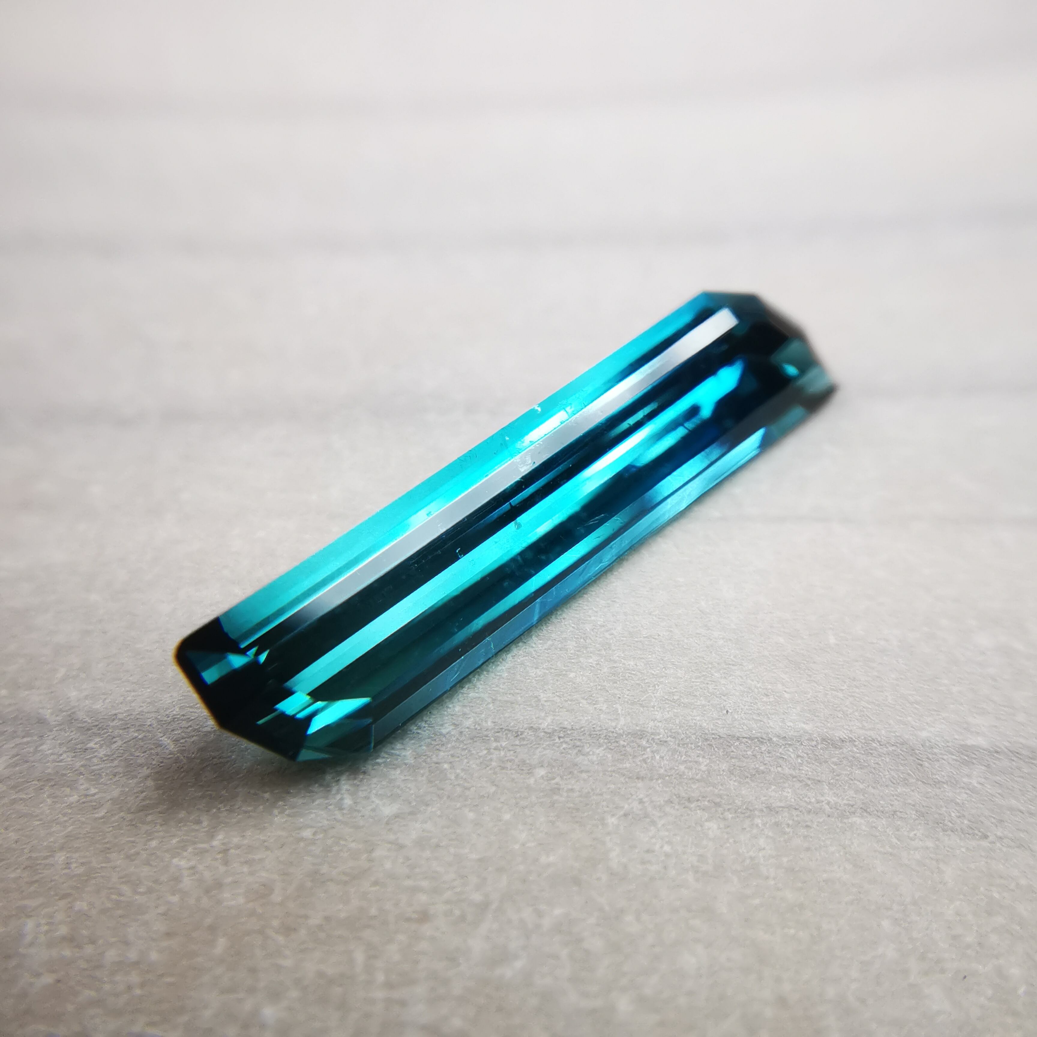 緑みのブルーが、息を飲むような美しさのトルマリンです。