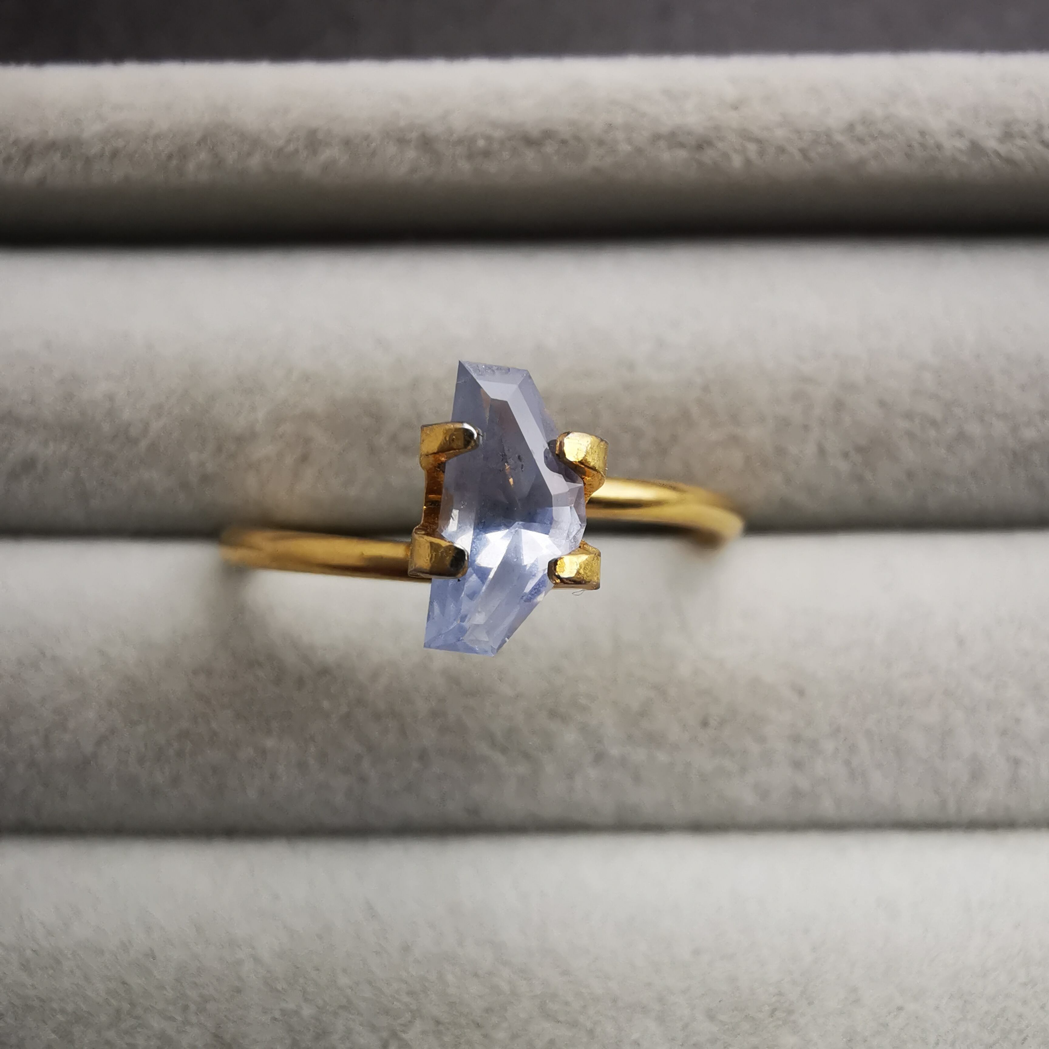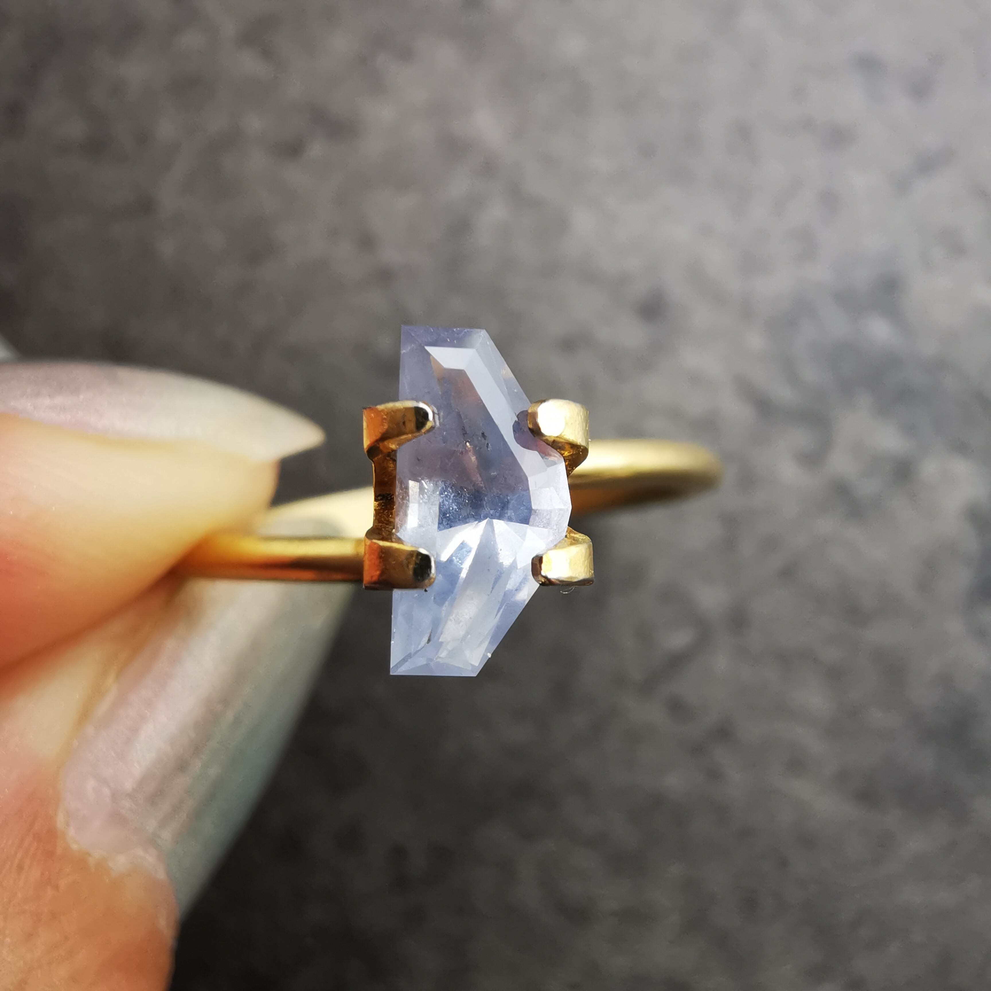ごく淡い勿忘草色、儚げなブルーのサファイアです。