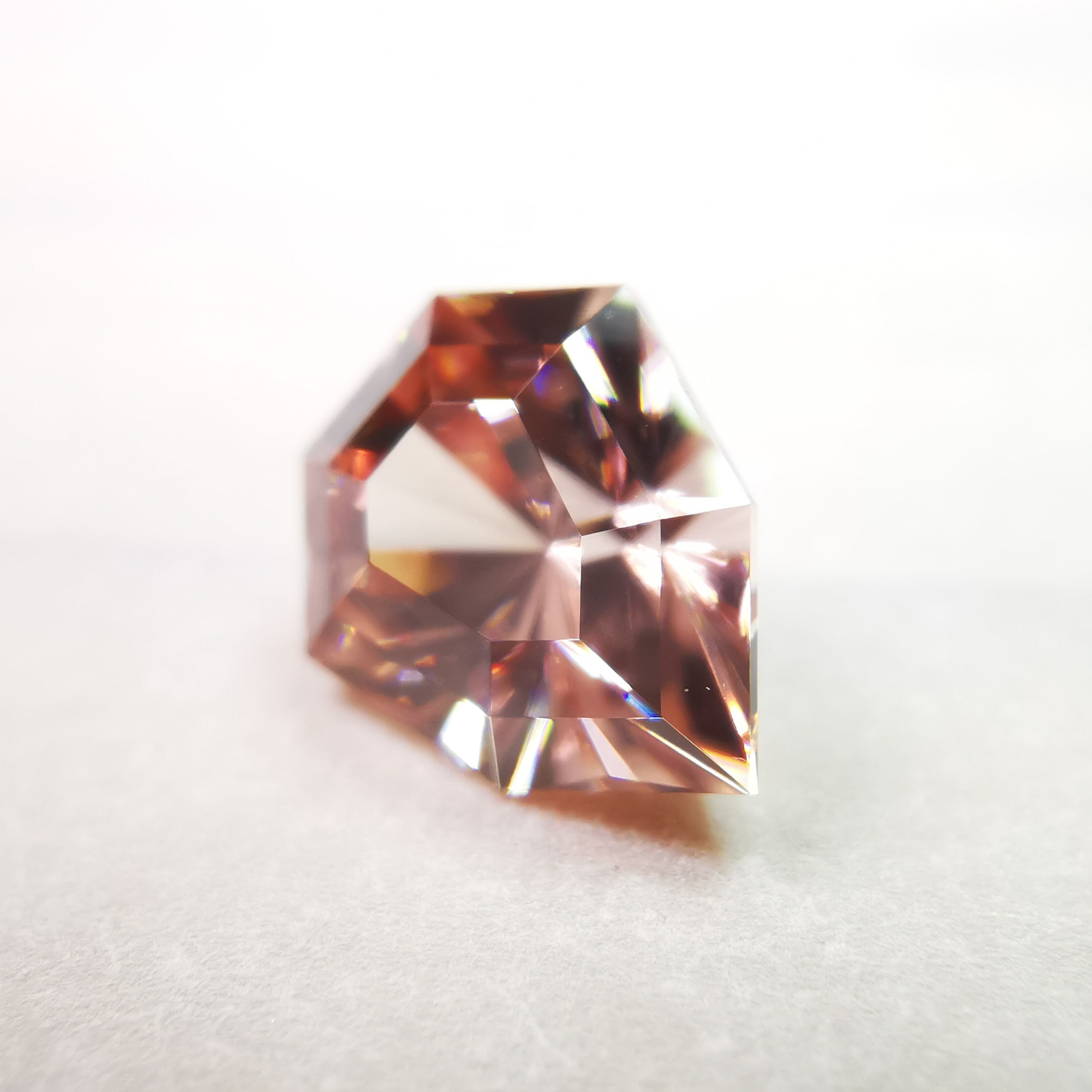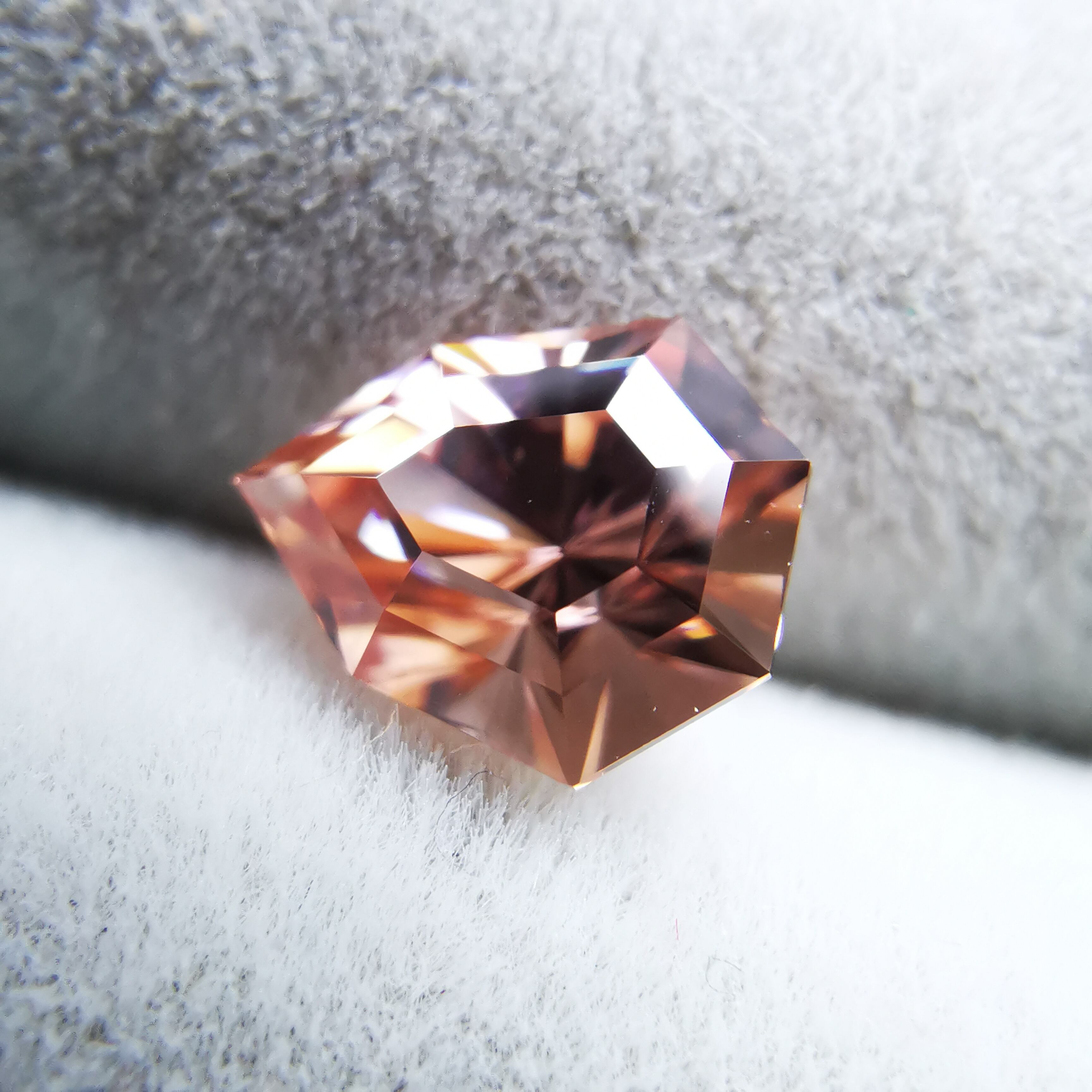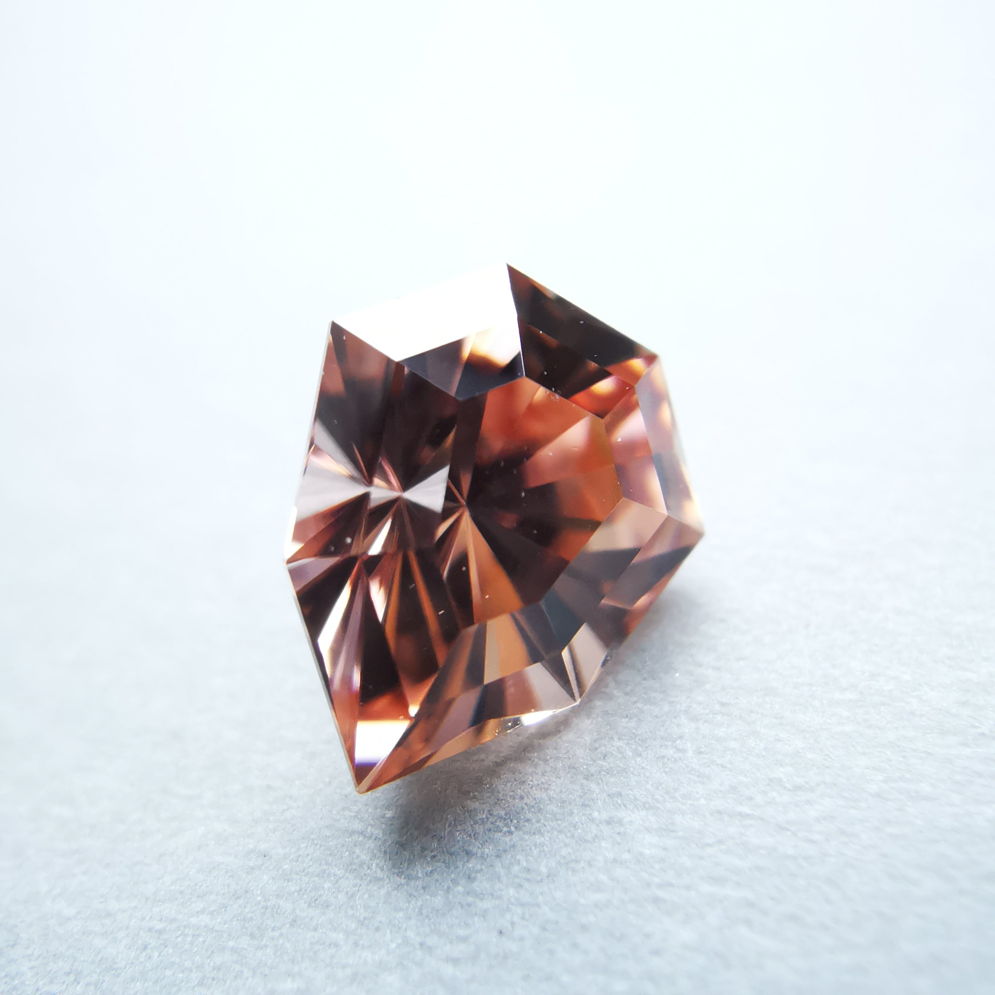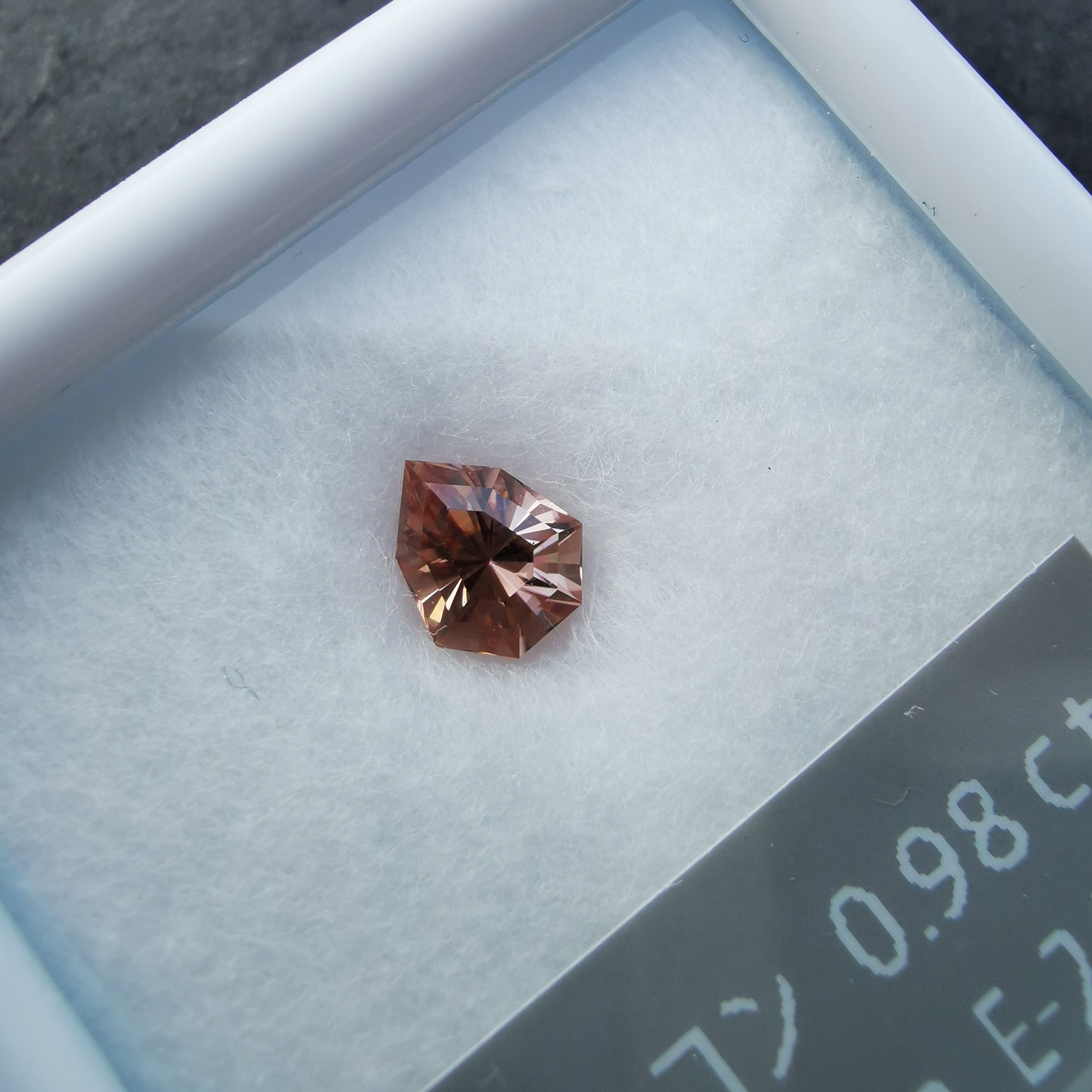 自然光の日陰では明るく淡い黄赤、明け方の東の空の色、東雲色のジルコンです。