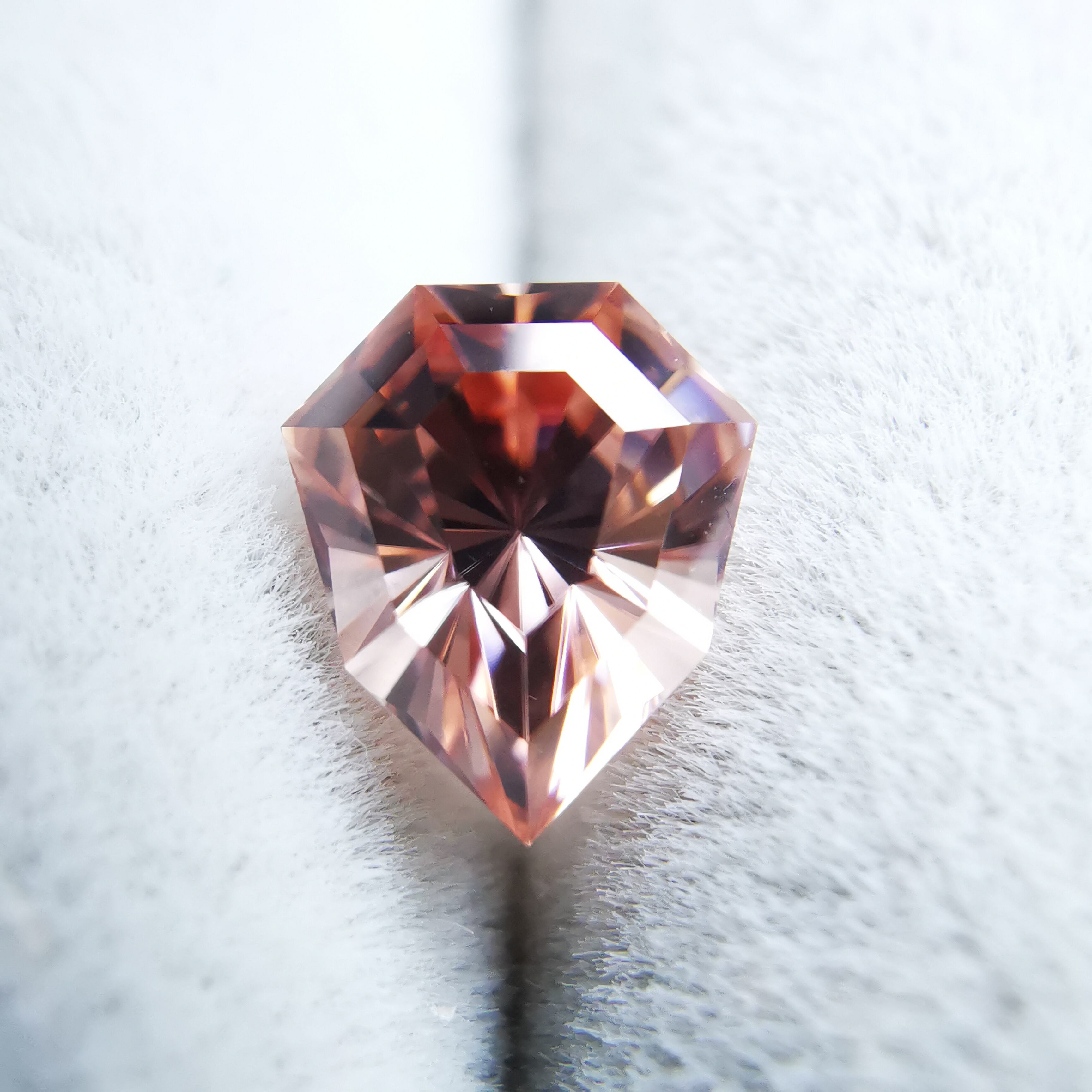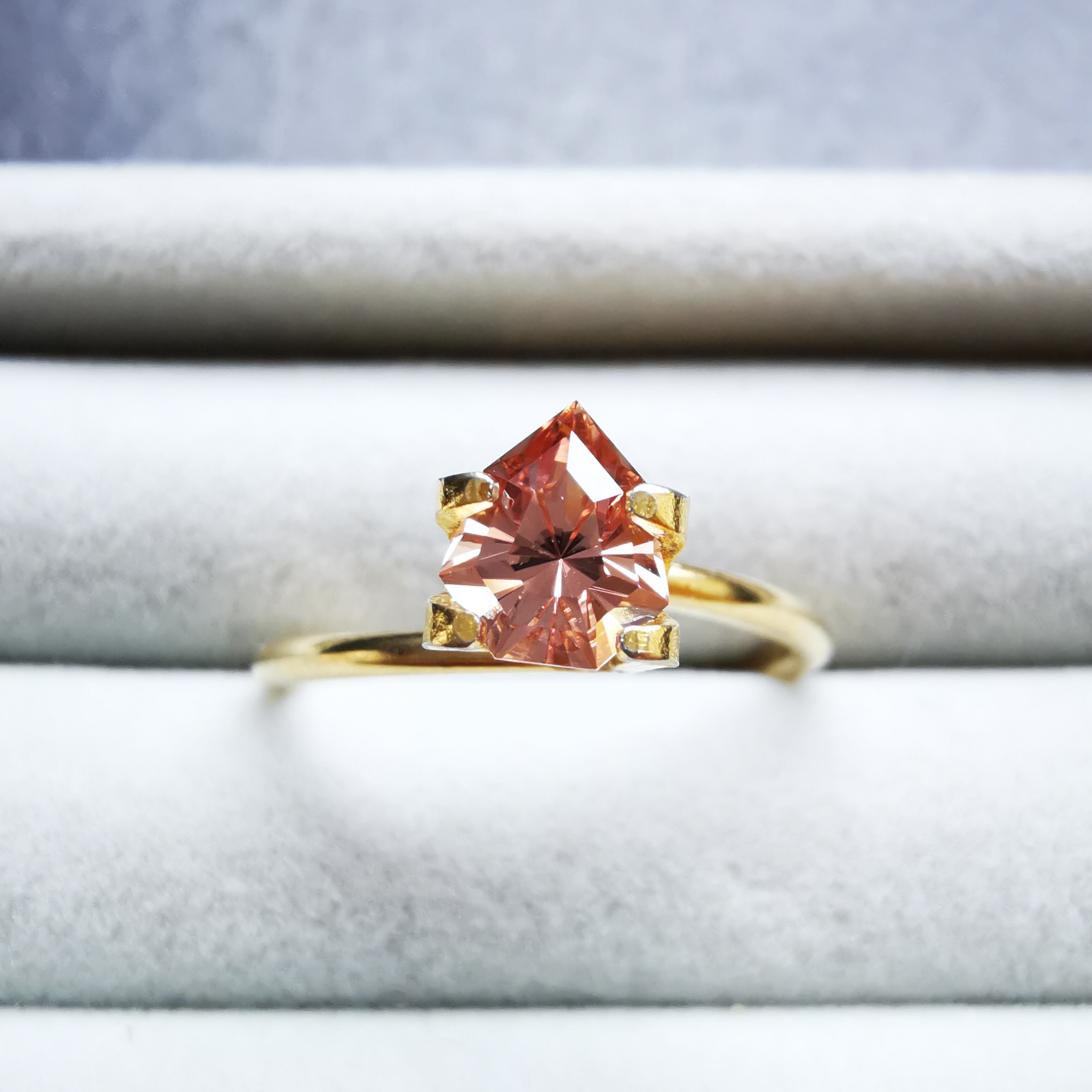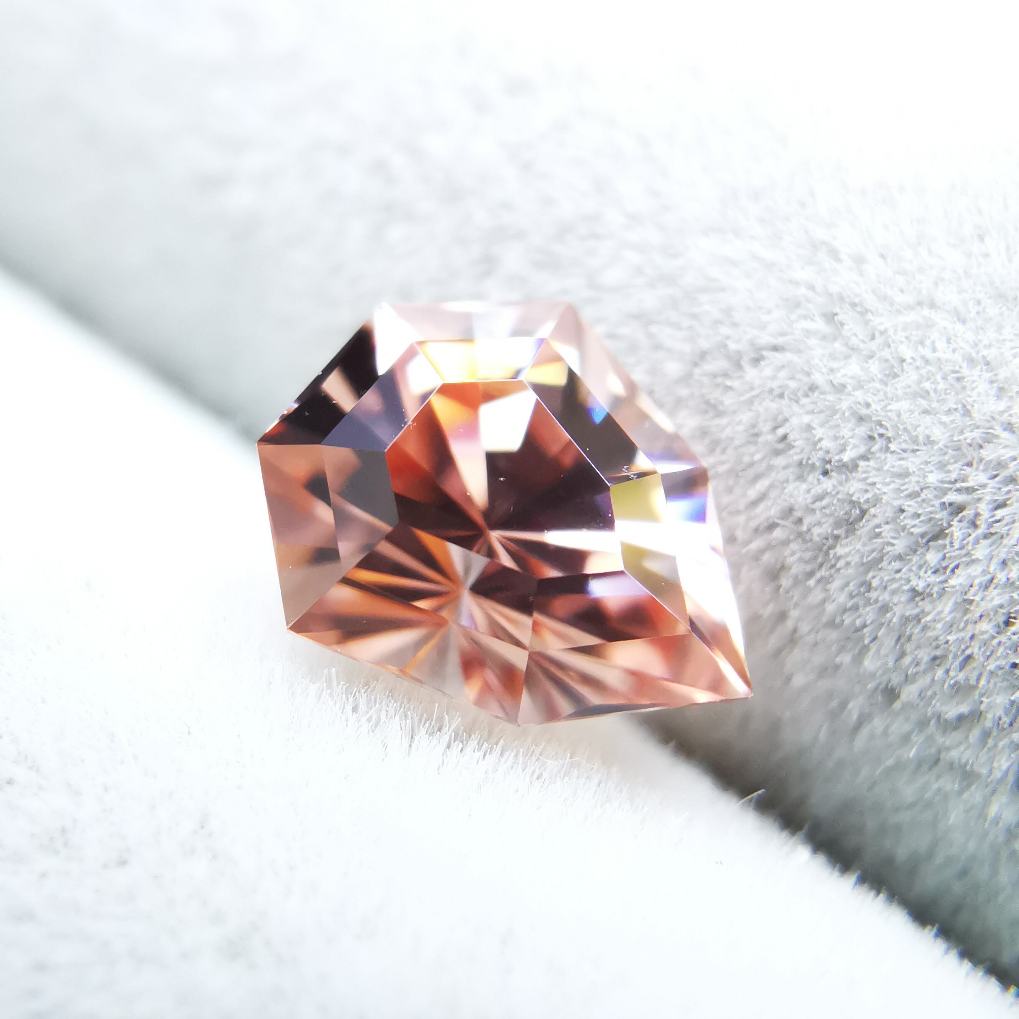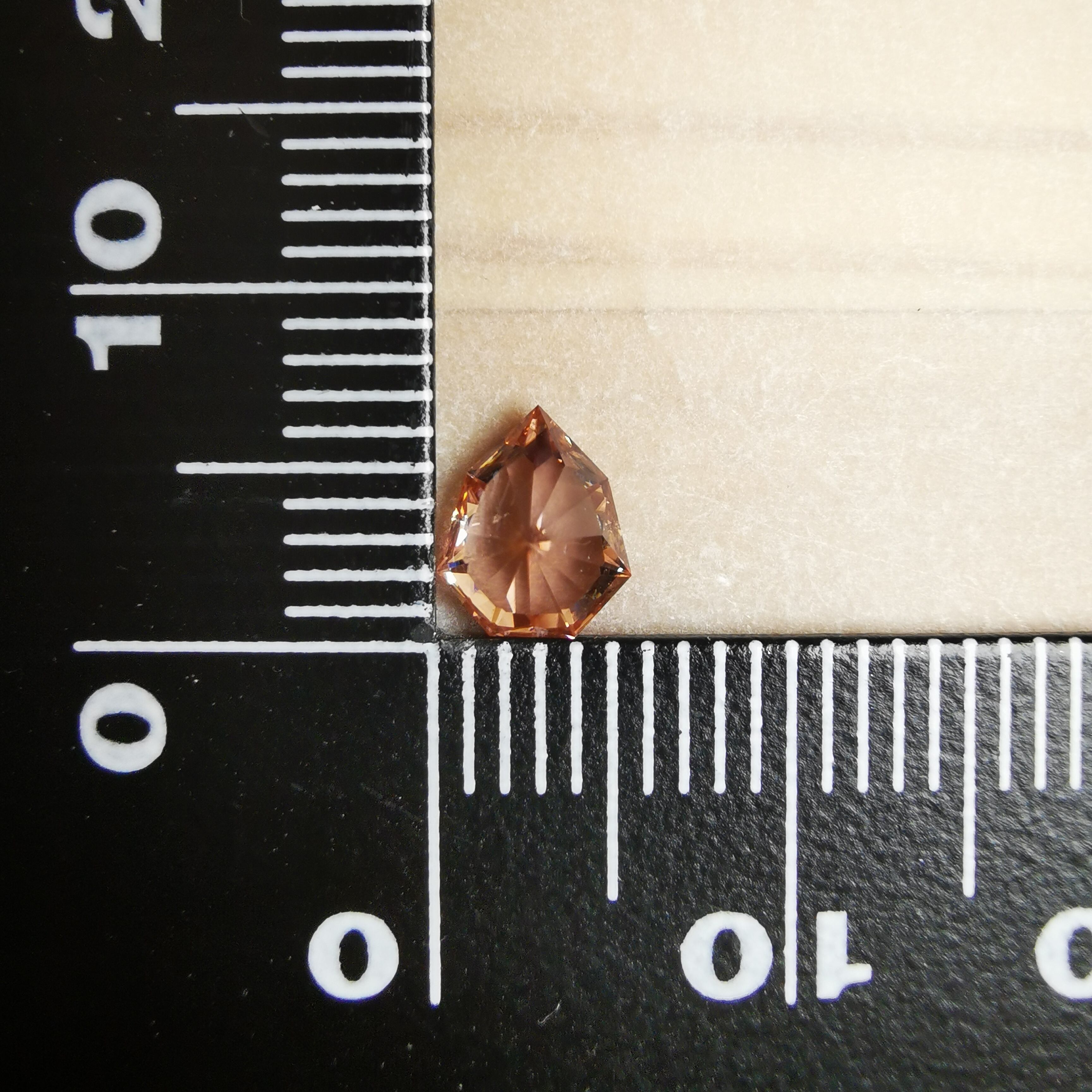 自然光の日陰では明るく淡い黄赤、明け方の東の空の色、東雲色のジルコンです。