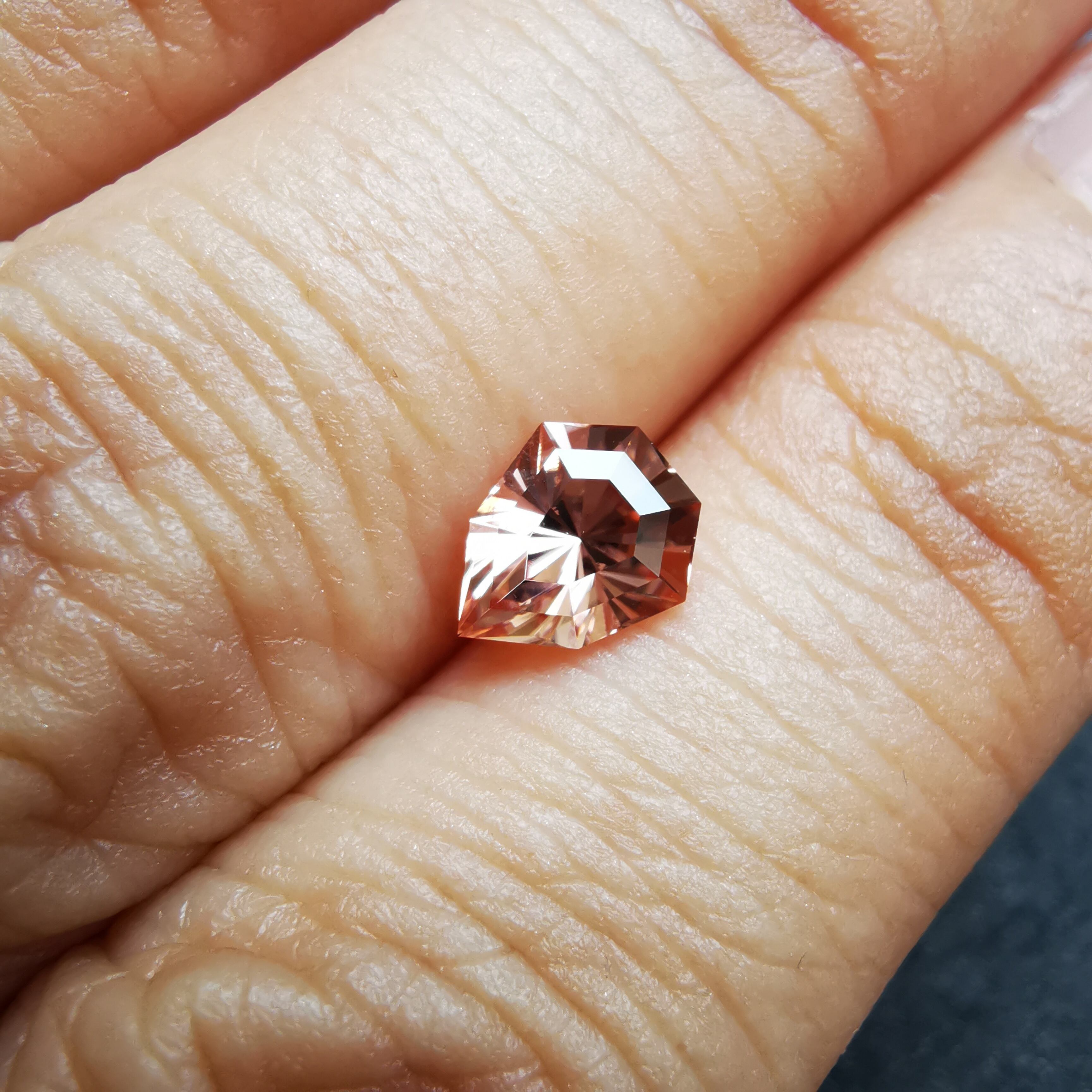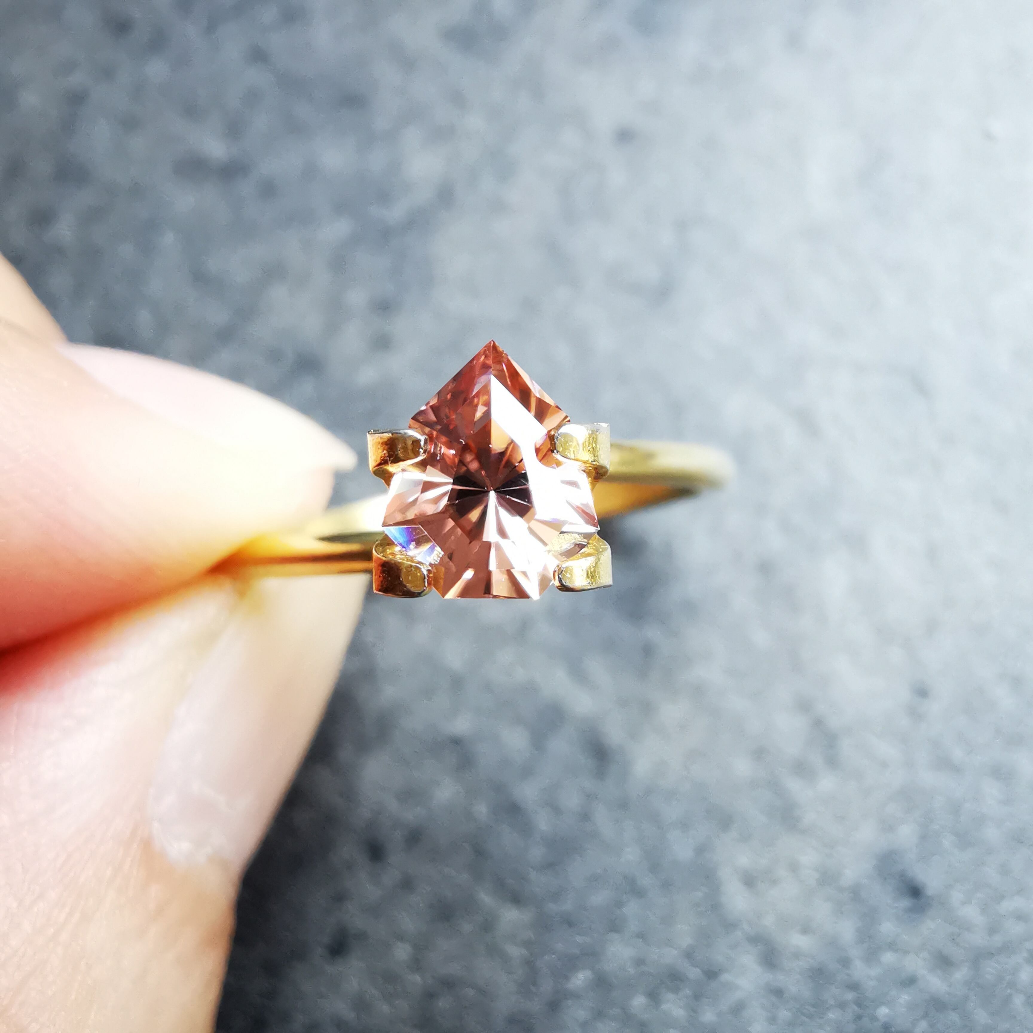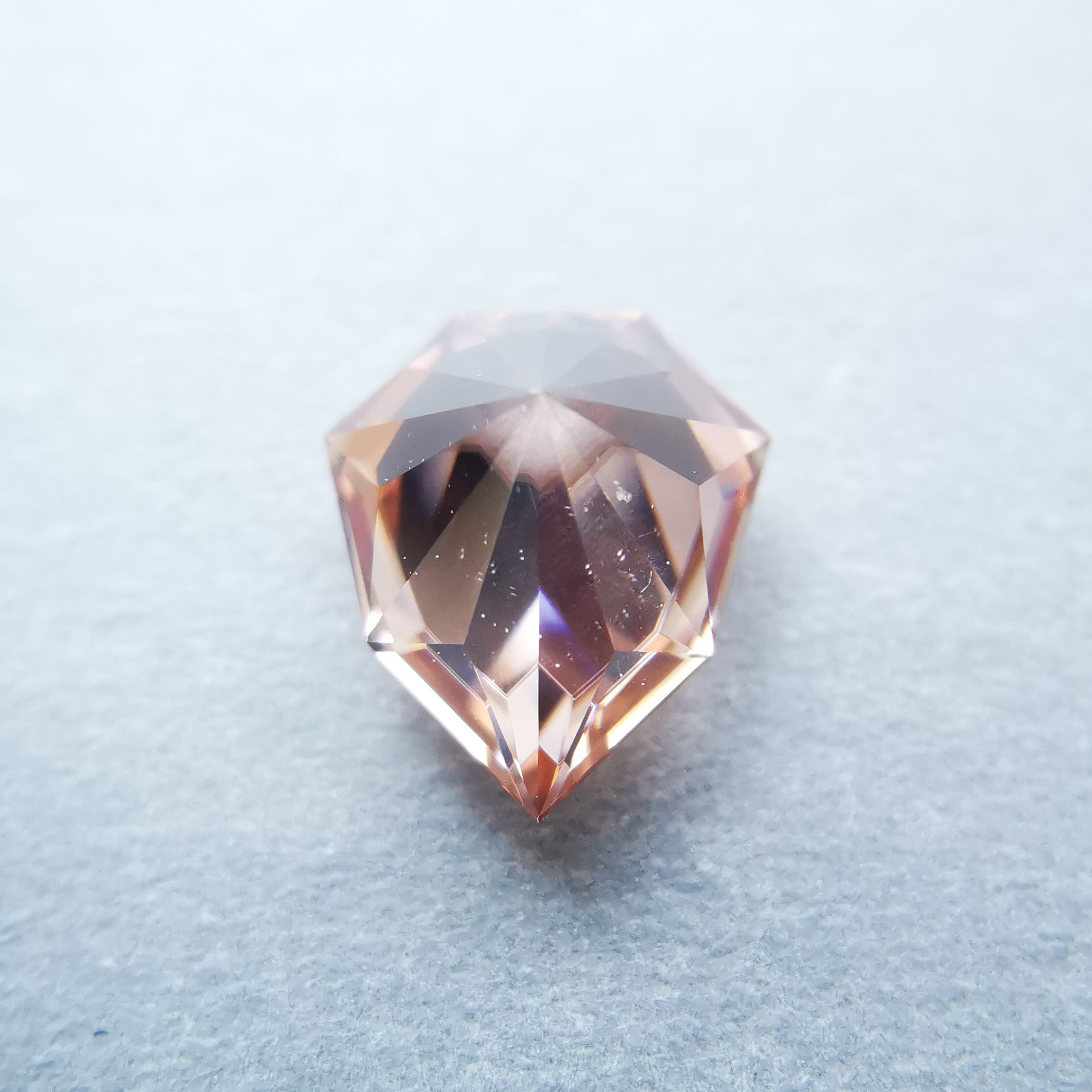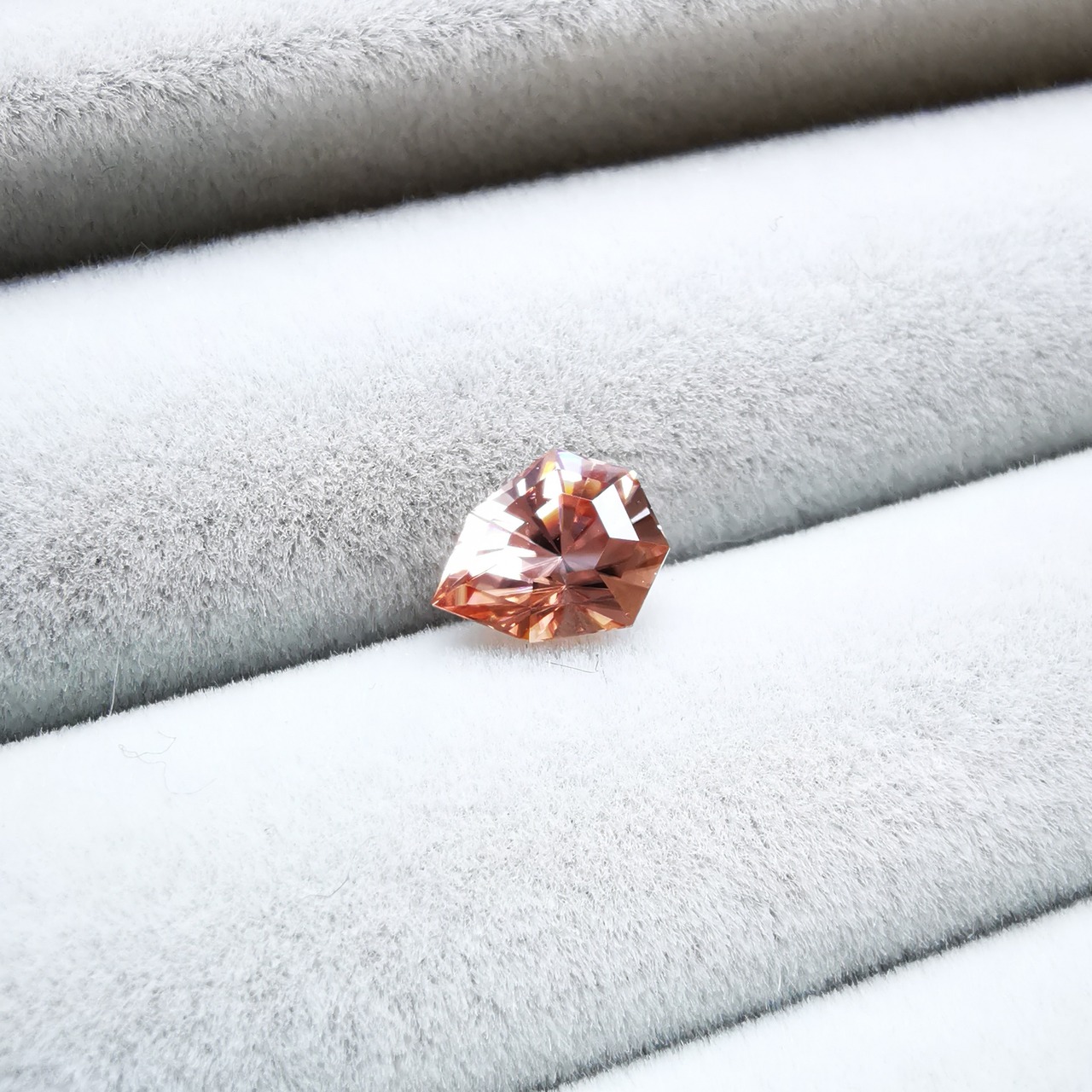 自然光の日陰では明るく淡い黄赤、明け方の東の空の色、東雲色のジルコンです。