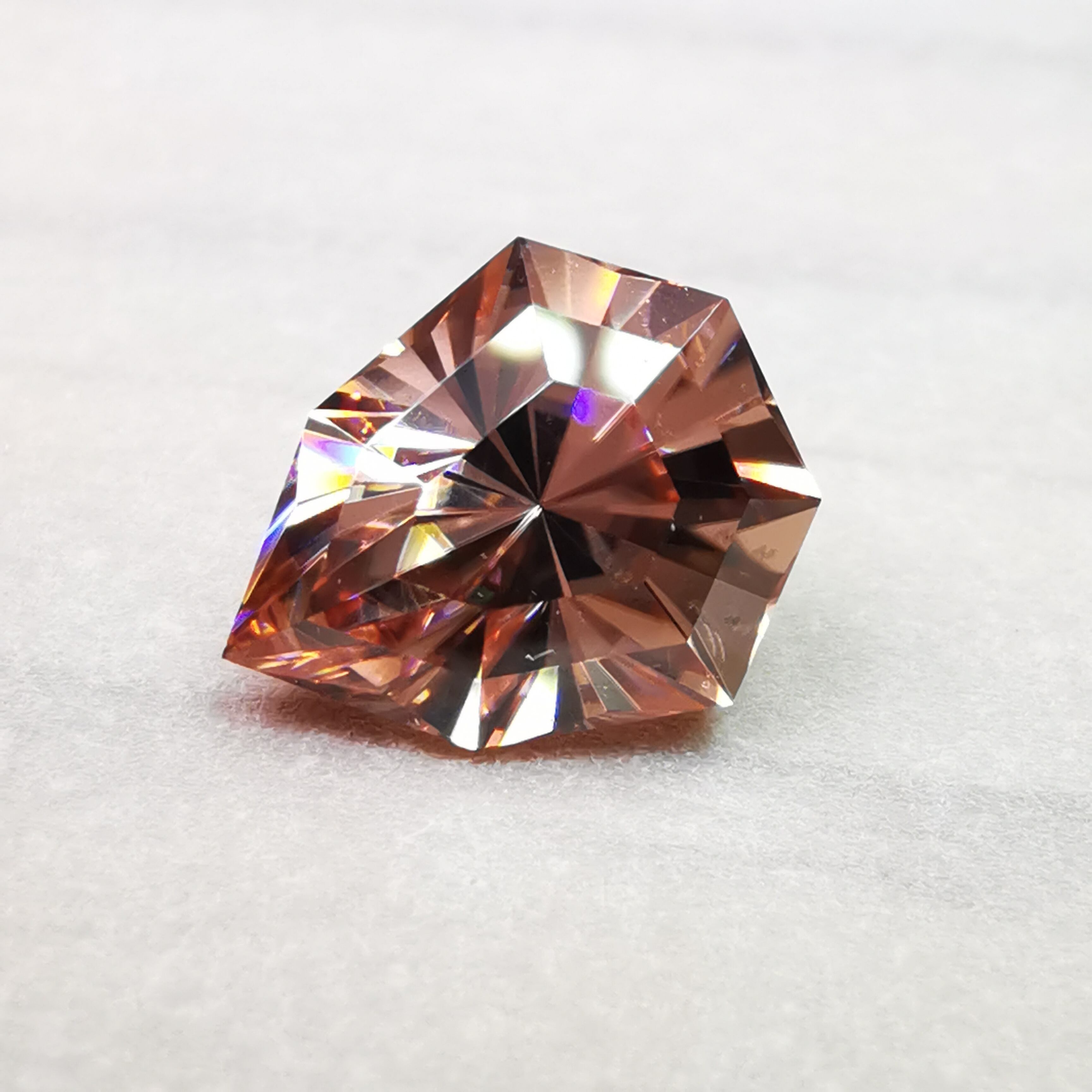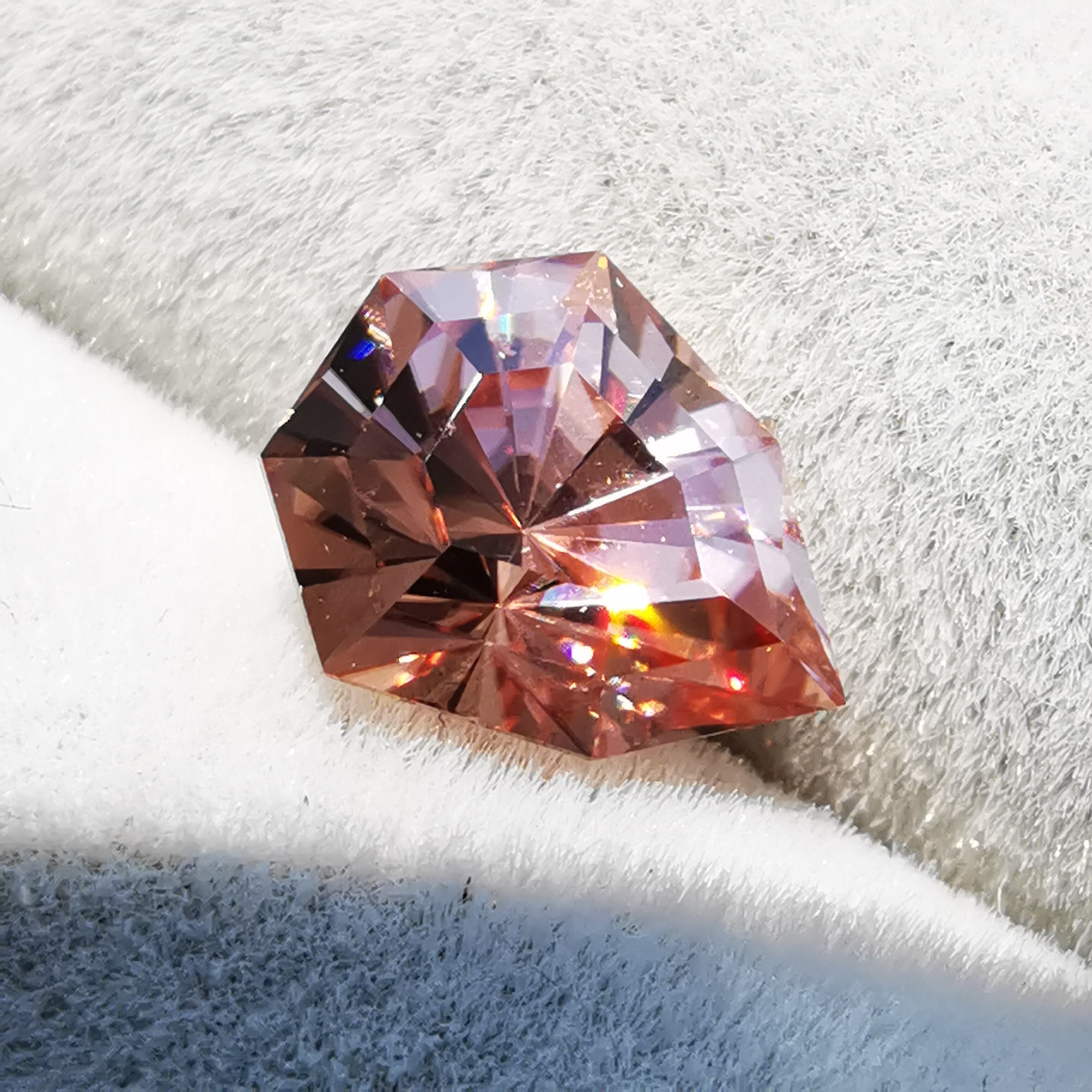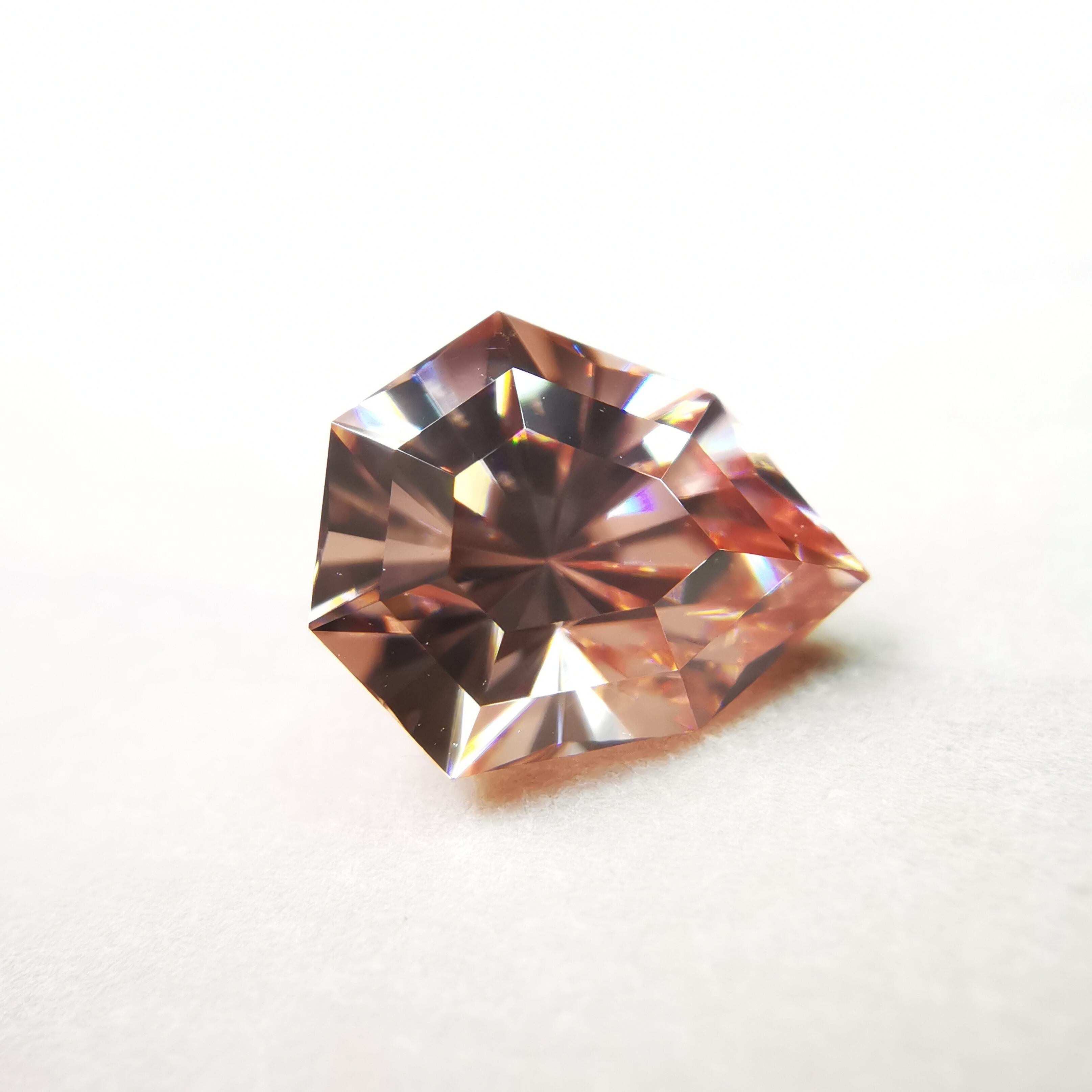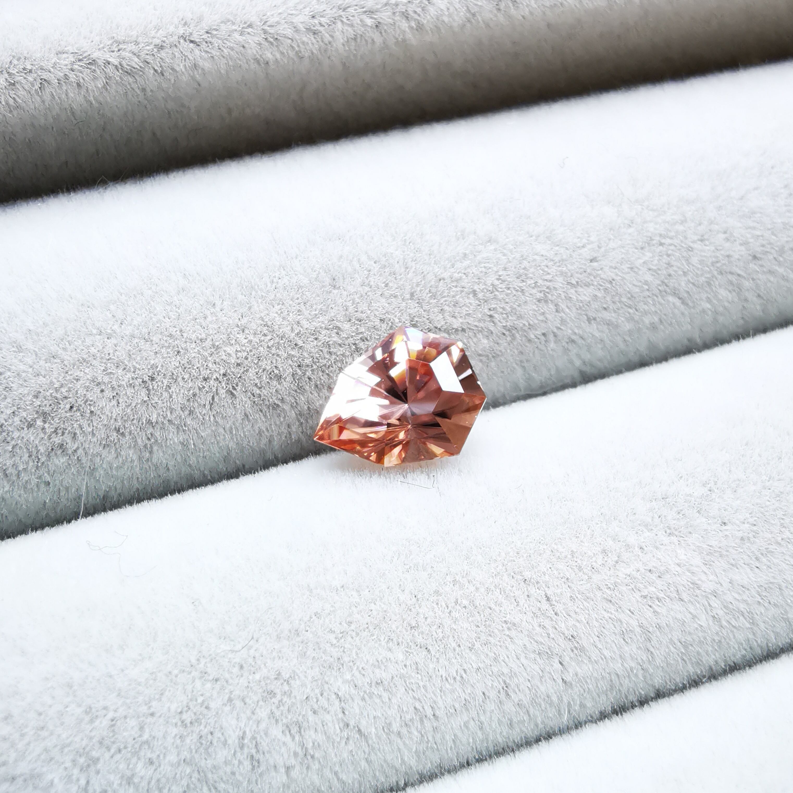 自然光の日陰では明るく淡い黄赤、明け方の東の空の色、東雲色のジルコンです。