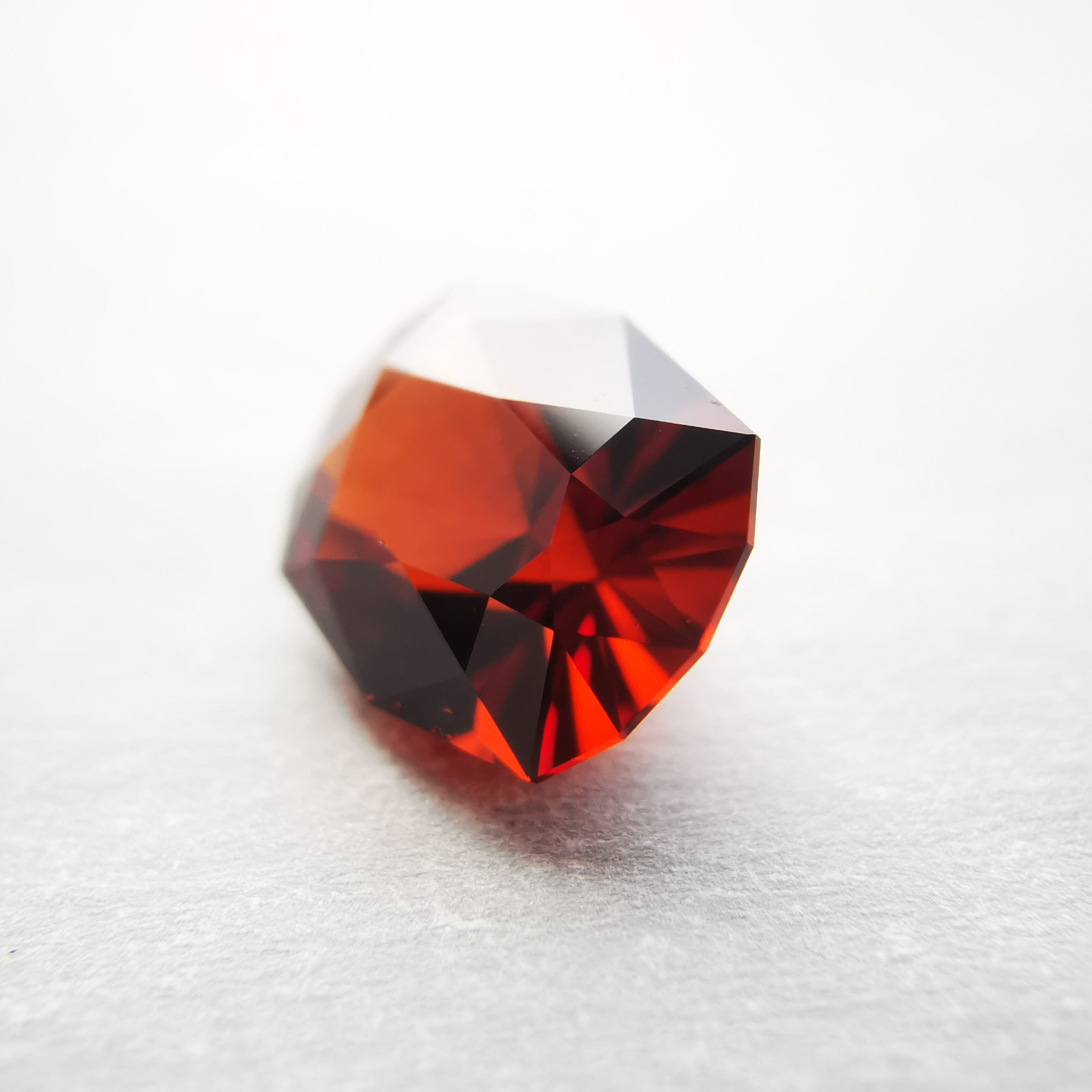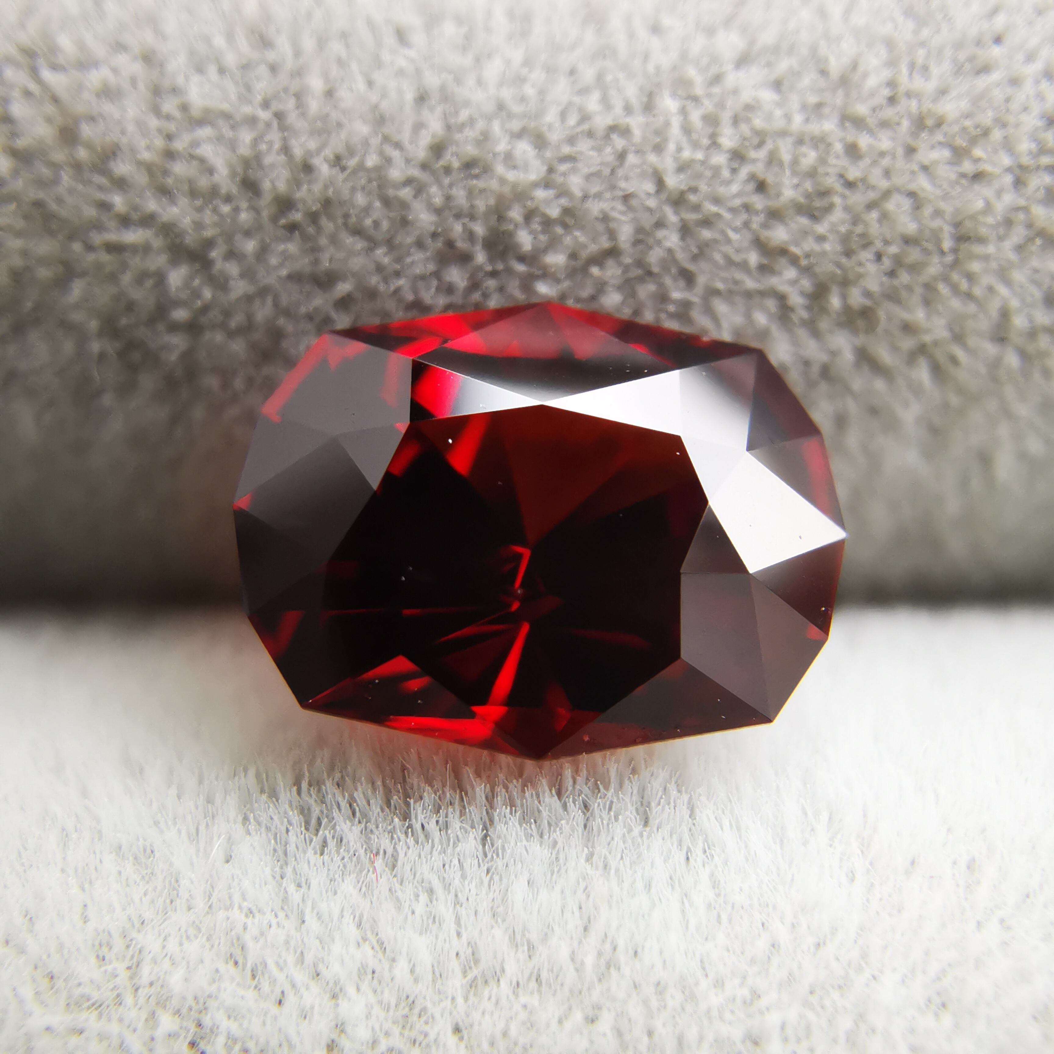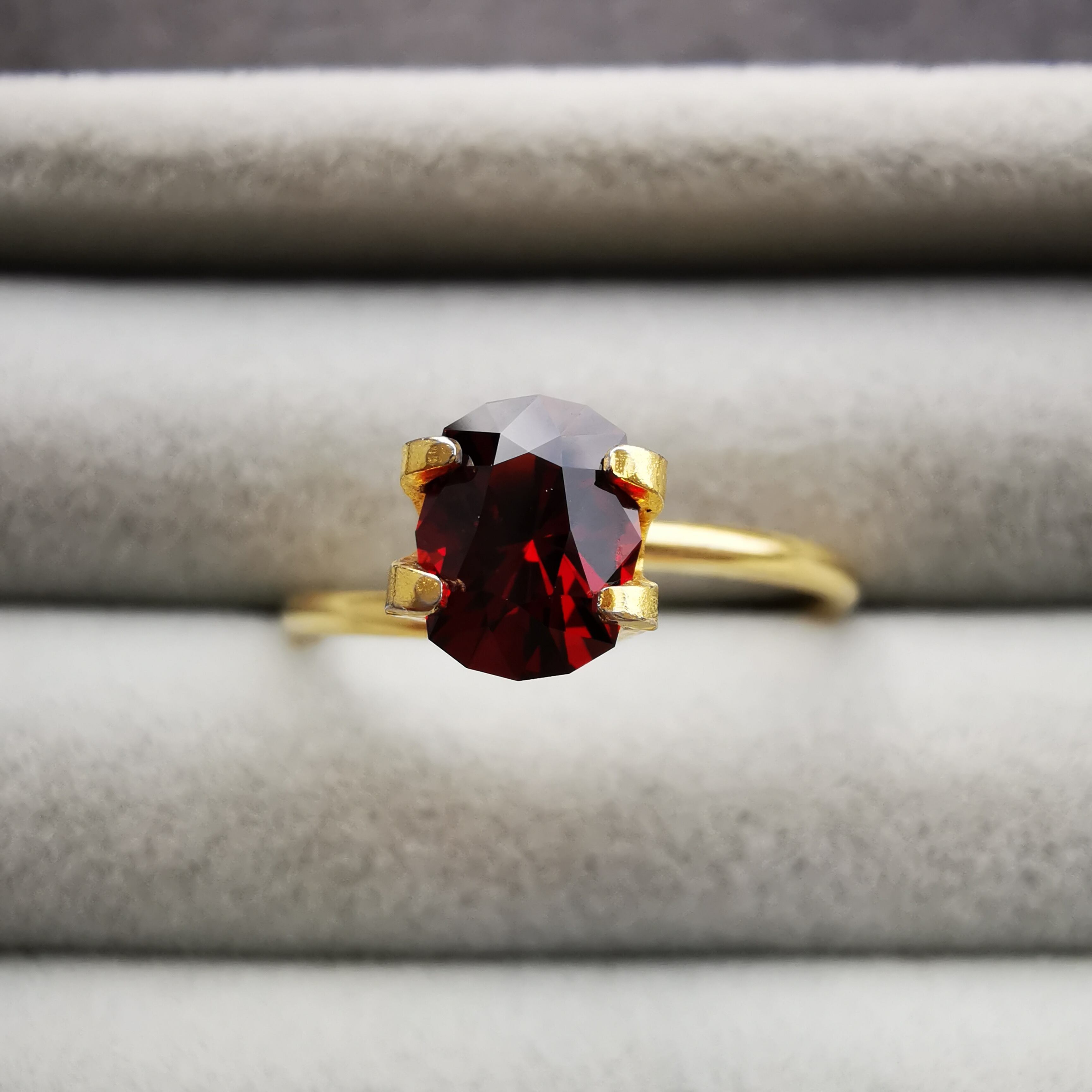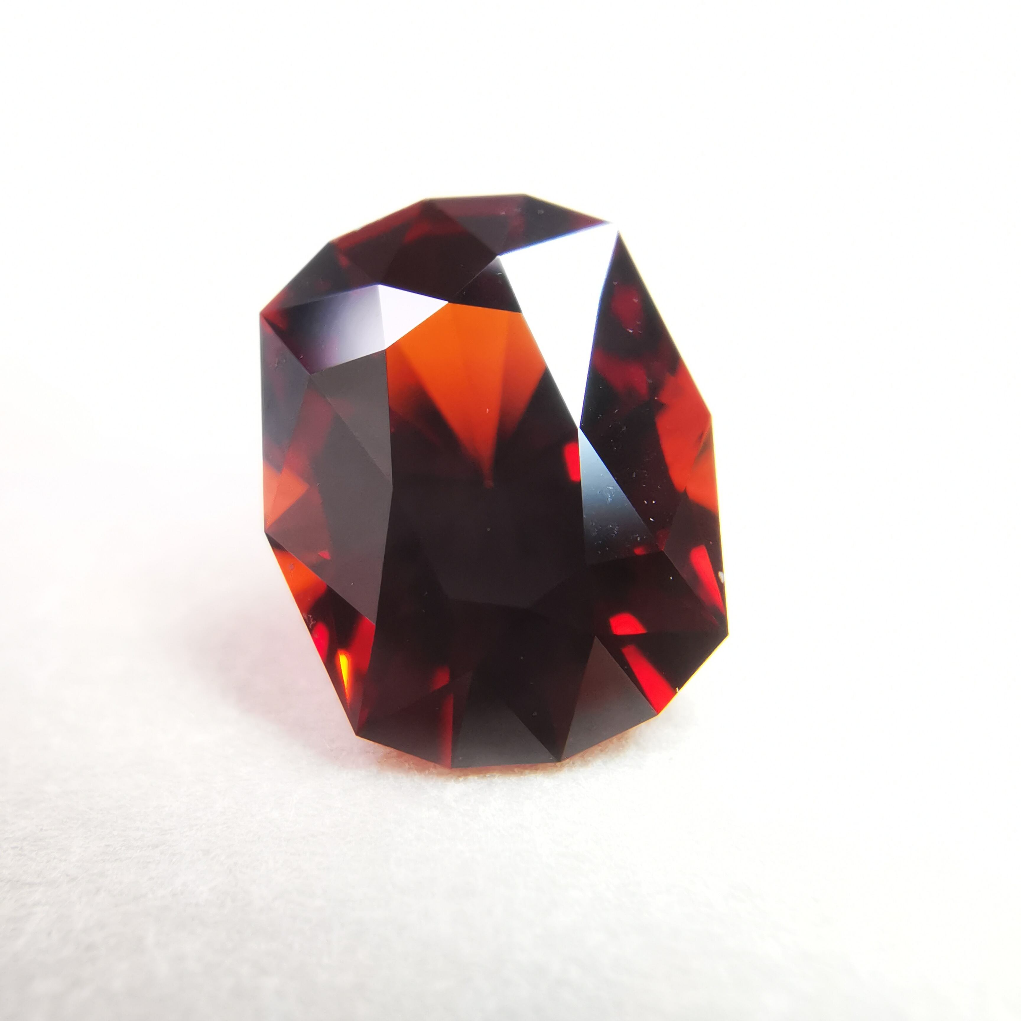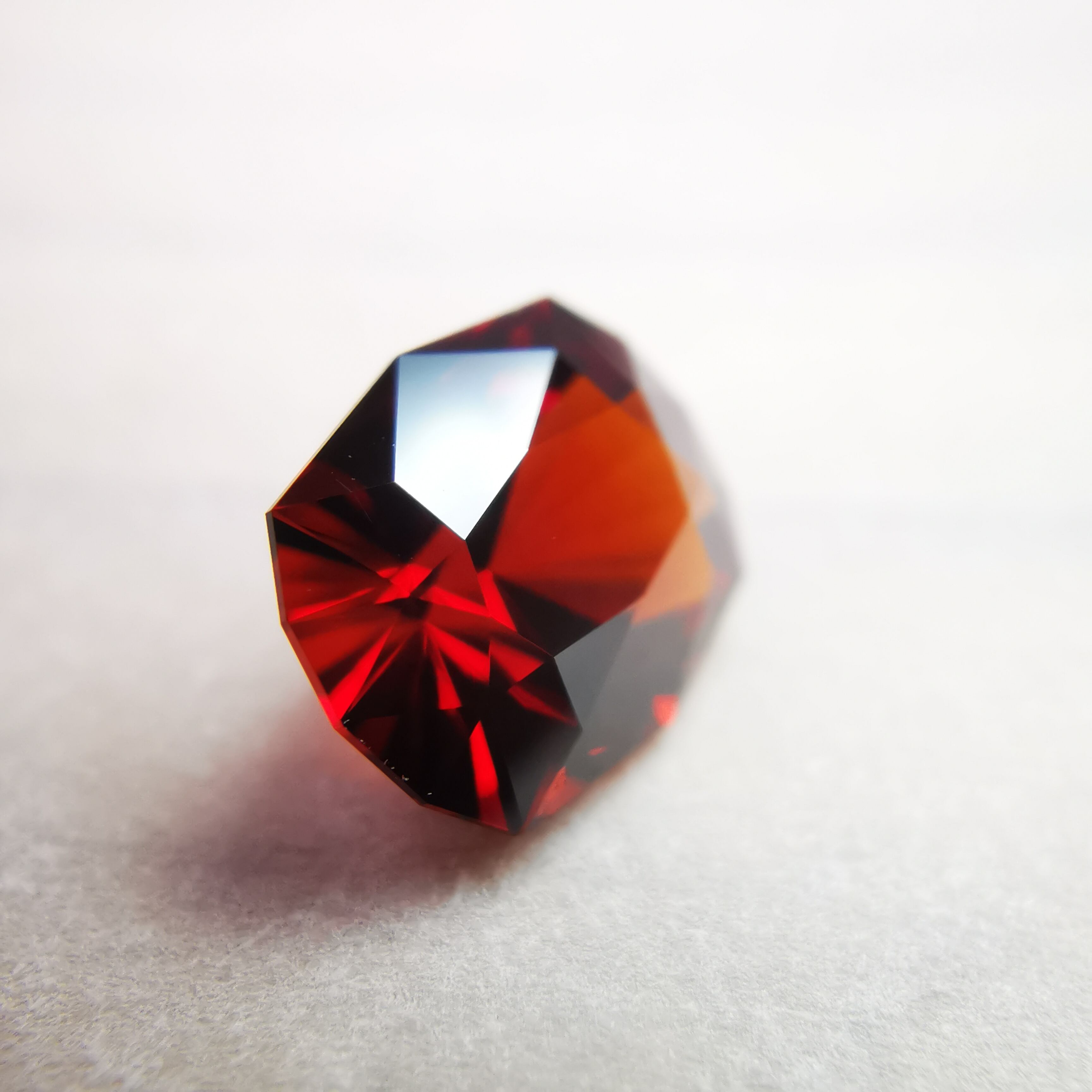 暗い石の中から、朱色寄りの鮮やかな赤が、ほとばしるようにきらめくガーネットです。