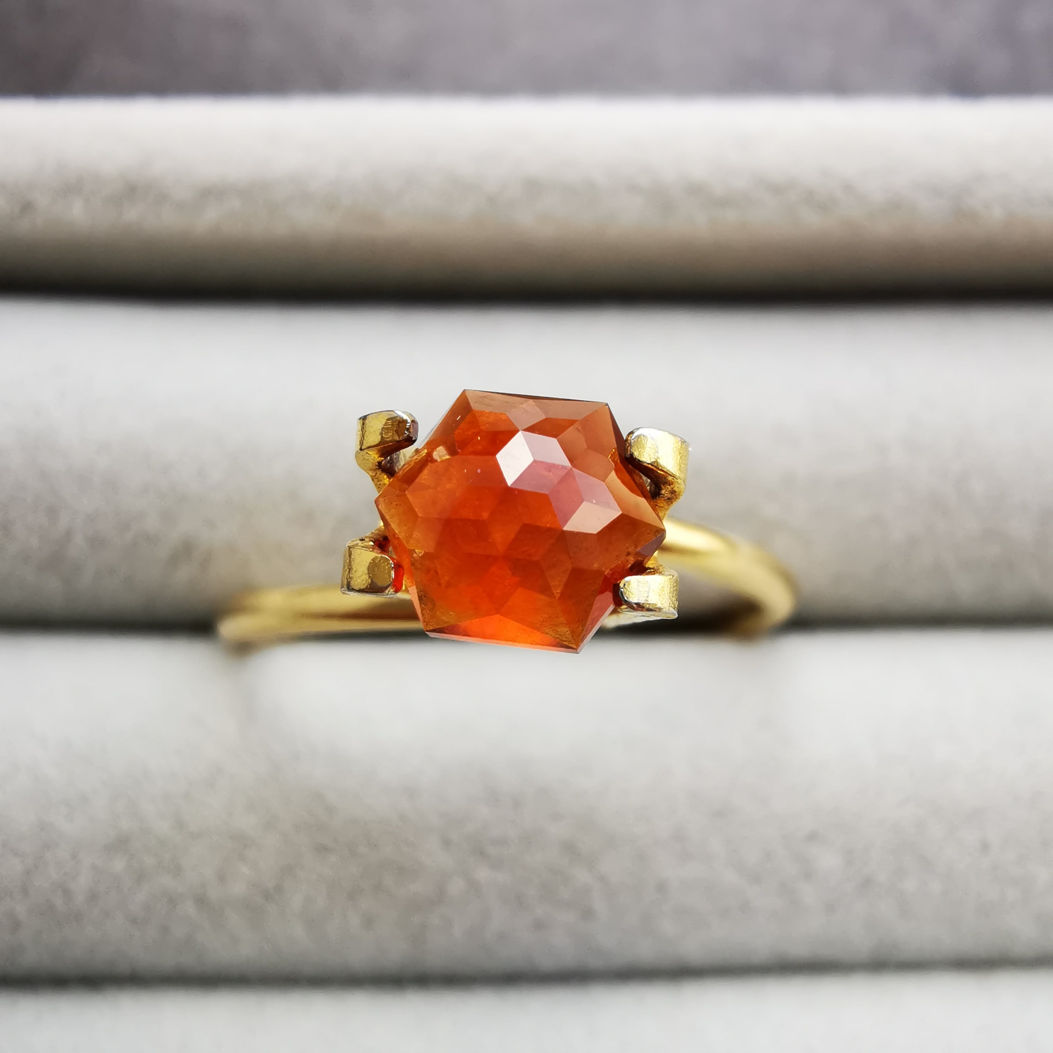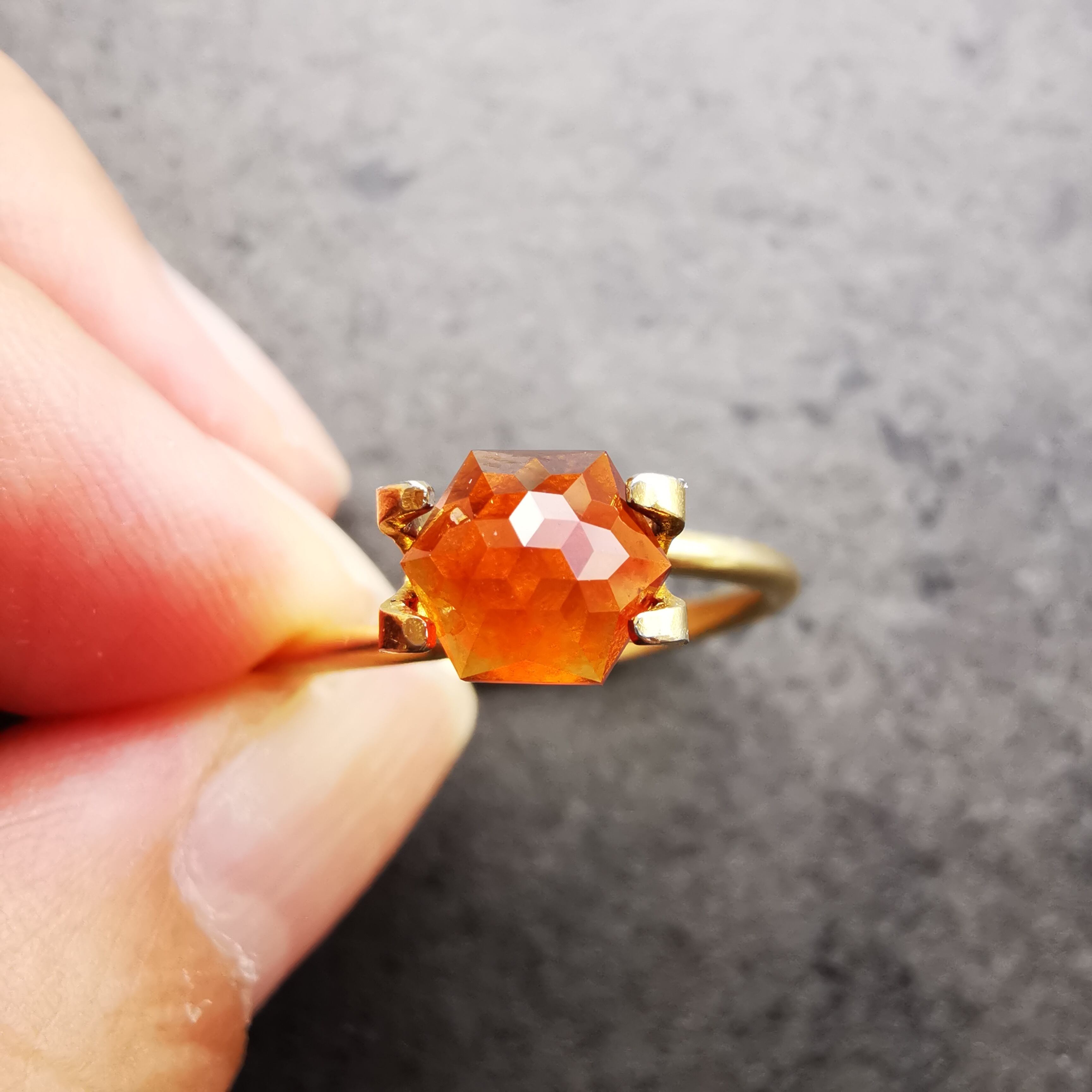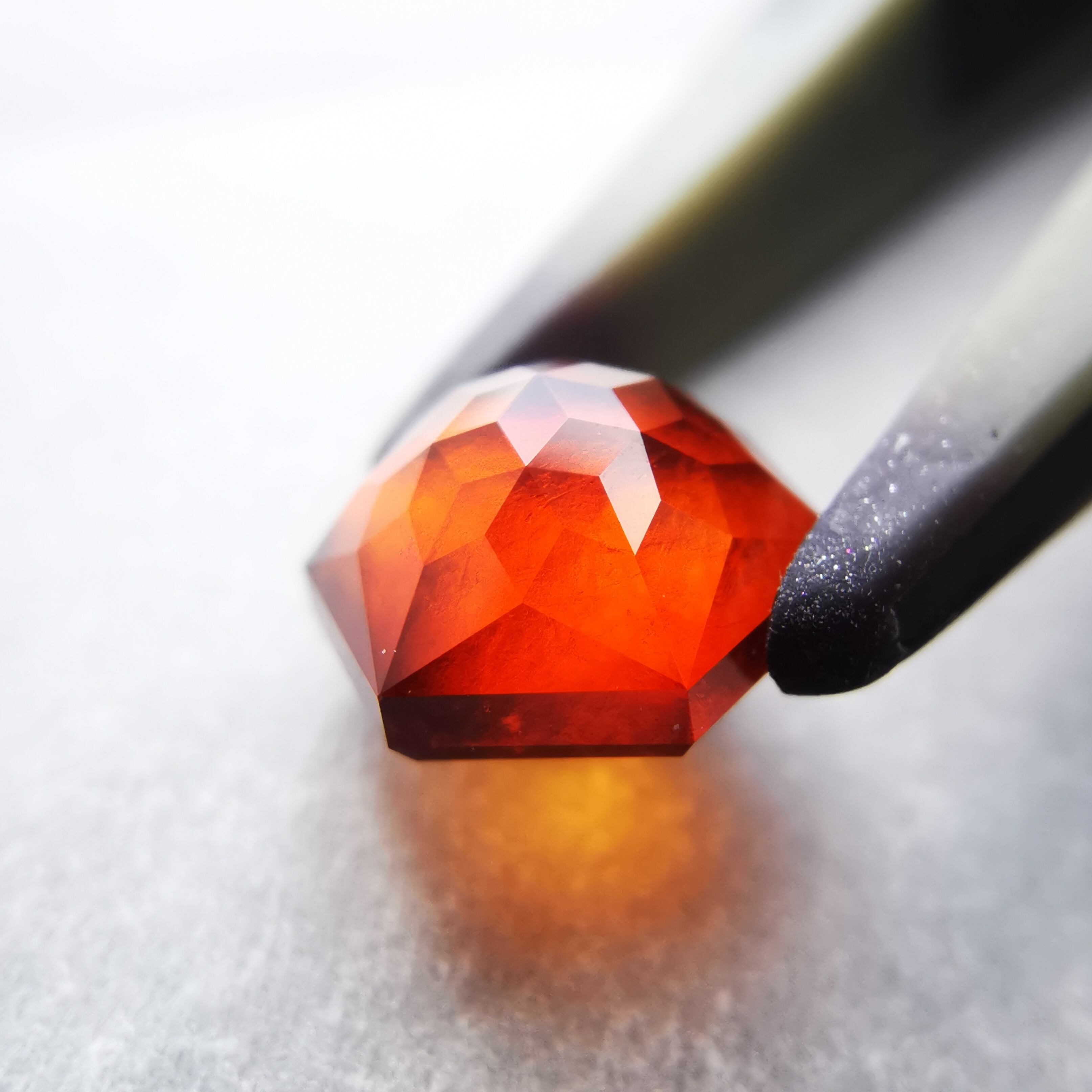 落ち着いた朱色のヘソナイトガーネットをカボションカットからローズカットにリカットしました。