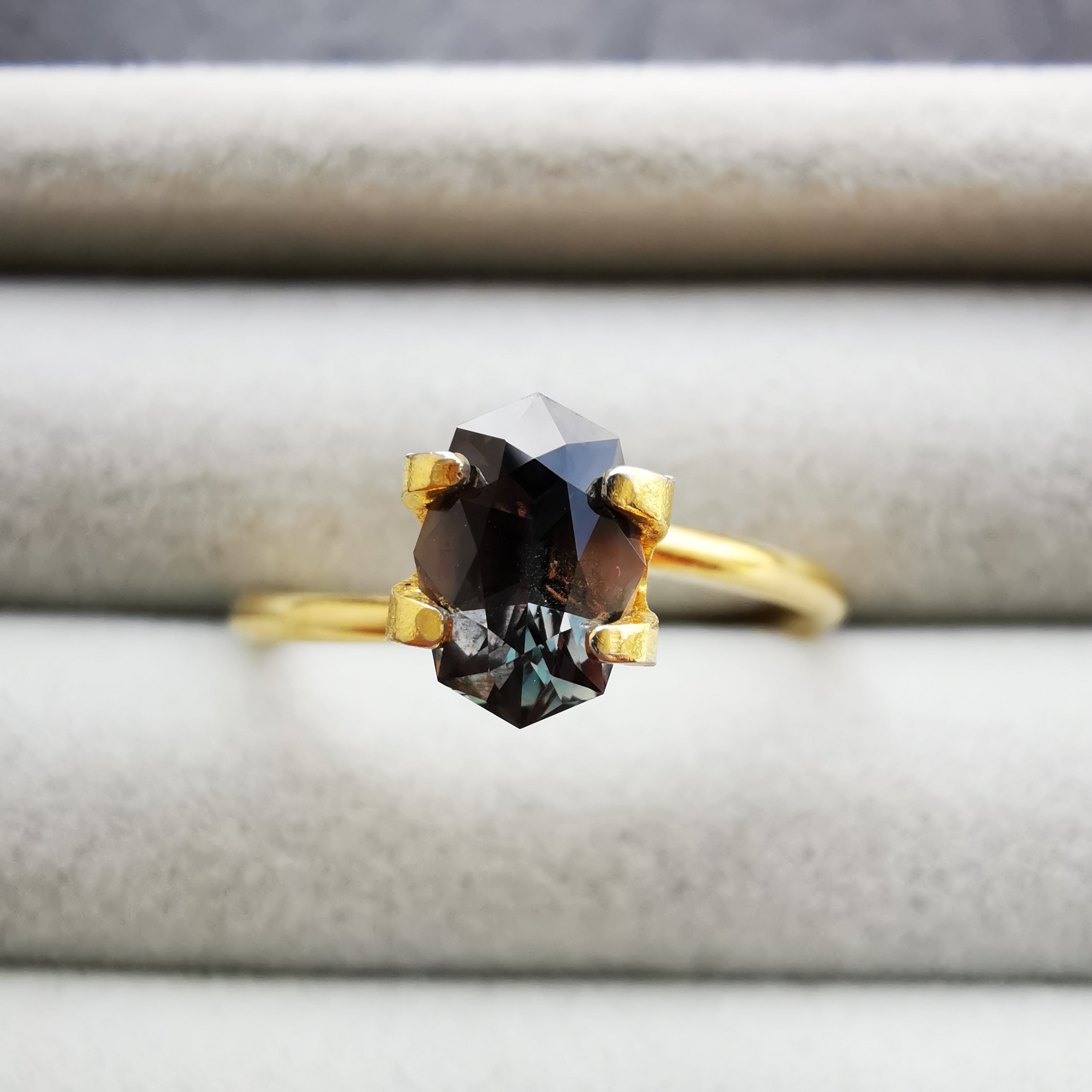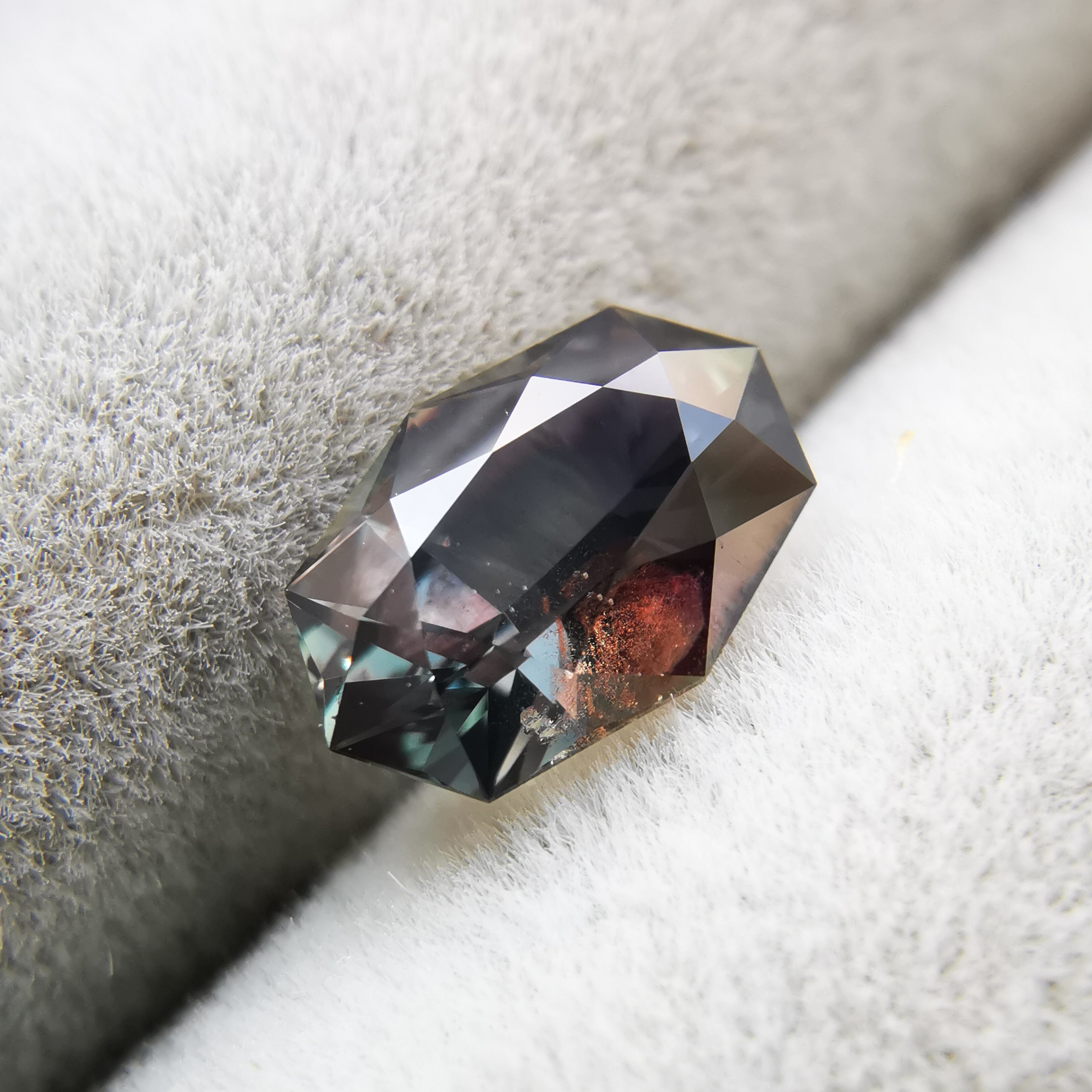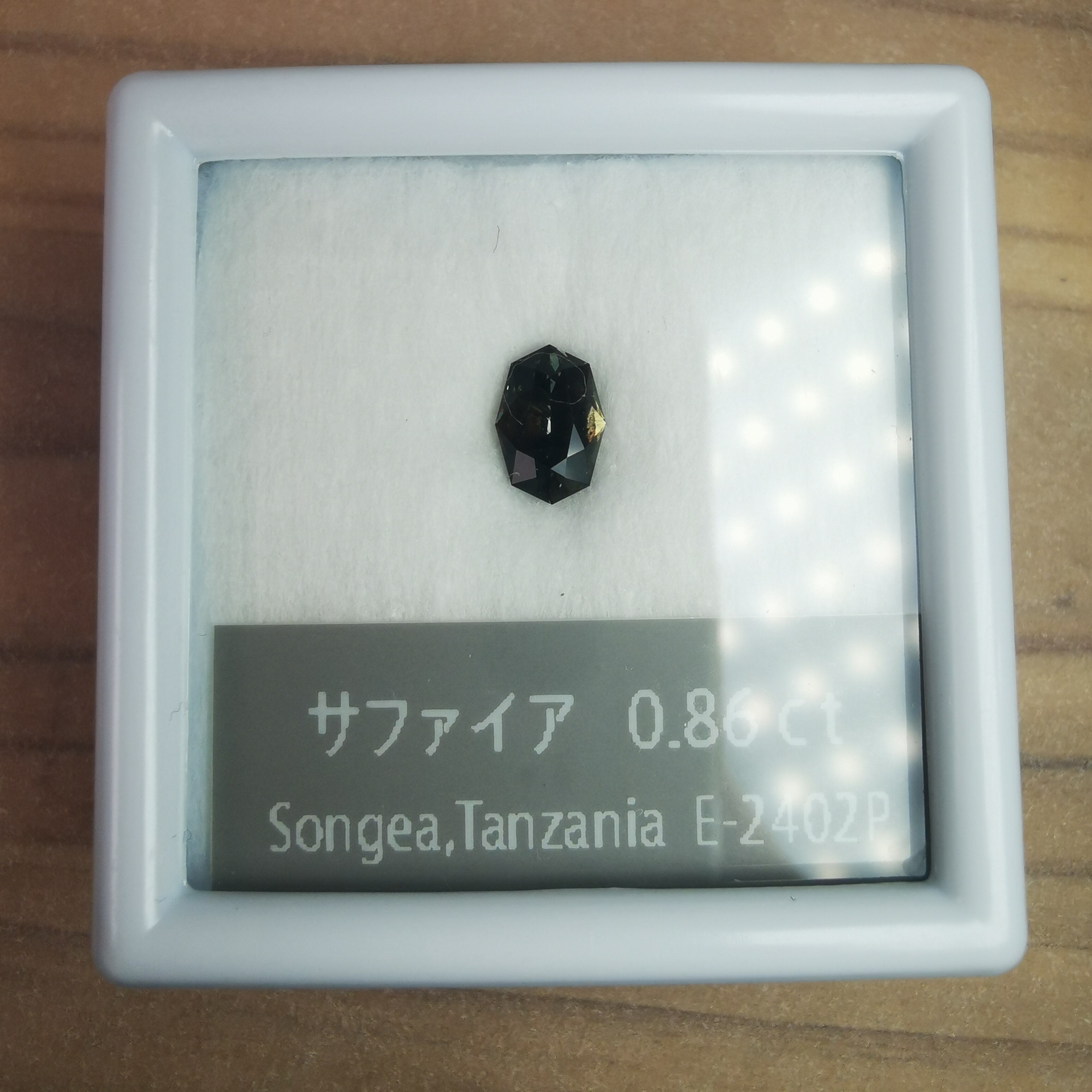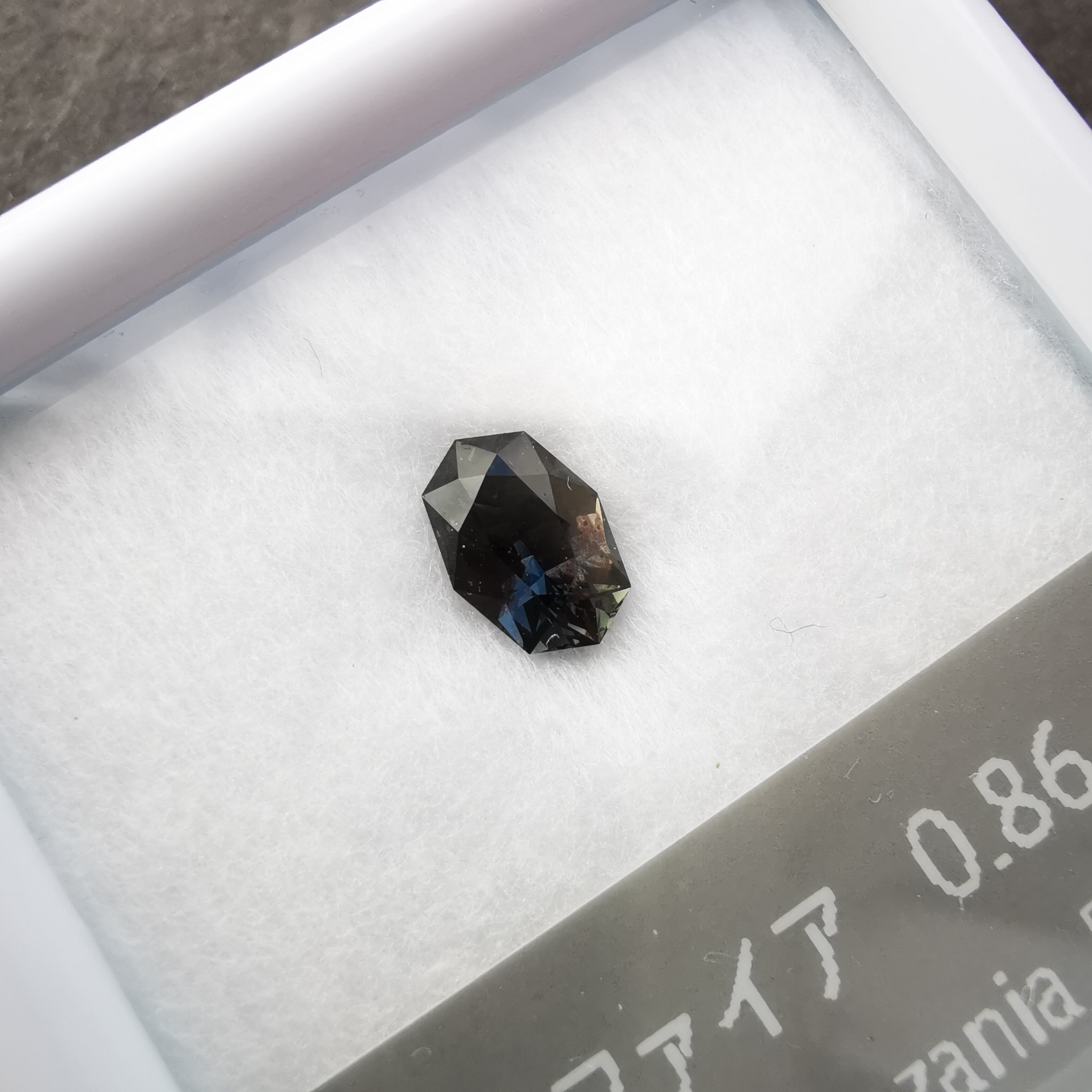 一見、ほぼ黒いサファイアで、わずかに赤みゴールドのシラーがチラリと光ります。