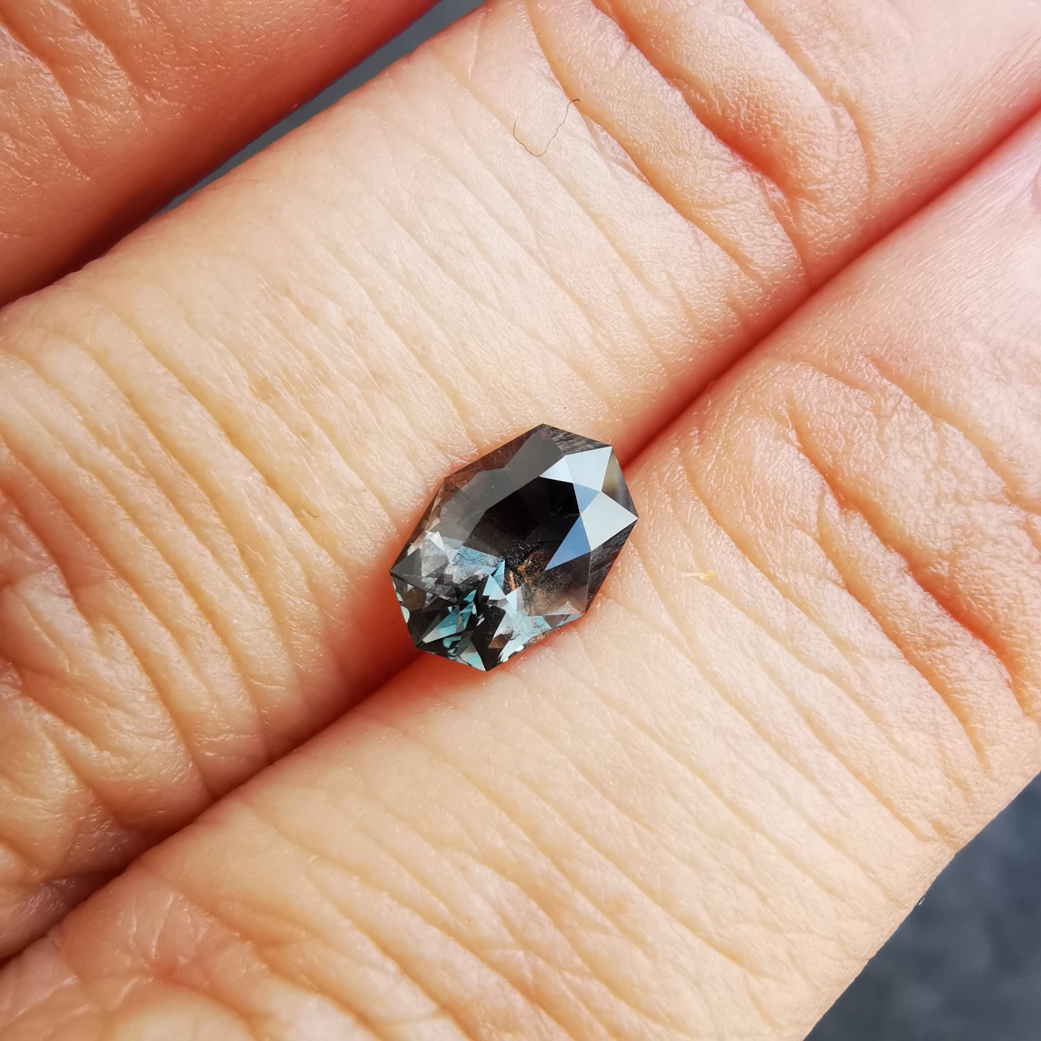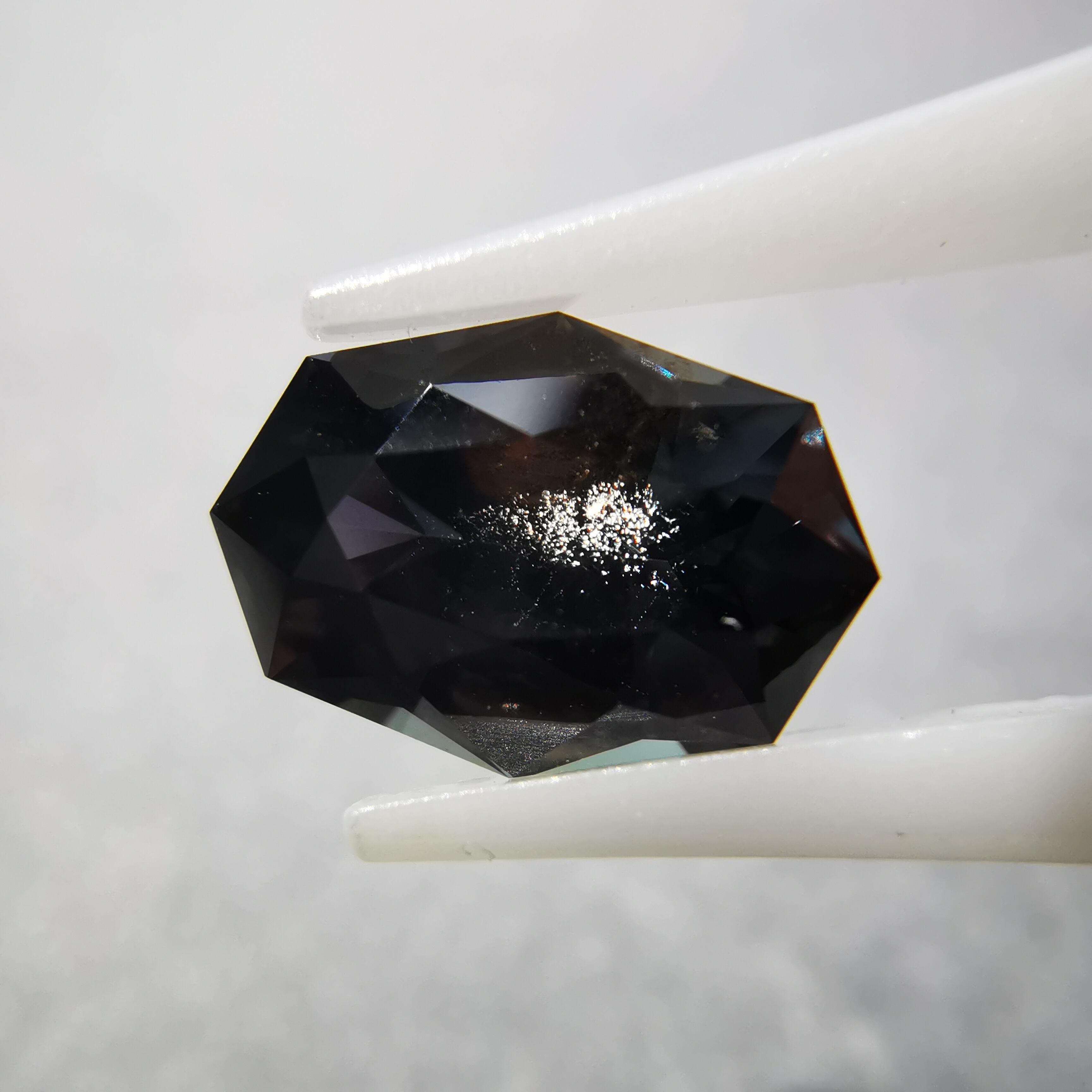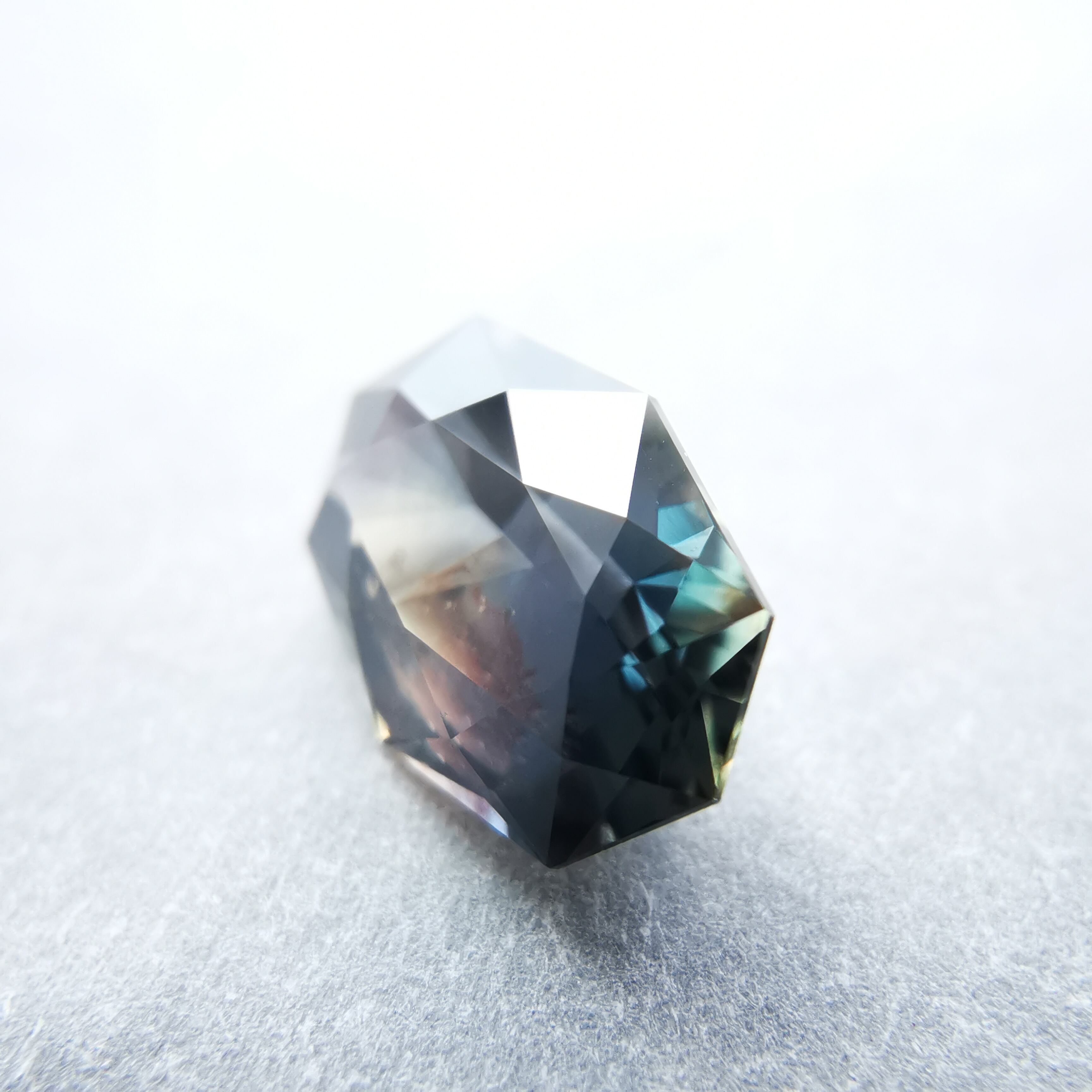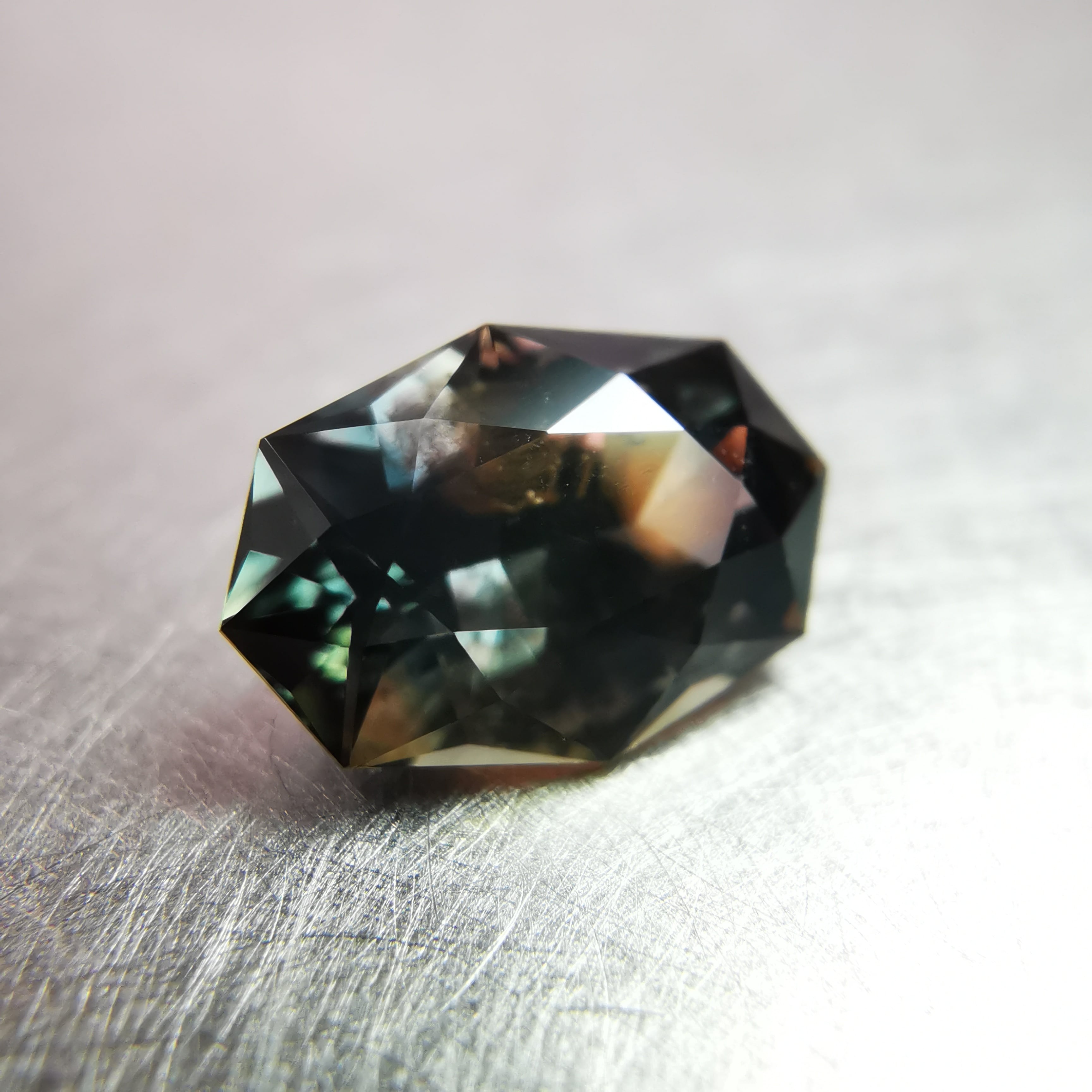 一見、ほぼ黒いサファイアで、わずかに赤みゴールドのシラーがチラリと光ります。