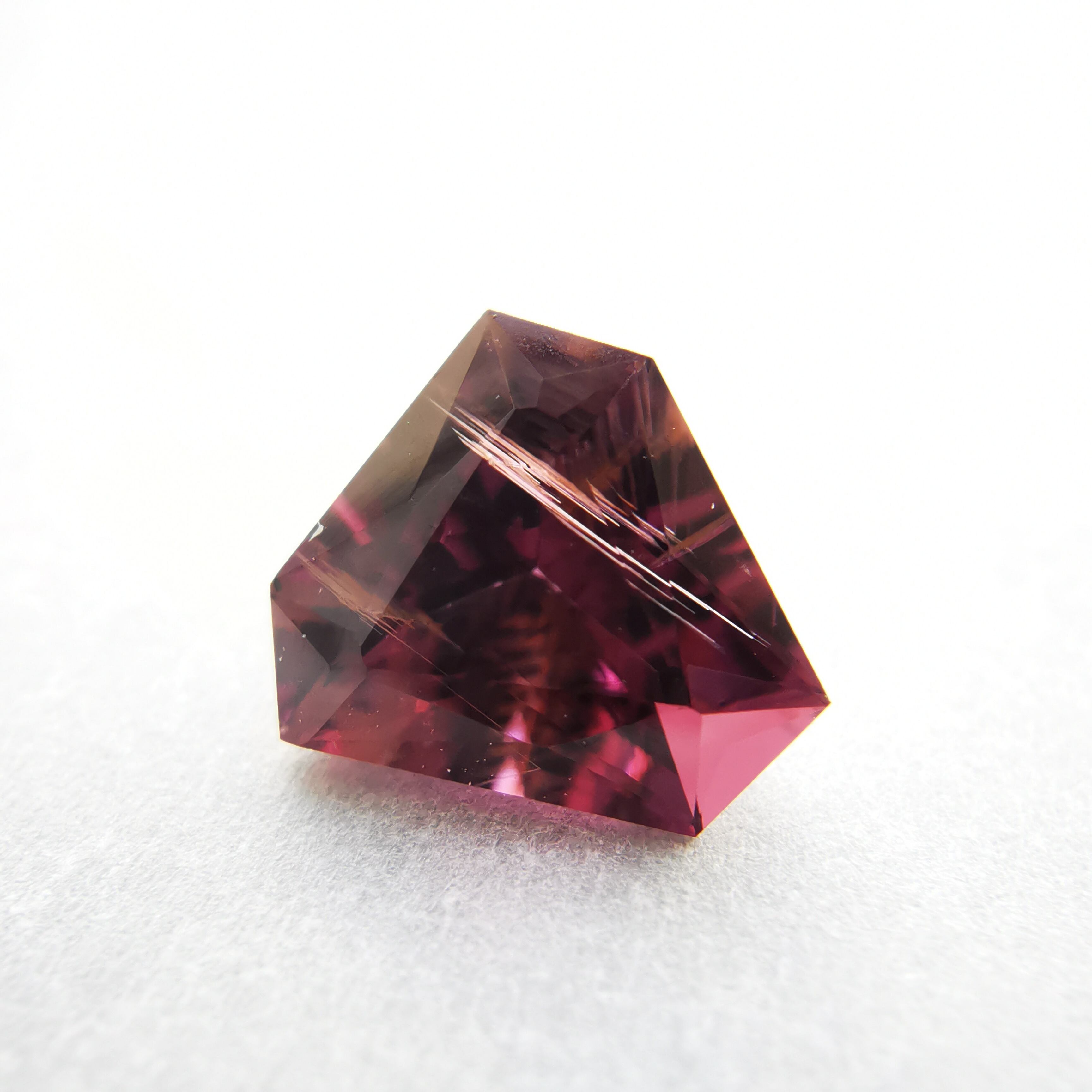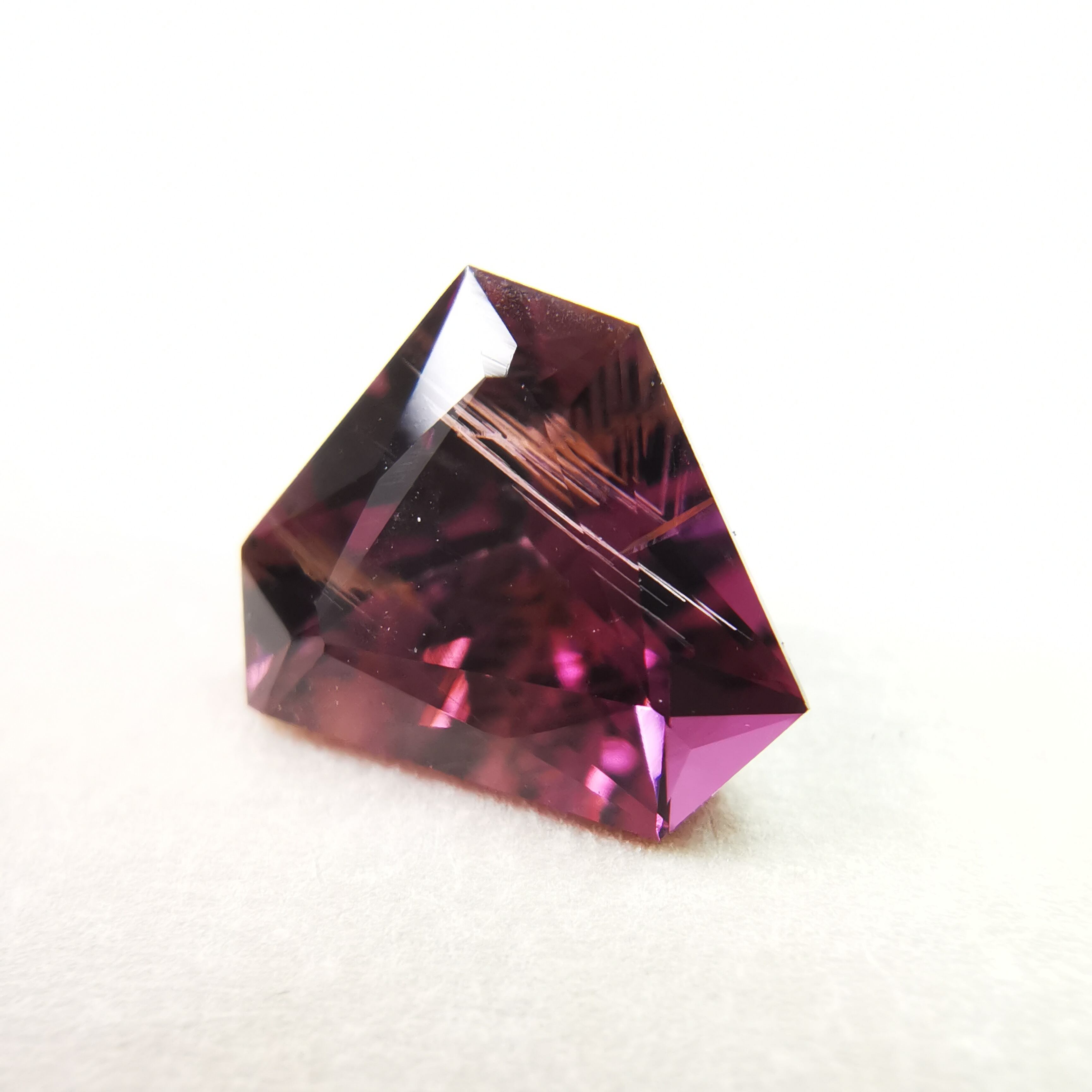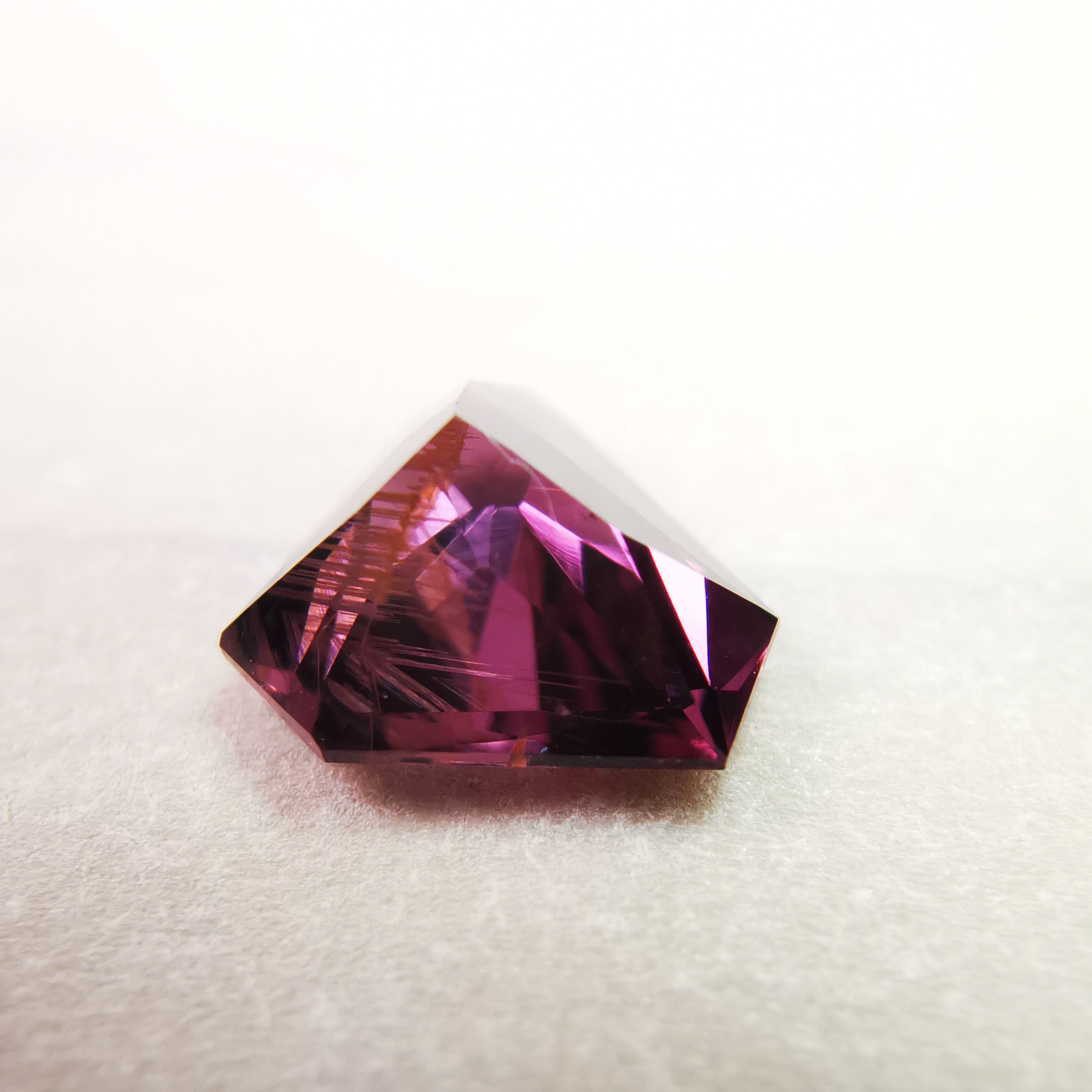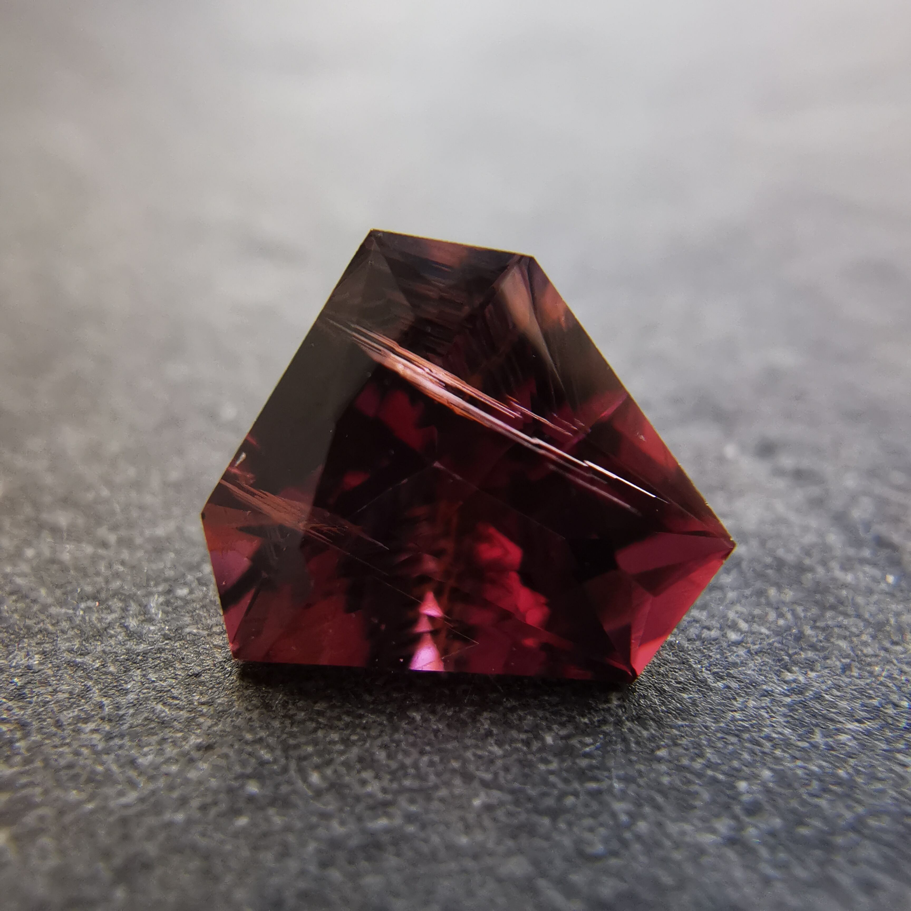 深いワインレッドからチラチラとピンクがきらめくスピネルに、特徴的なインクルージョンが入っています。