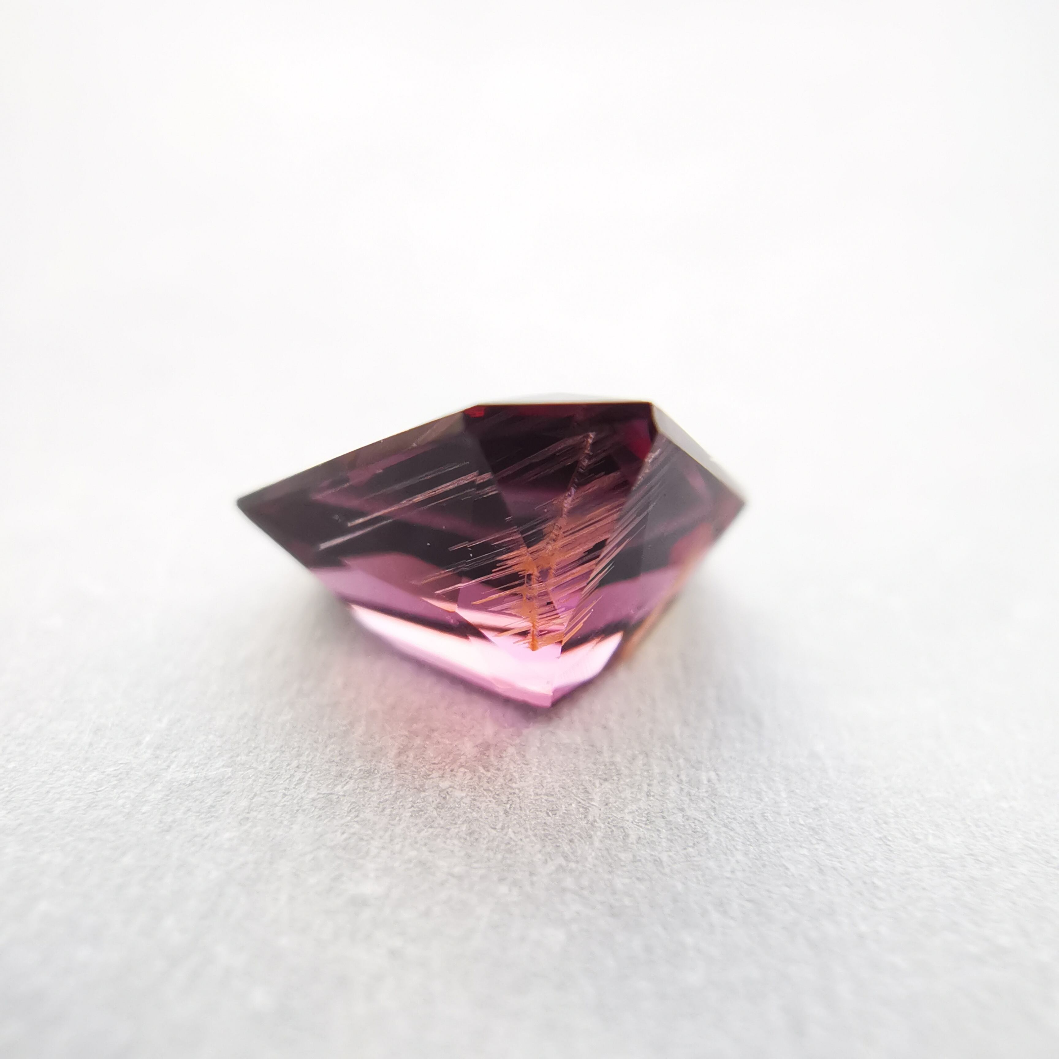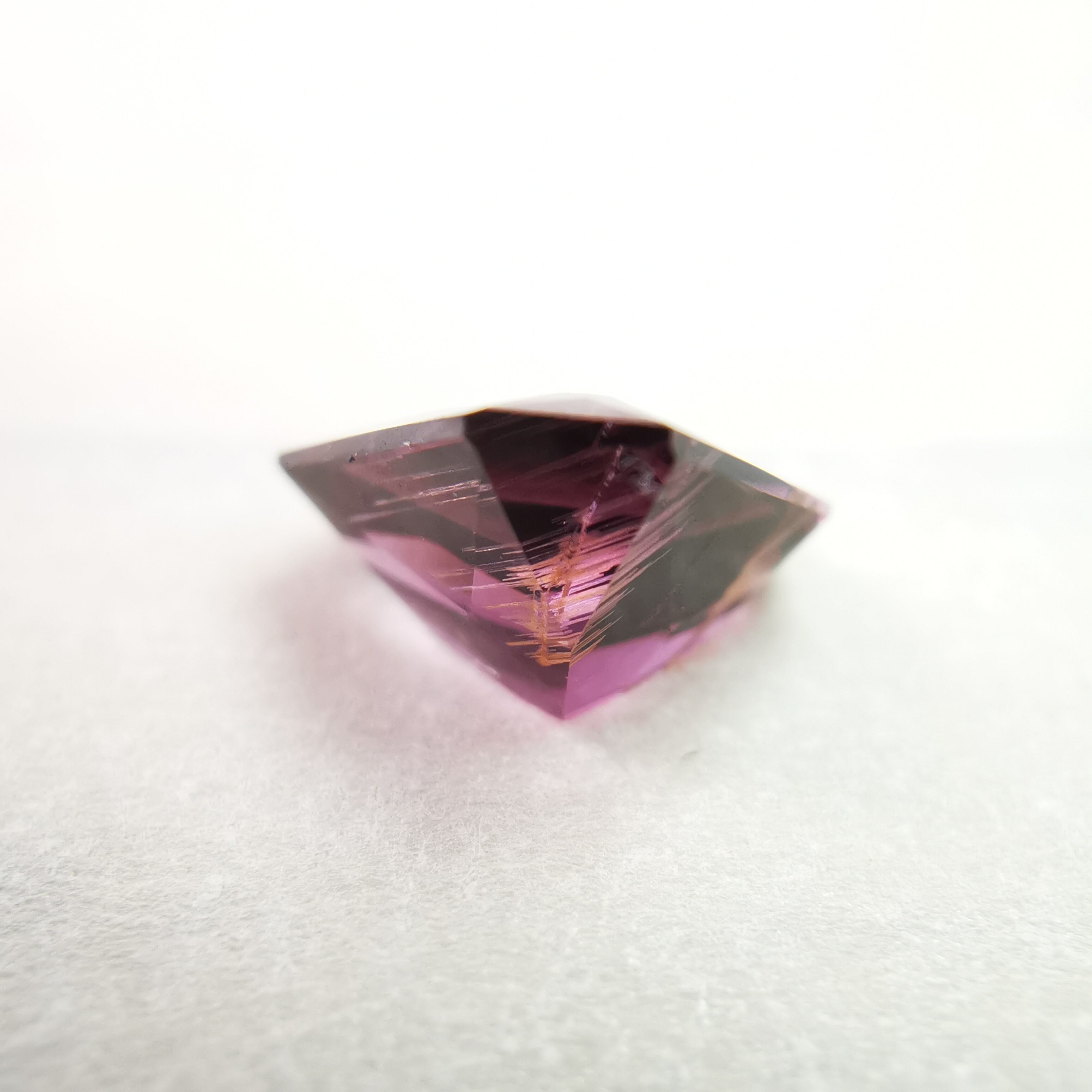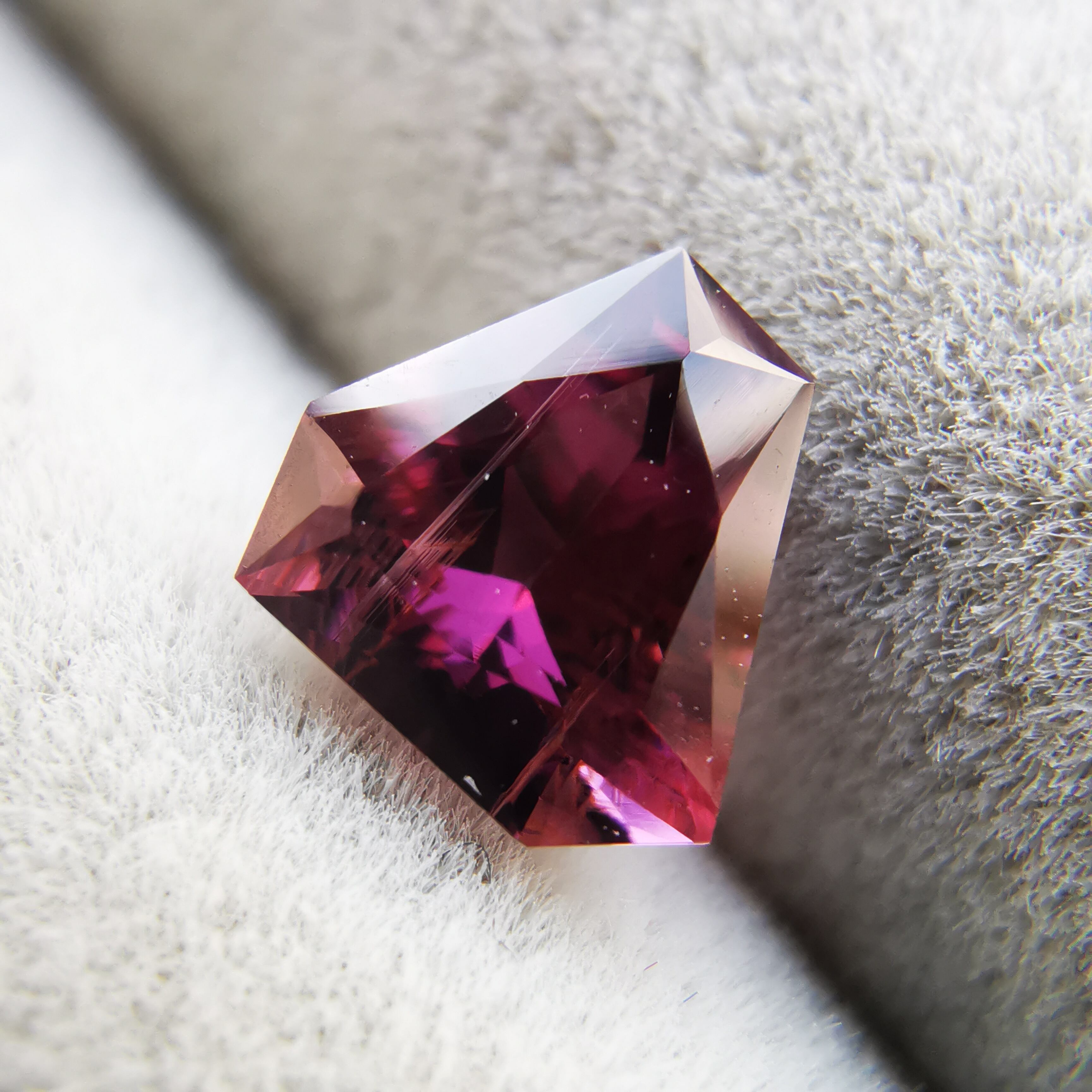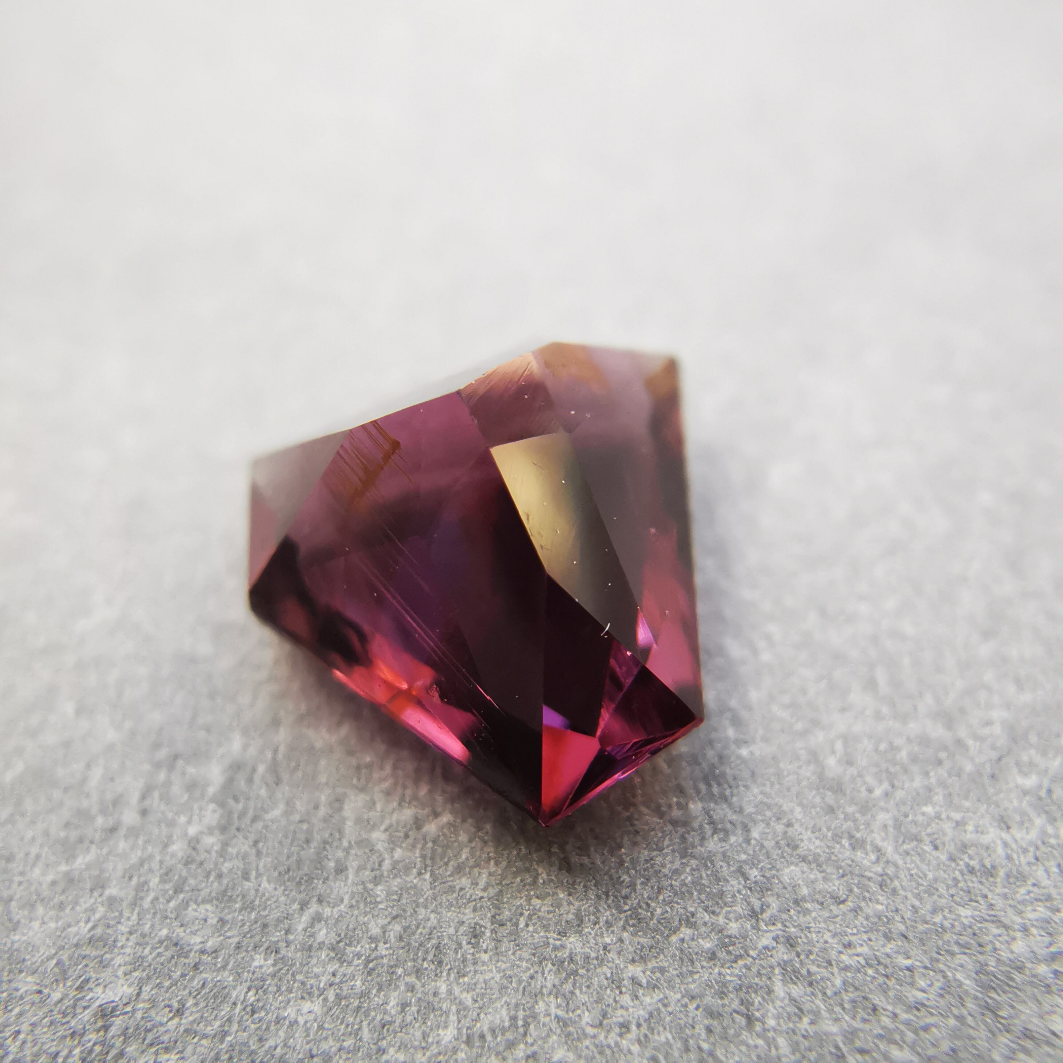 深いワインレッドからチラチラとピンクがきらめくスピネルに、特徴的なインクルージョンが入っています。