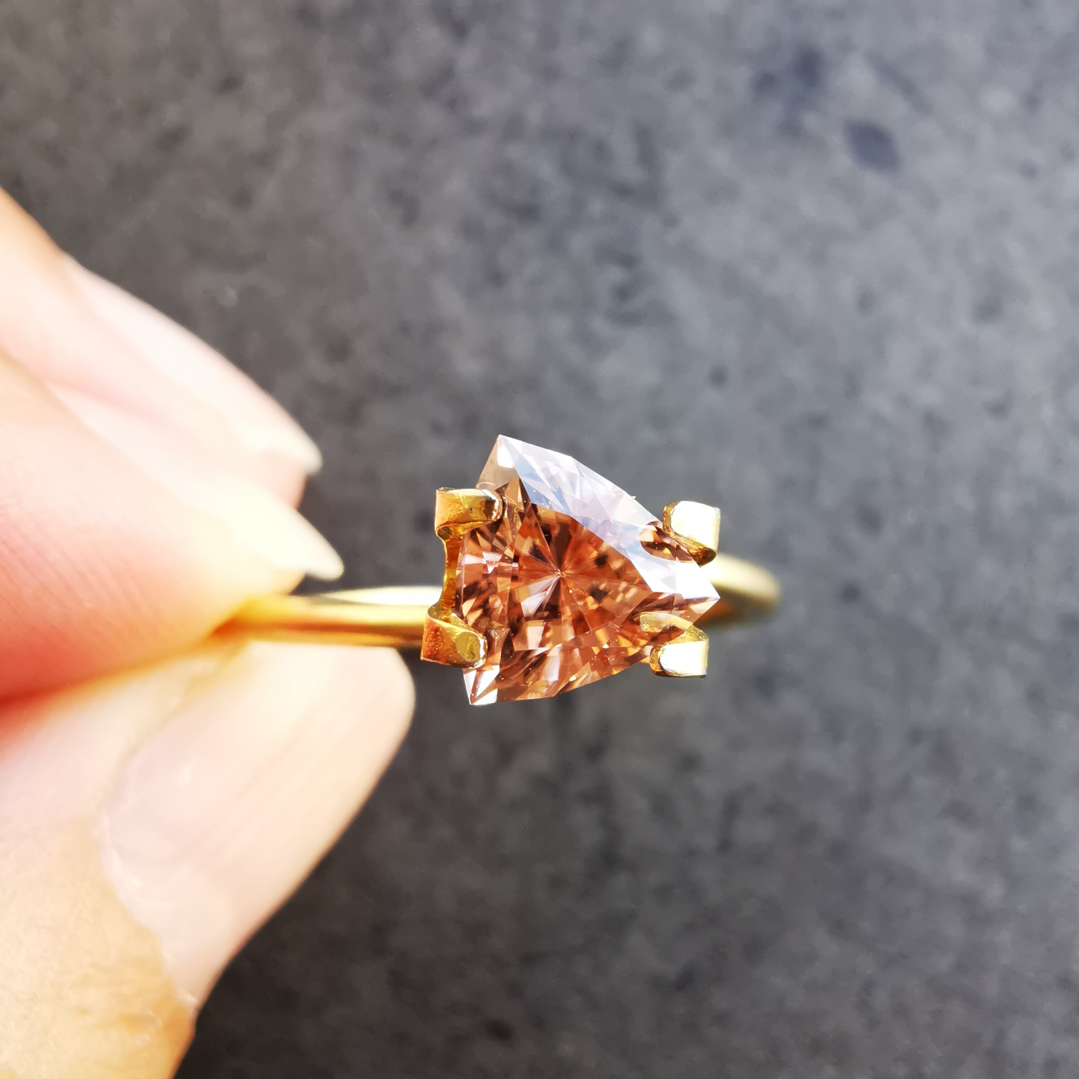 シルキーさのないクリーンなジルコンで、とんでもなく明るく天真爛漫にきらめくので、見るだけで元気が出るような一石です。