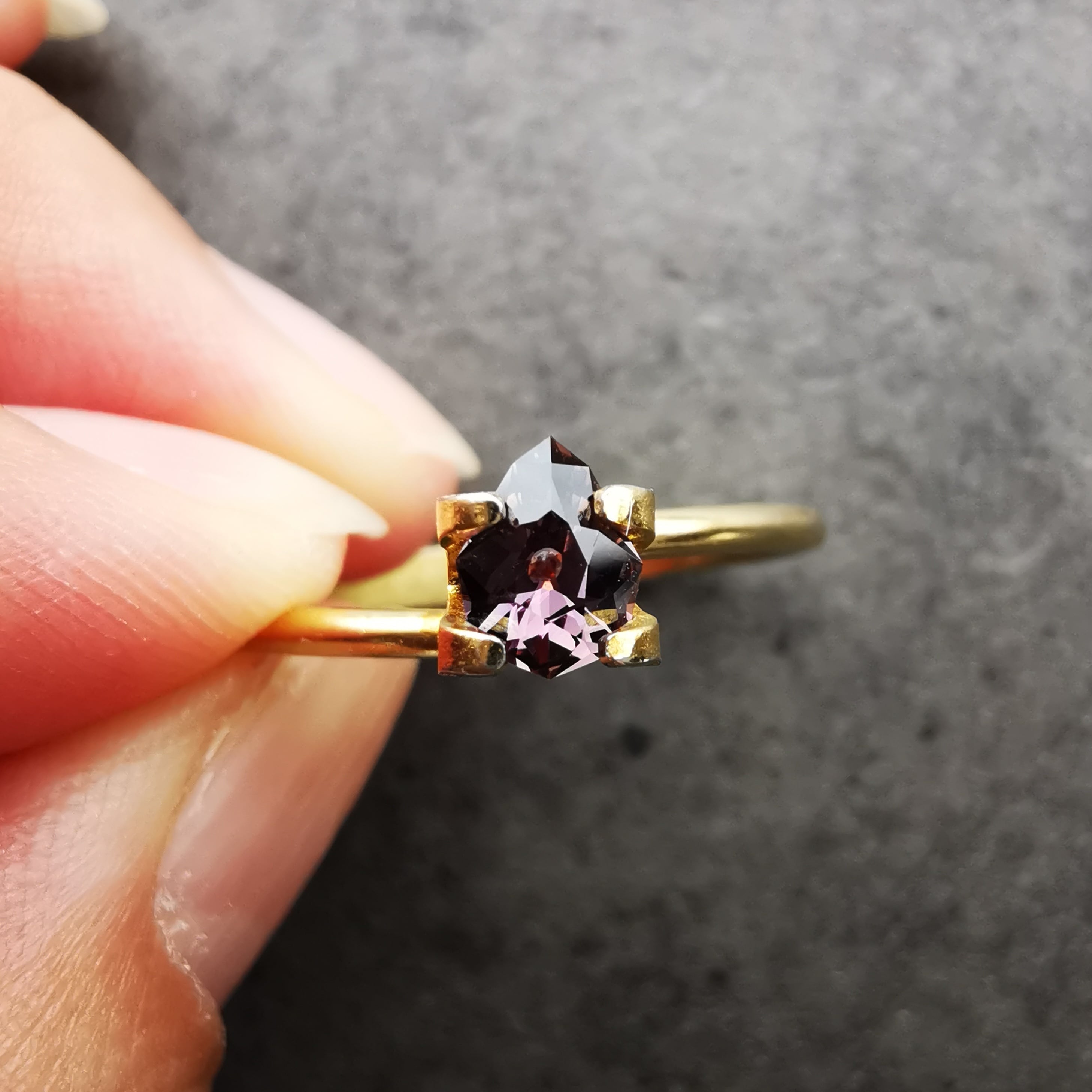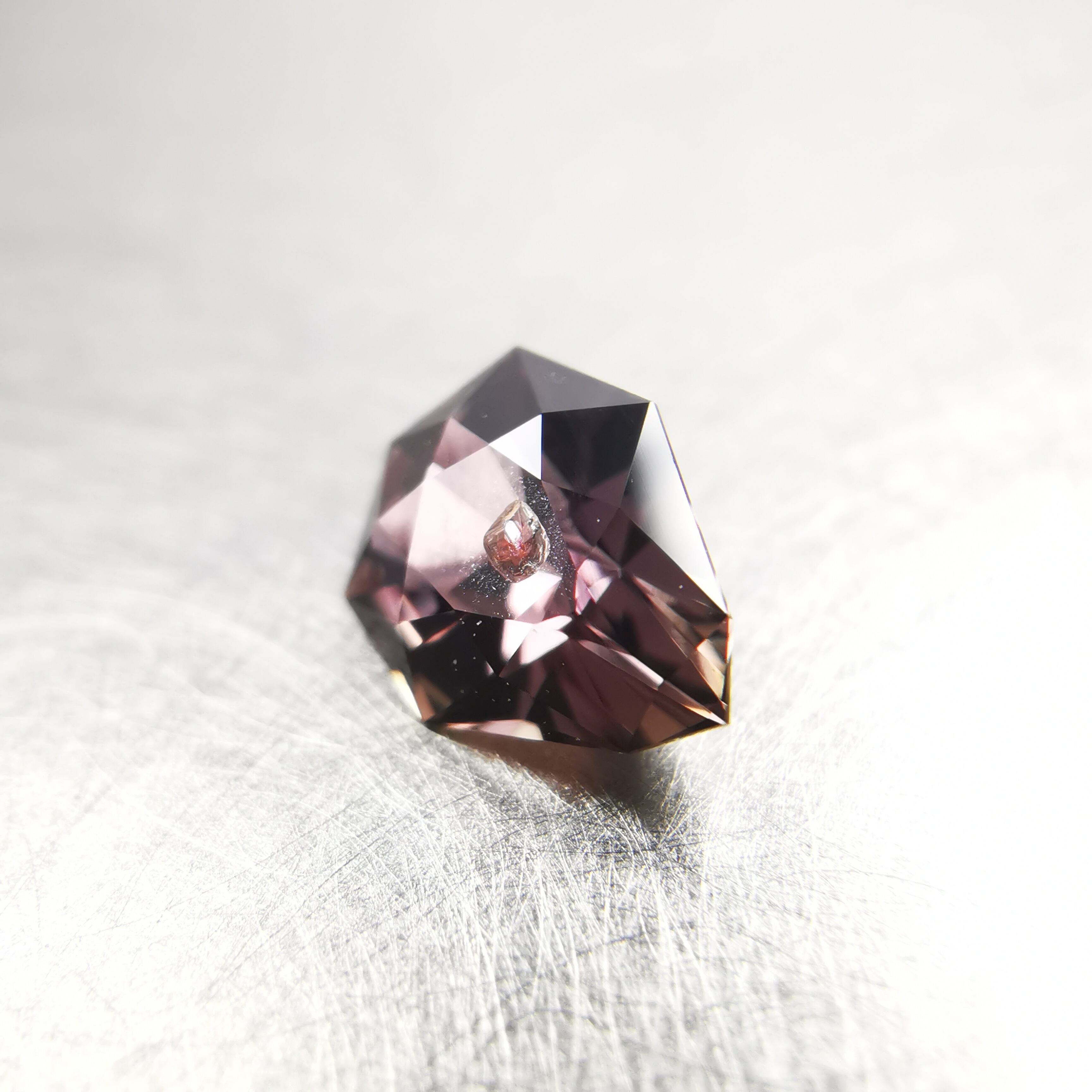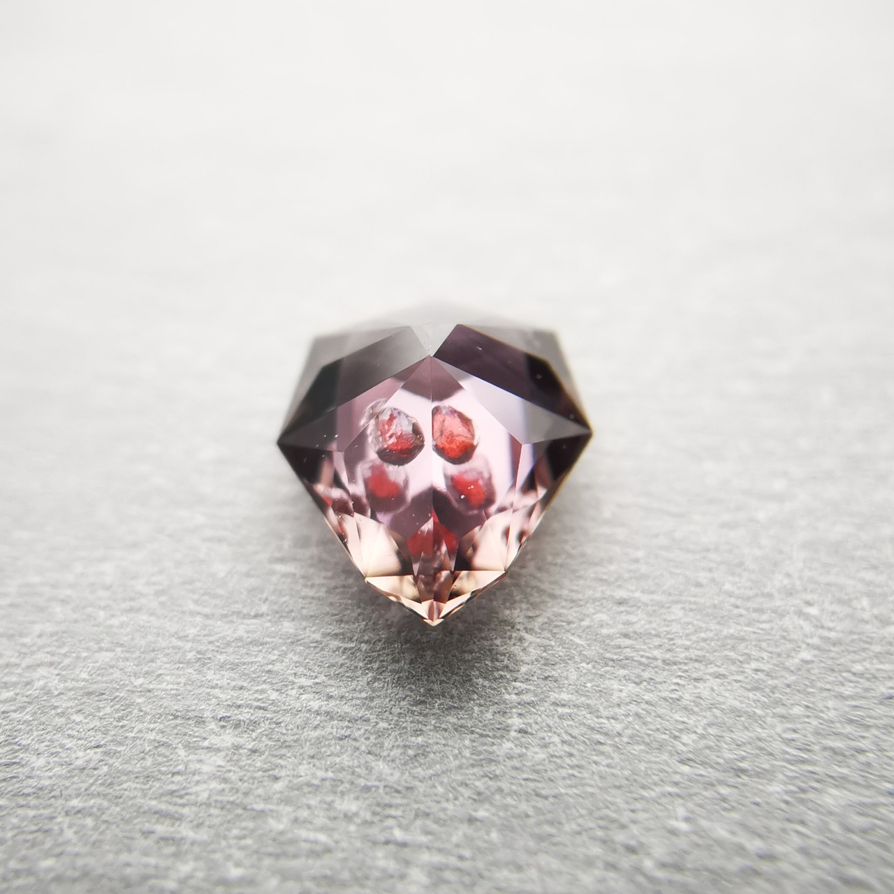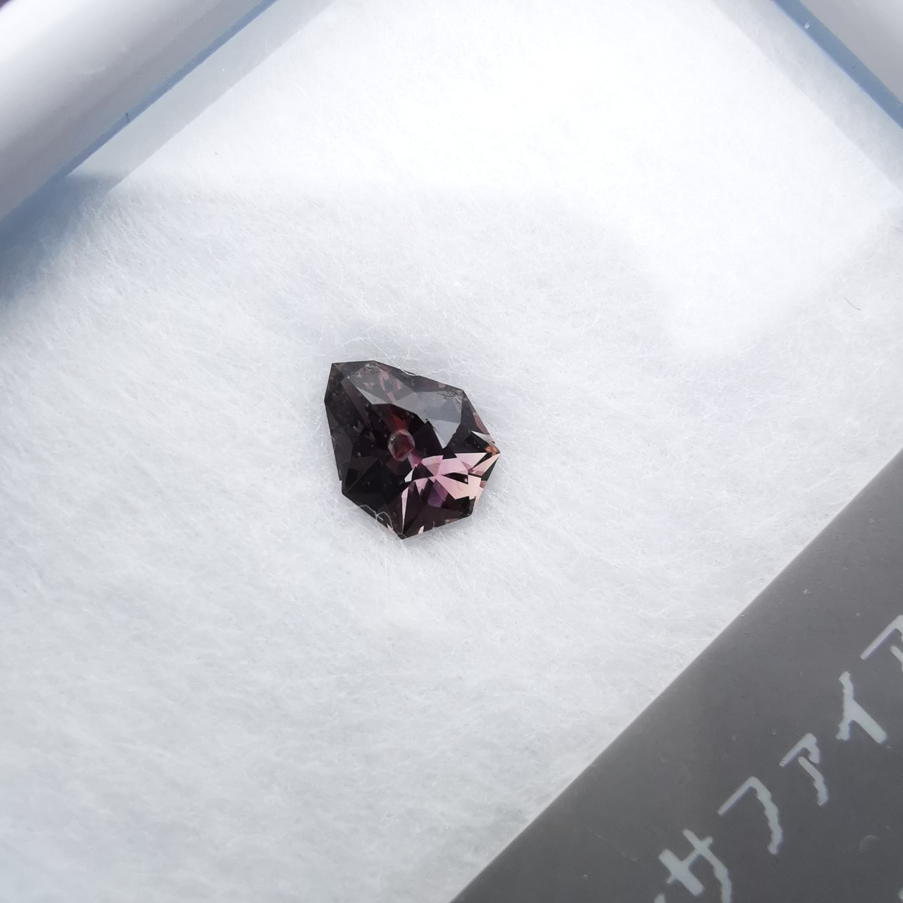 つい、目がガーネットに吸い寄せられますが、ダークな中から、淡いピンクとわずかにイエローがきらめくサファイアです。