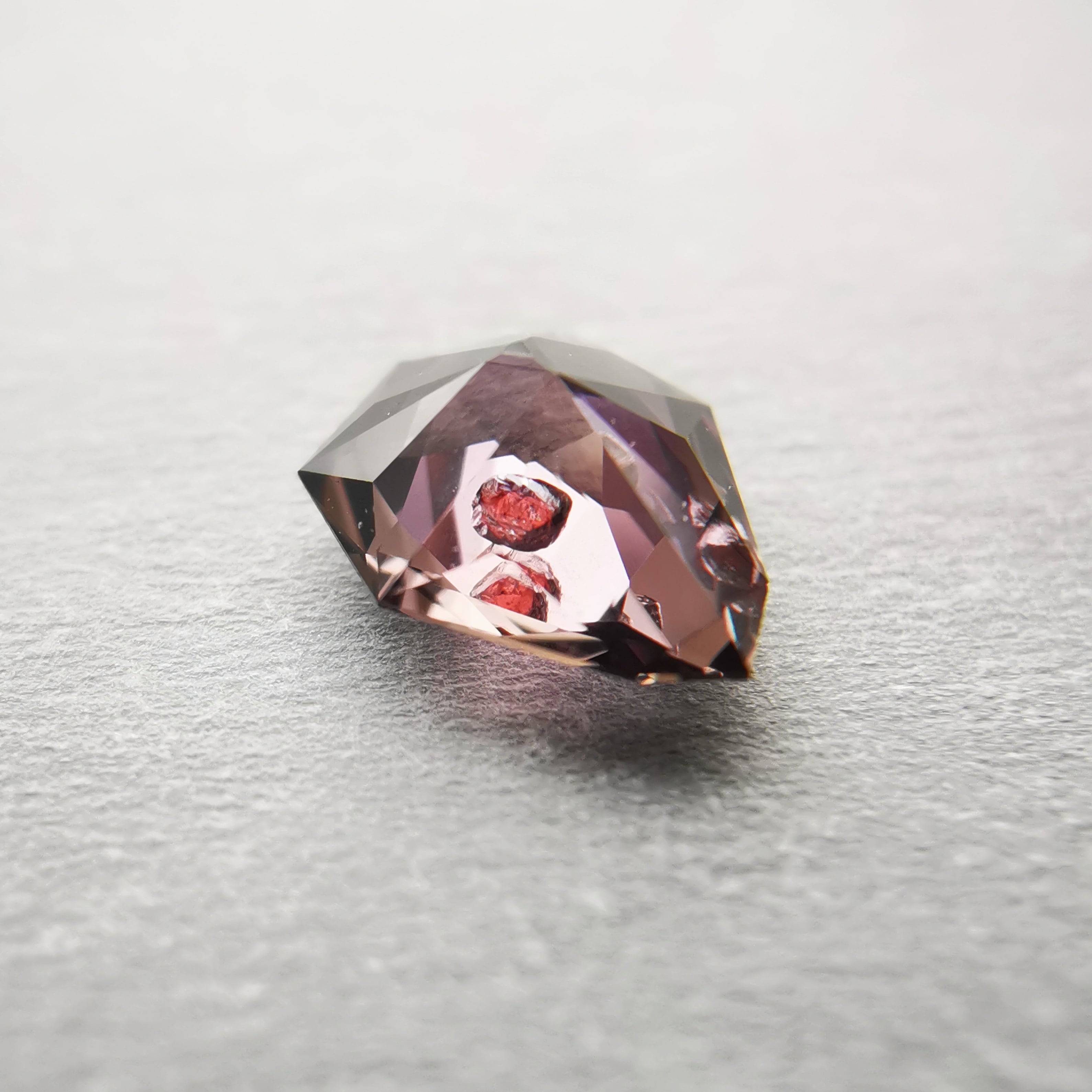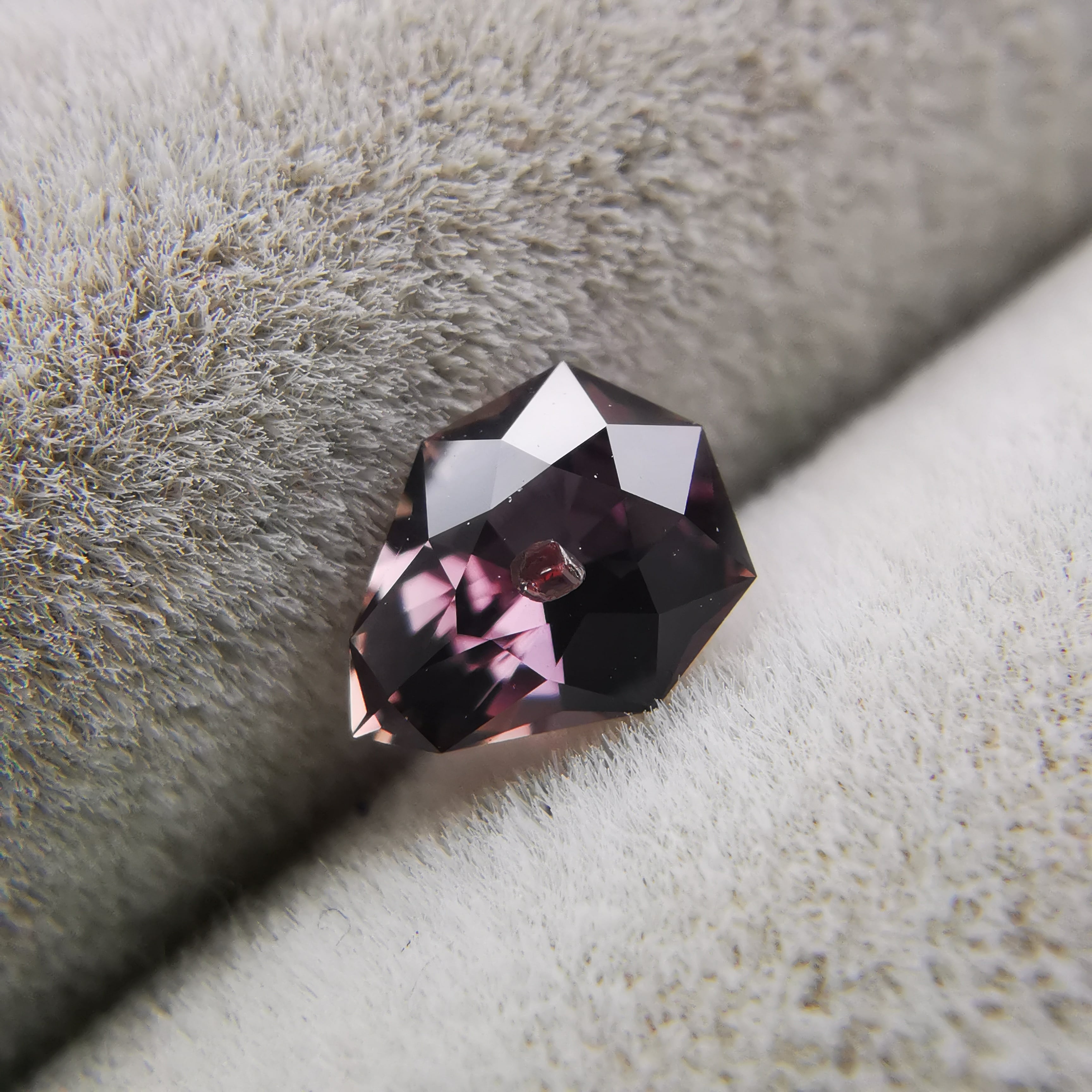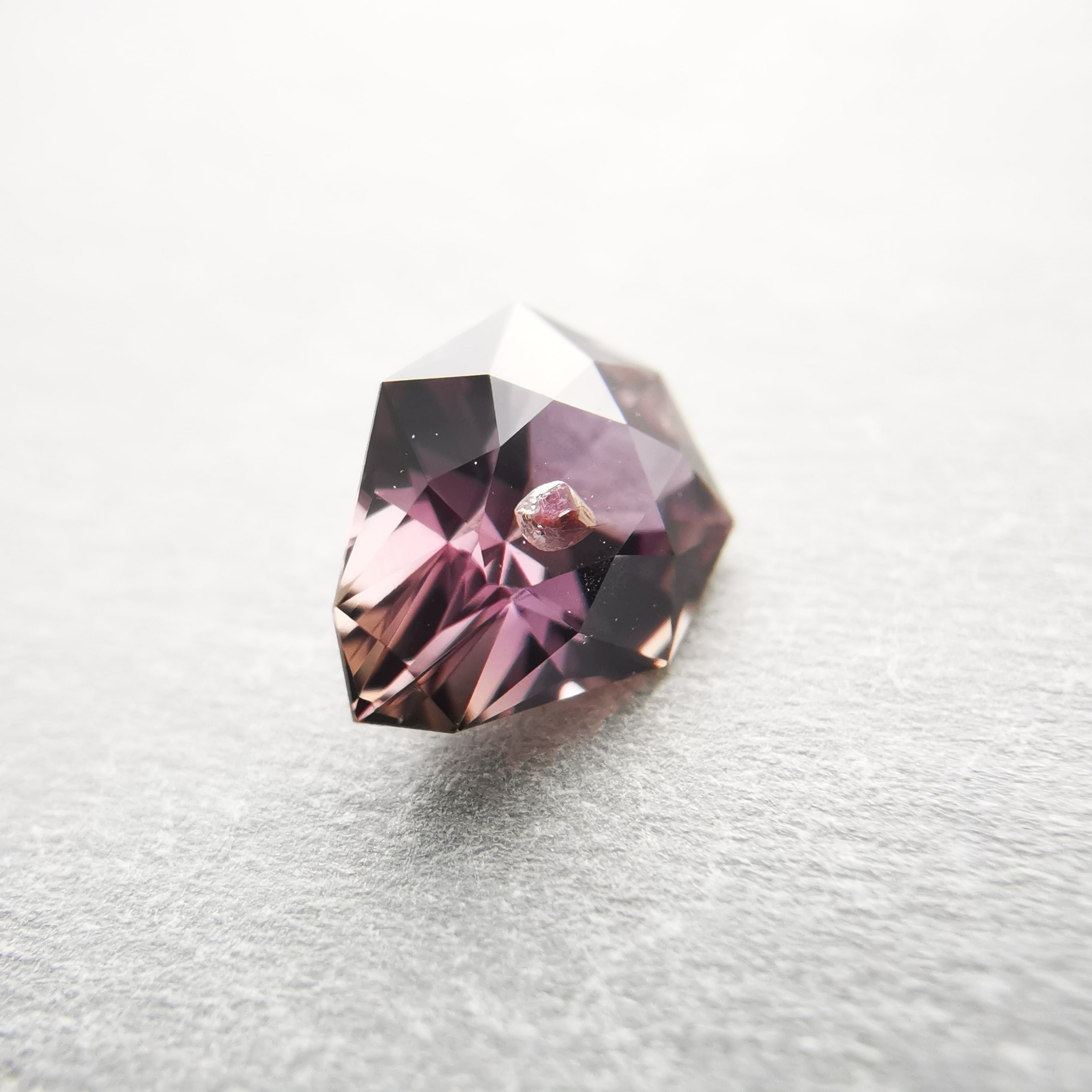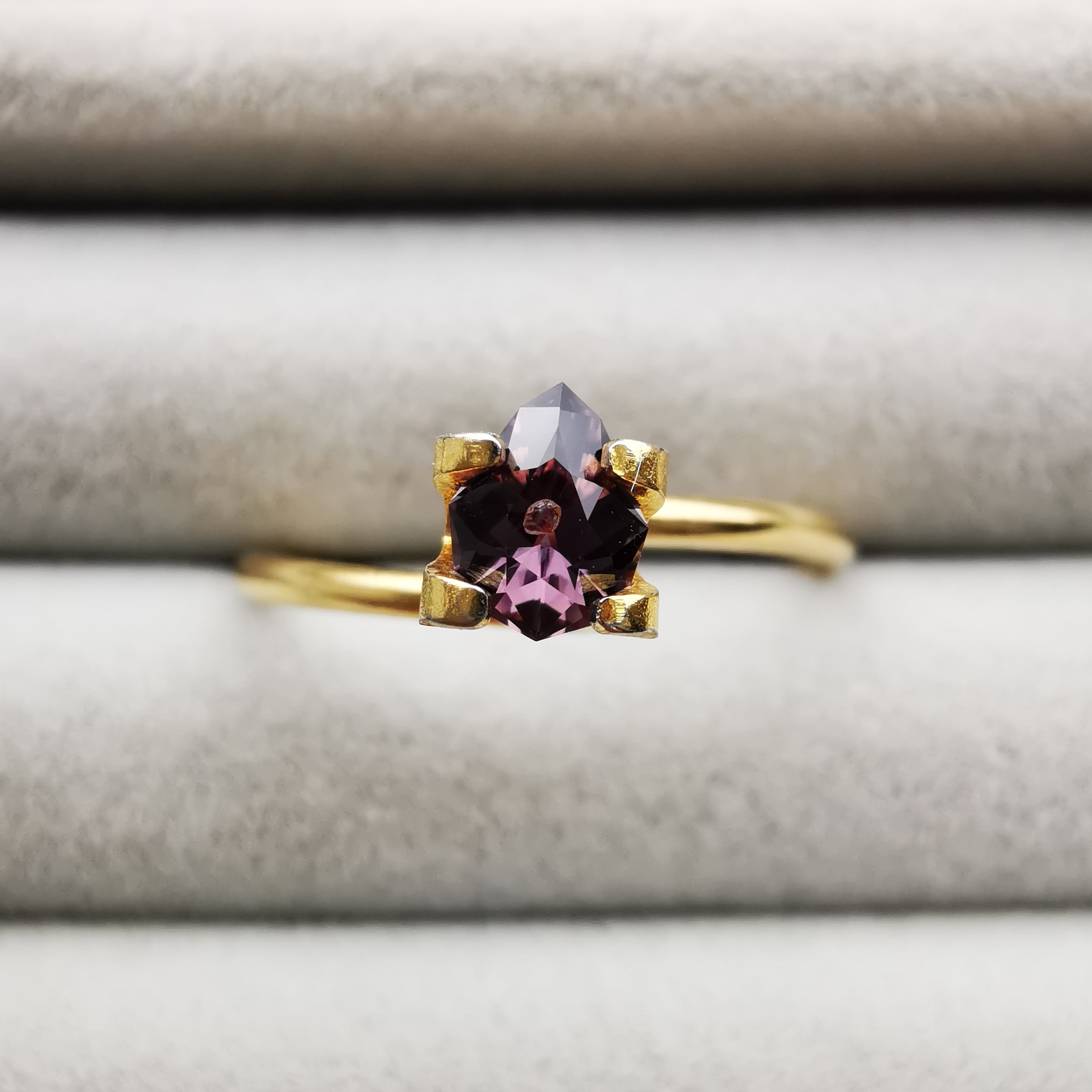 つい、目がガーネットに吸い寄せられますが、ダークな中から、淡いピンクとわずかにイエローがきらめくサファイアです。