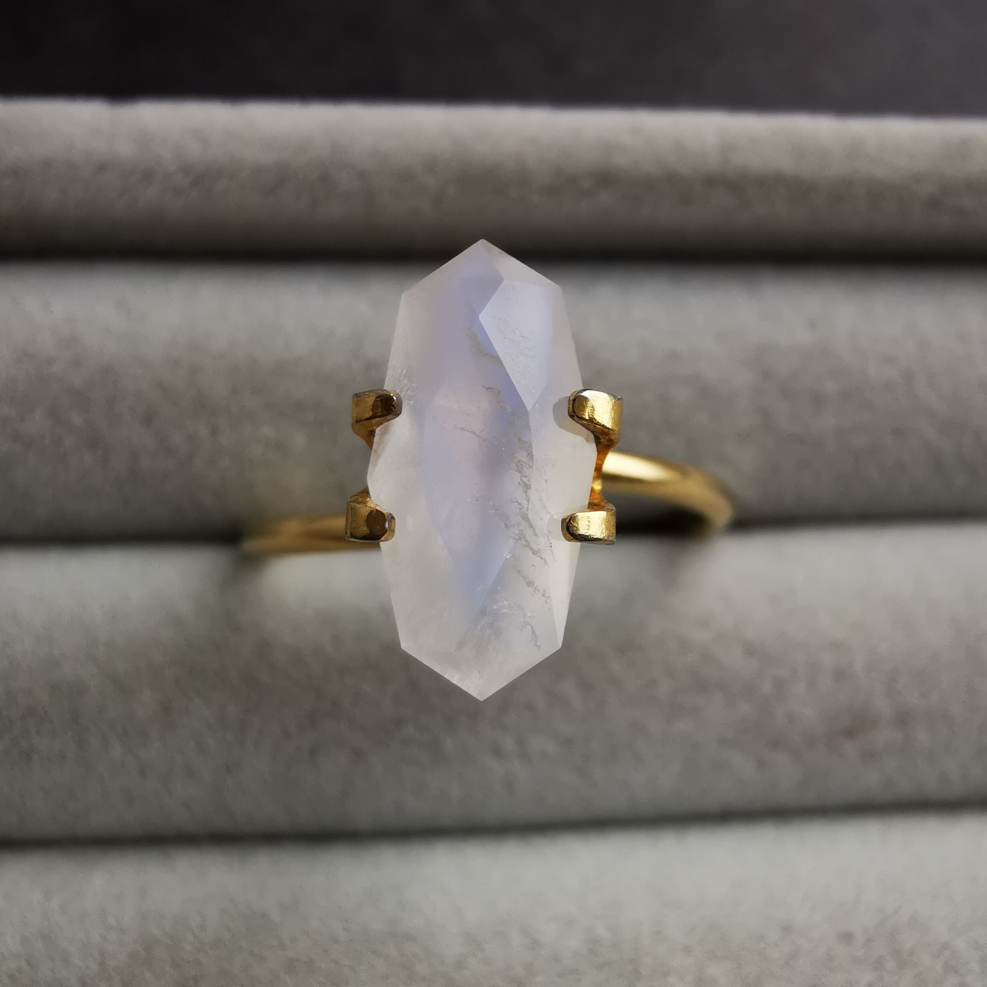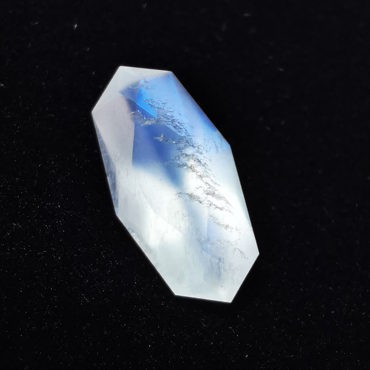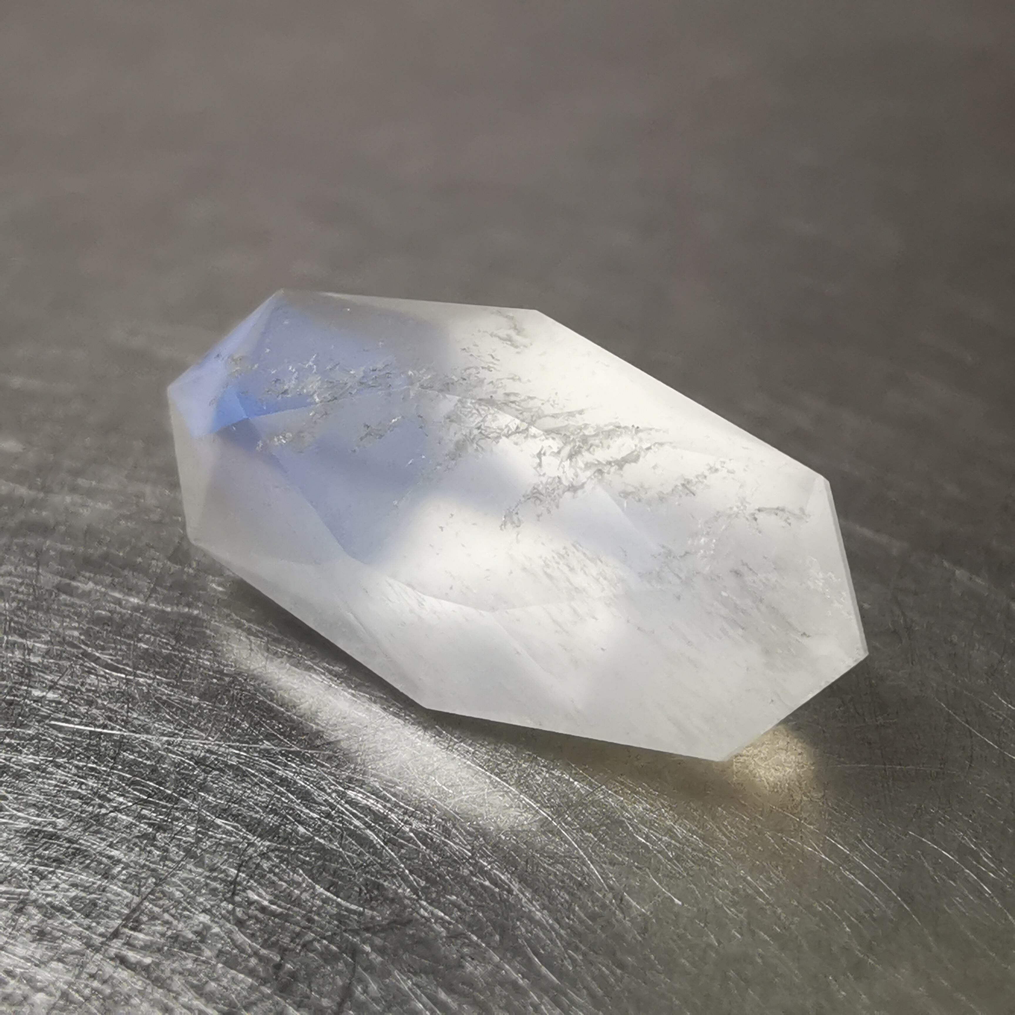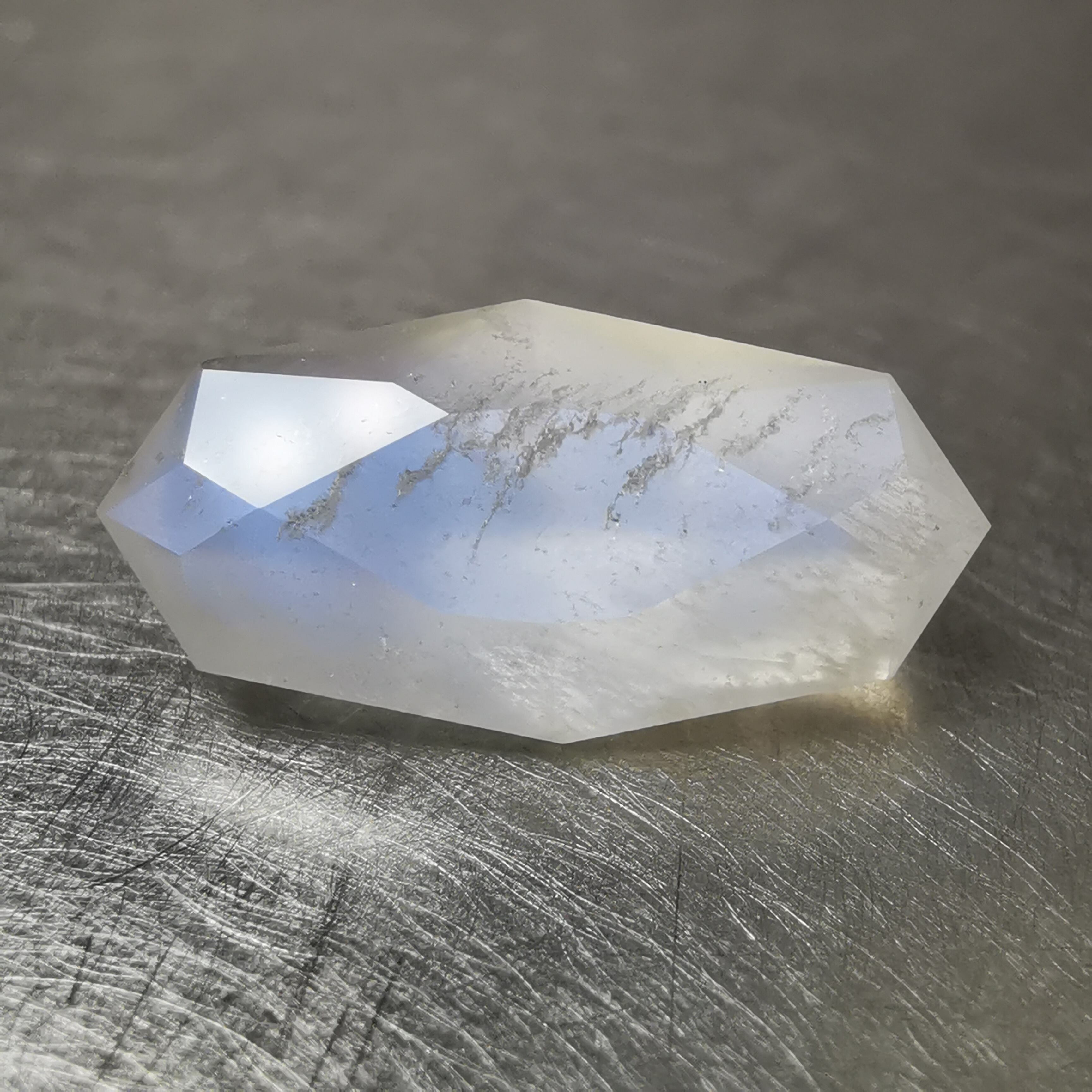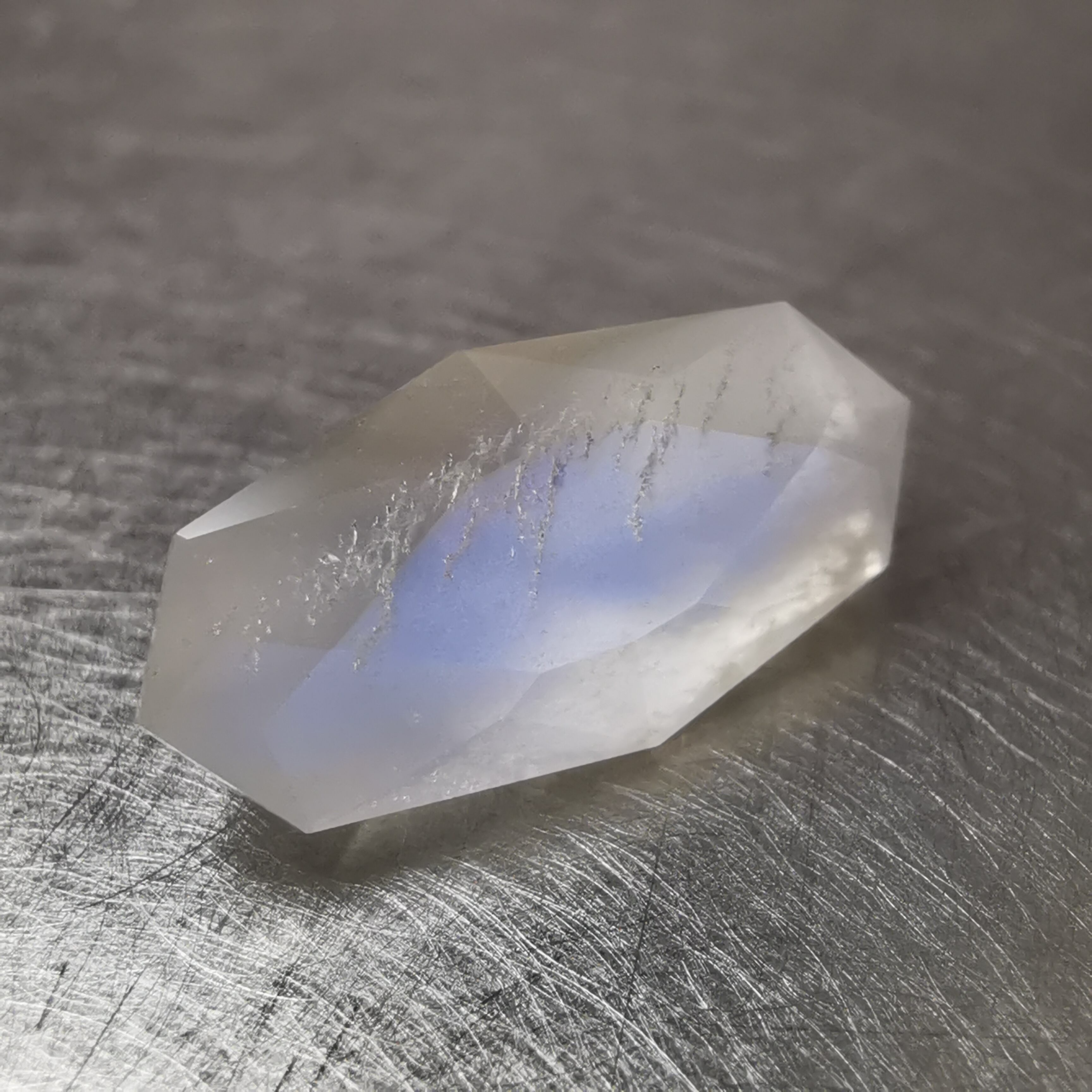 半透明のムーンストーン、吹き荒れる雪のようなインクルージョンが入っています。