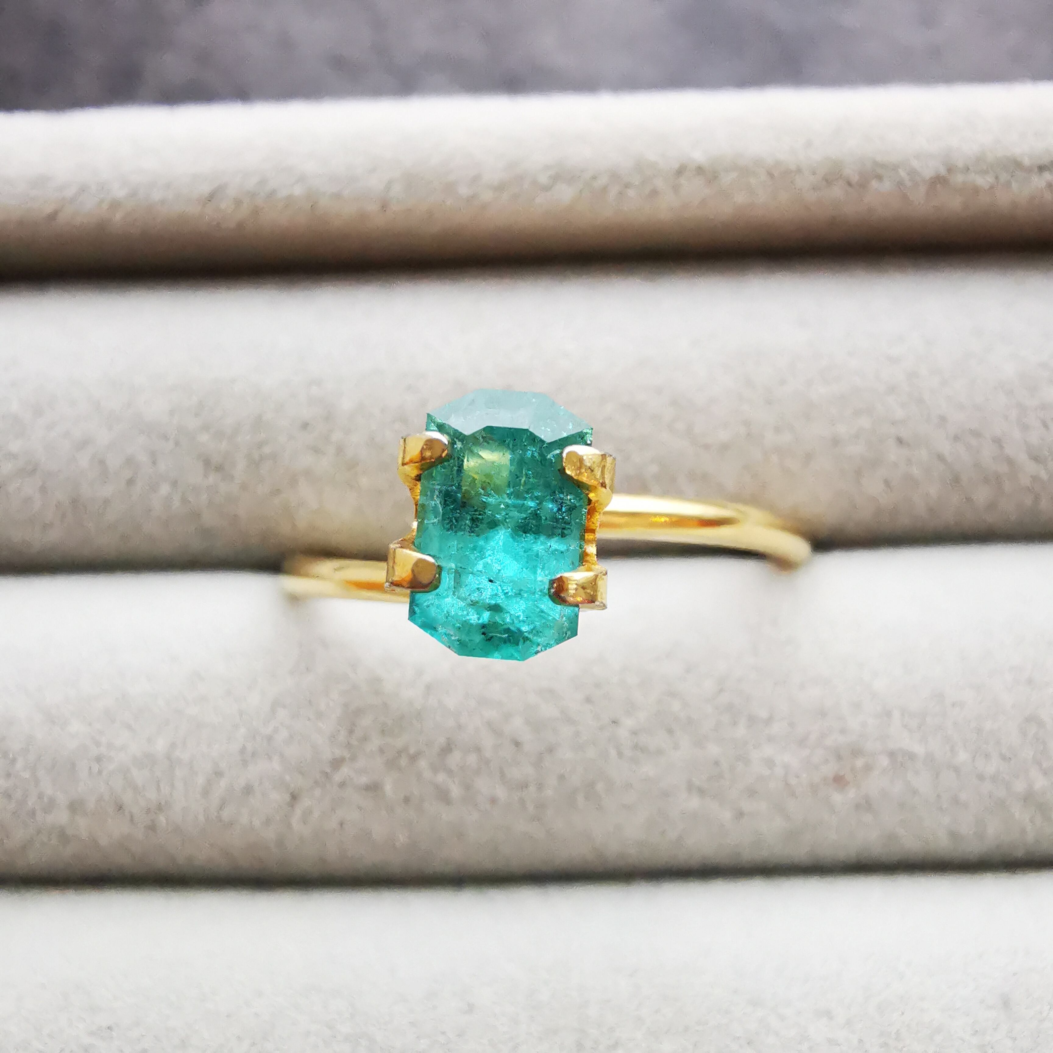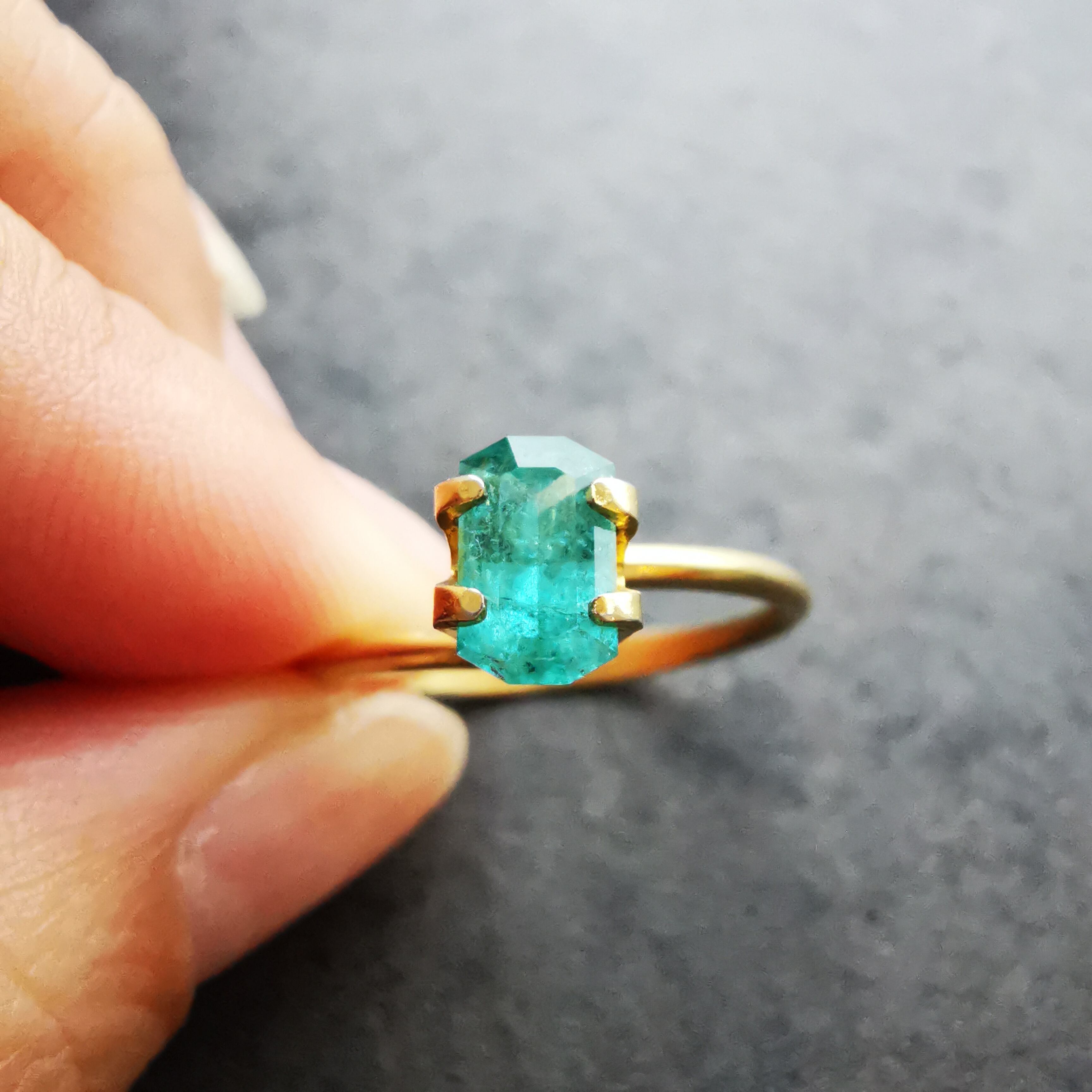 すっきりとしたきらめきと対極にある、ほわほわと内側から発光するような独特の明るさは、エメラルドっぽさがあります。