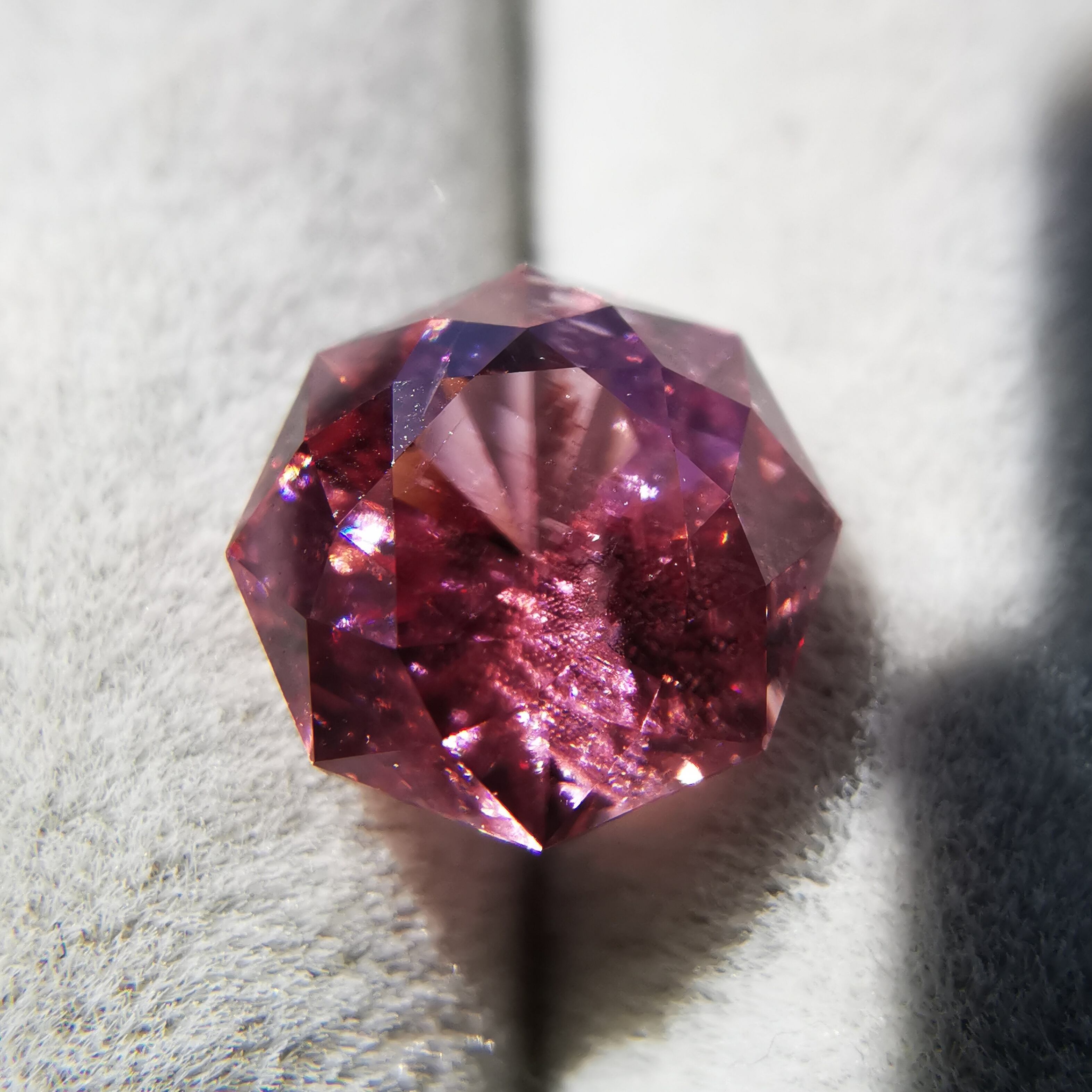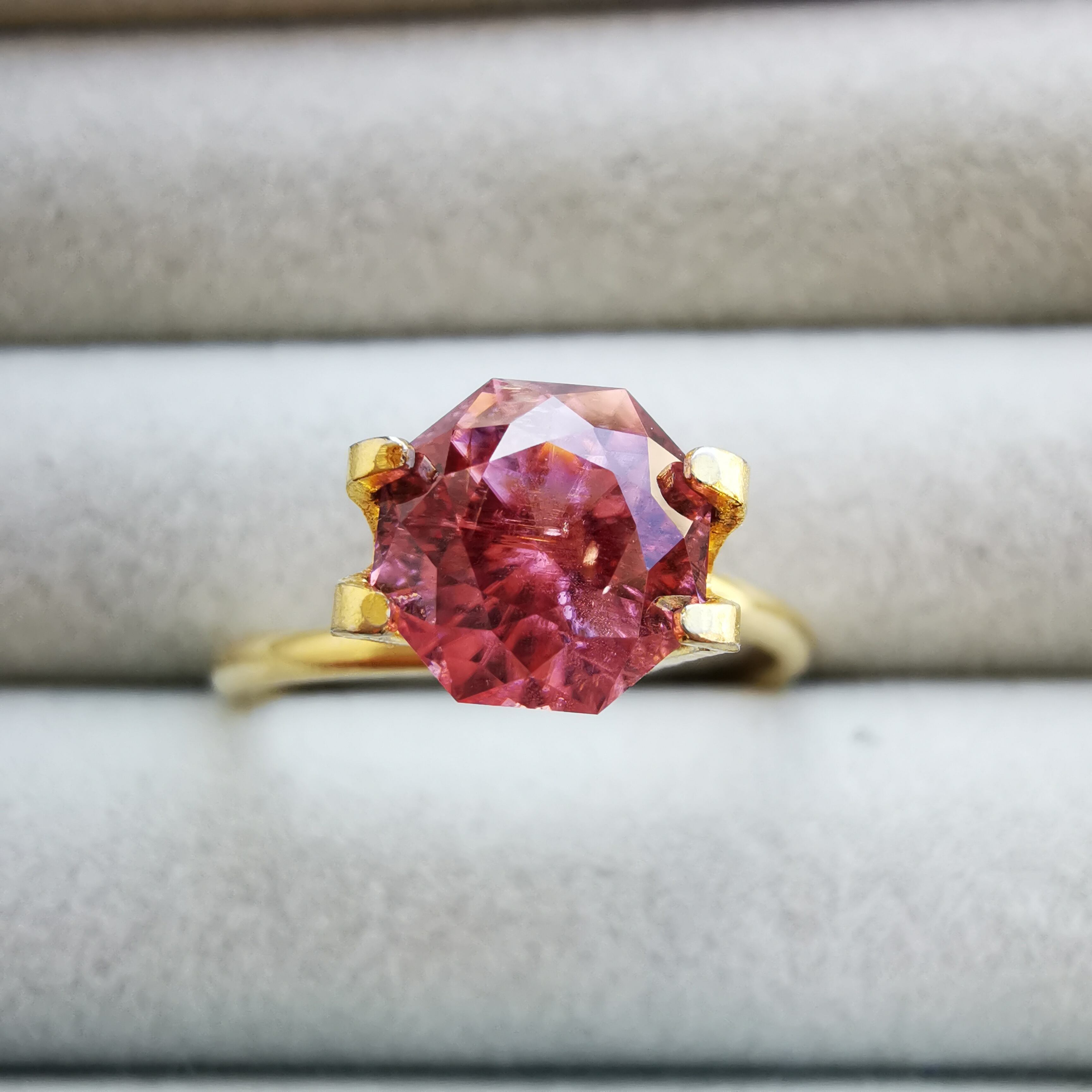 紫みとオレンジみのあるシックな赤、今様色のジルコンです。