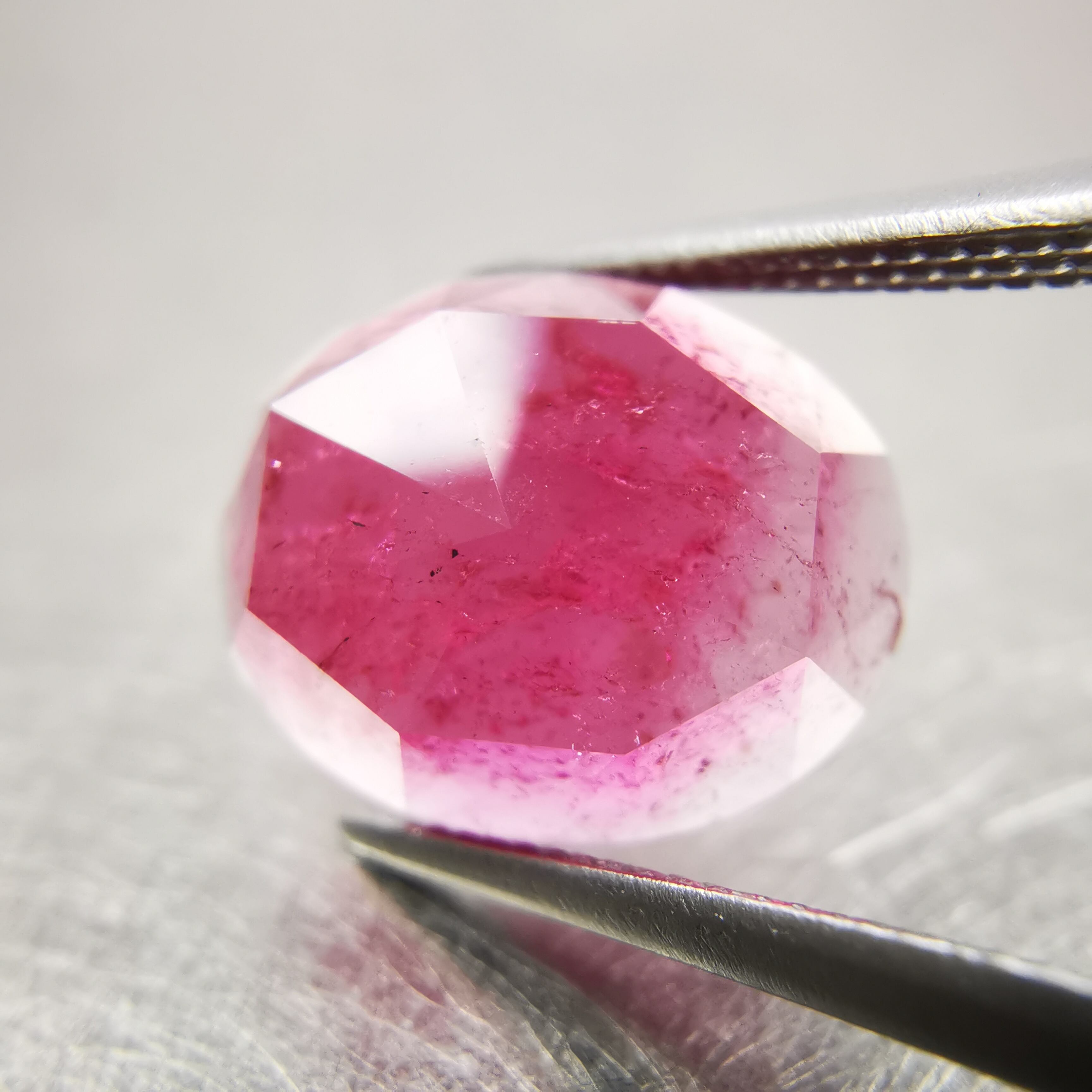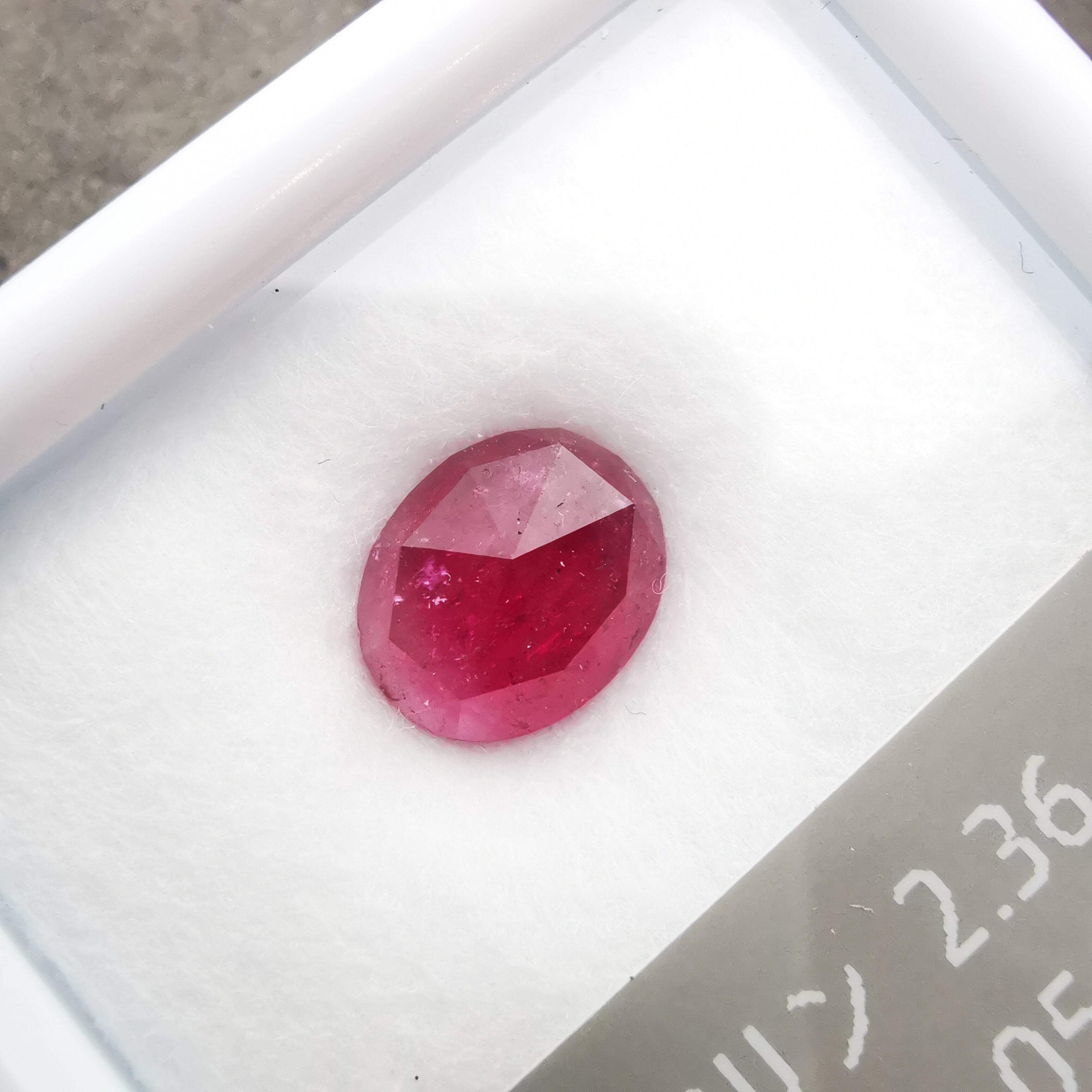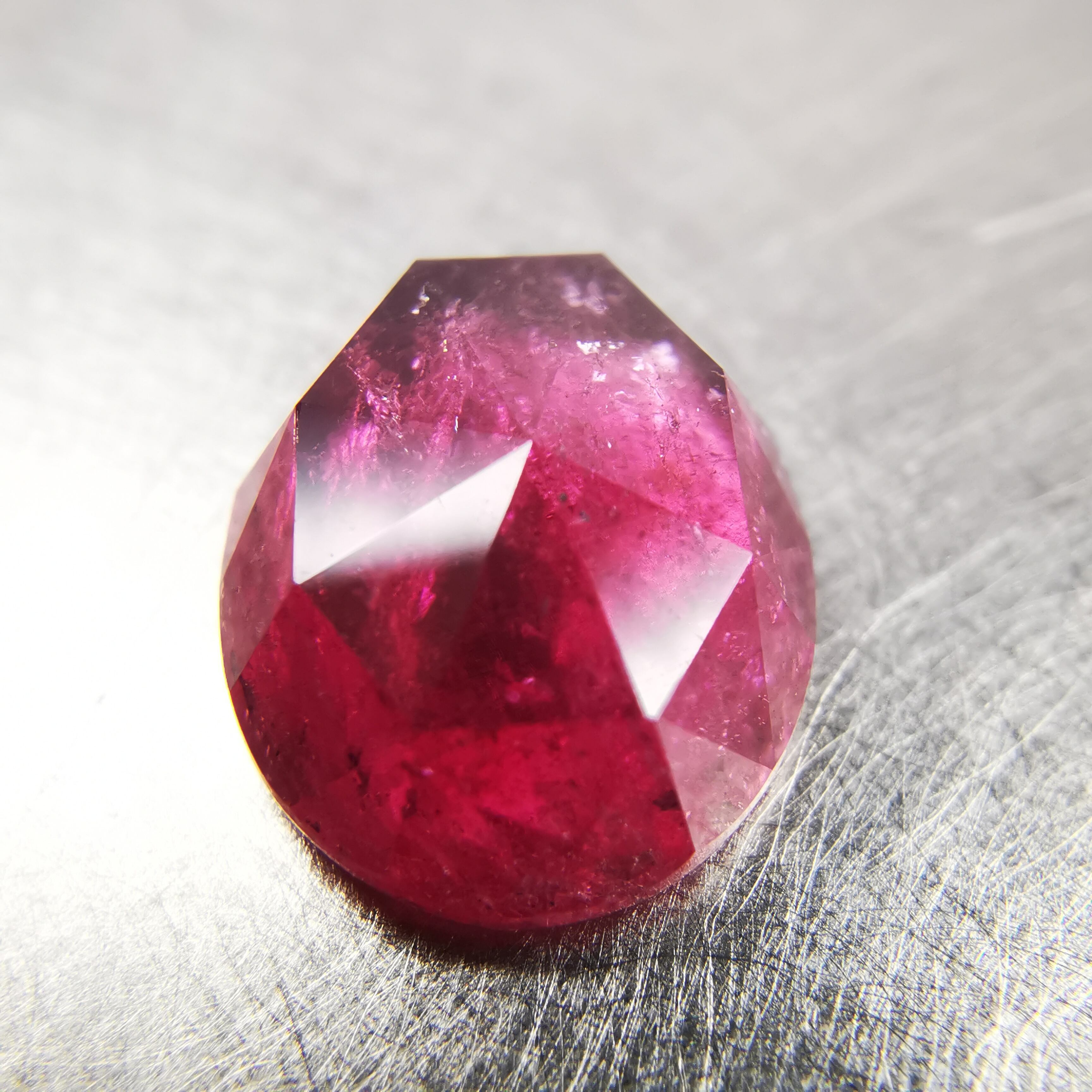 ローズレッドで、端の方がややクリアに近づいているバイカラーのトルマリンです。