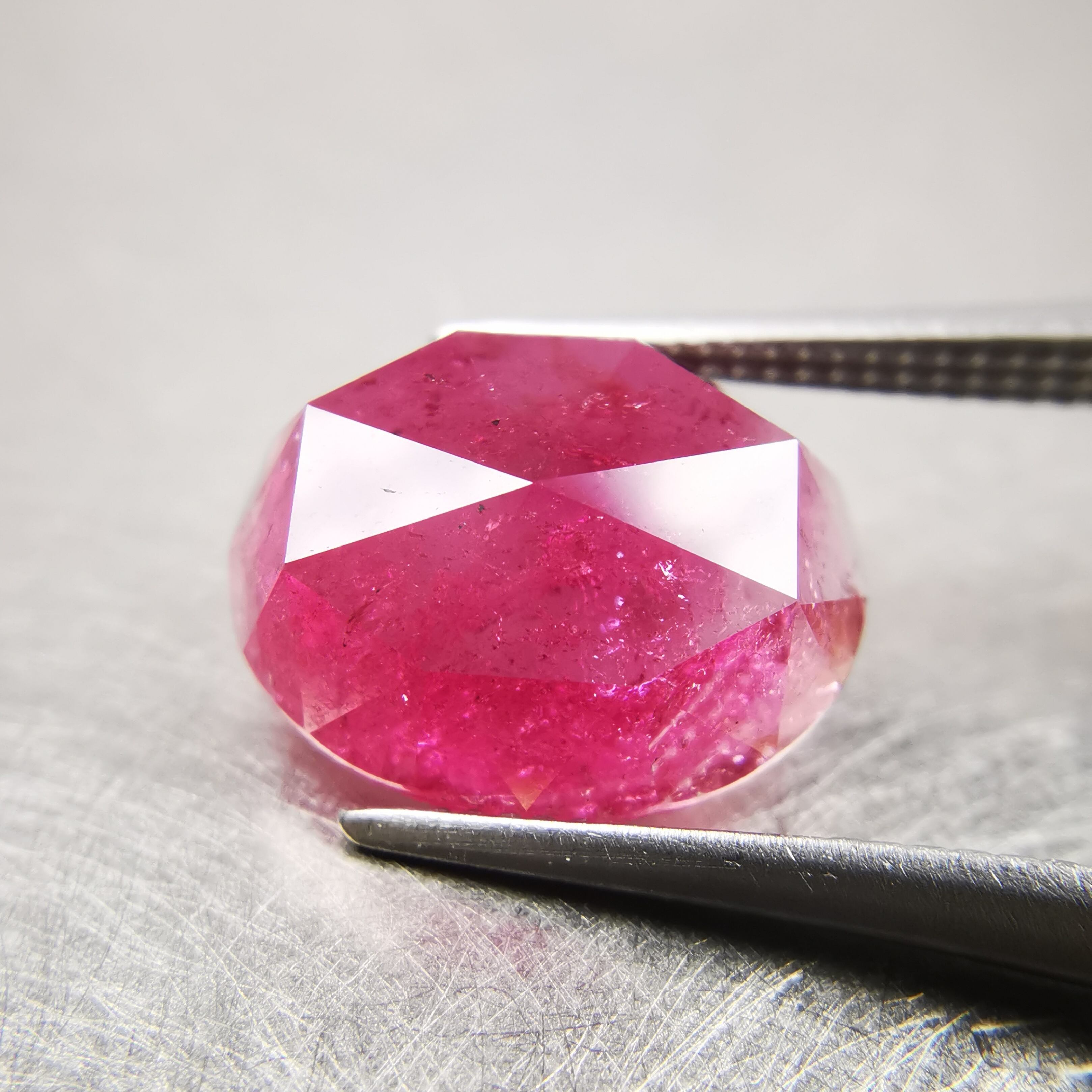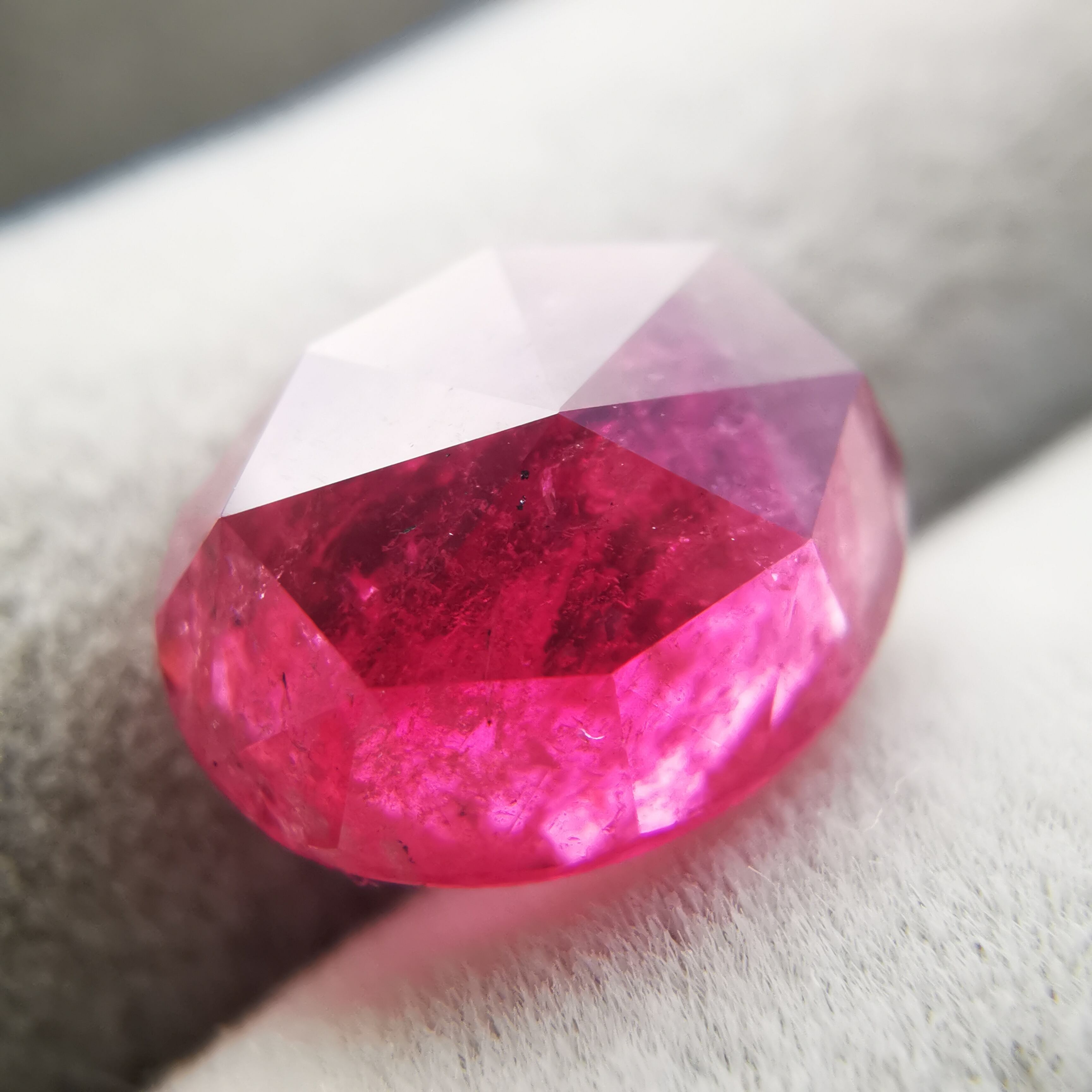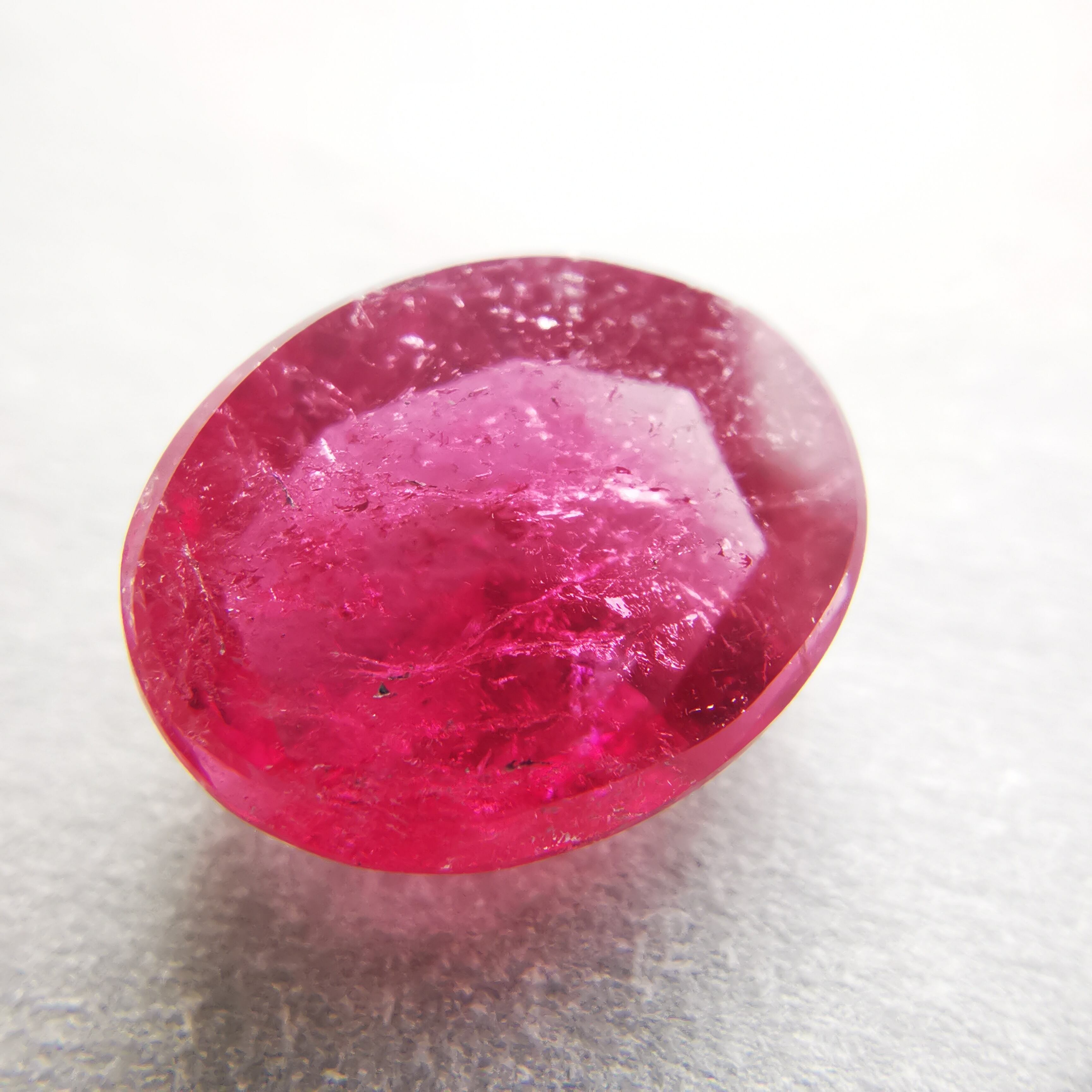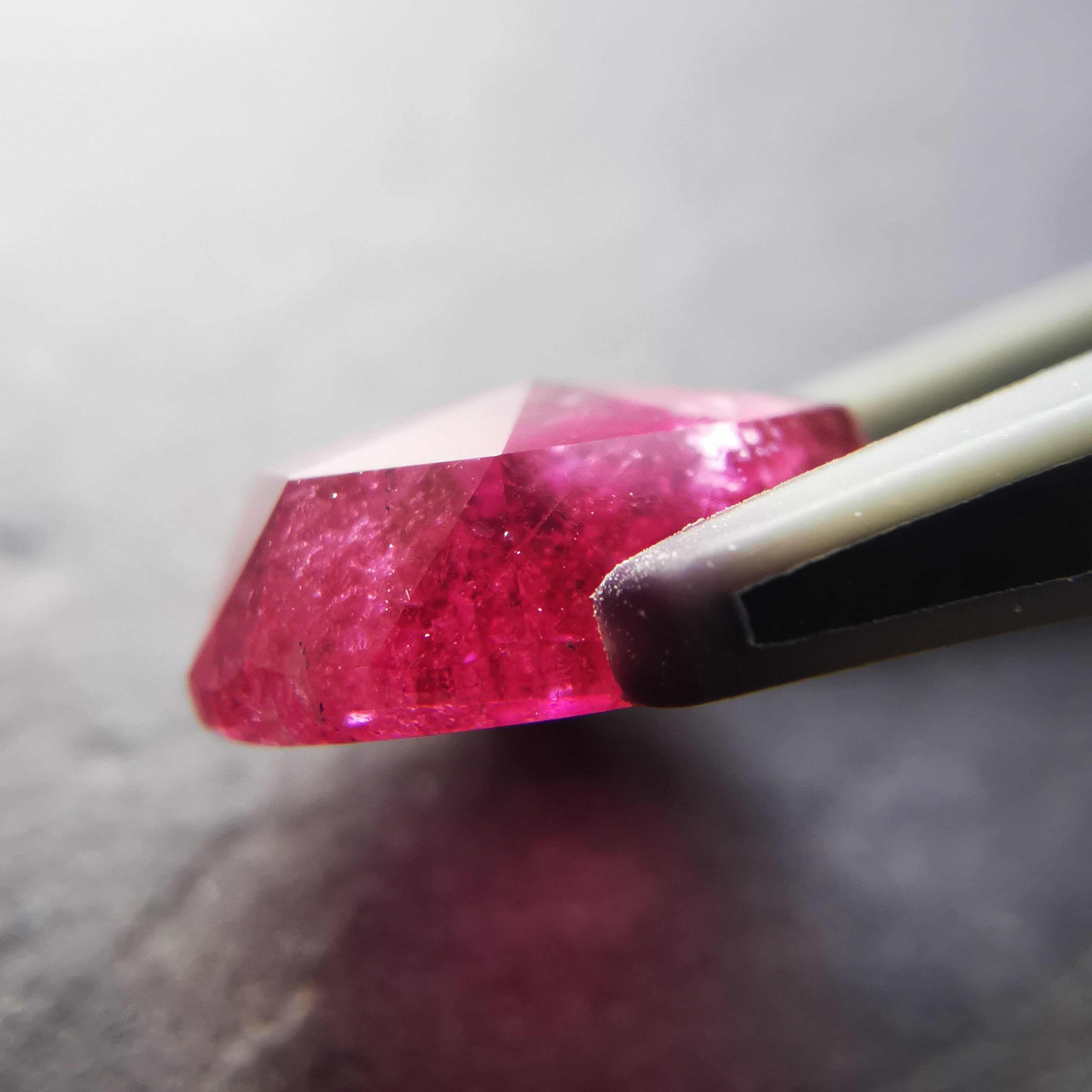 ローズレッドで、端の方がややクリアに近づいているバイカラーのトルマリンです。