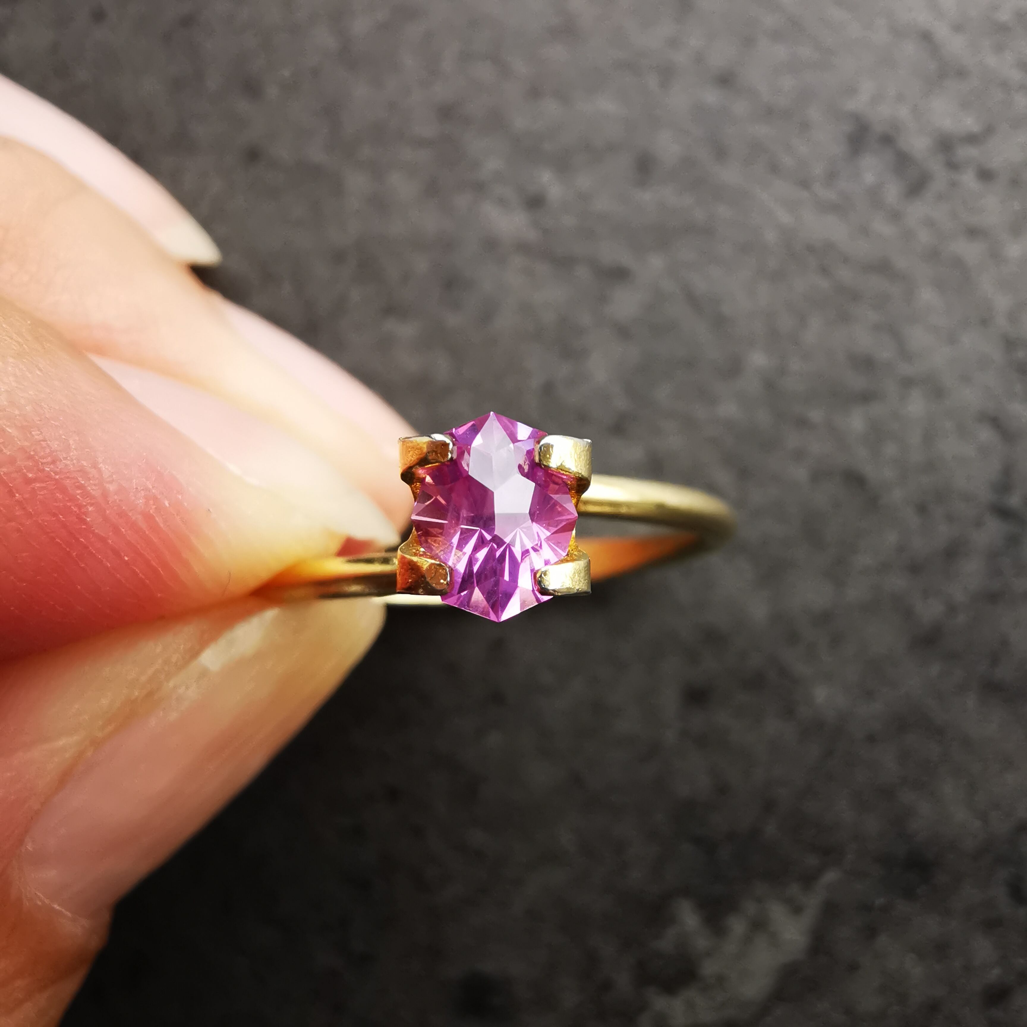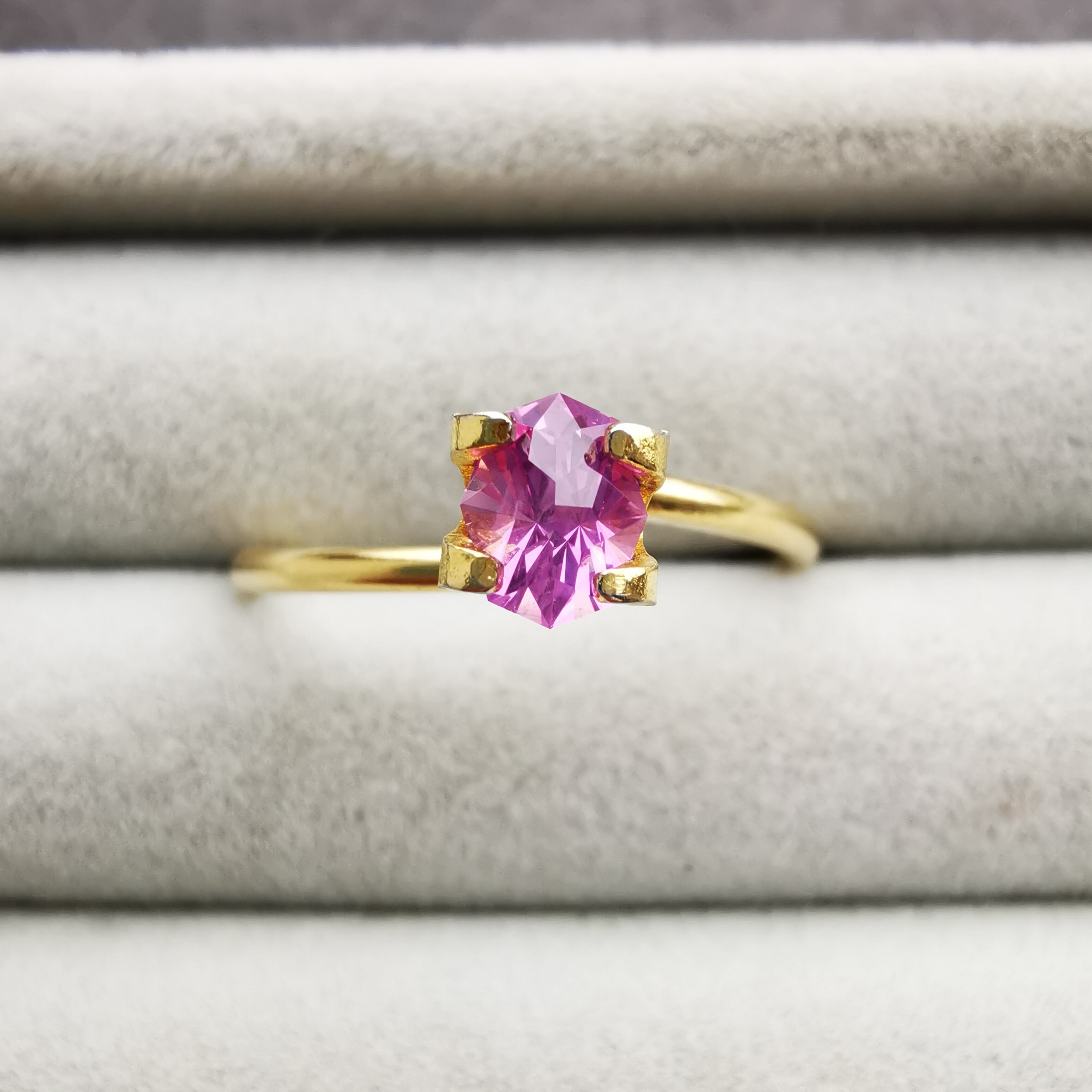 鮮やかな赤紫、牡丹色のサファイアです。
