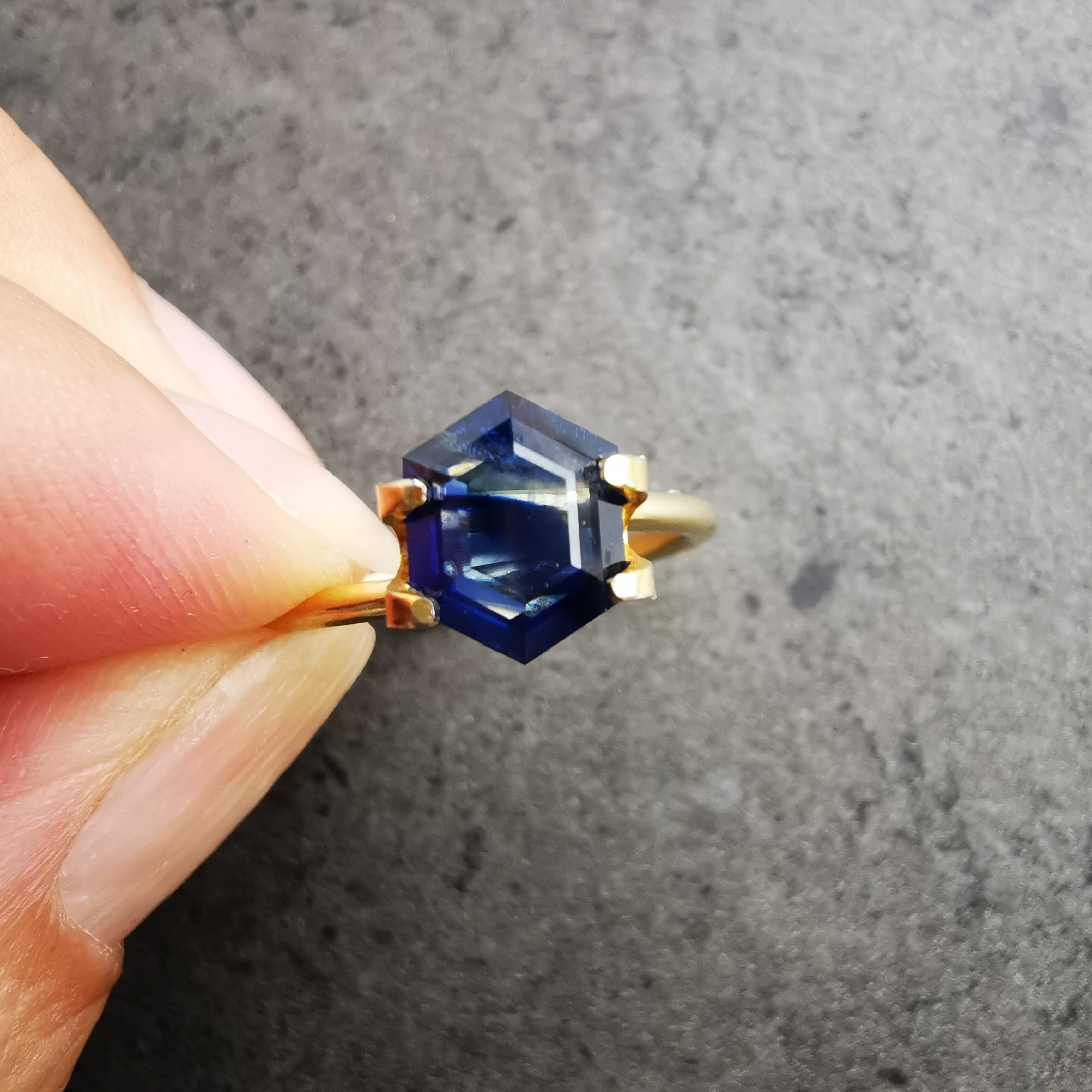濃厚なブルーと、クリアな部分に分かれたサファイアです。