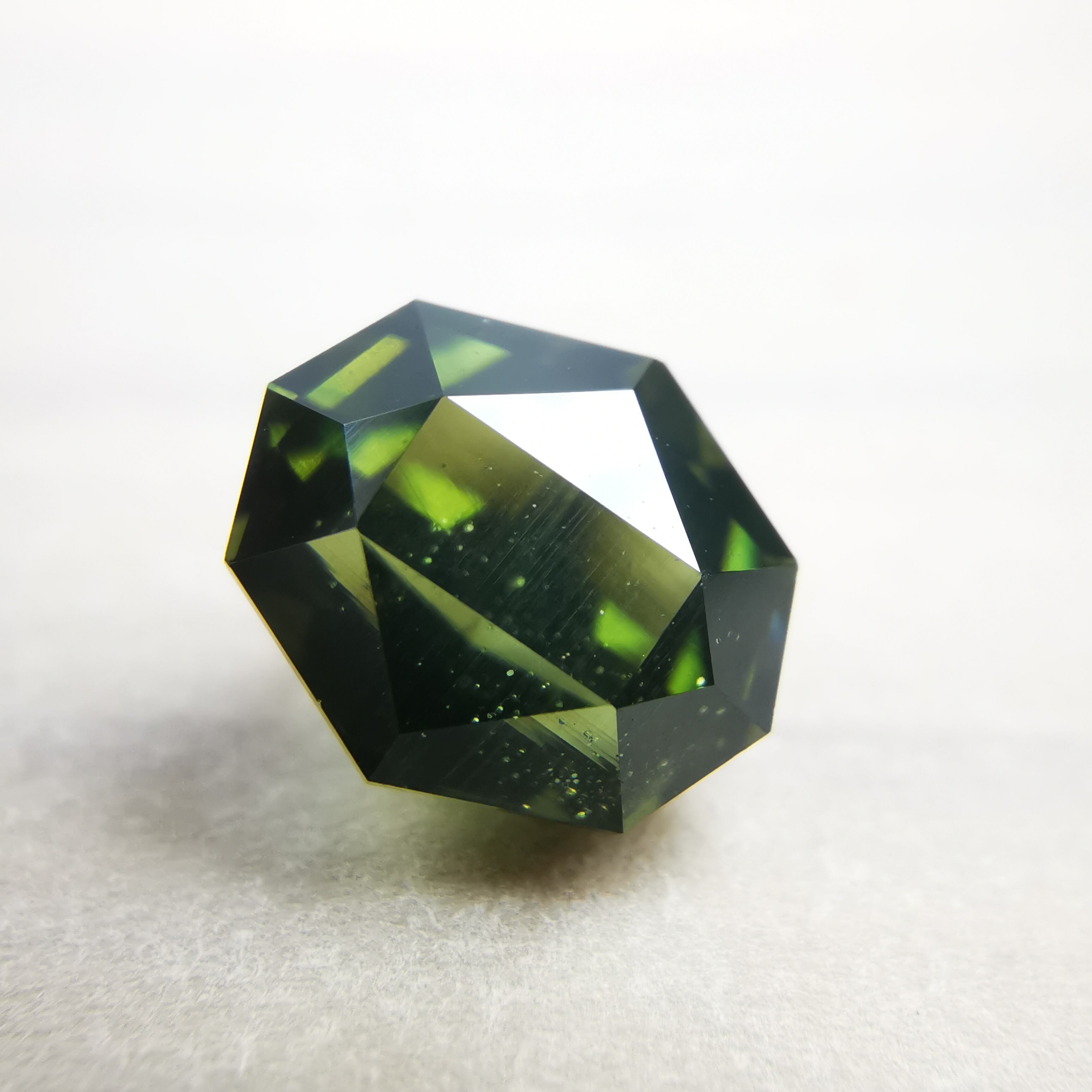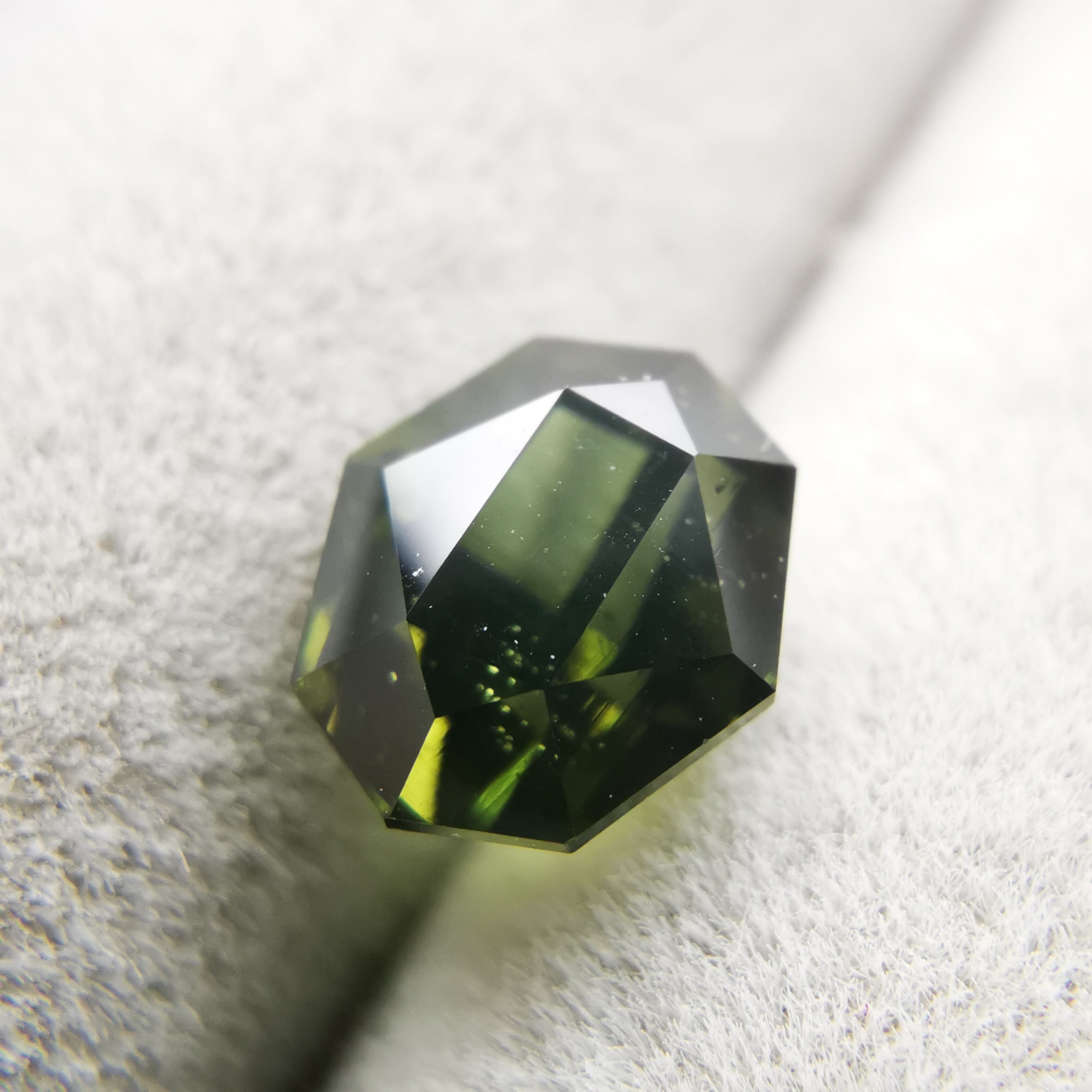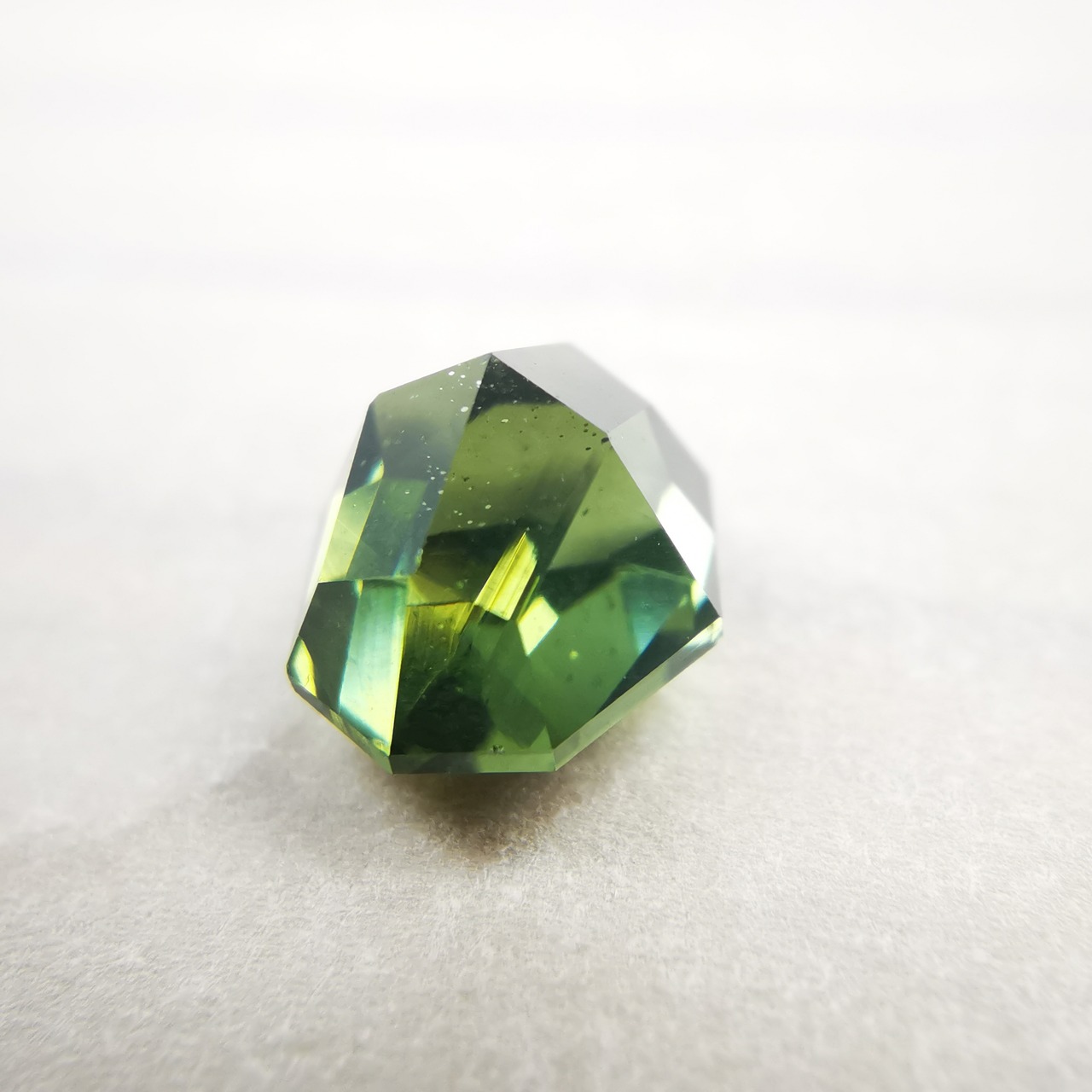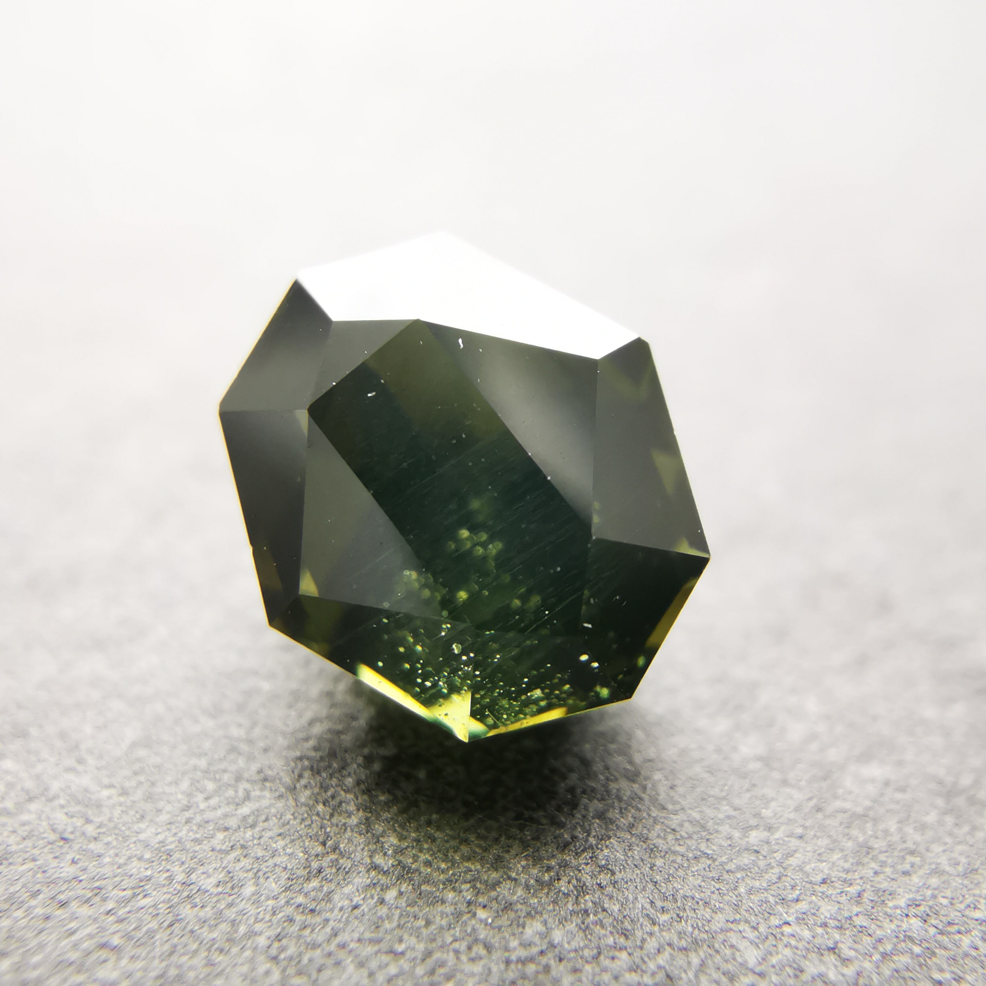 このジルコンには、キラキラした砂粒のようなインクルージョンと、もやもやとした陽炎のような色帯が一部に入り、楽しいアクセントを加えています。