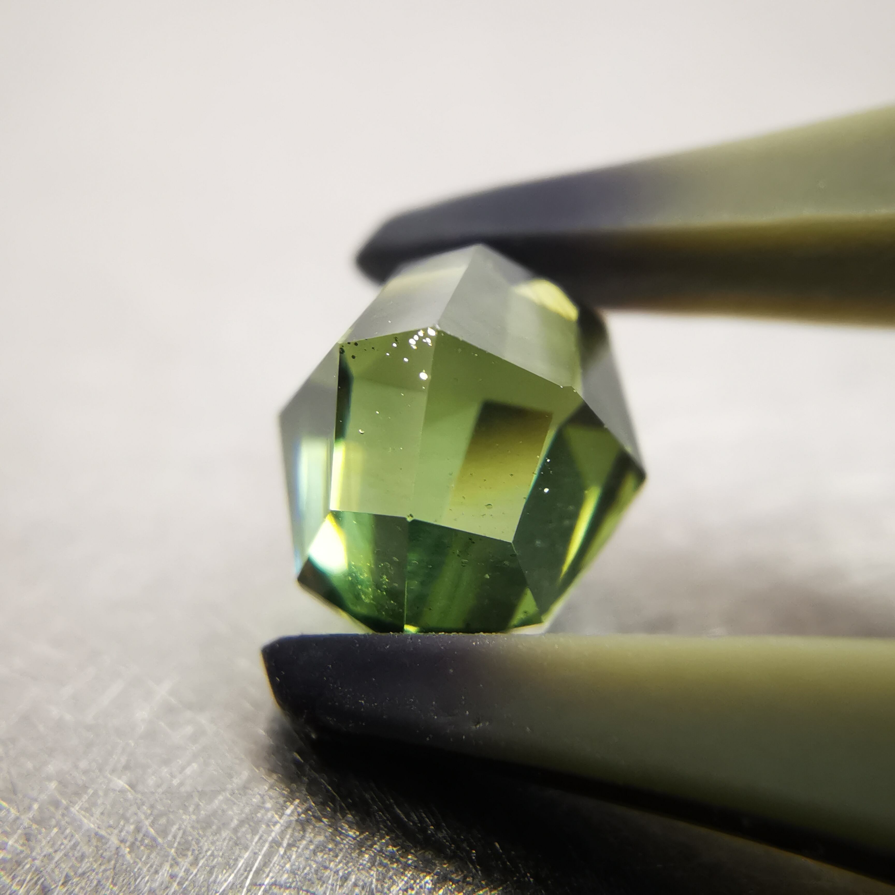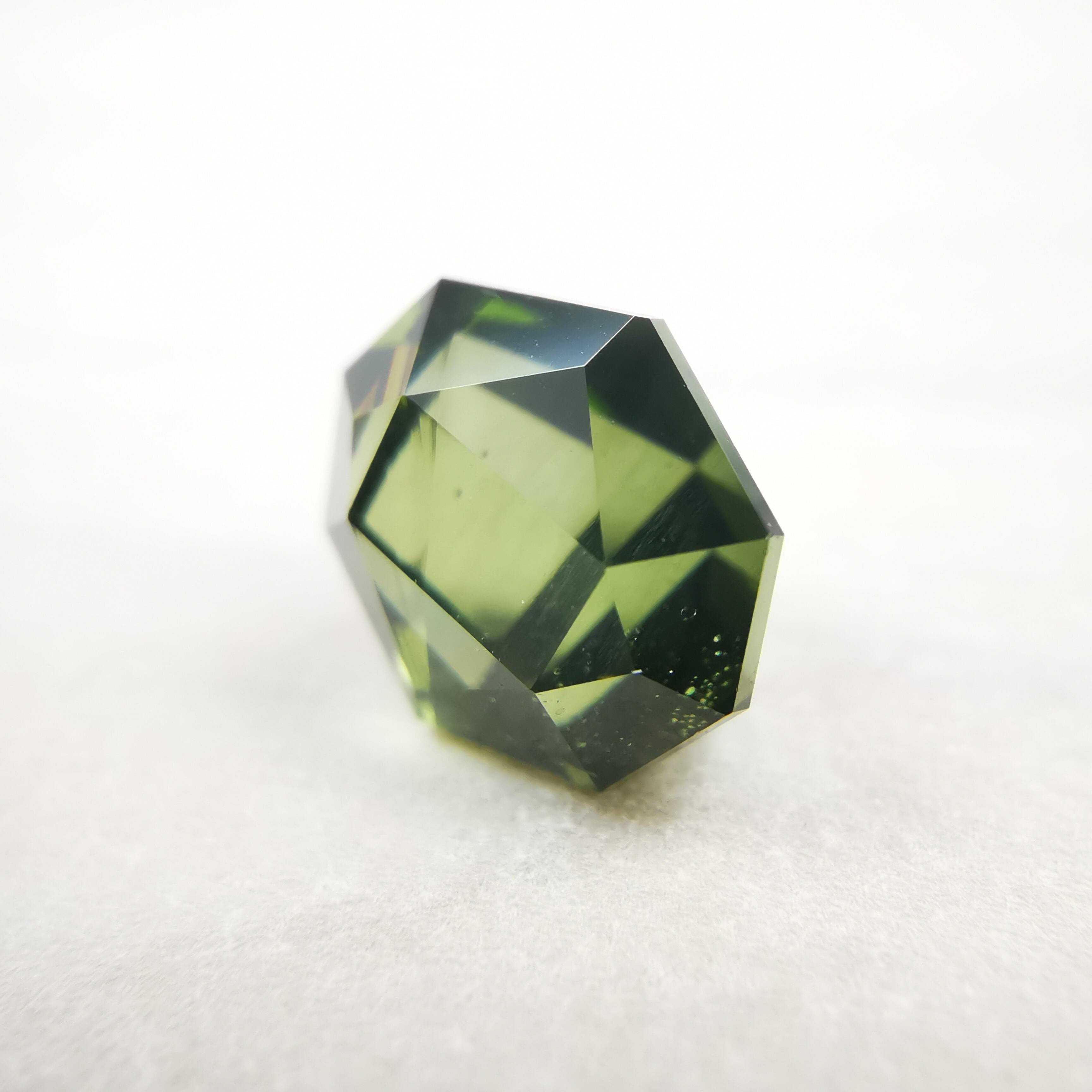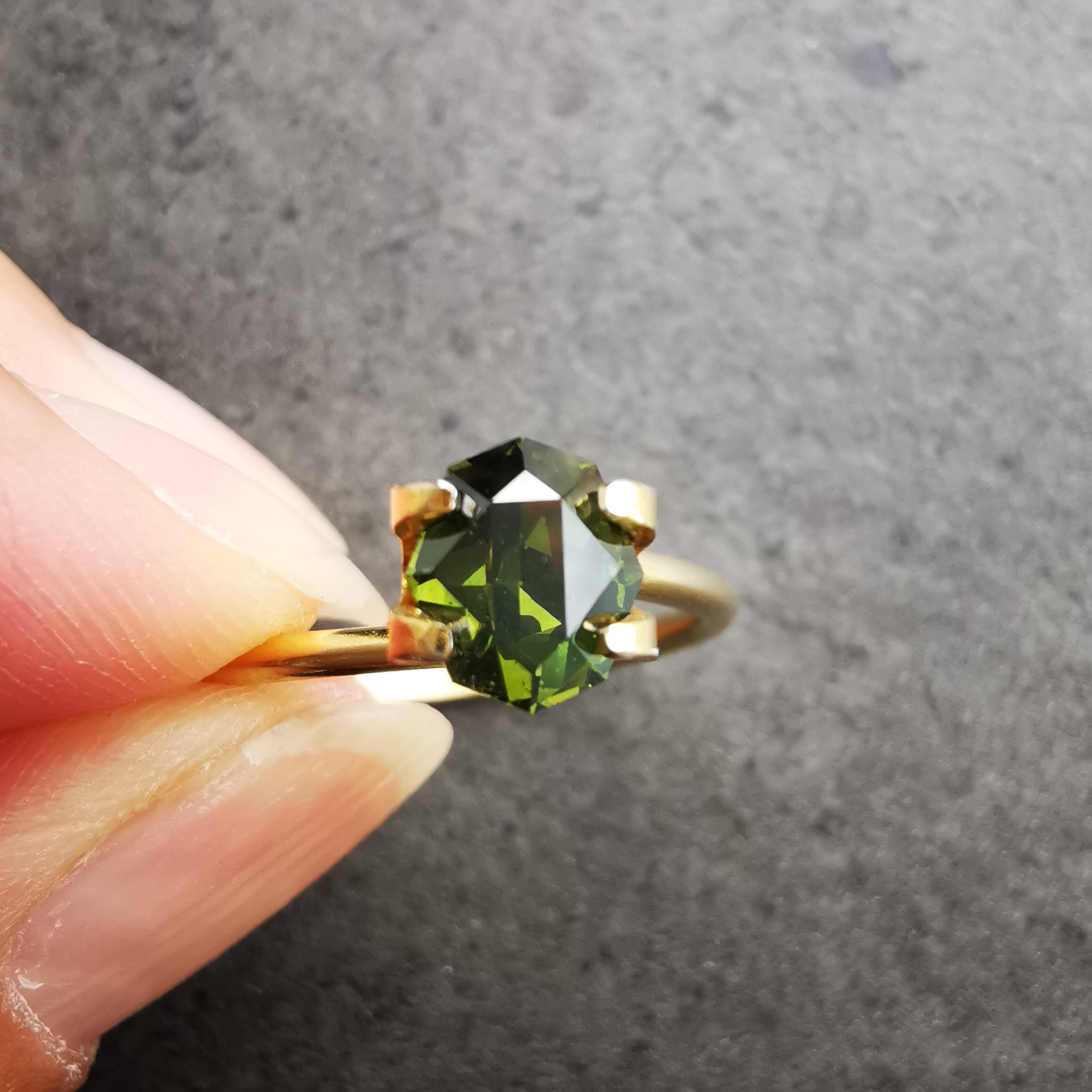 このジルコンには、キラキラした砂粒のようなインクルージョンと、もやもやとした陽炎のような色帯が一部に入り、楽しいアクセントを加えています。