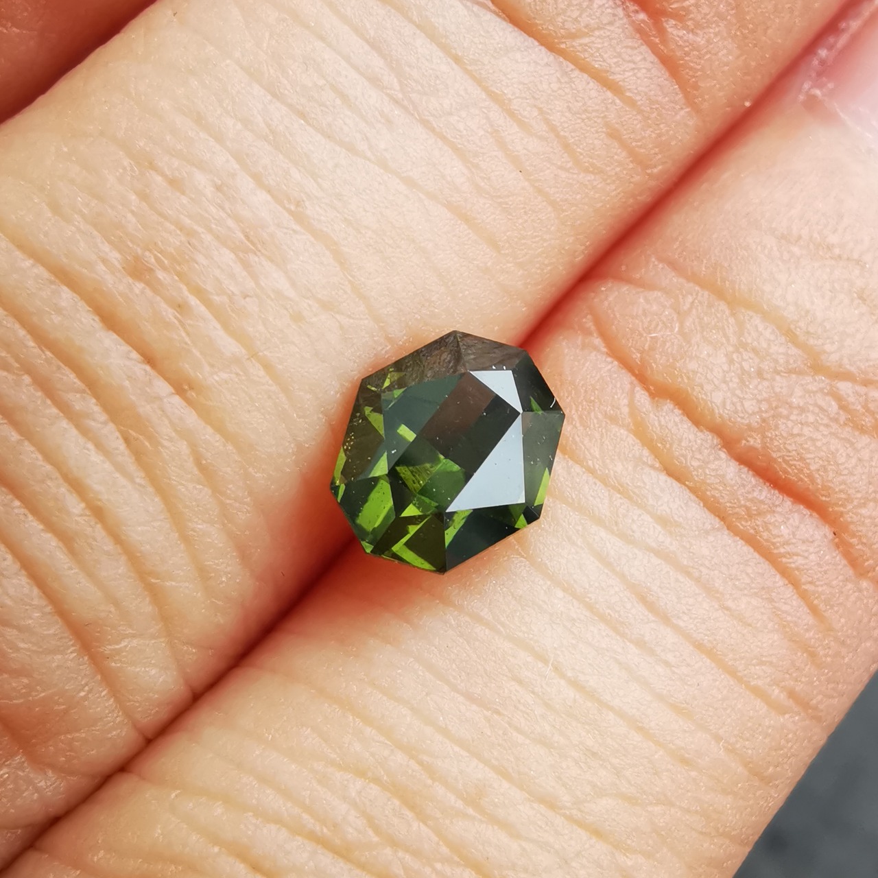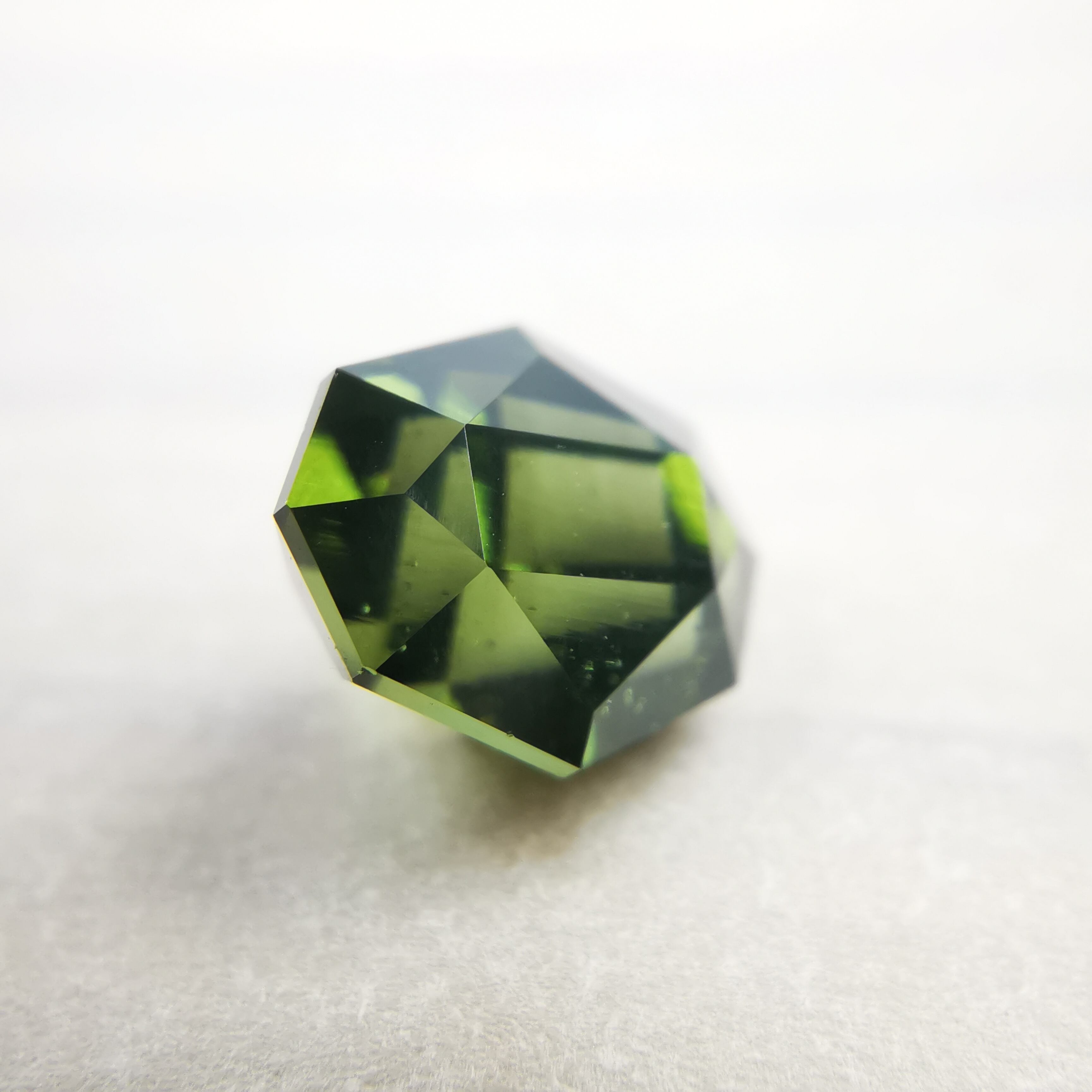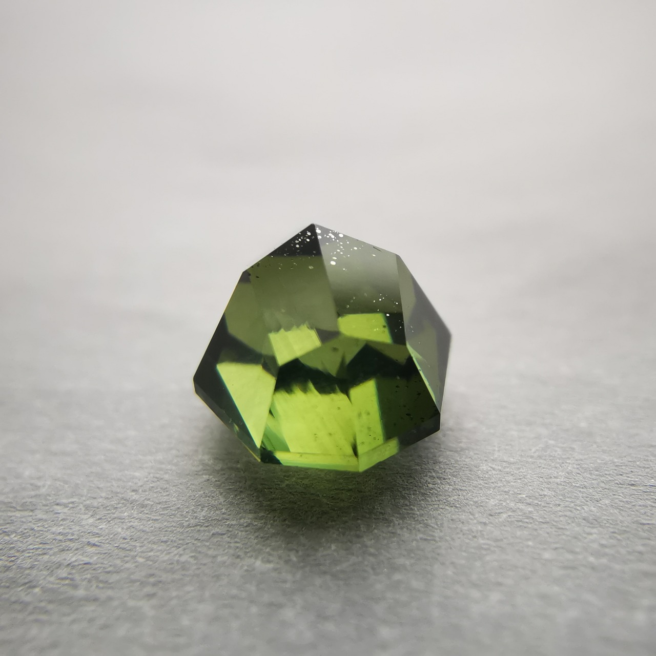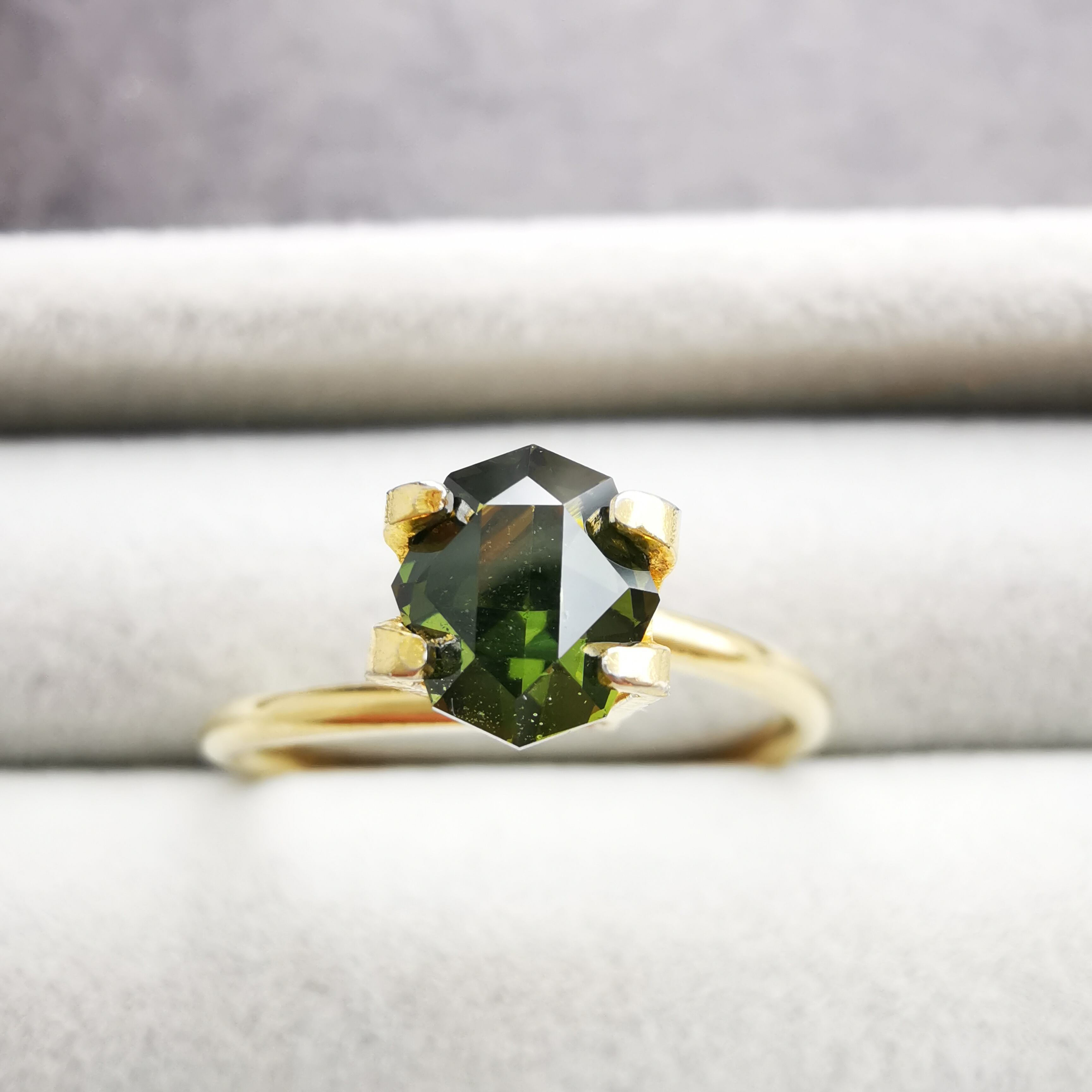 このジルコンには、キラキラした砂粒のようなインクルージョンと、もやもやとした陽炎のような色帯が一部に入り、楽しいアクセントを加えています。