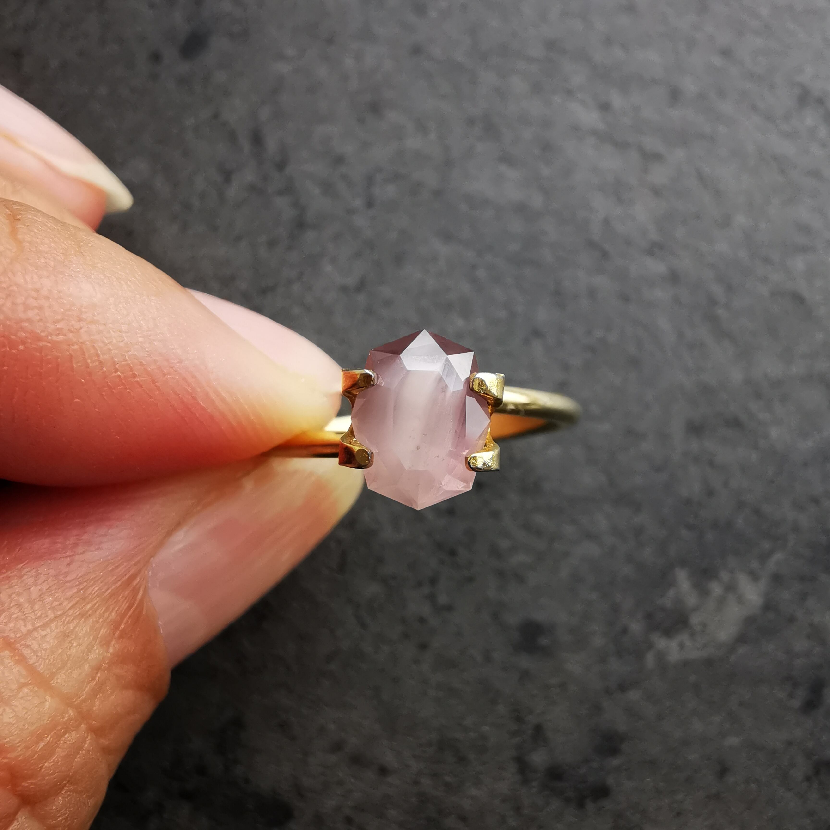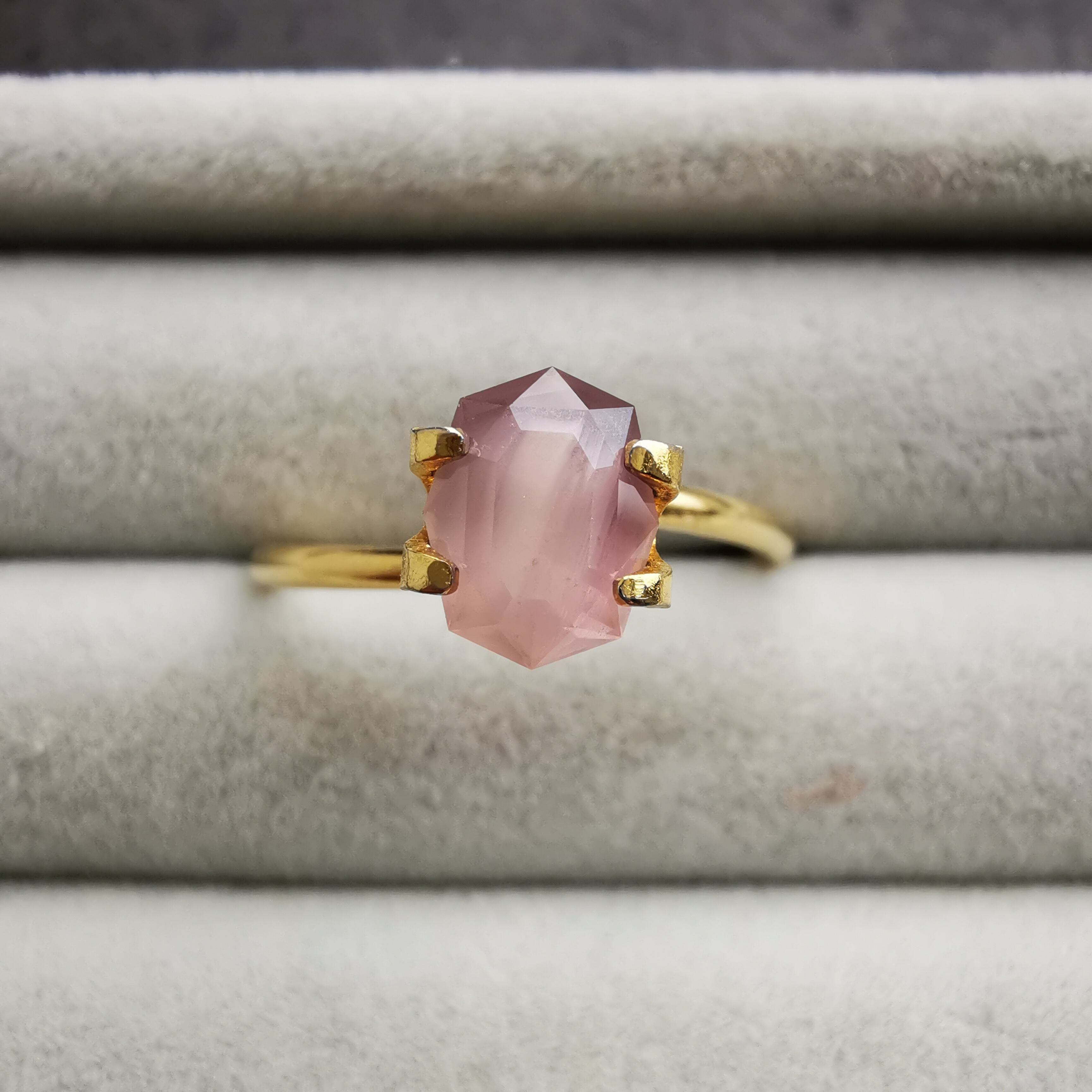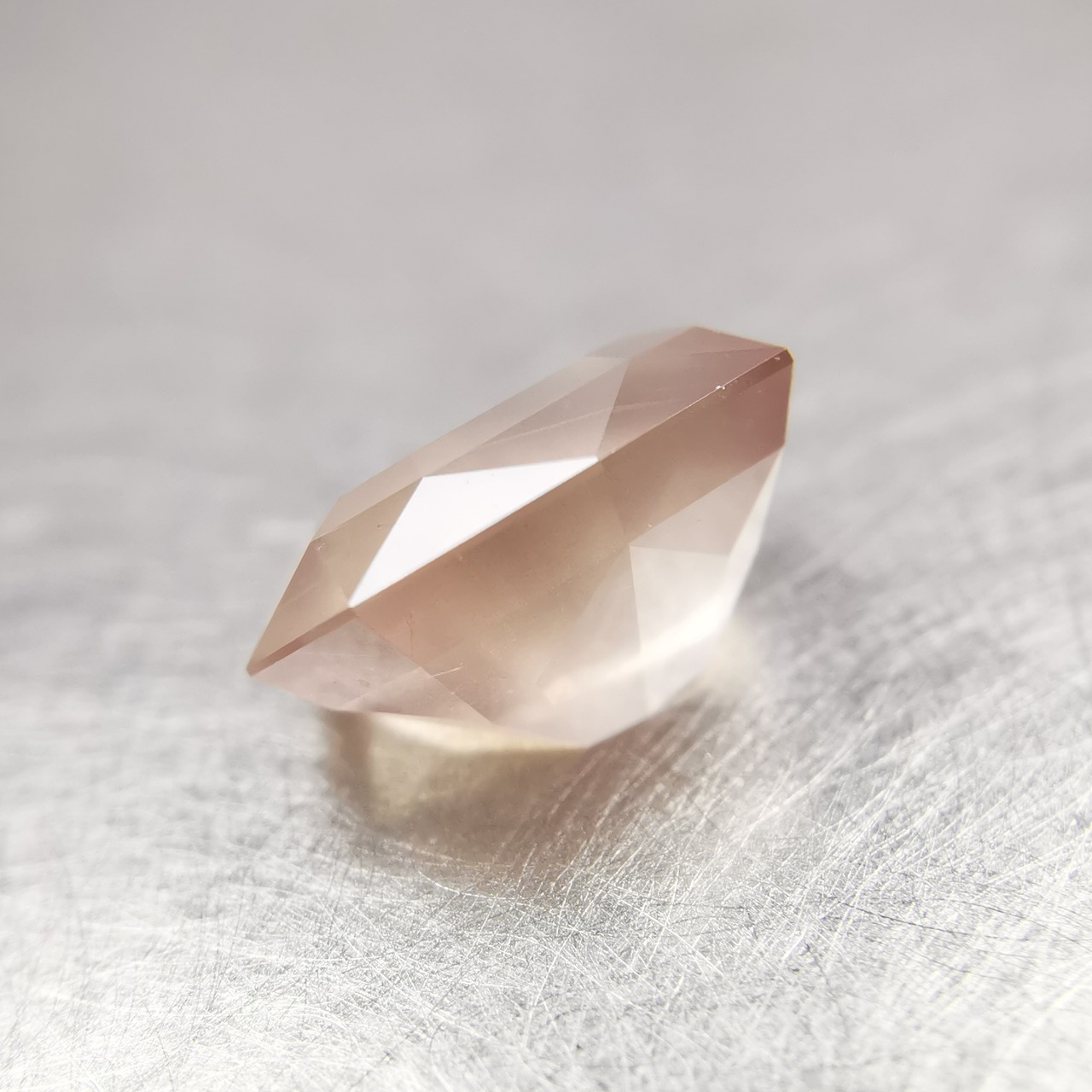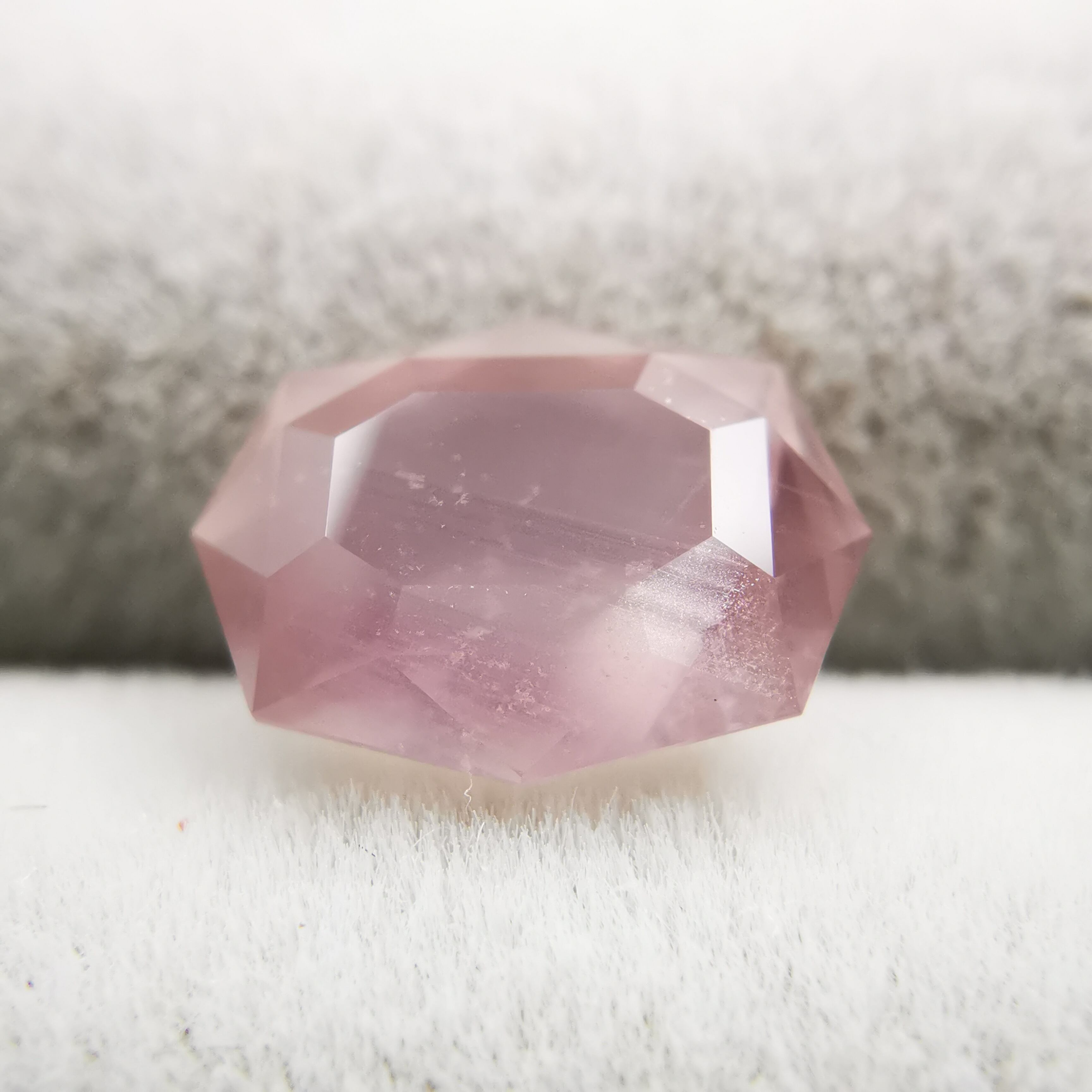 傾けると、濃厚なシルクインクルージョンがテーブル面を覆い、サテンのような光沢を放ちます。