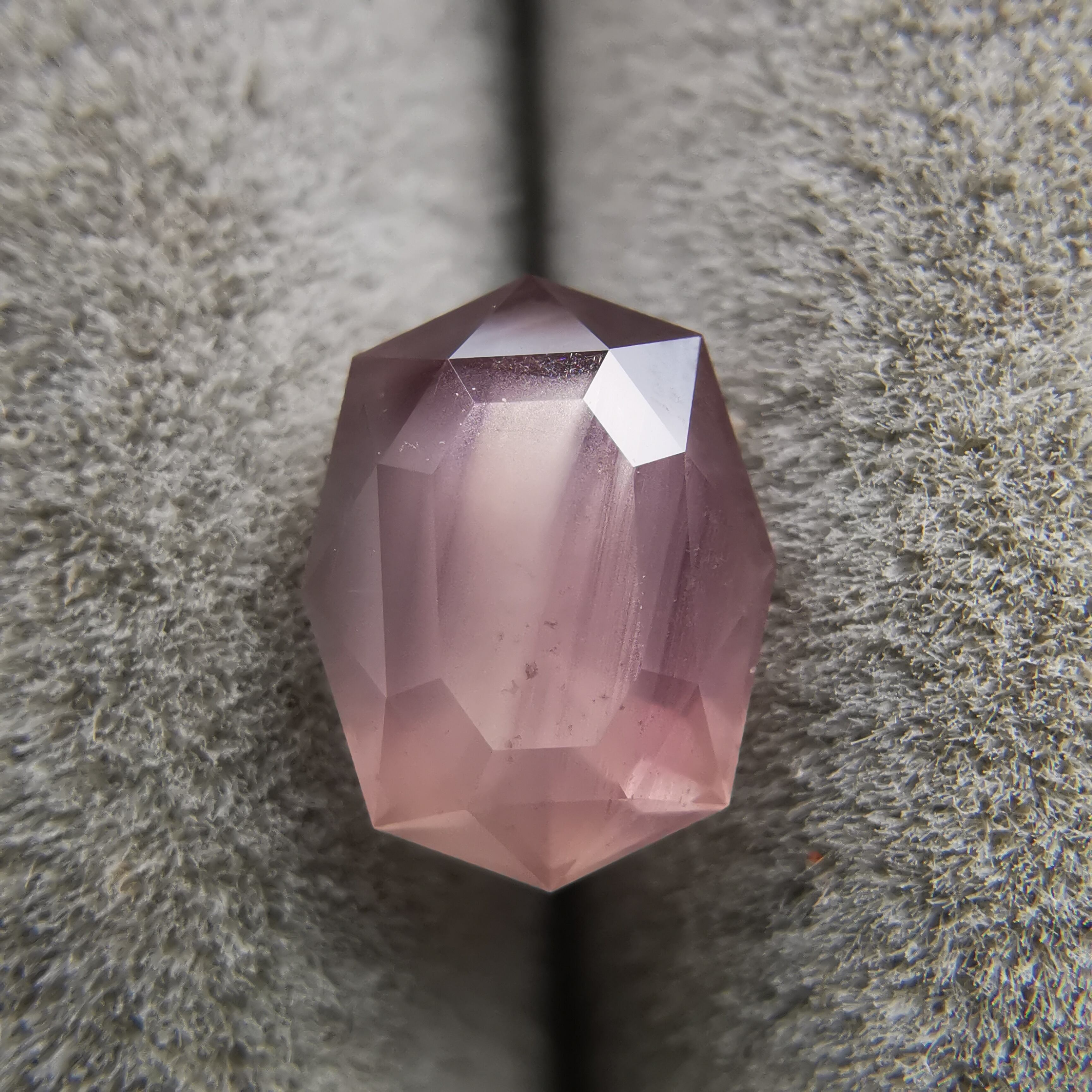 全体にシルキーなインクルージョン、白と黒の点状のインクルージョンあり
