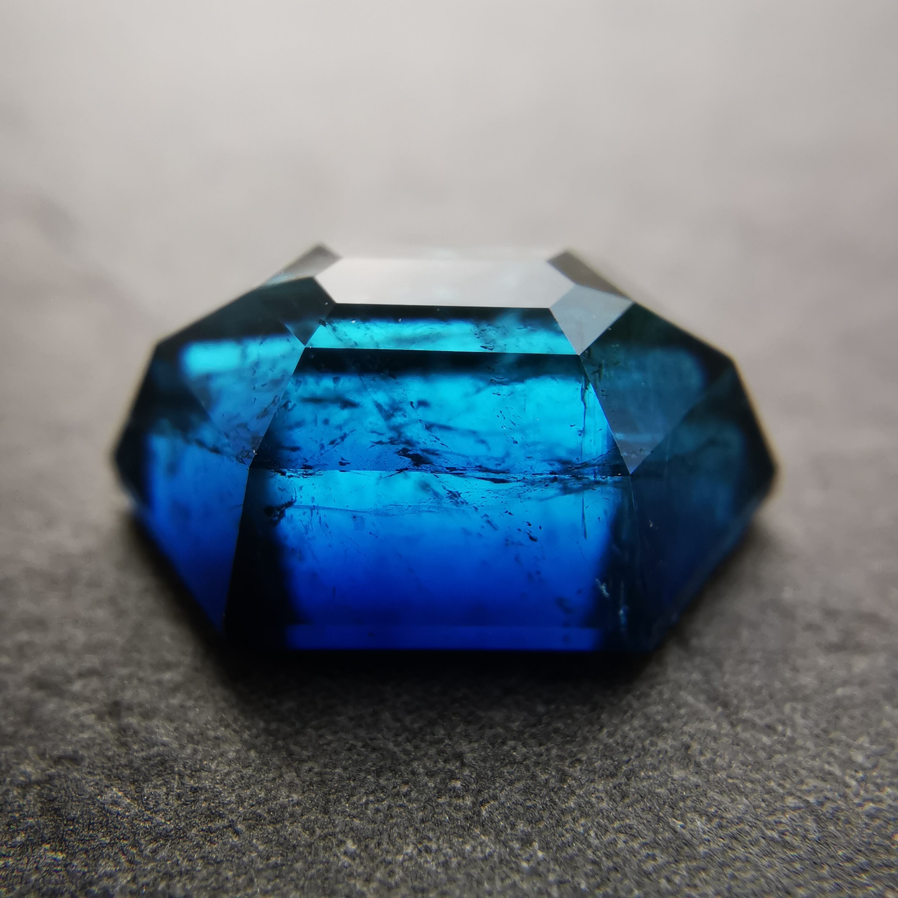 上から見ると、深海のような暗い濃紺の端の方にチラチラとブルーがきらめく地味な印象の一石ですが、ぐっと目線を下げて、真横から見た時の景色は圧巻です。