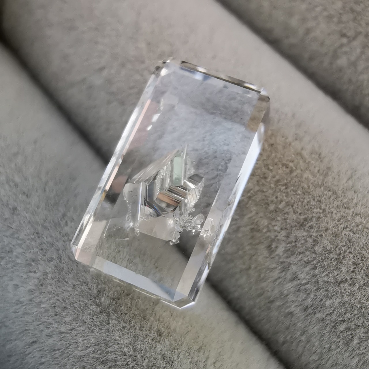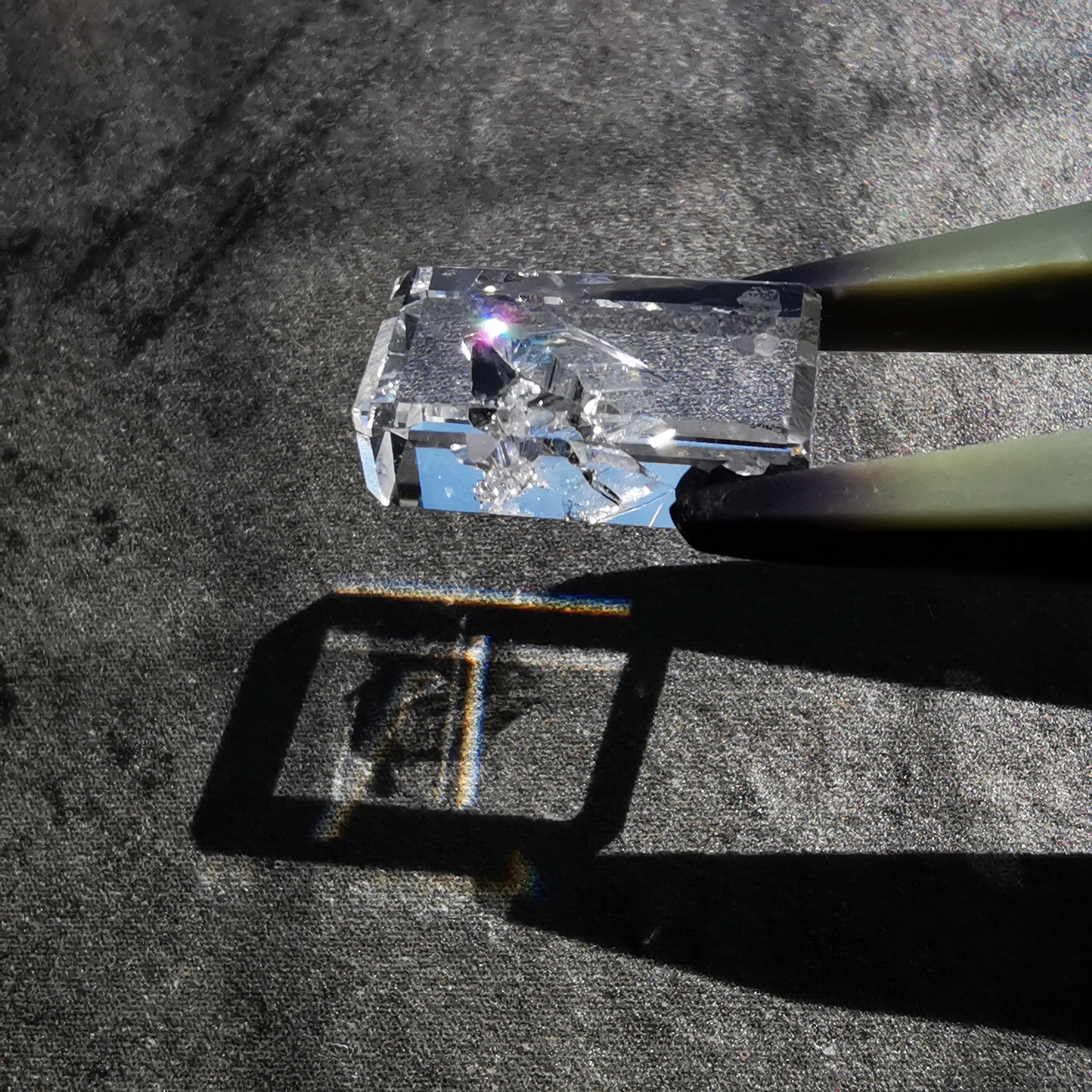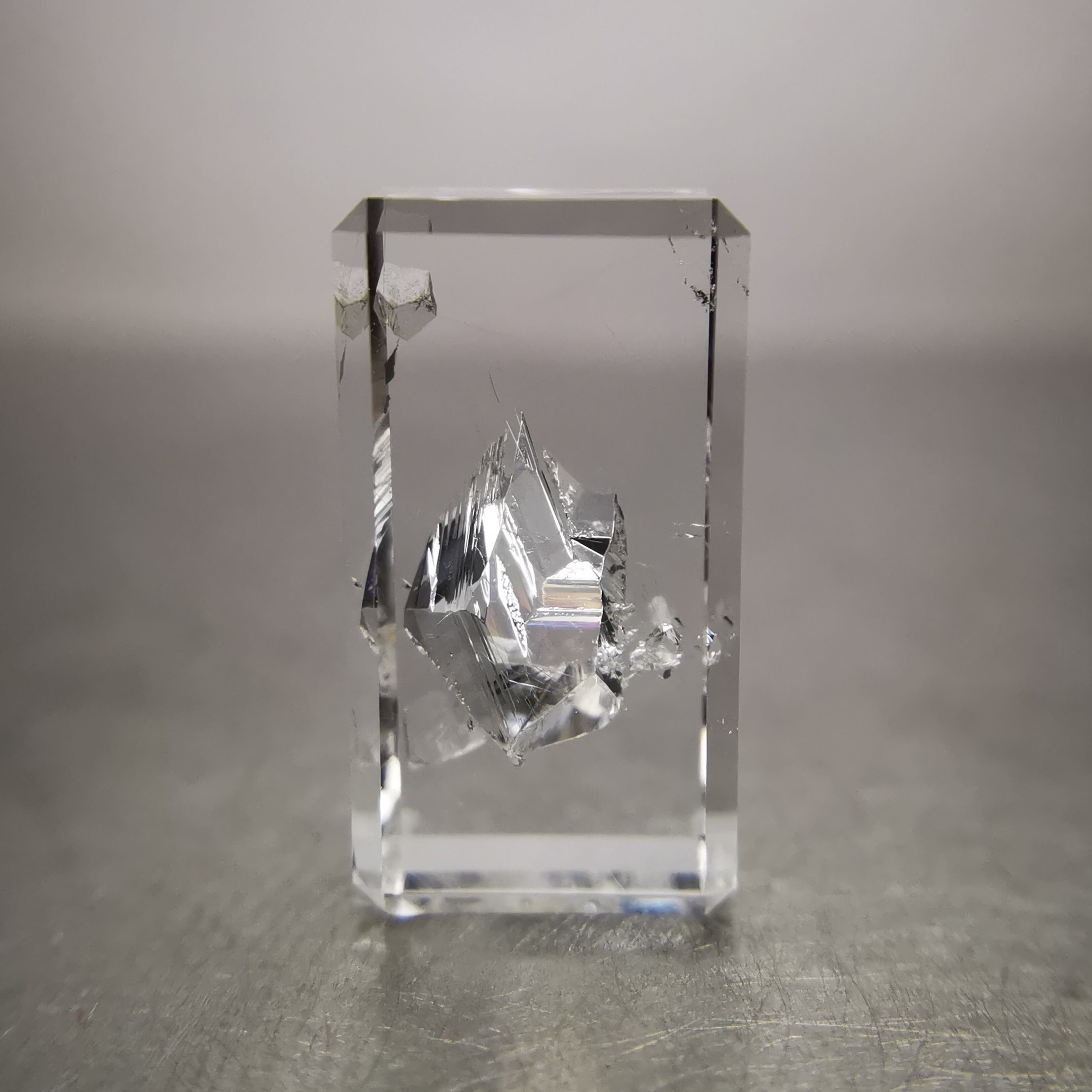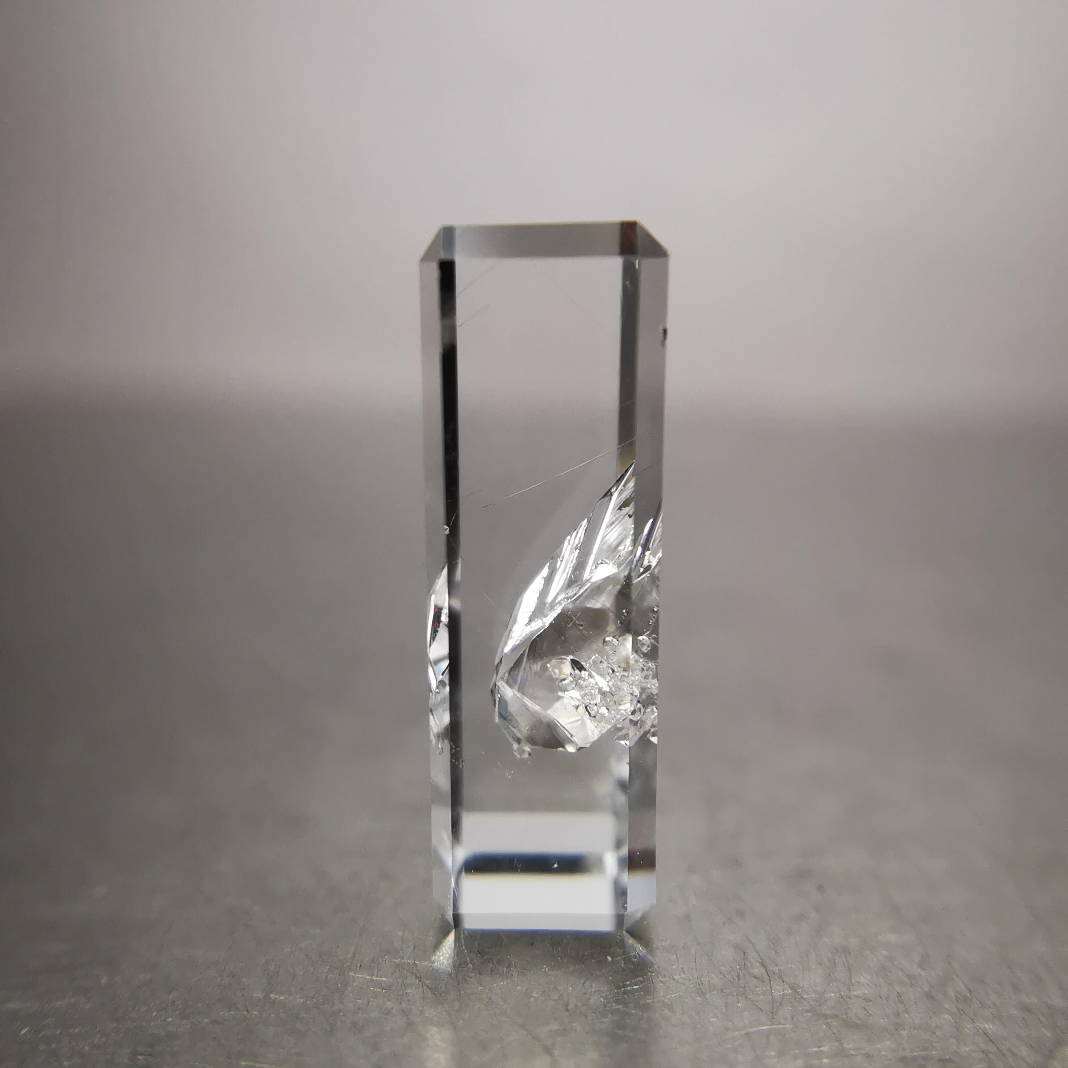 中のクォーツをあらゆる角度から愛でるために、外のクォーツを直方体にカスタムリカットしました。