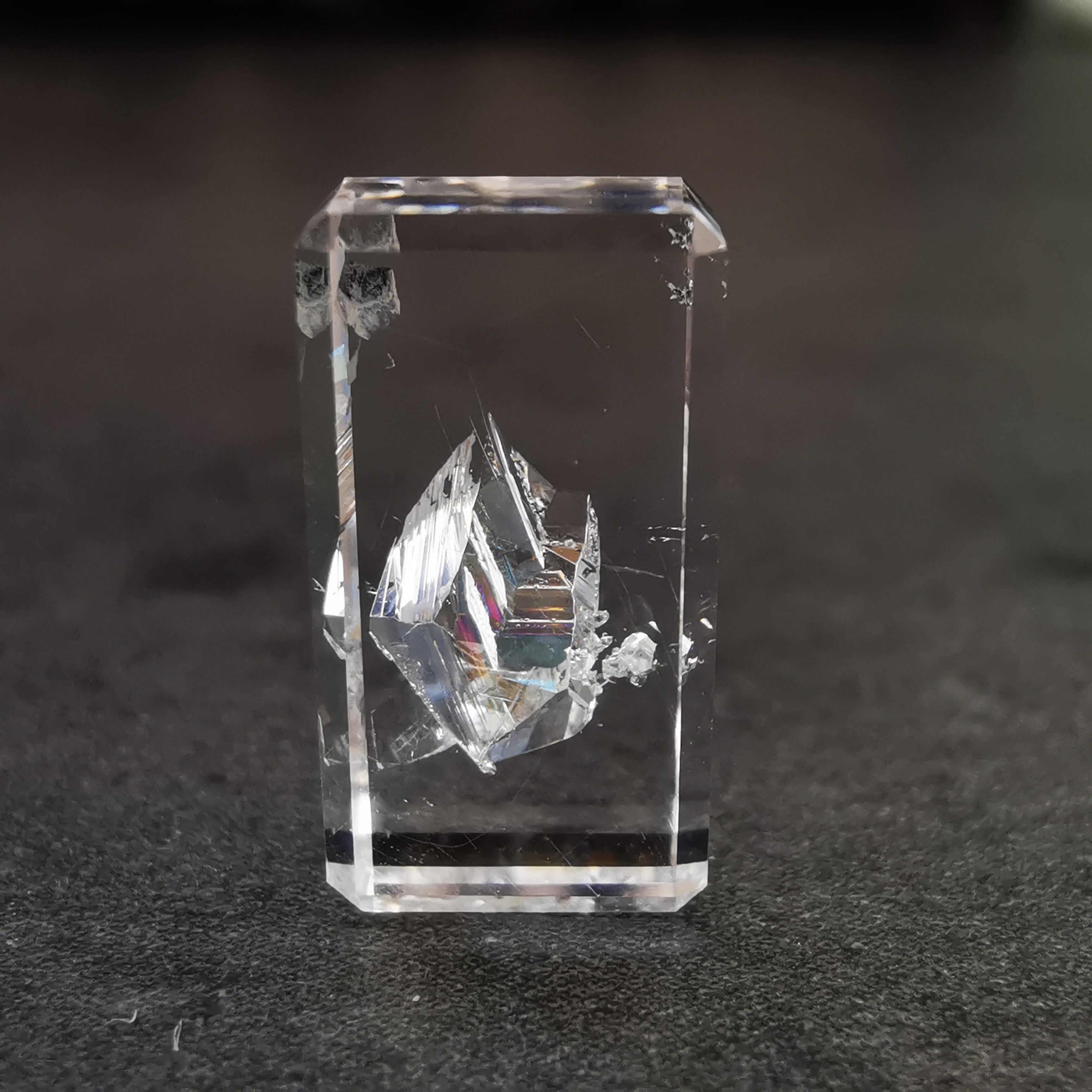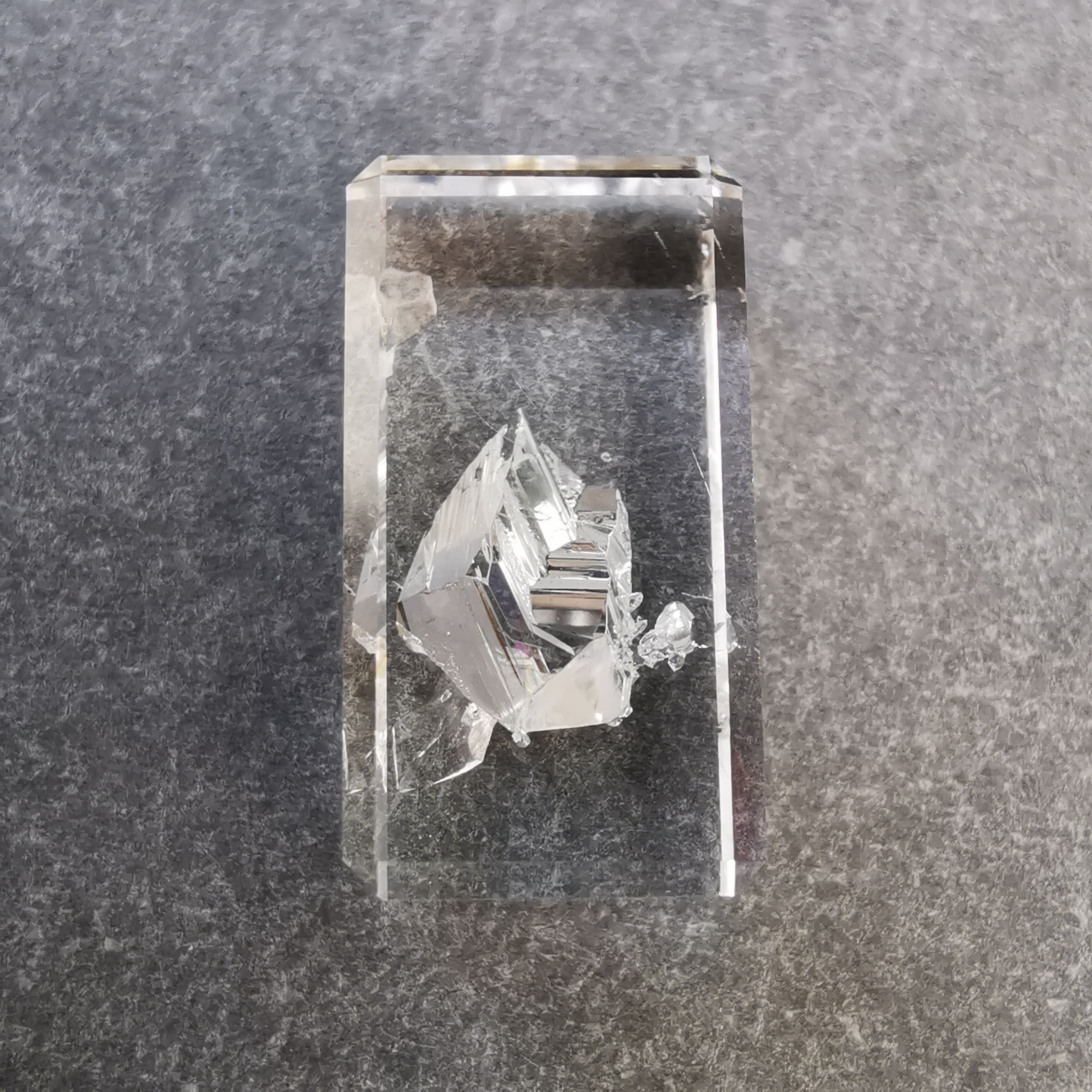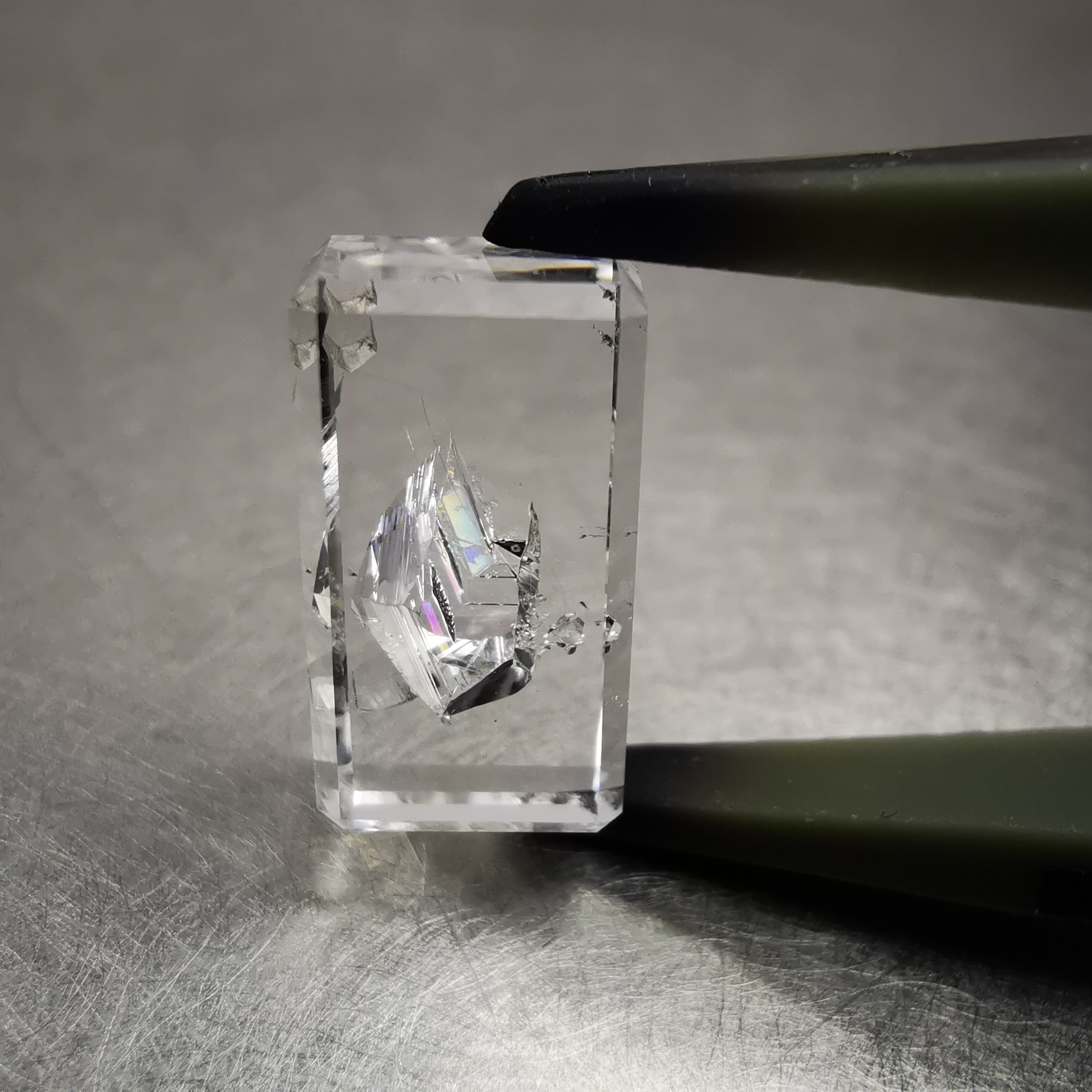 中のクォーツをあらゆる角度から愛でるために、外のクォーツを直方体にカスタムリカットしました。