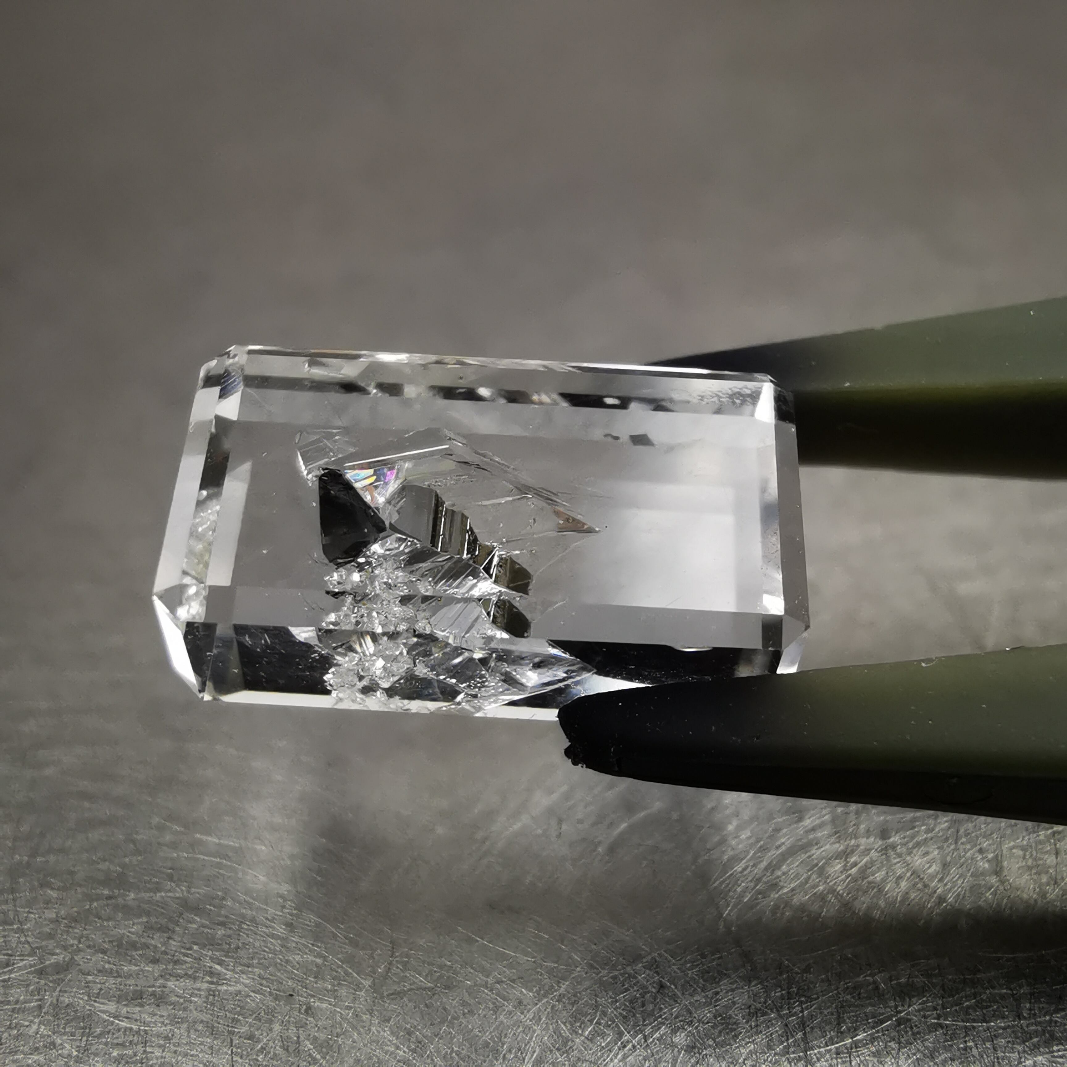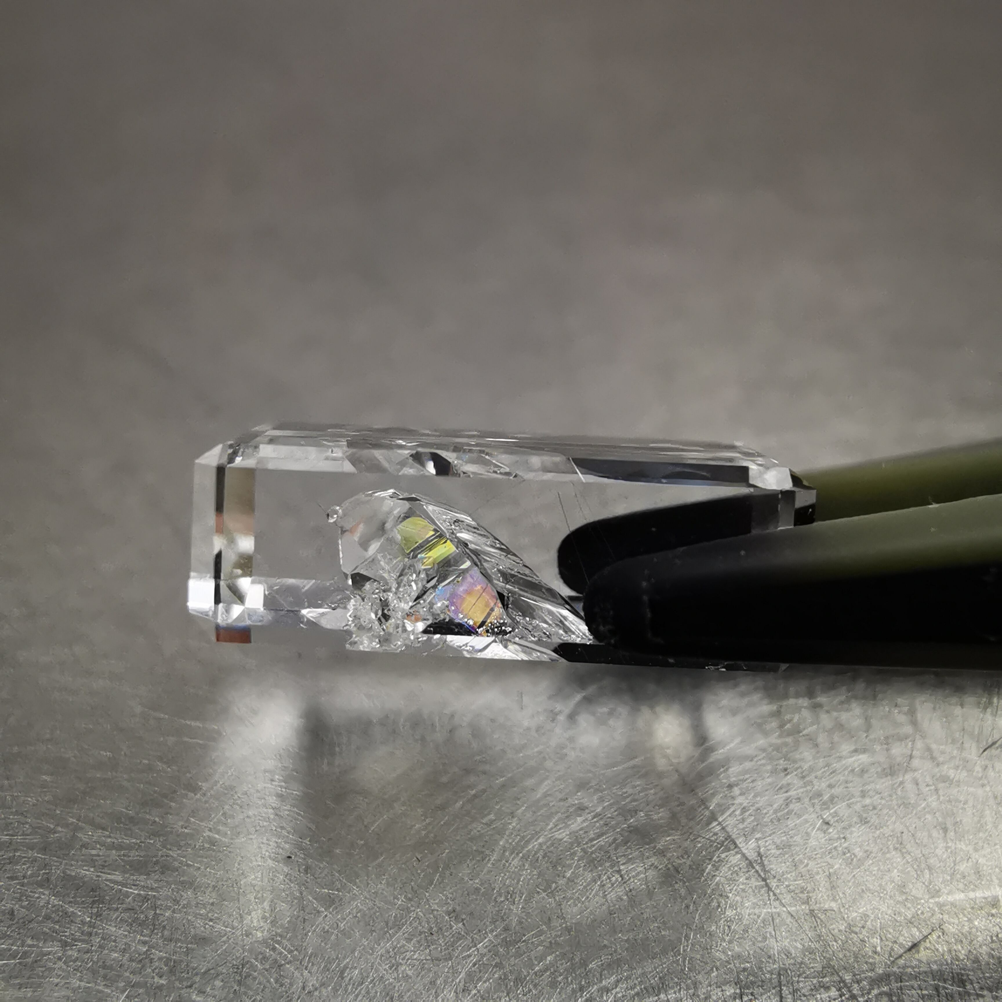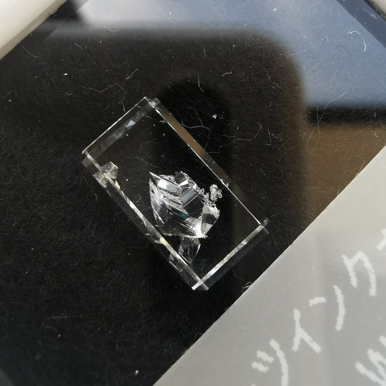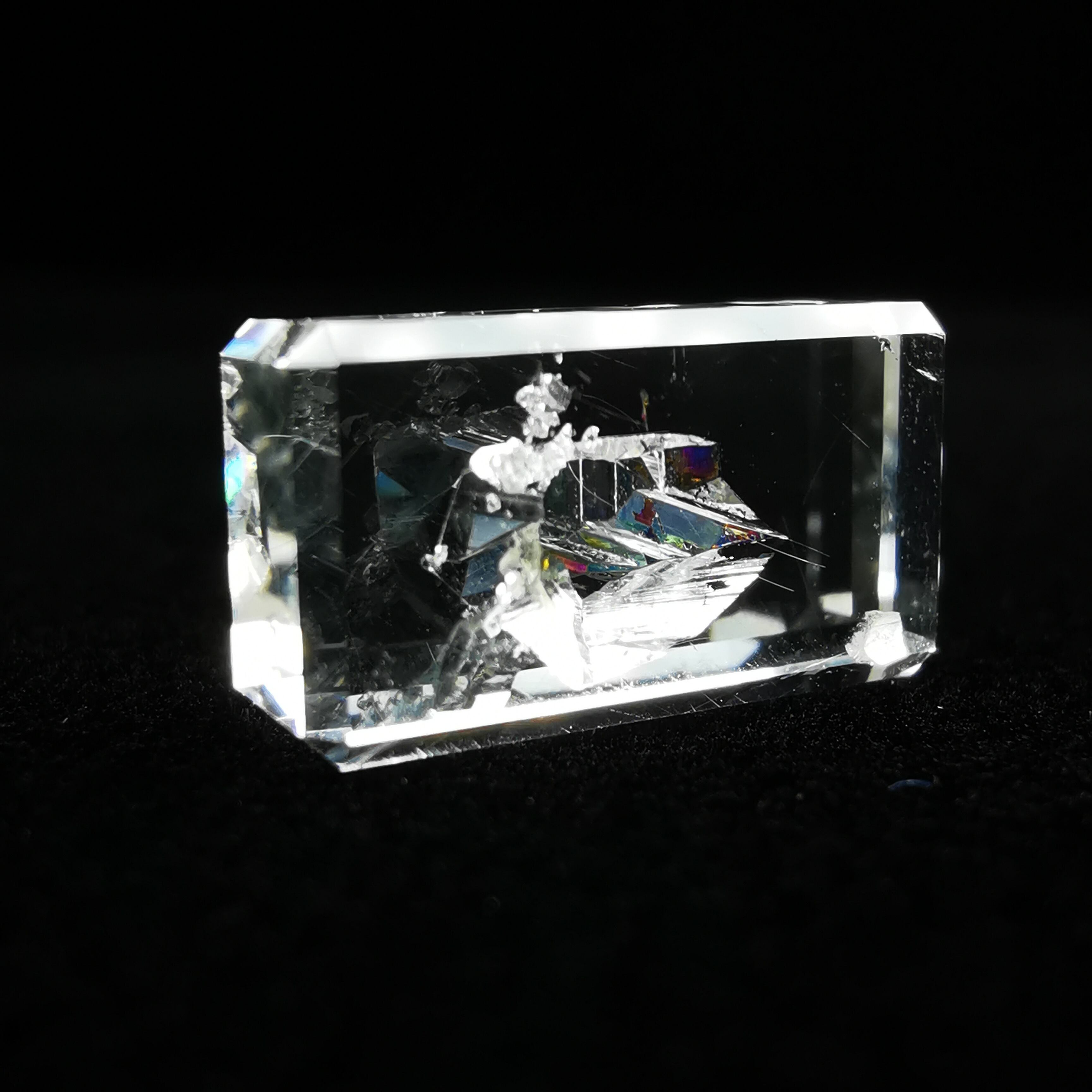 中のクォーツをあらゆる角度から愛でるために、外のクォーツを直方体にカスタムリカットしました。