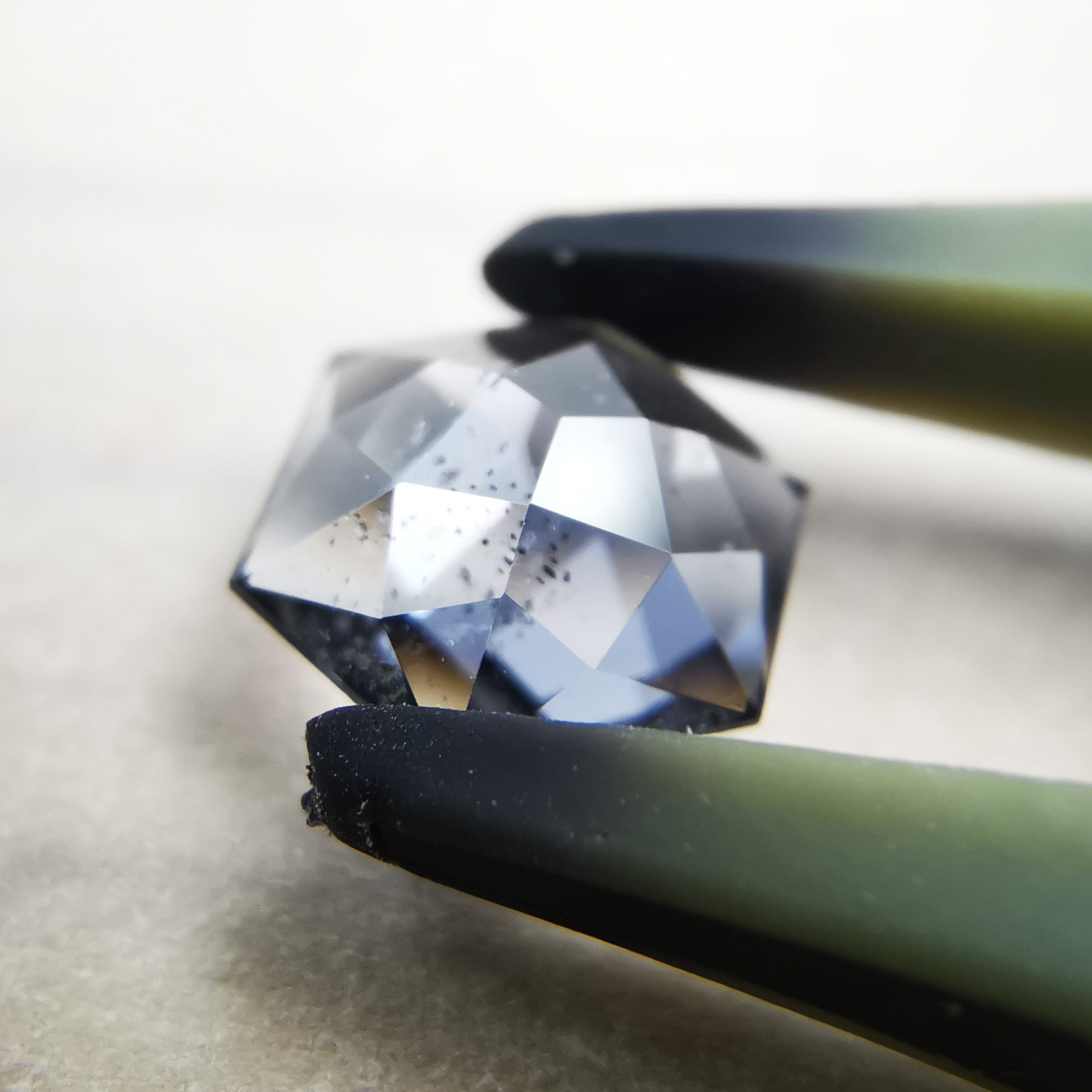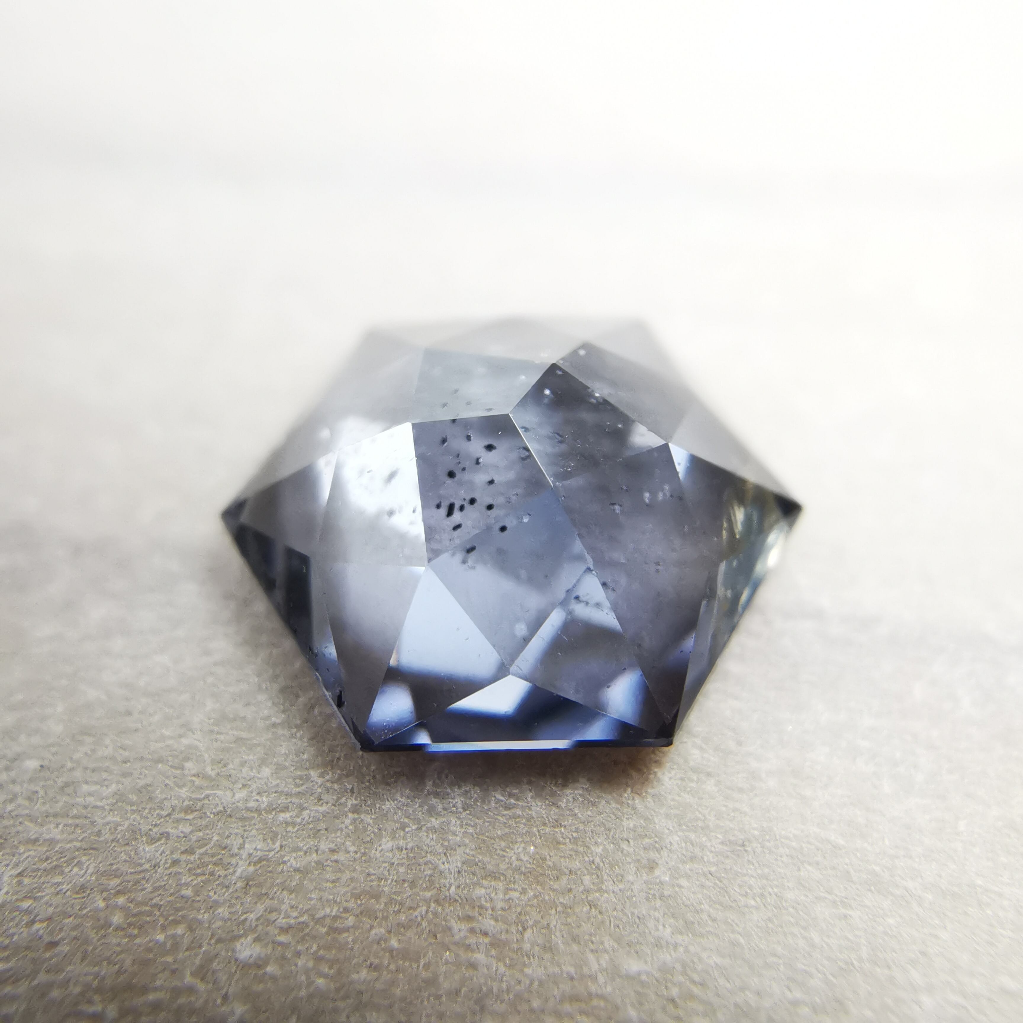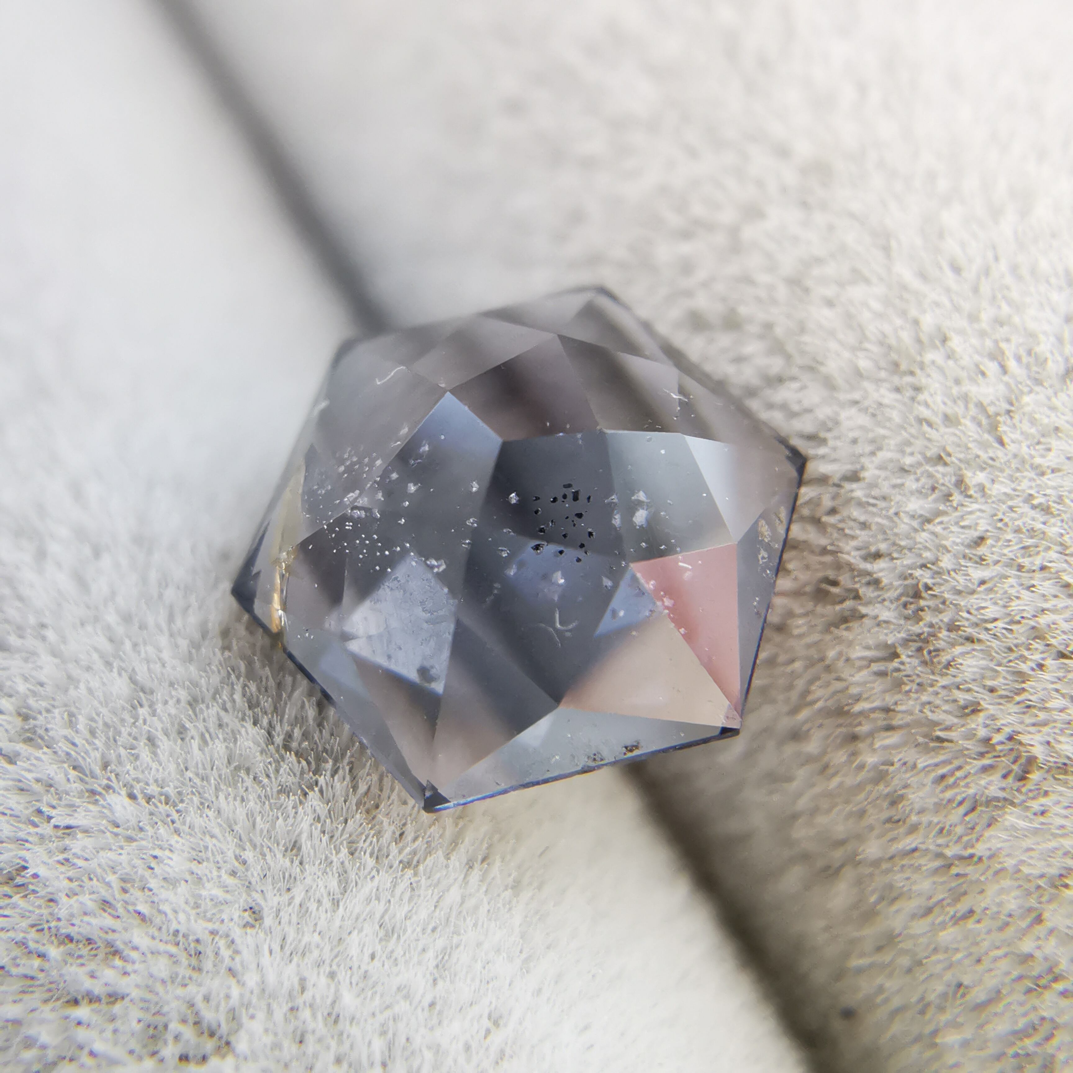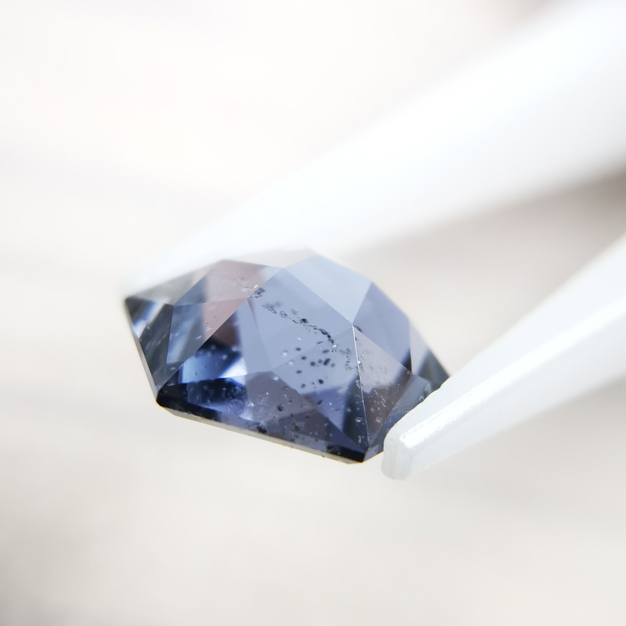 淡いグレーに、見る角度により本当にわずかに紫み青みを感じるスピネルです。