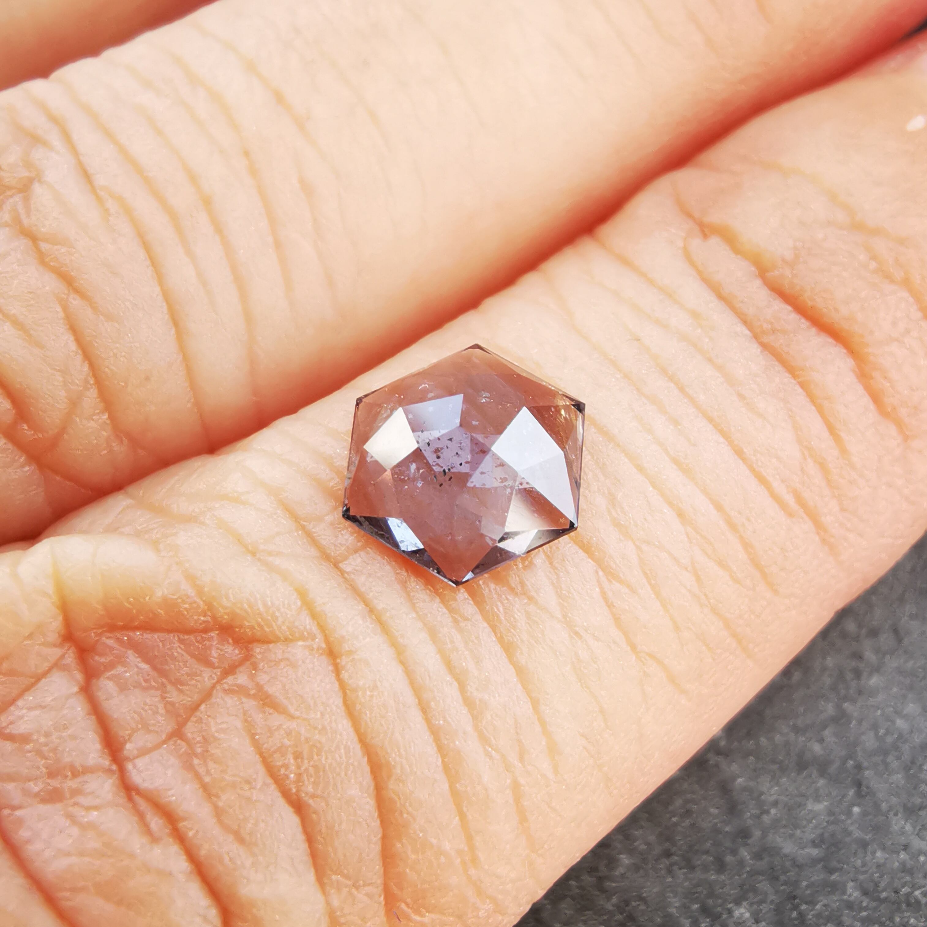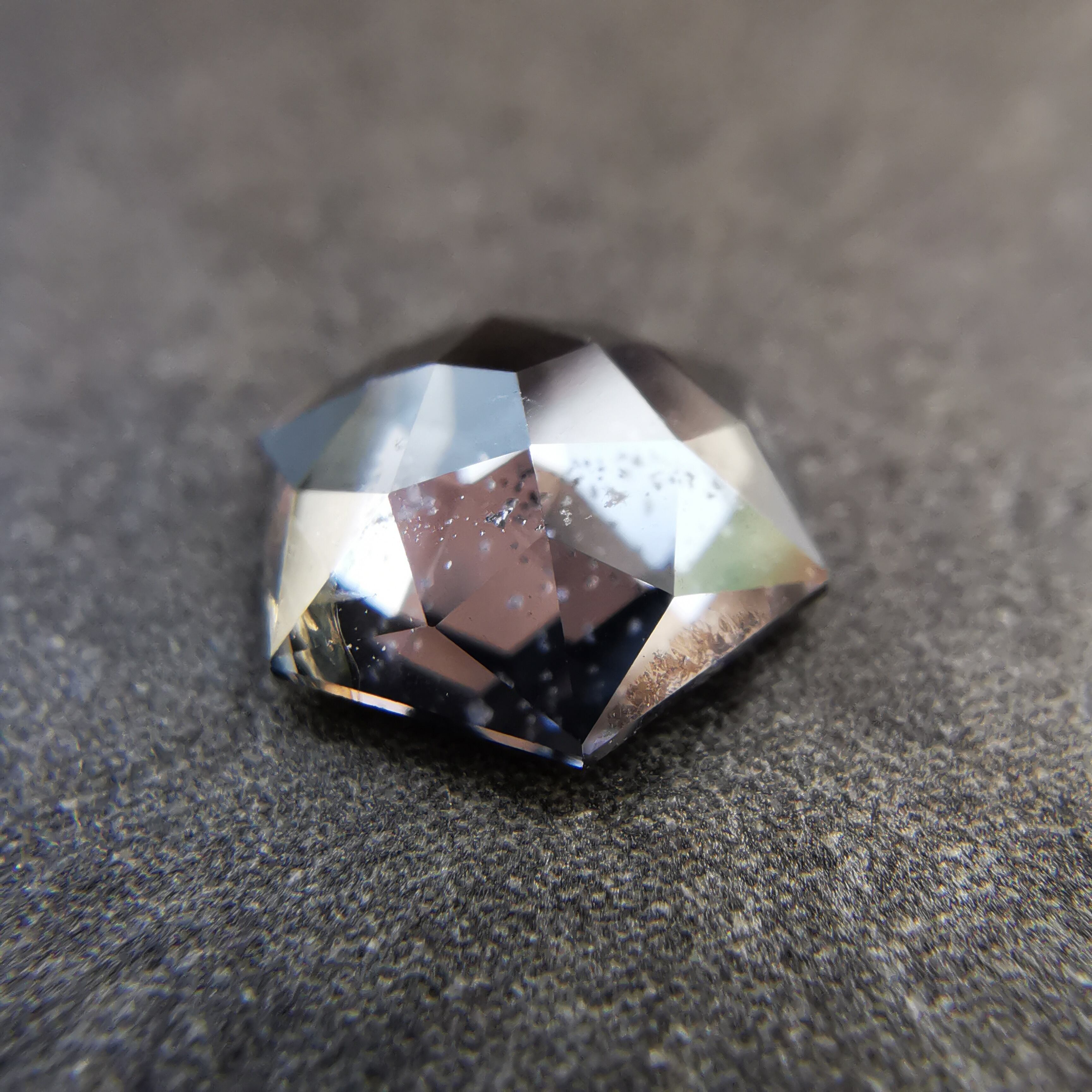 真上から見ると色が薄く、横から見ると色が濃く見えるのもローズカットの面白さです。