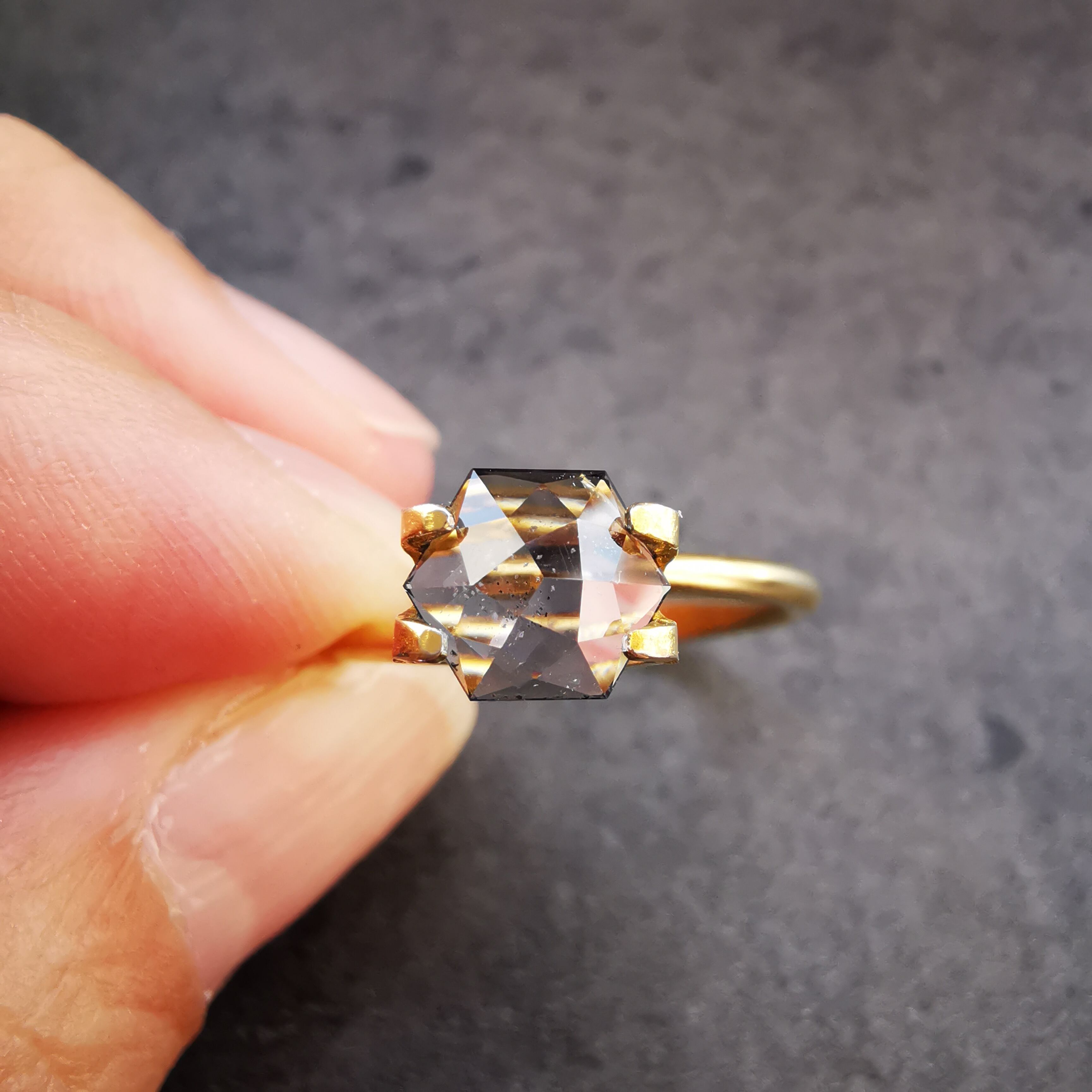 スピネルはローズカットにすると、表面のきらめきがメタリックで、とてもクールな印象になります。