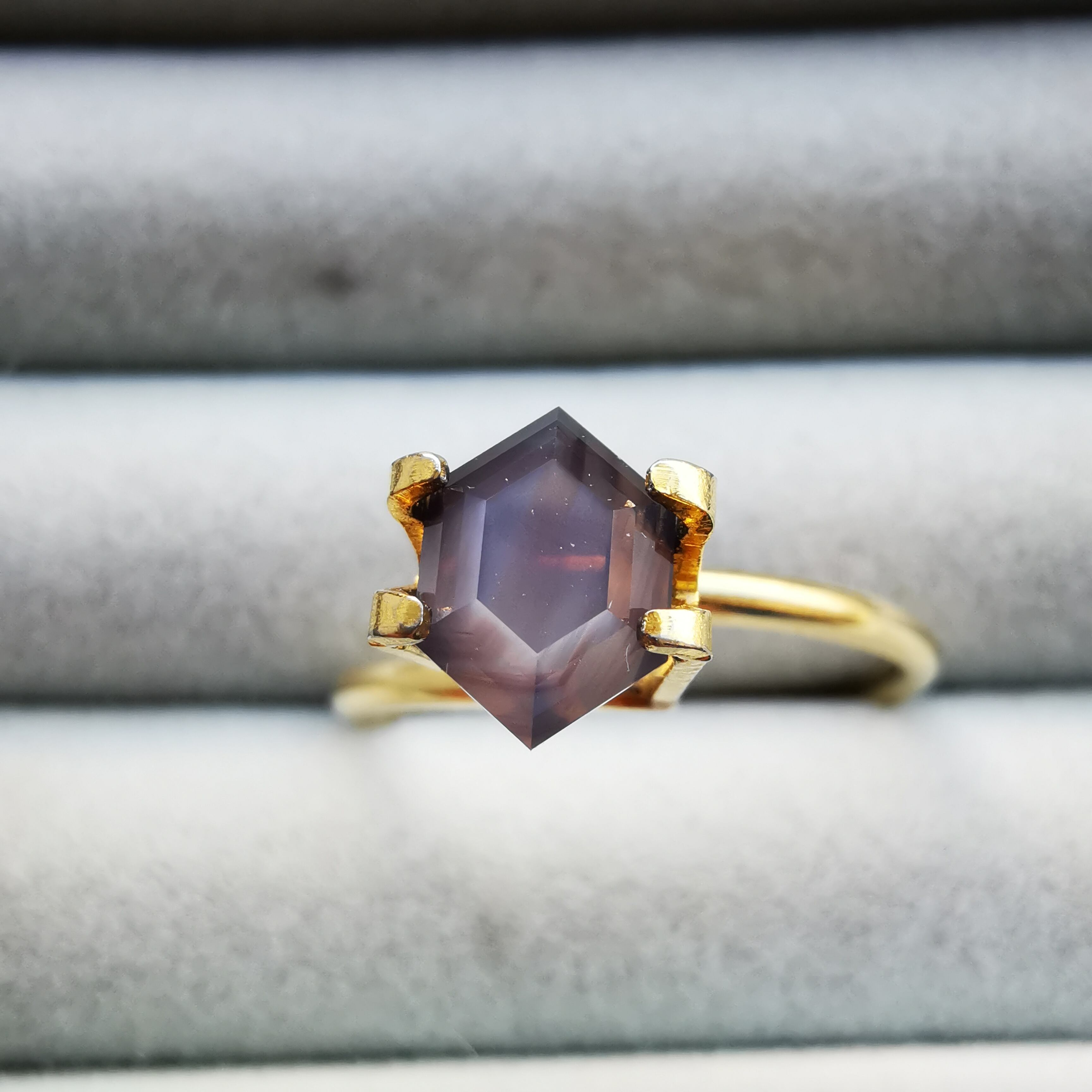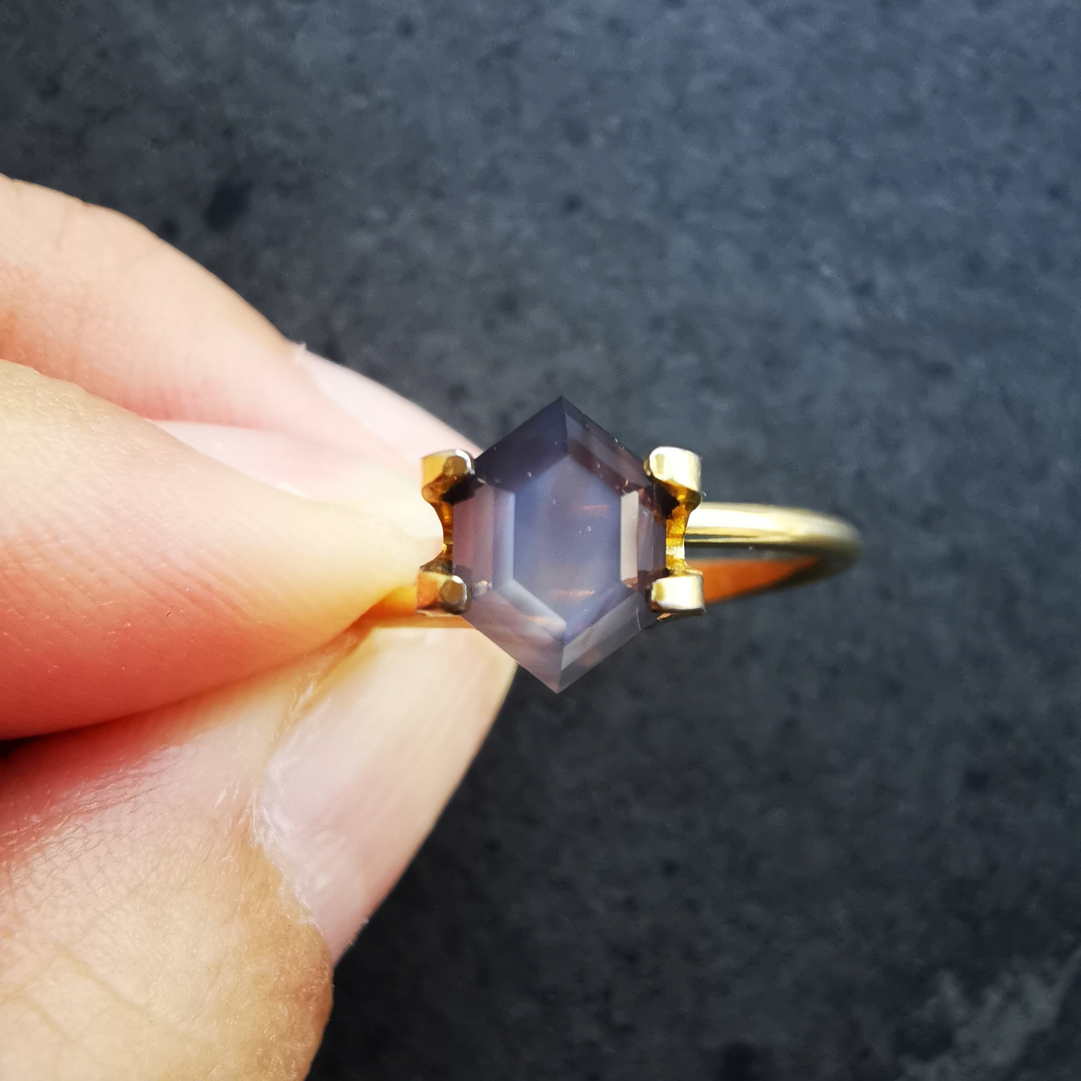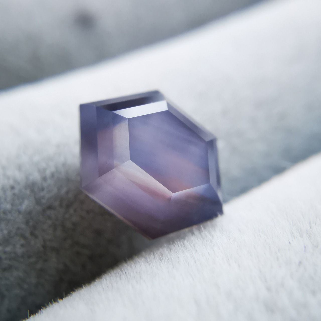 霞がかかった深い紫みのブルーグレー、フォグブルーのサファイアです。