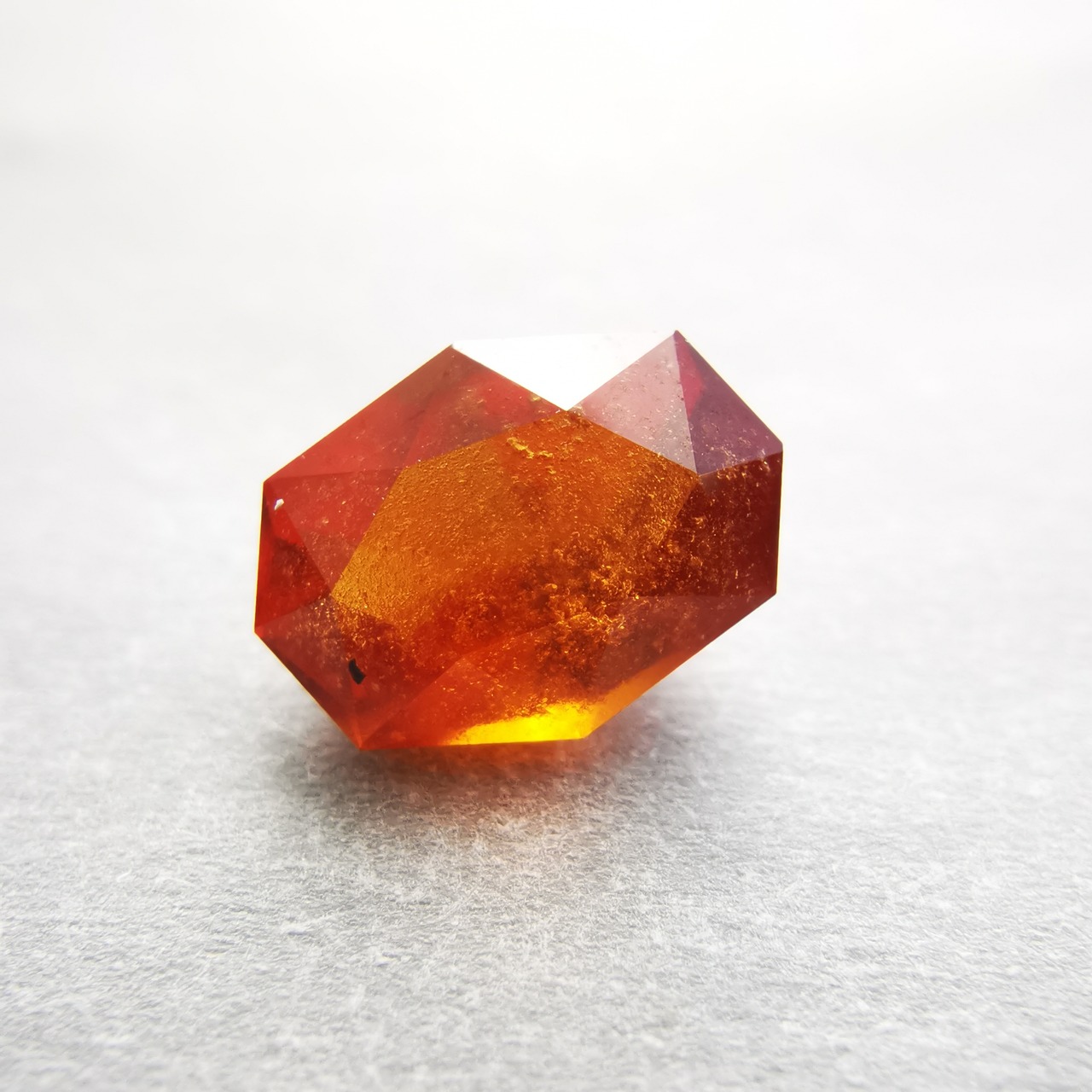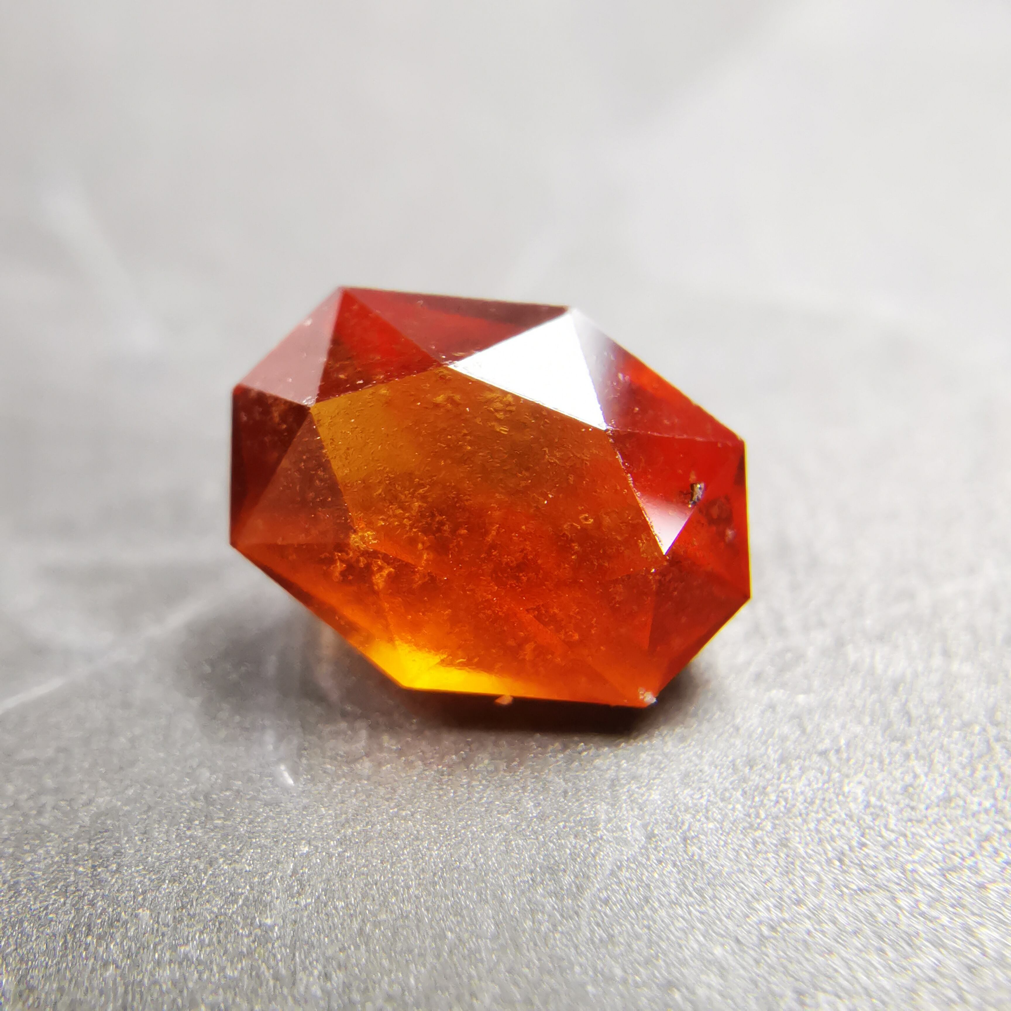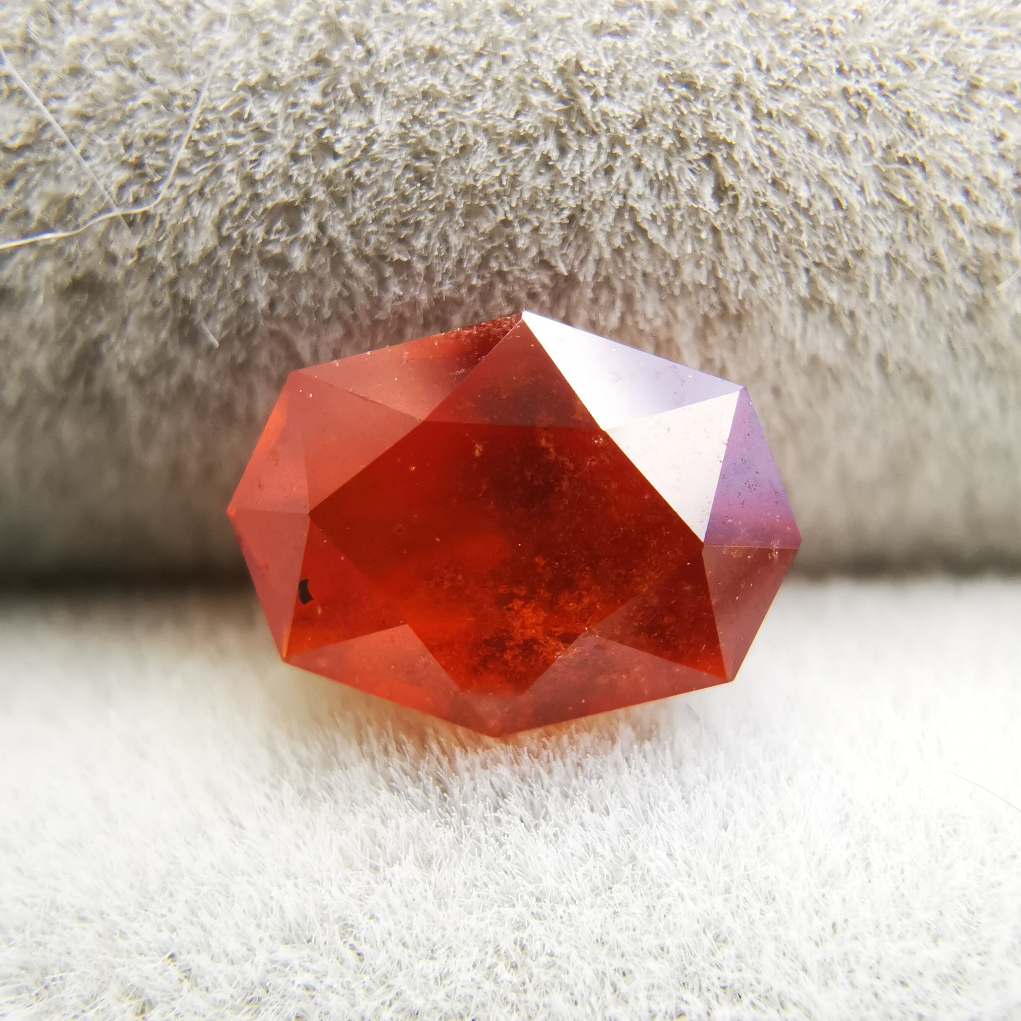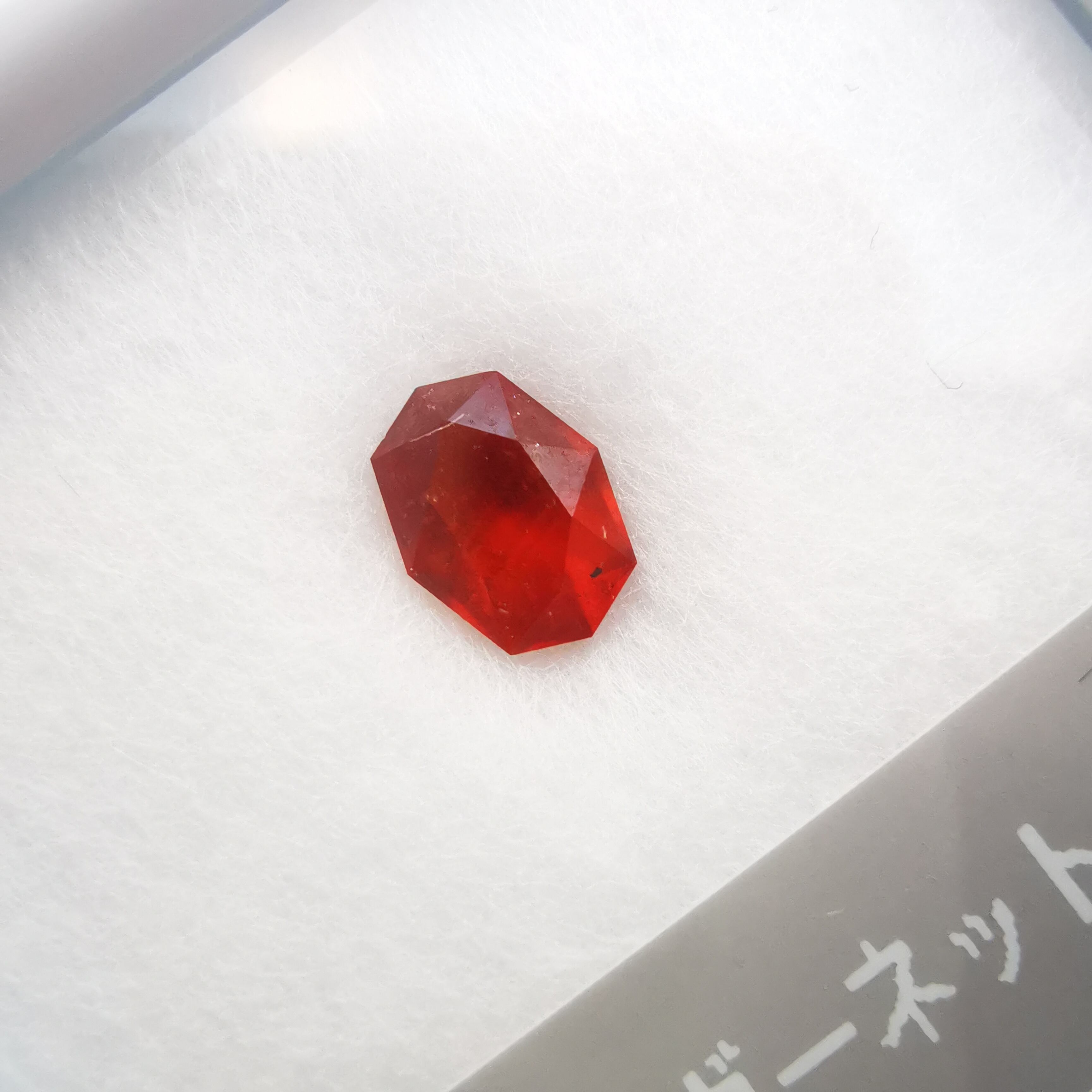 ヘソナイトガーネット特有の糖蜜状インクルージョンがたっぷりと入っているため、内側からぼわわっと光るのが特徴的です。