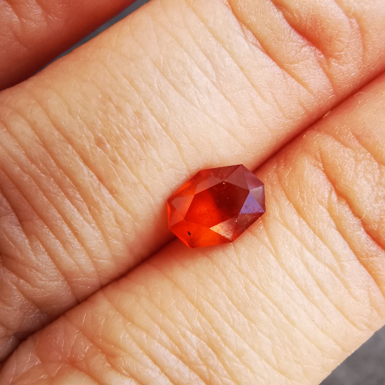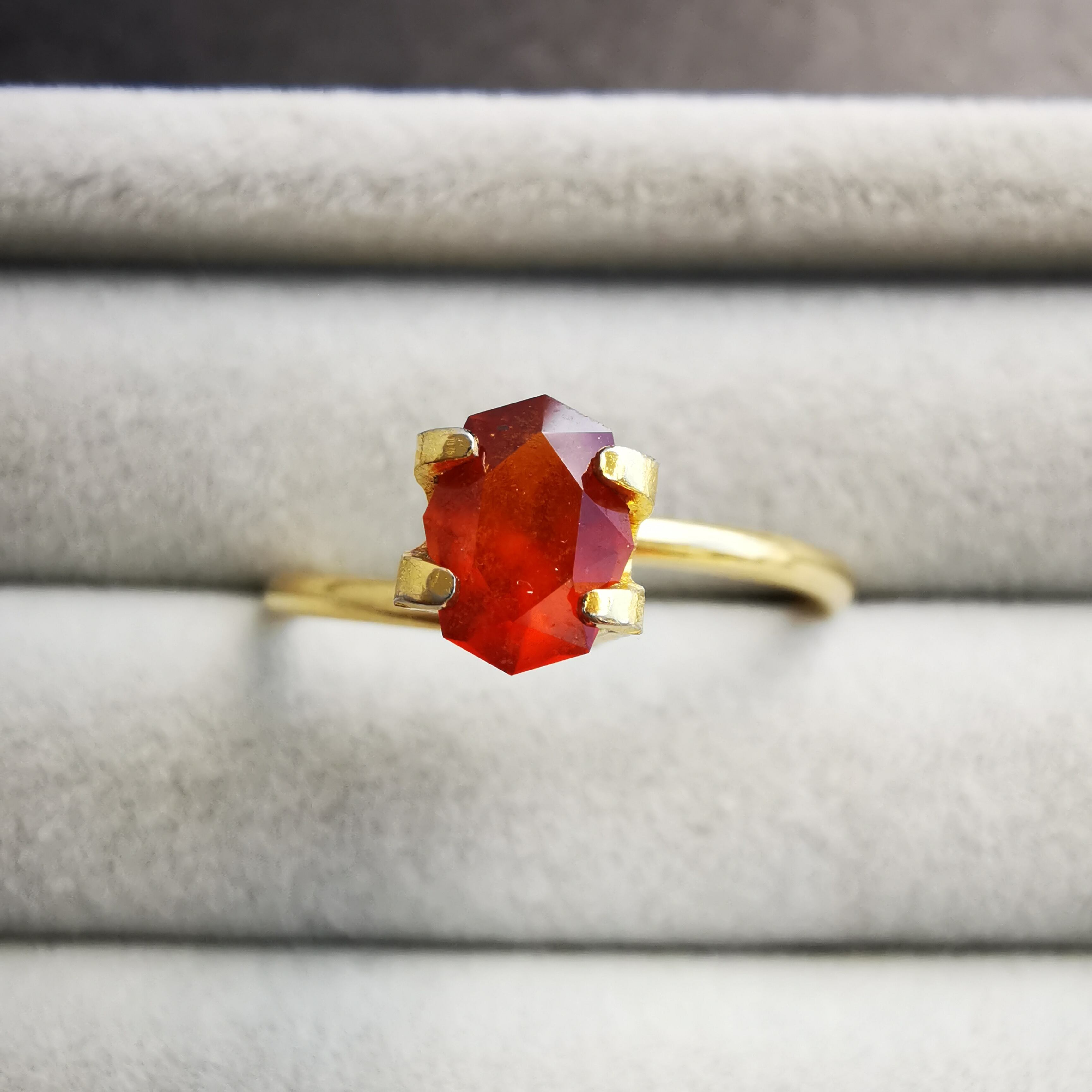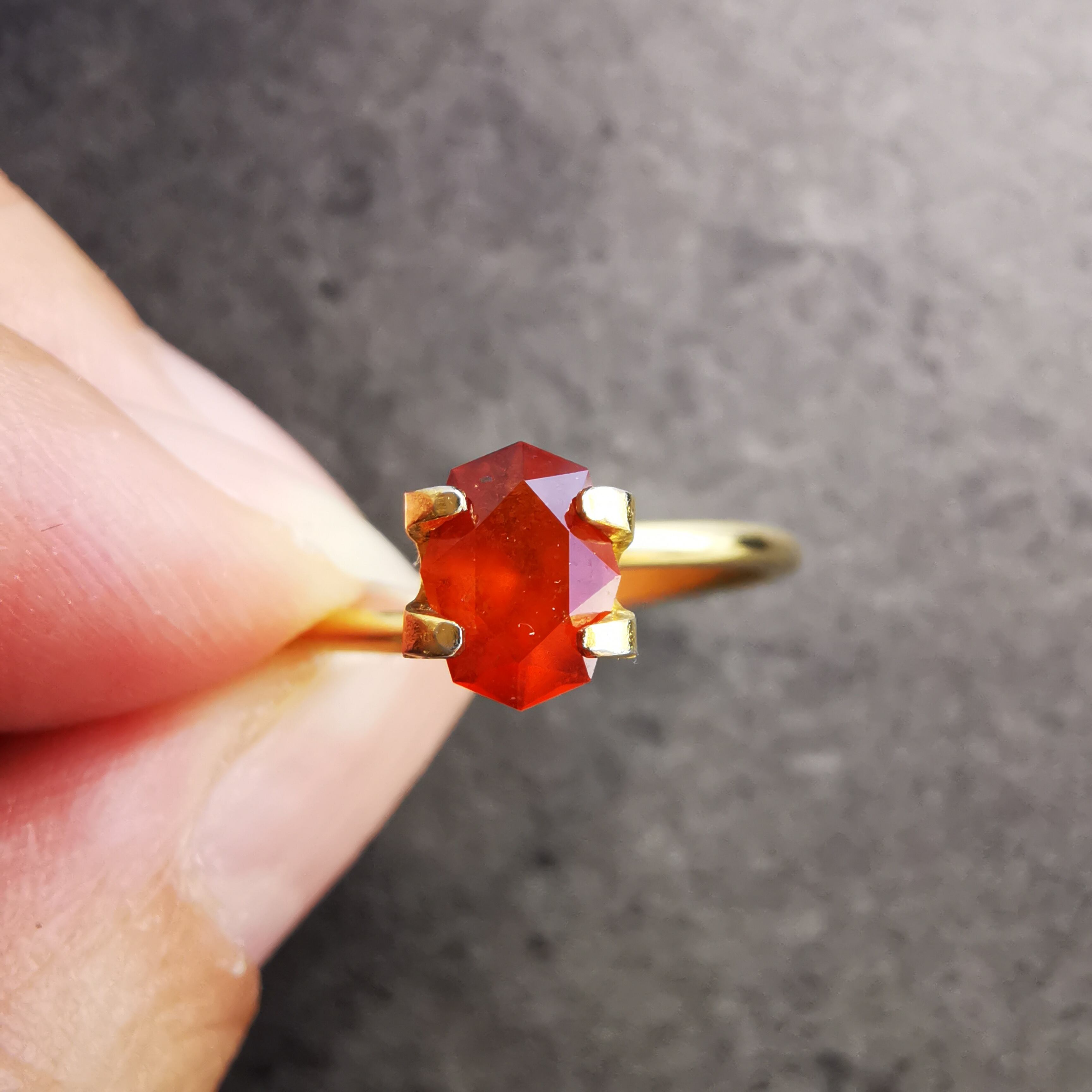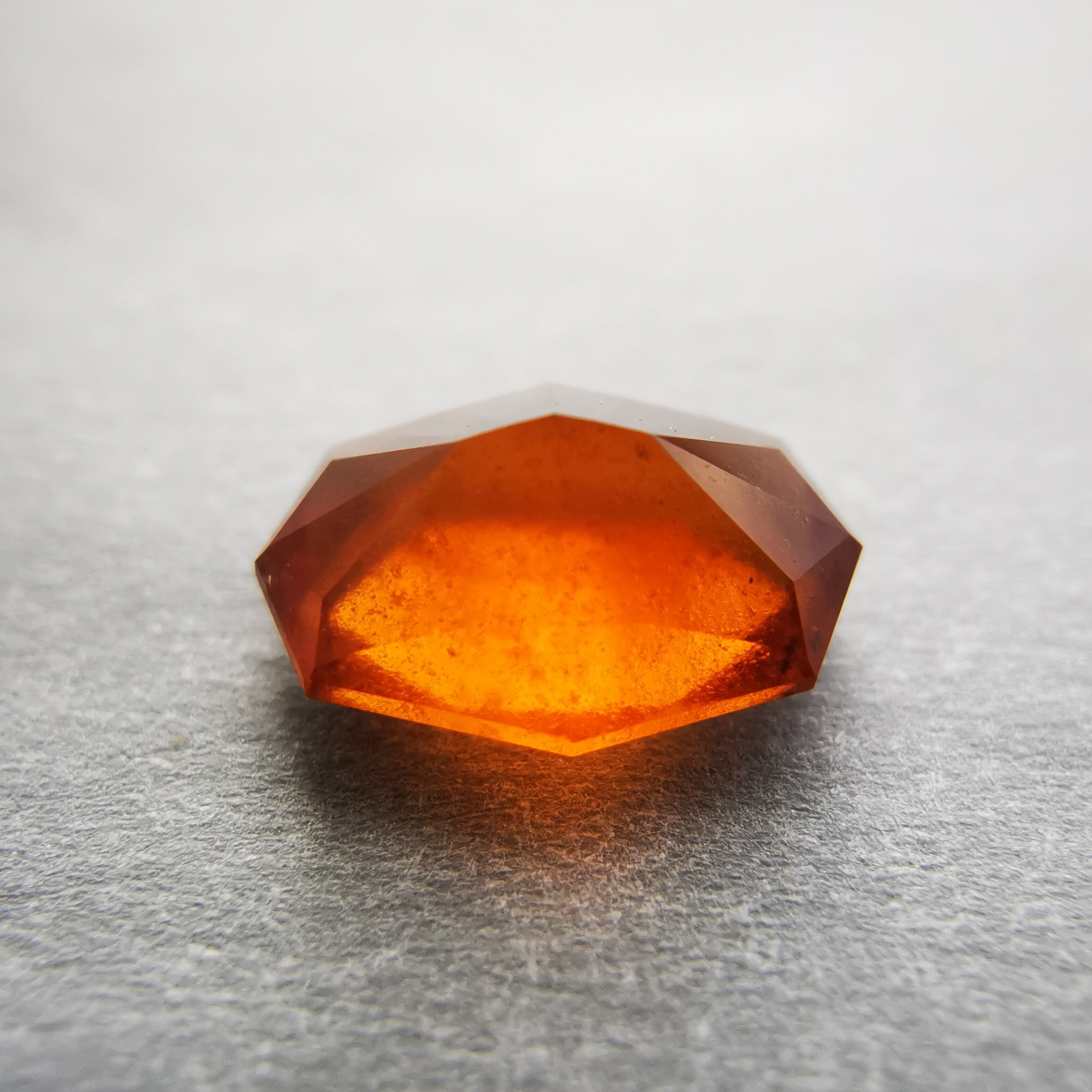 ヘソナイトガーネット特有の糖蜜状インクルージョンがたっぷりと入っているため、内側からぼわわっと光るのが特徴的です。