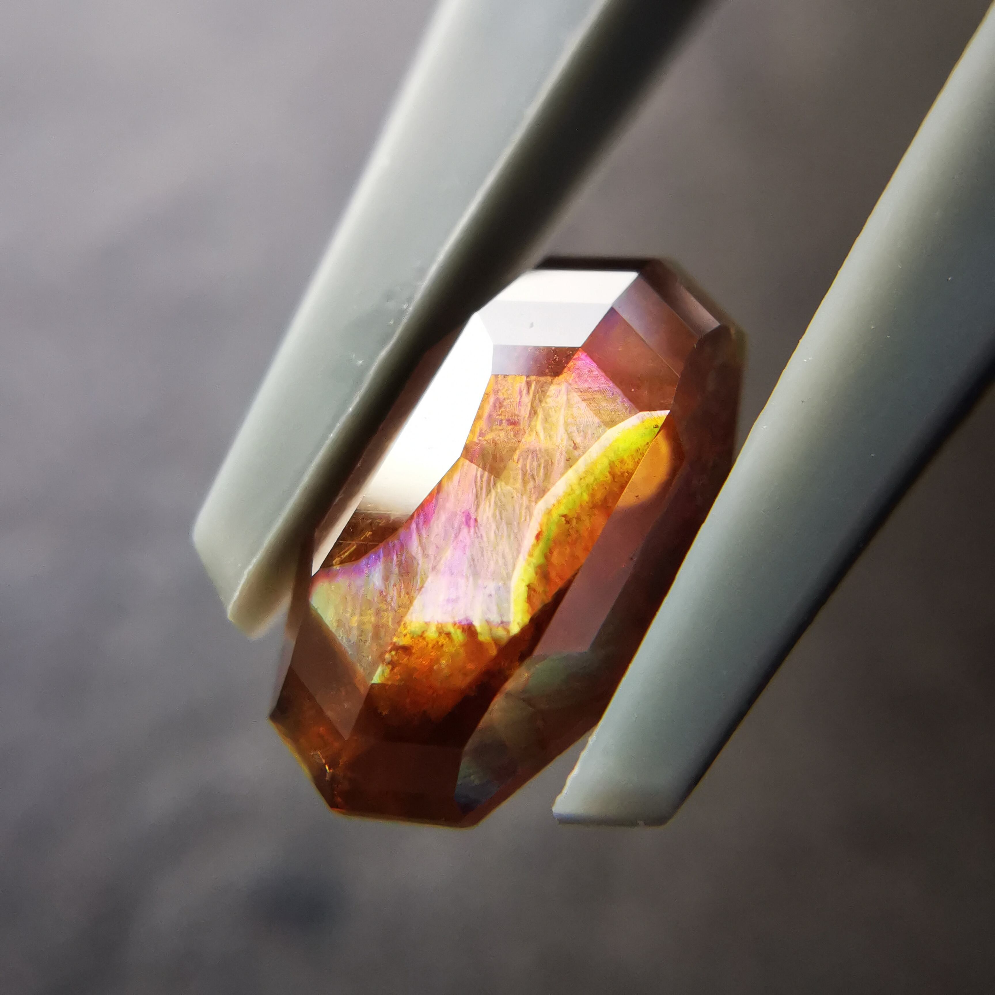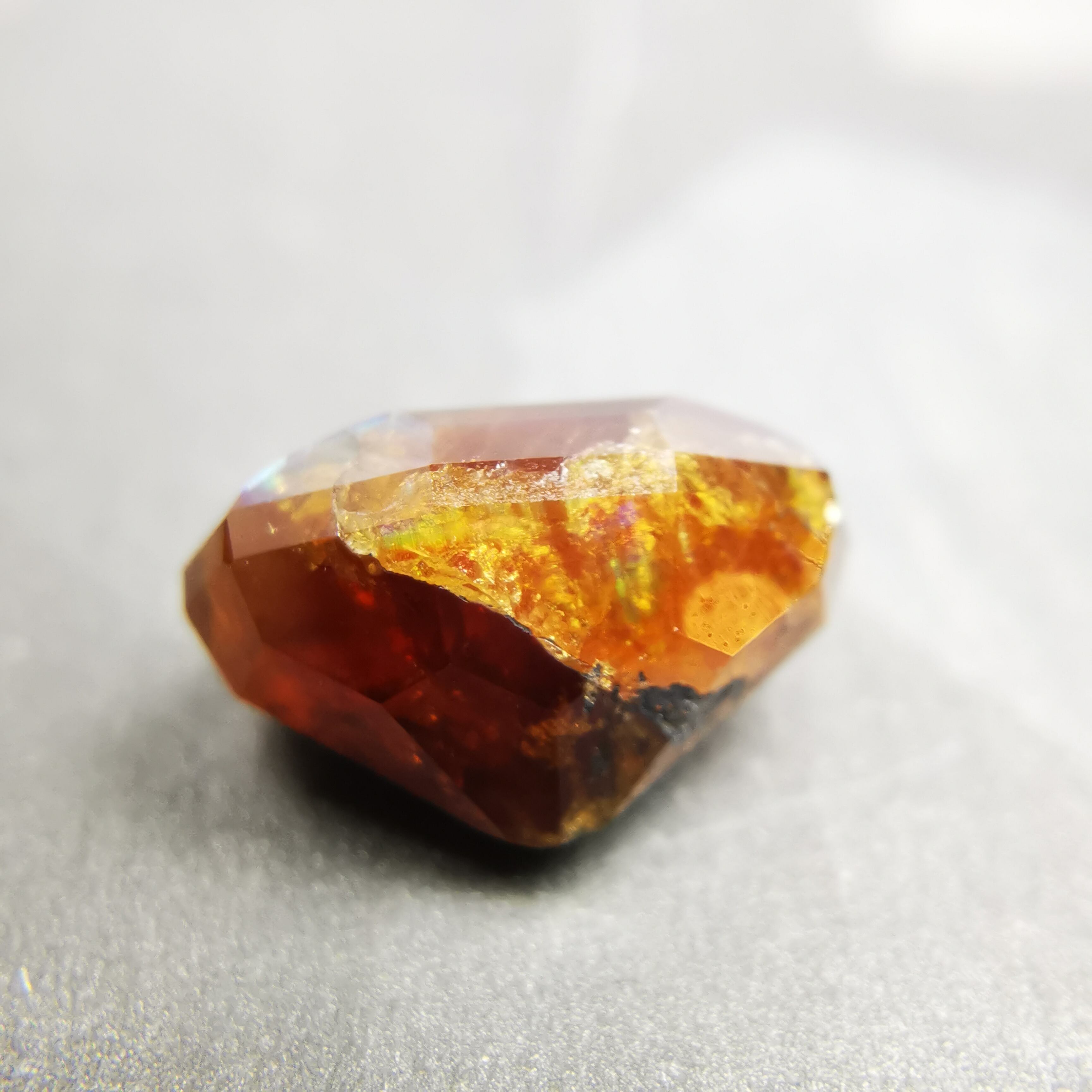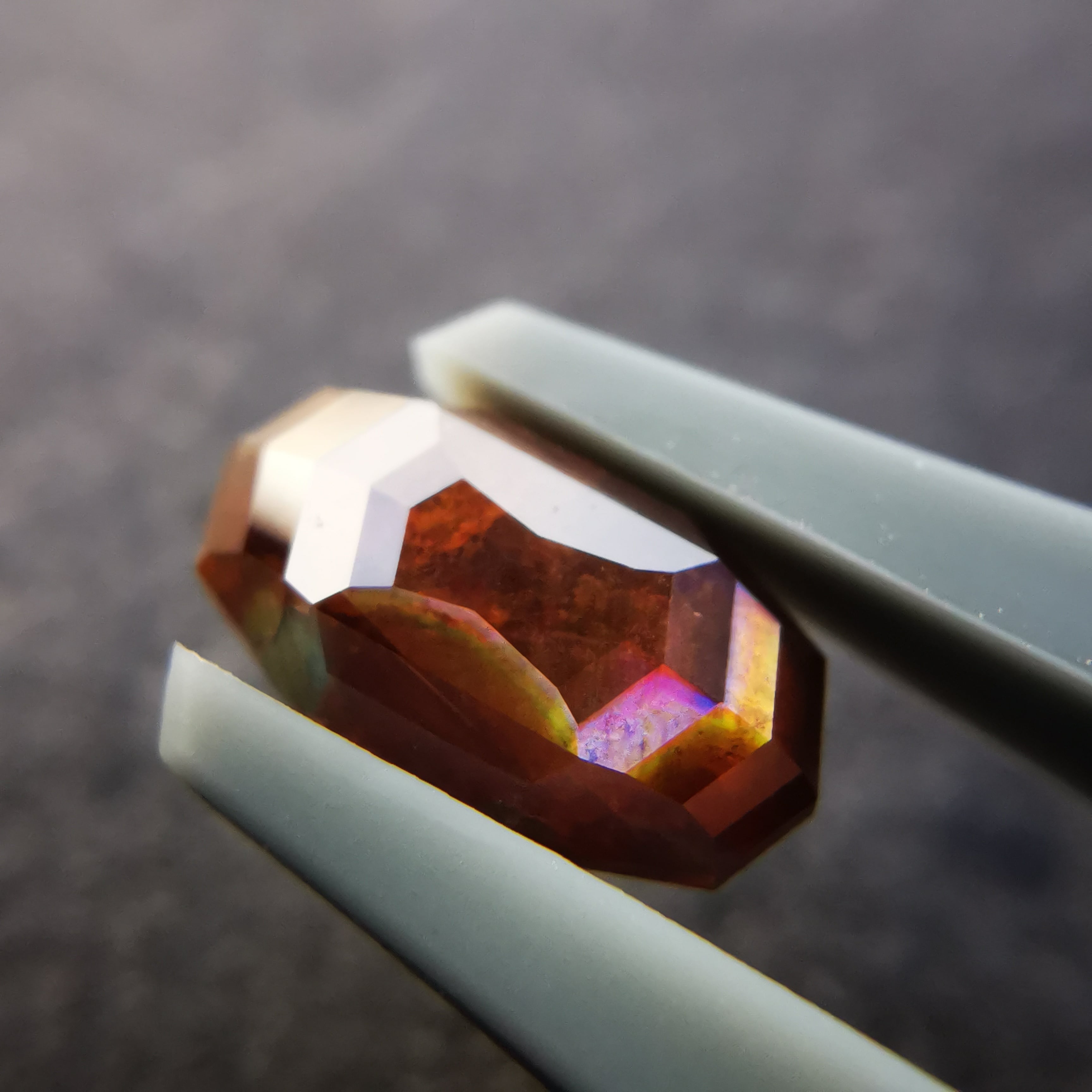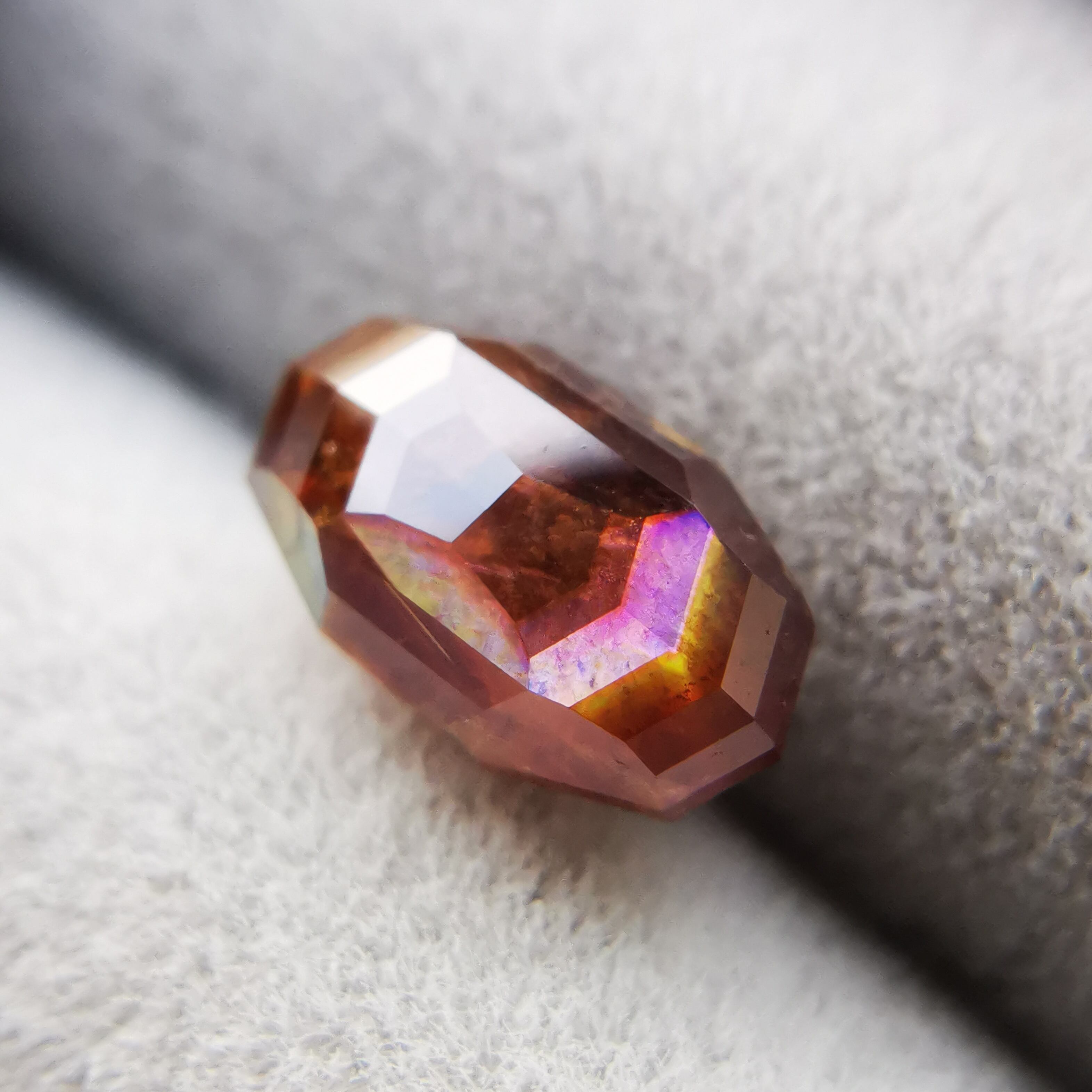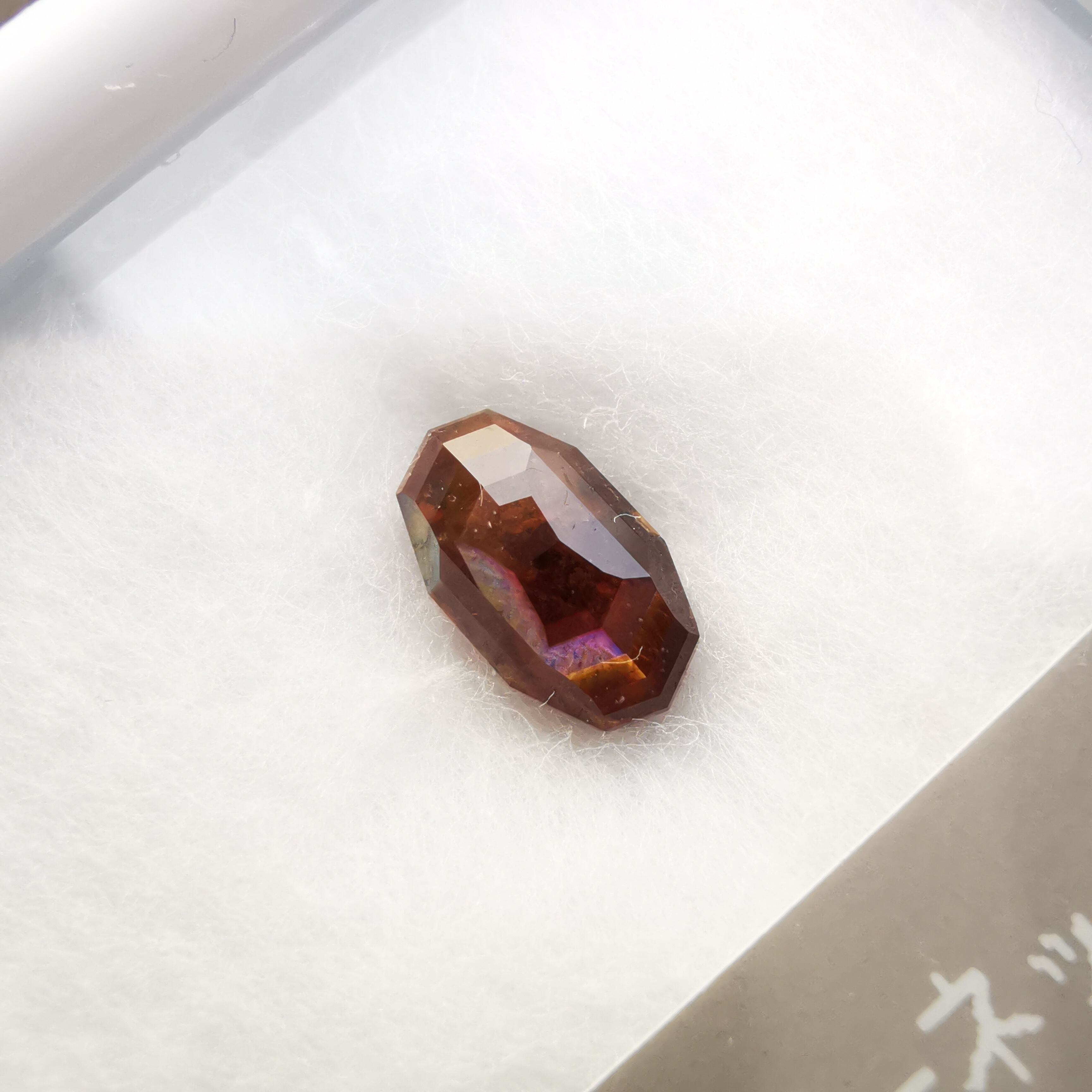 とても脆いレインボーガーネットを初めてカットしたカッターさん、かなり苦労したようでしたが、何とか仕上げてくれました。