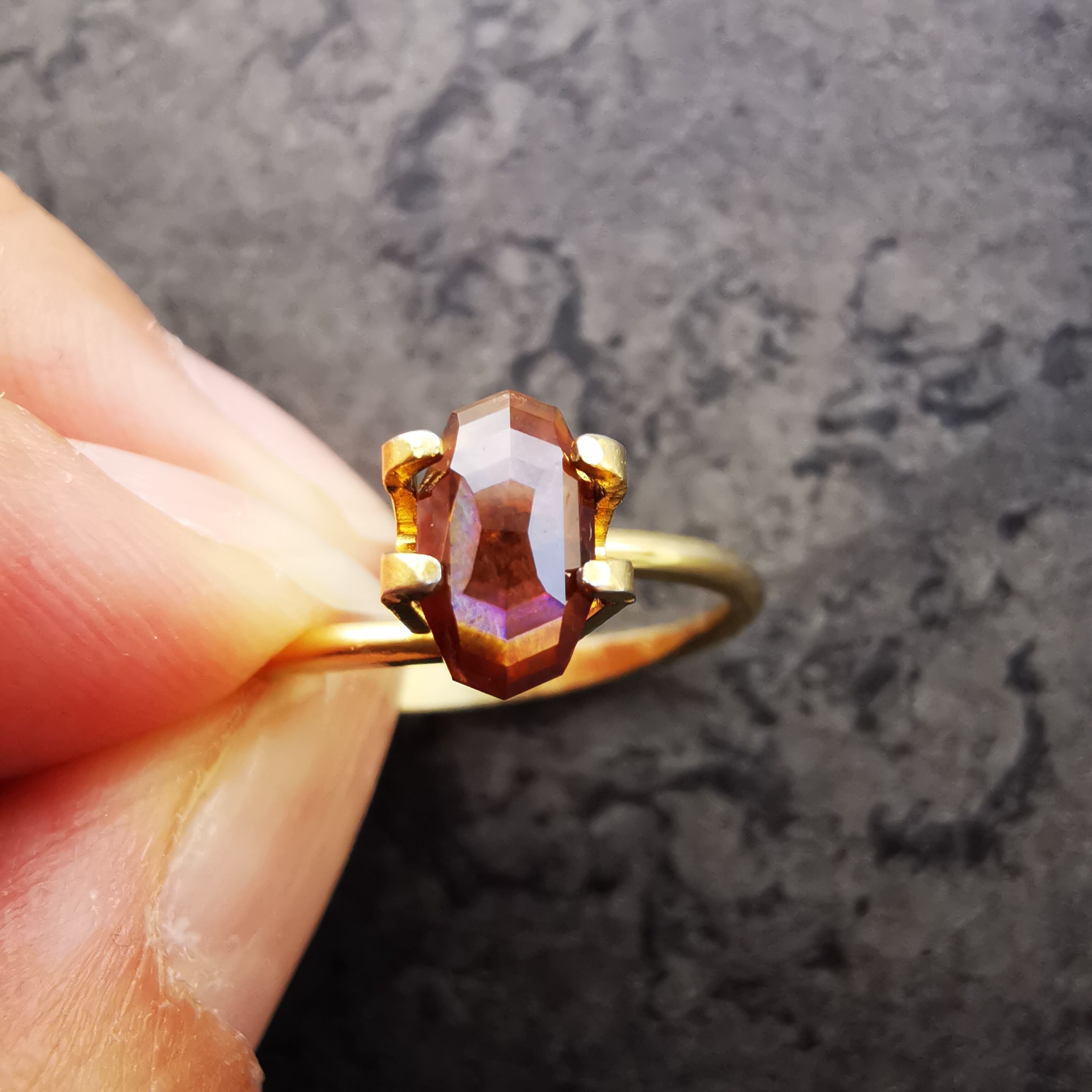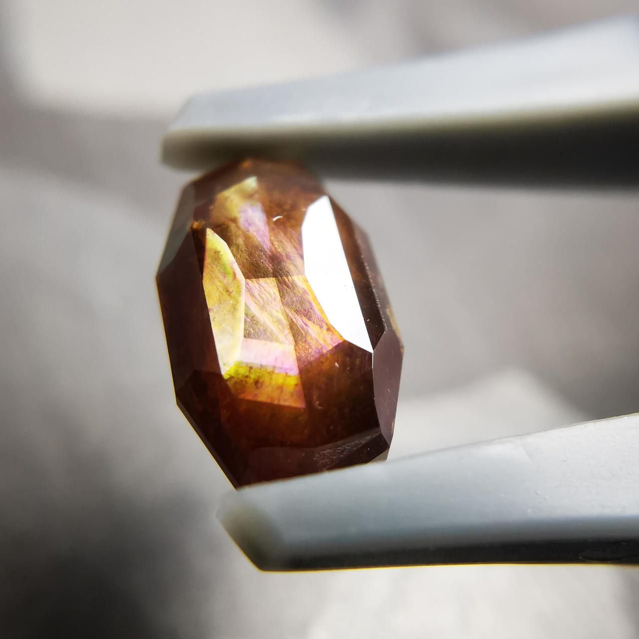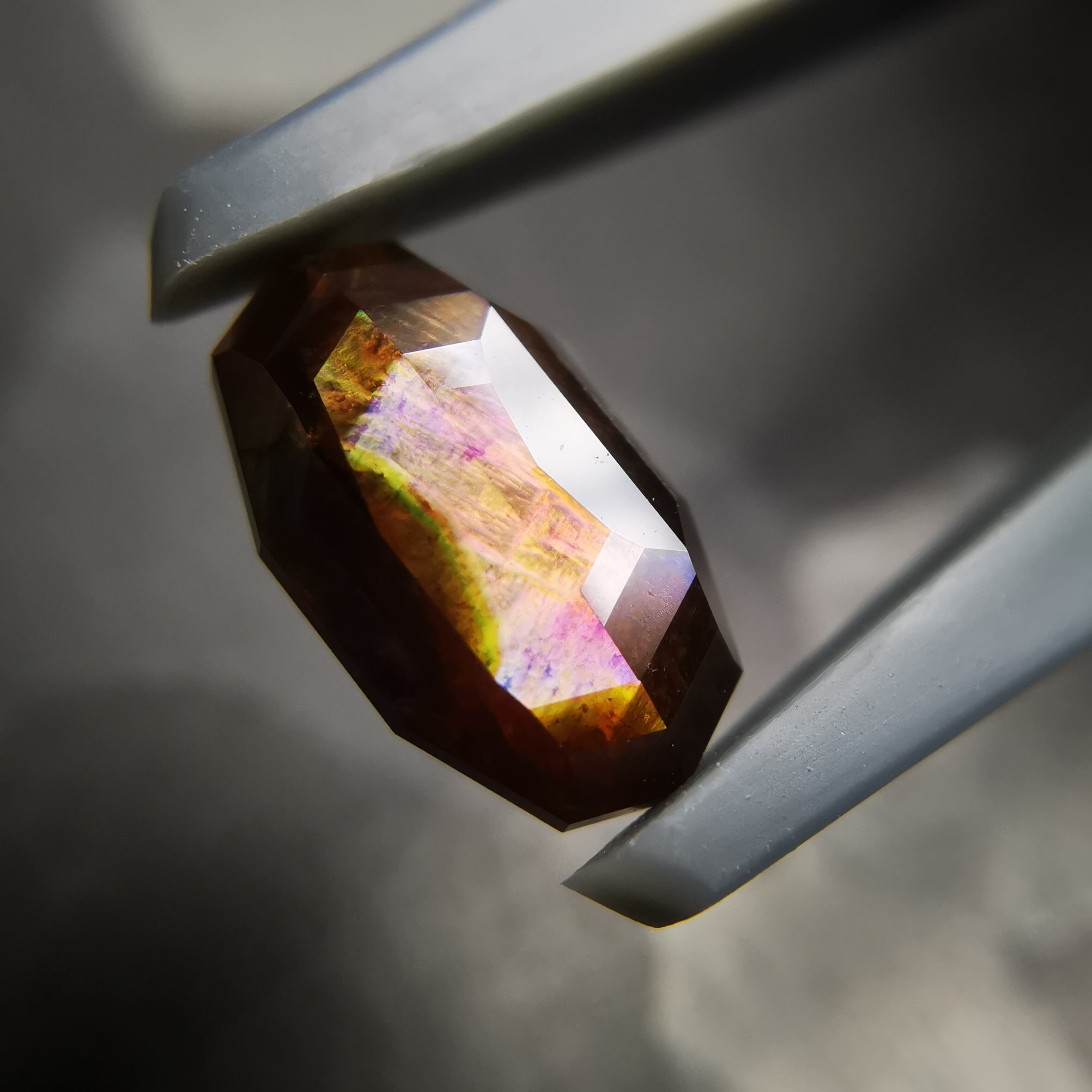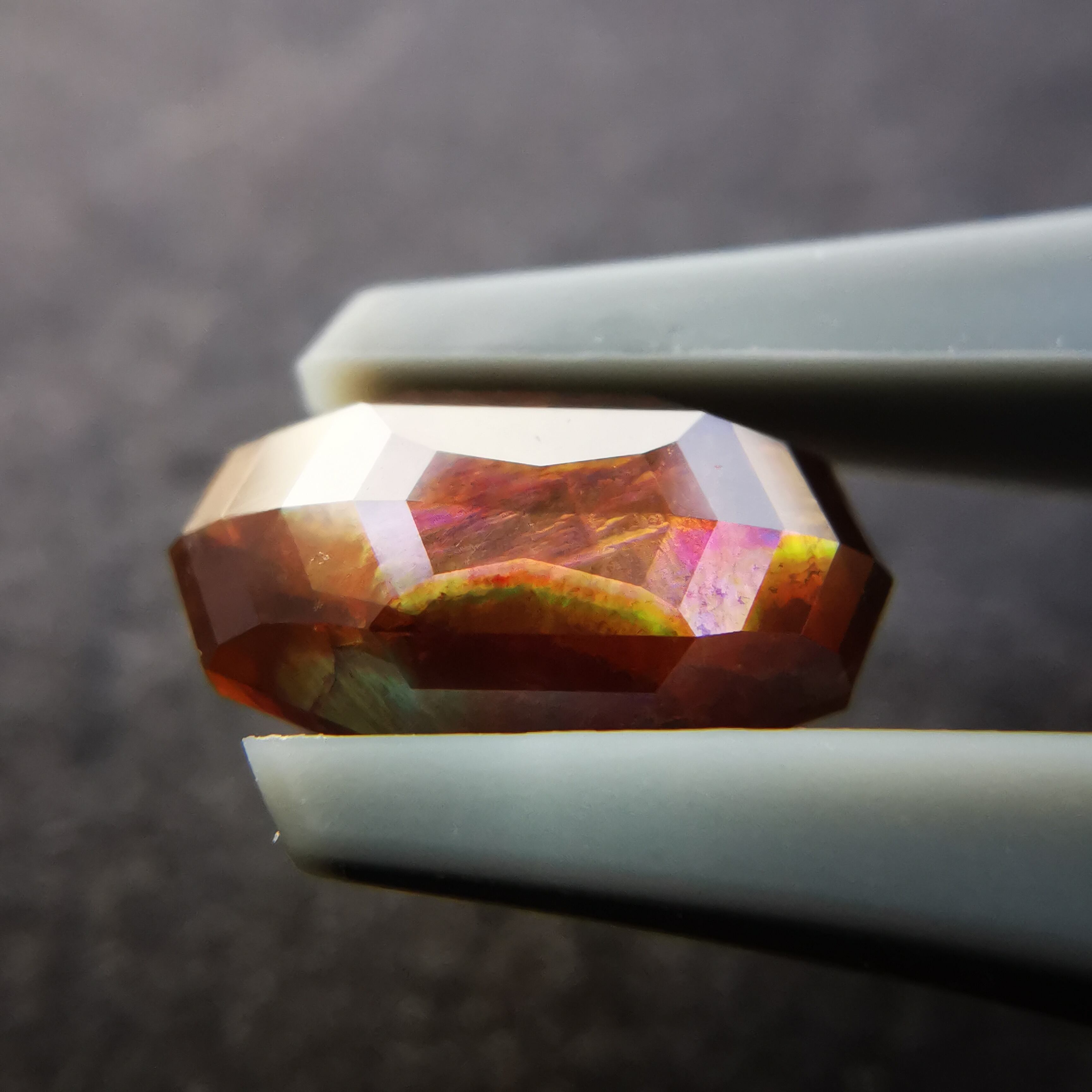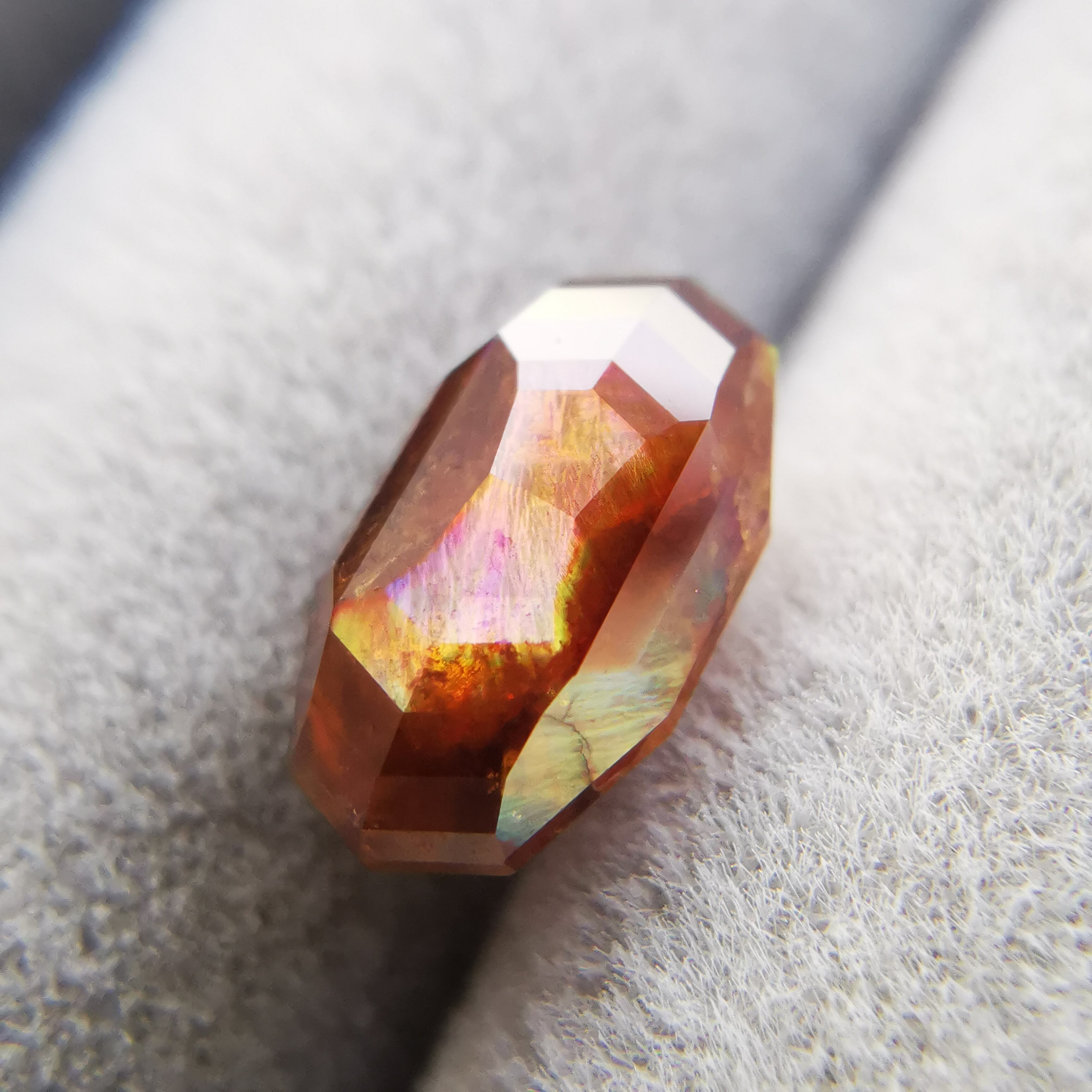 とても脆いレインボーガーネットを初めてカットしたカッターさん、かなり苦労したようでしたが、何とか仕上げてくれました。