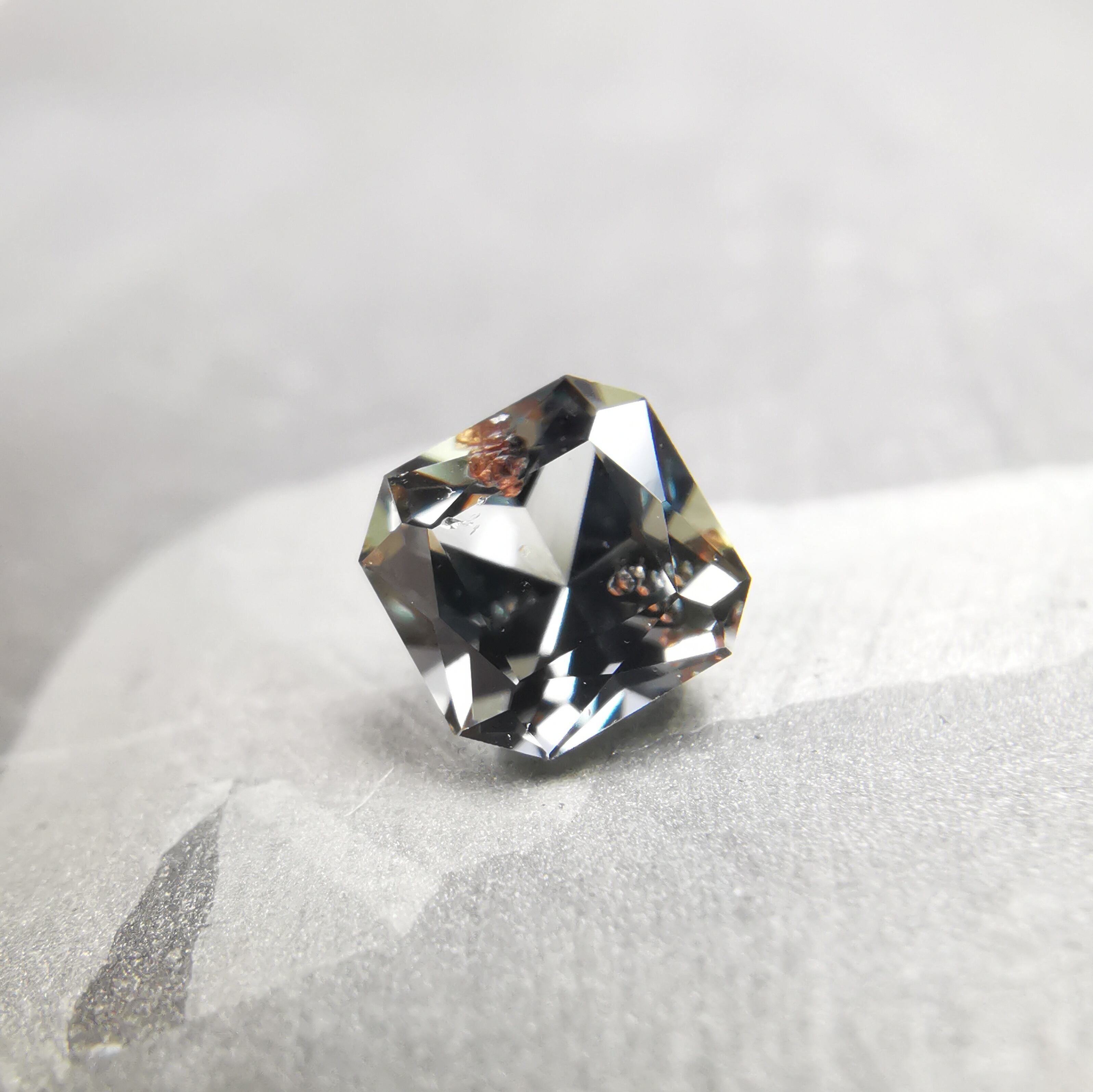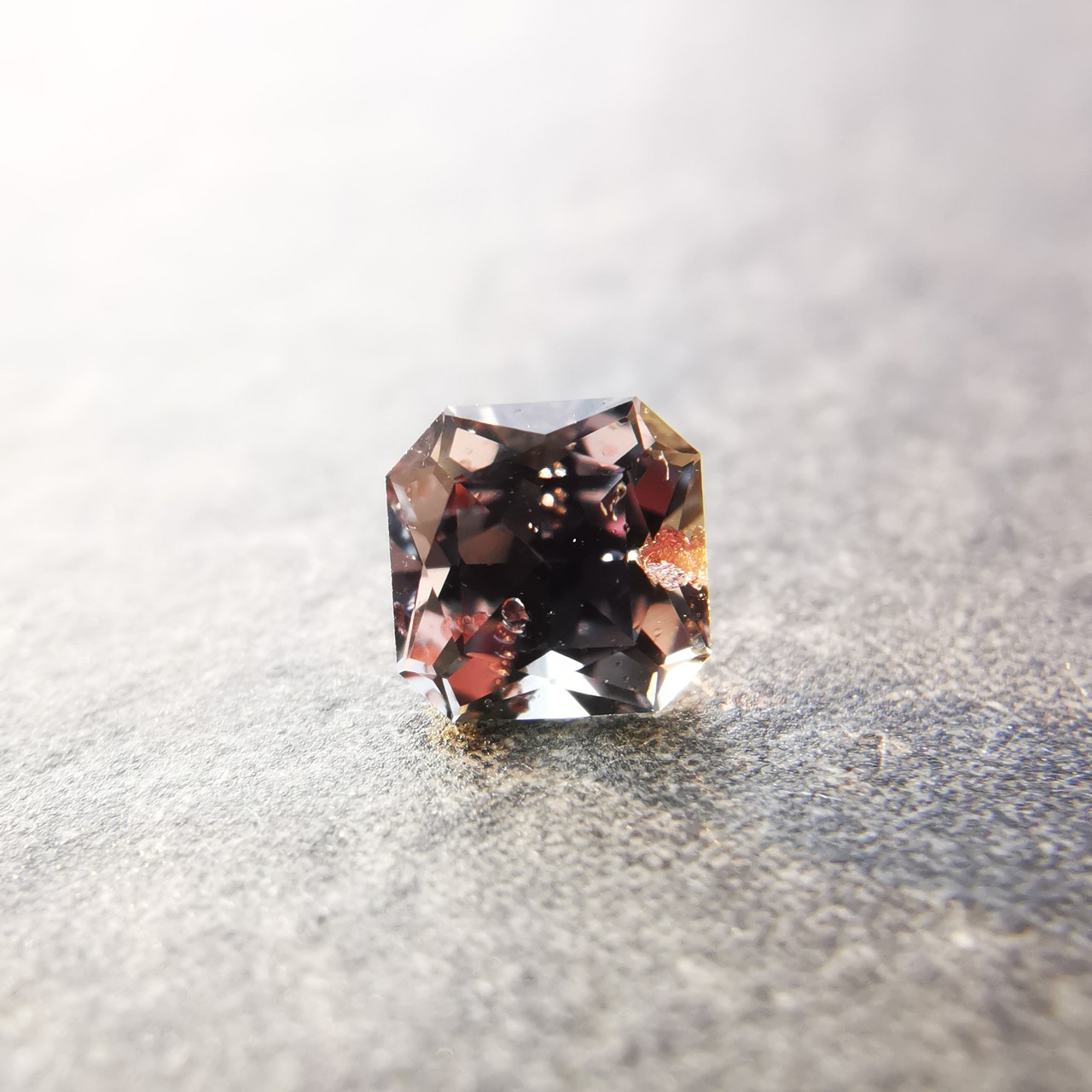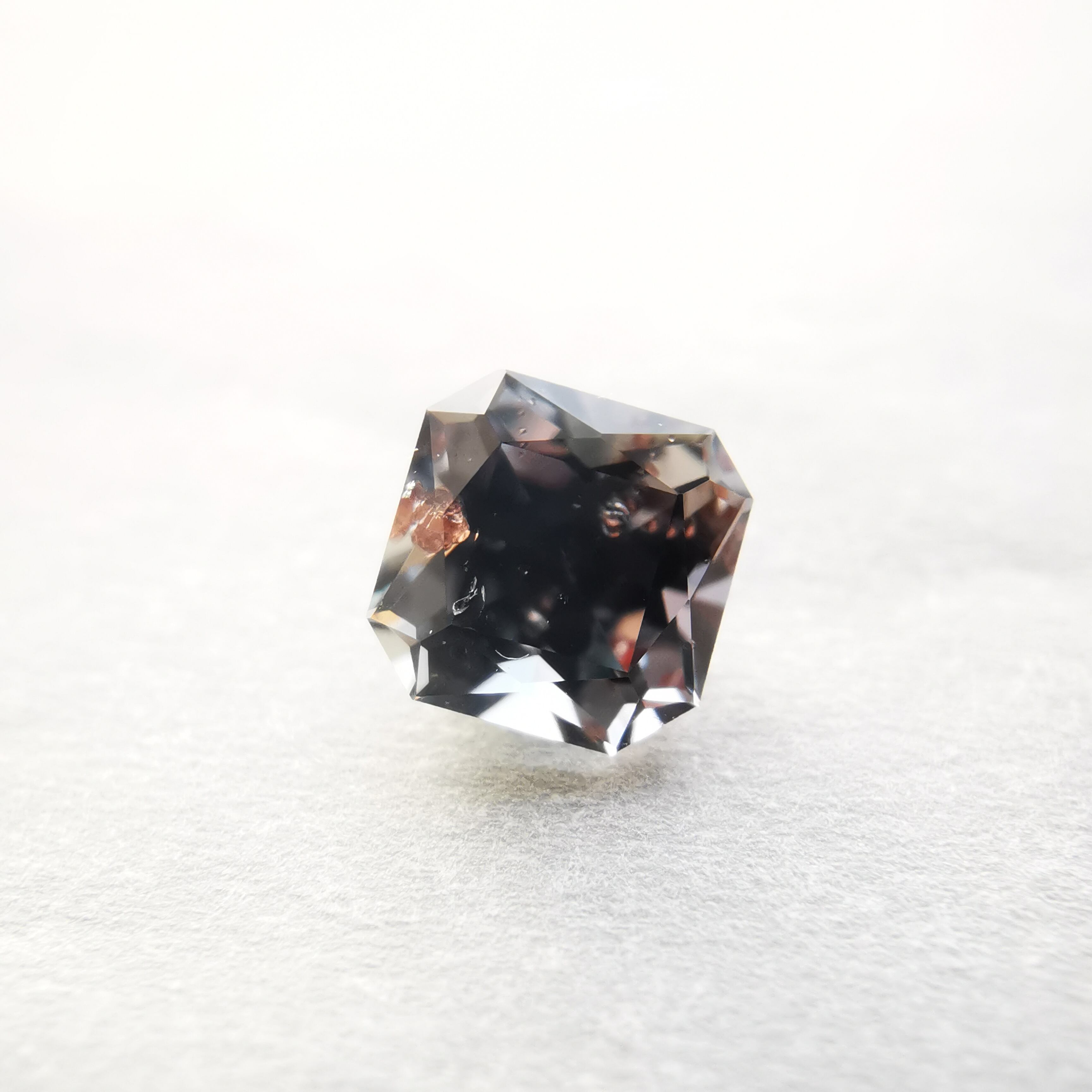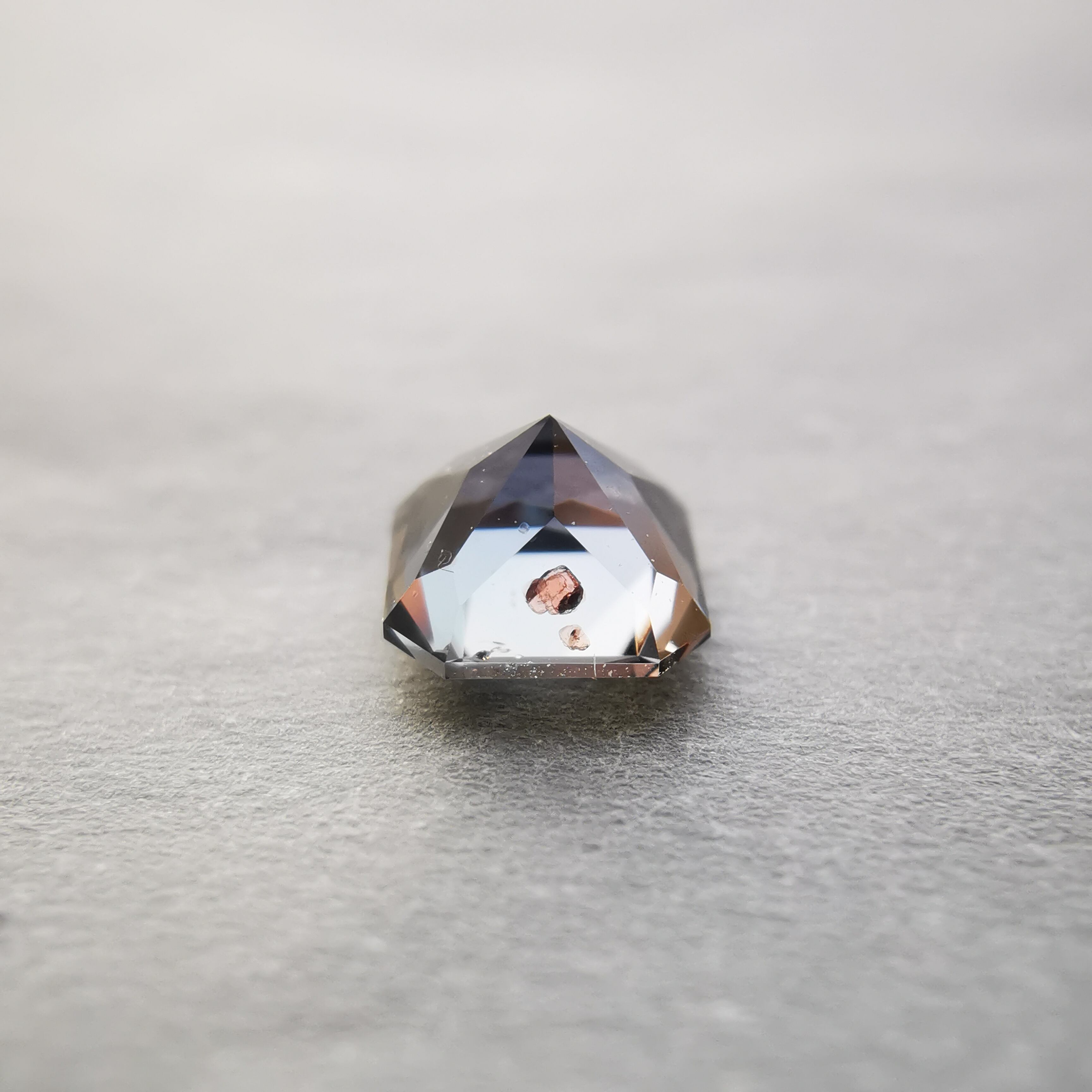 メタリックな輝きの透明グレーのサファイアに、赤いガーネットインクルージョンが入った一石です。