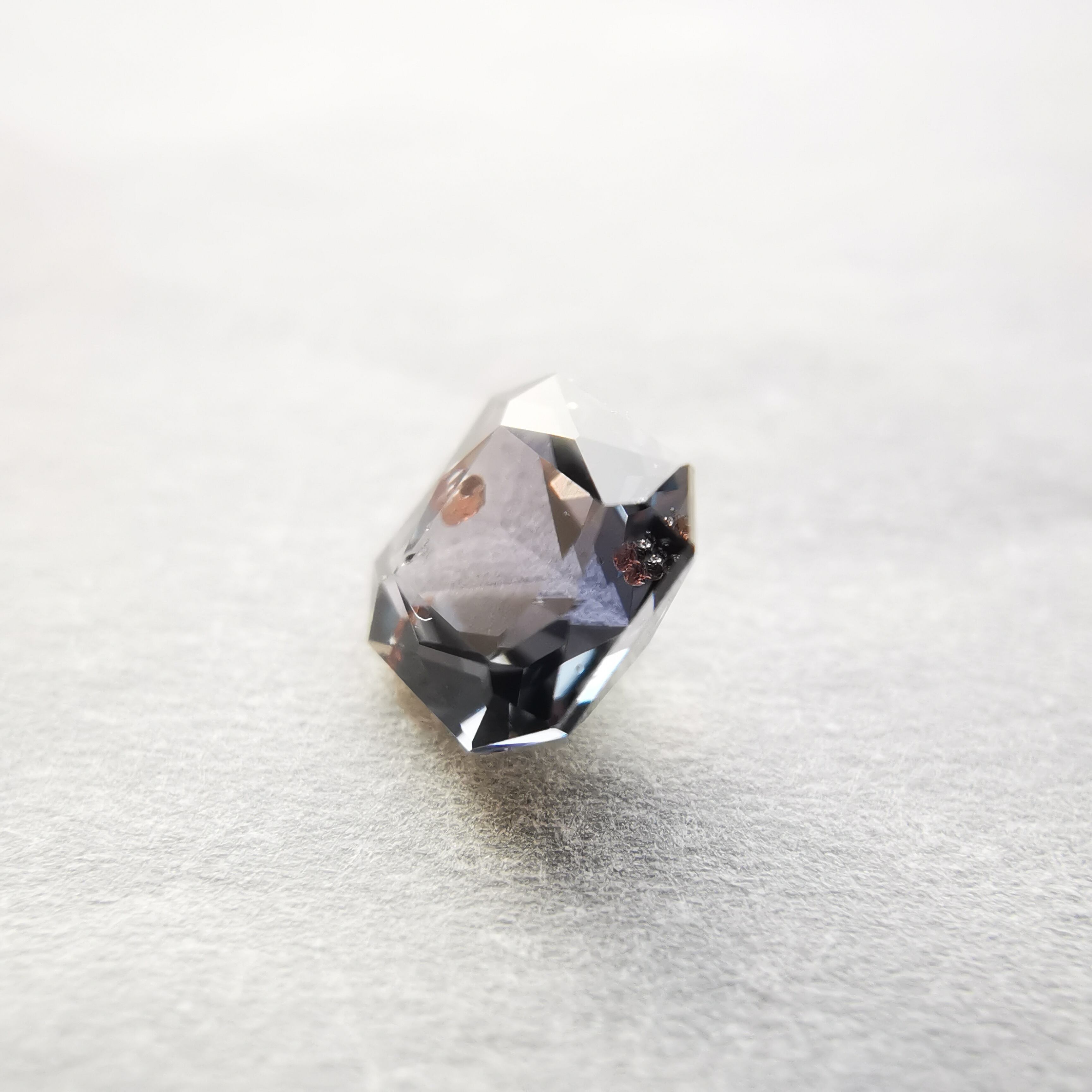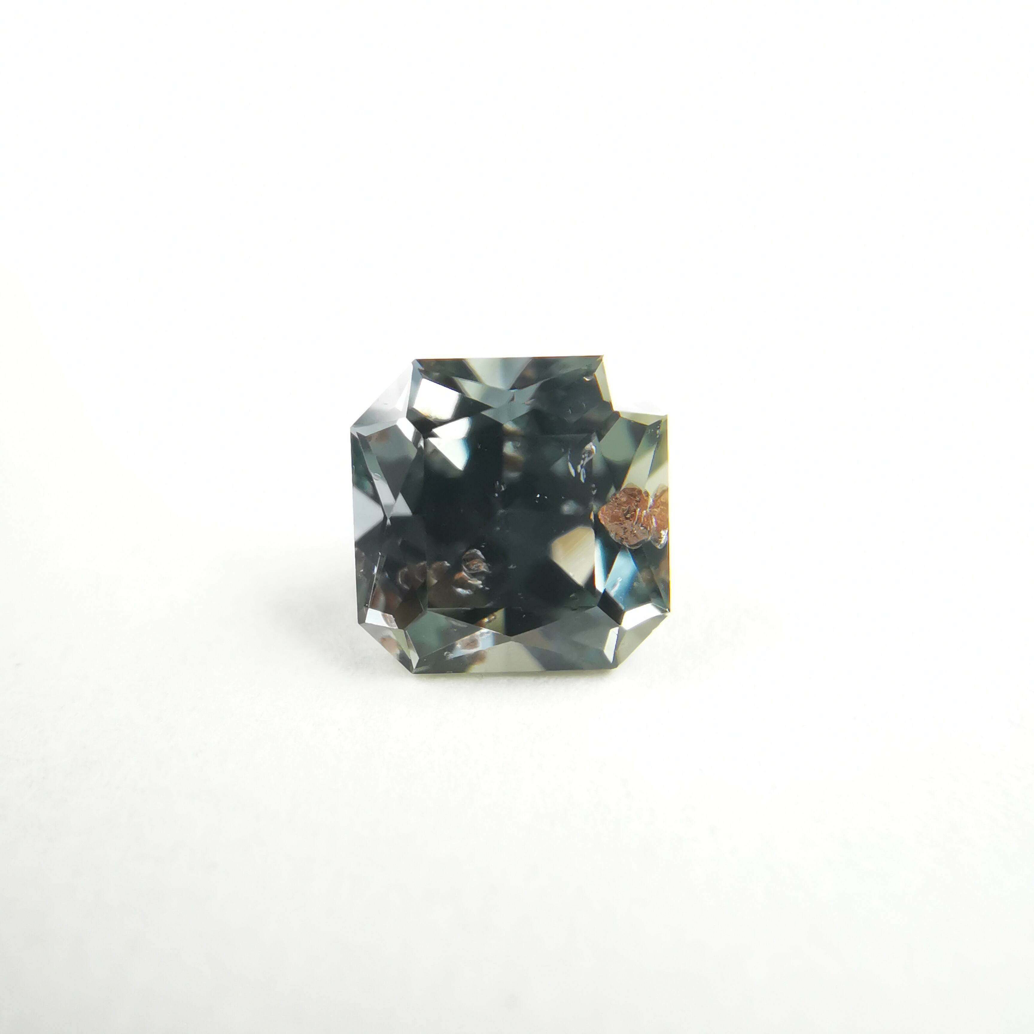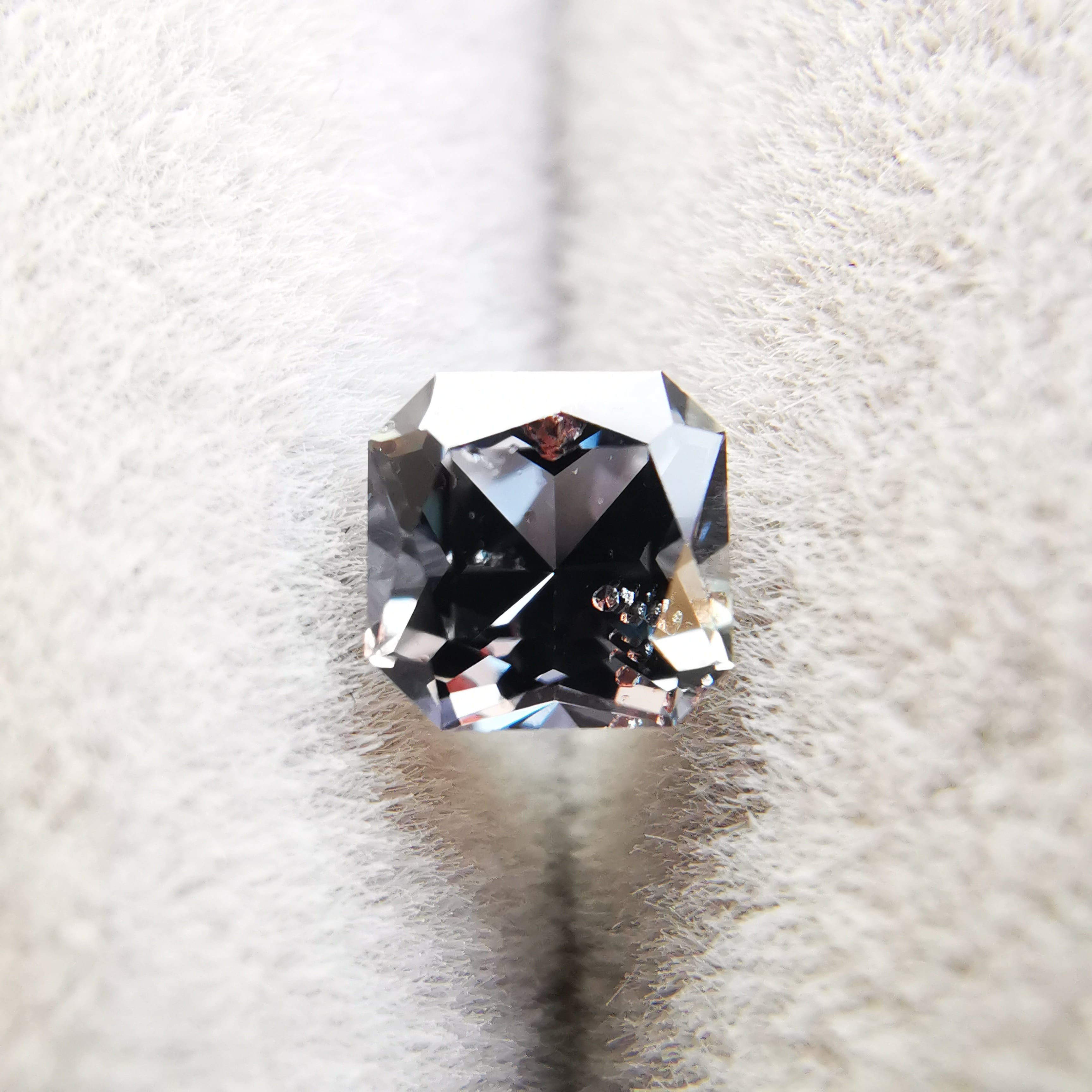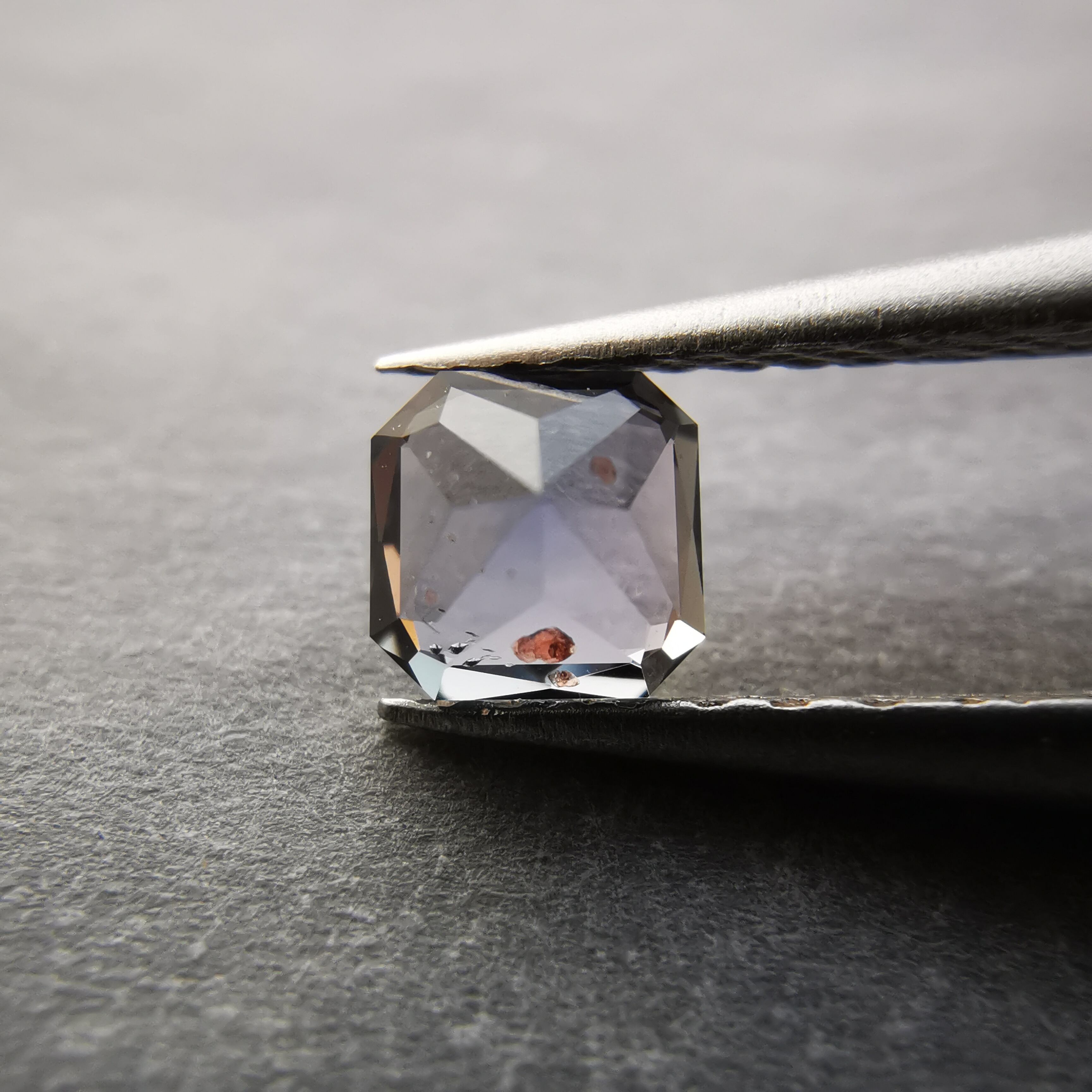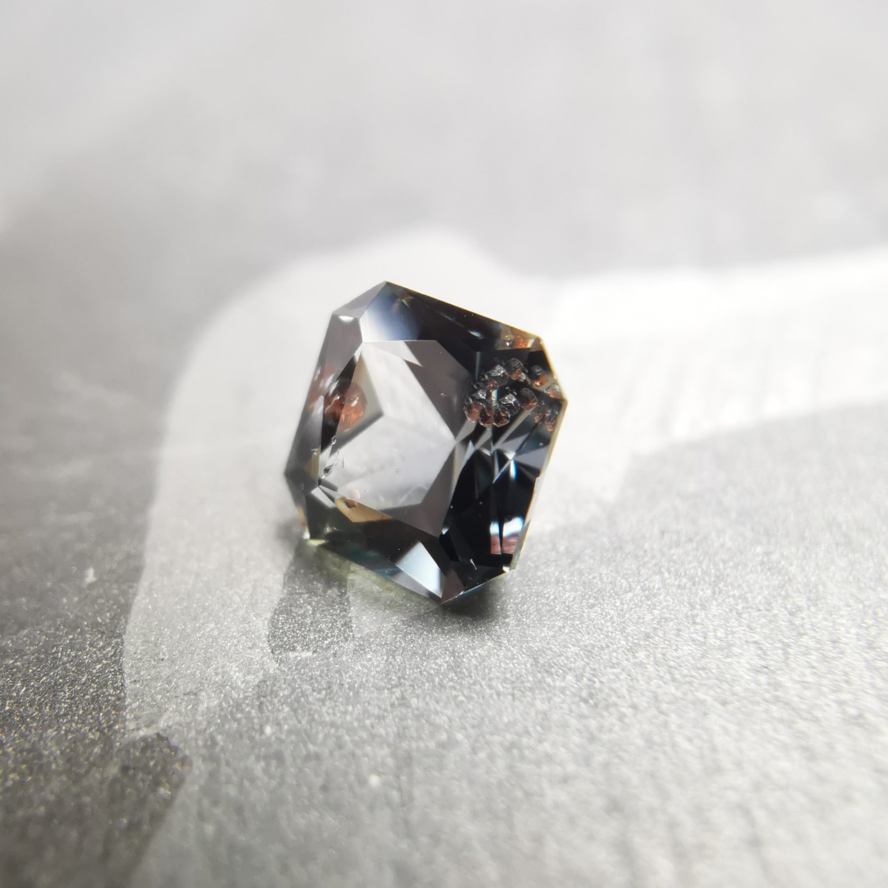 メタリックな輝きの透明グレーのサファイアに、赤いガーネットインクルージョンが入った一石です。