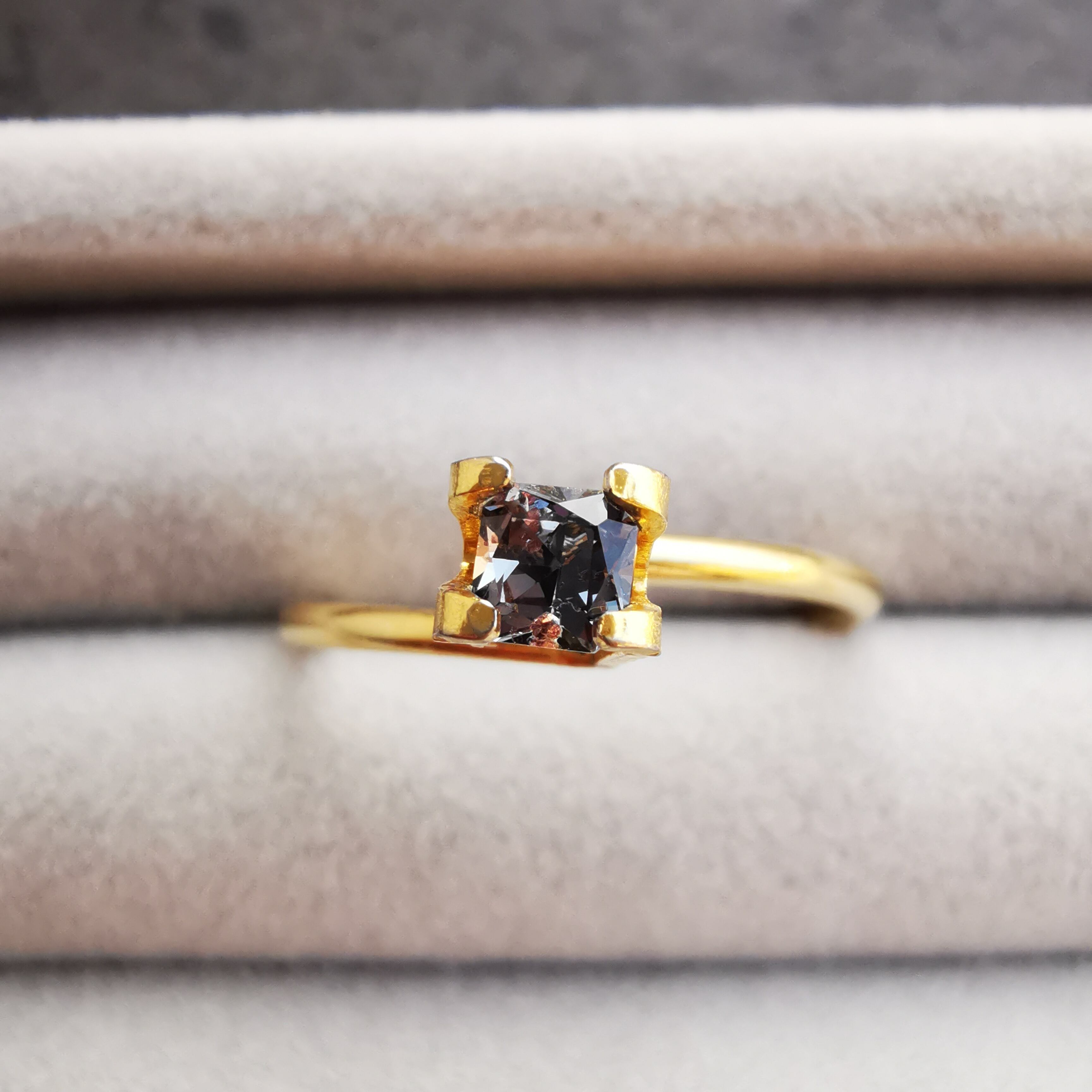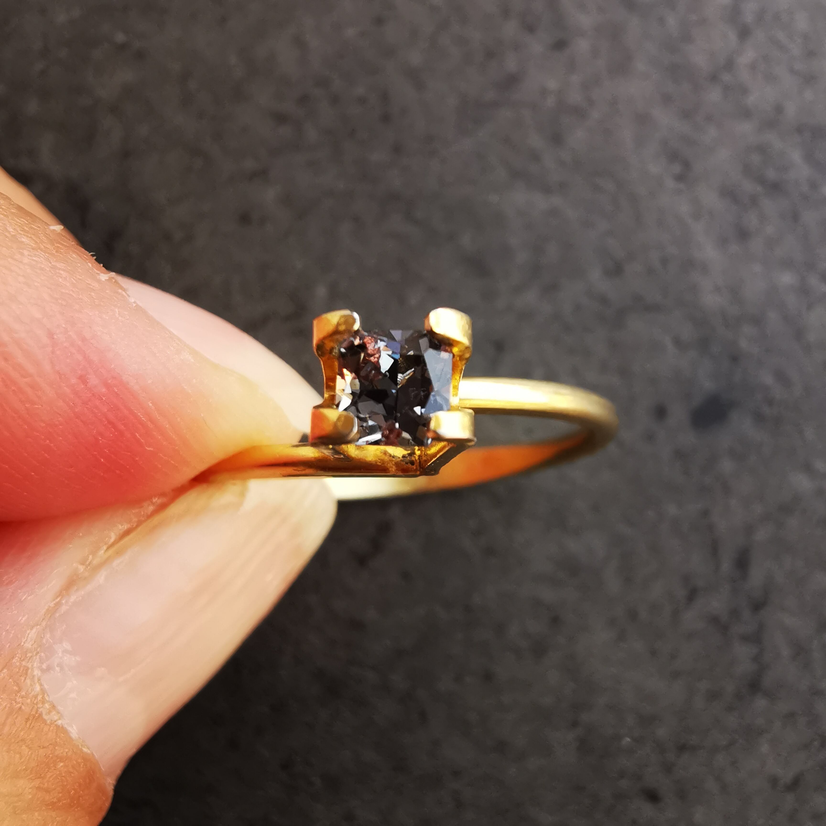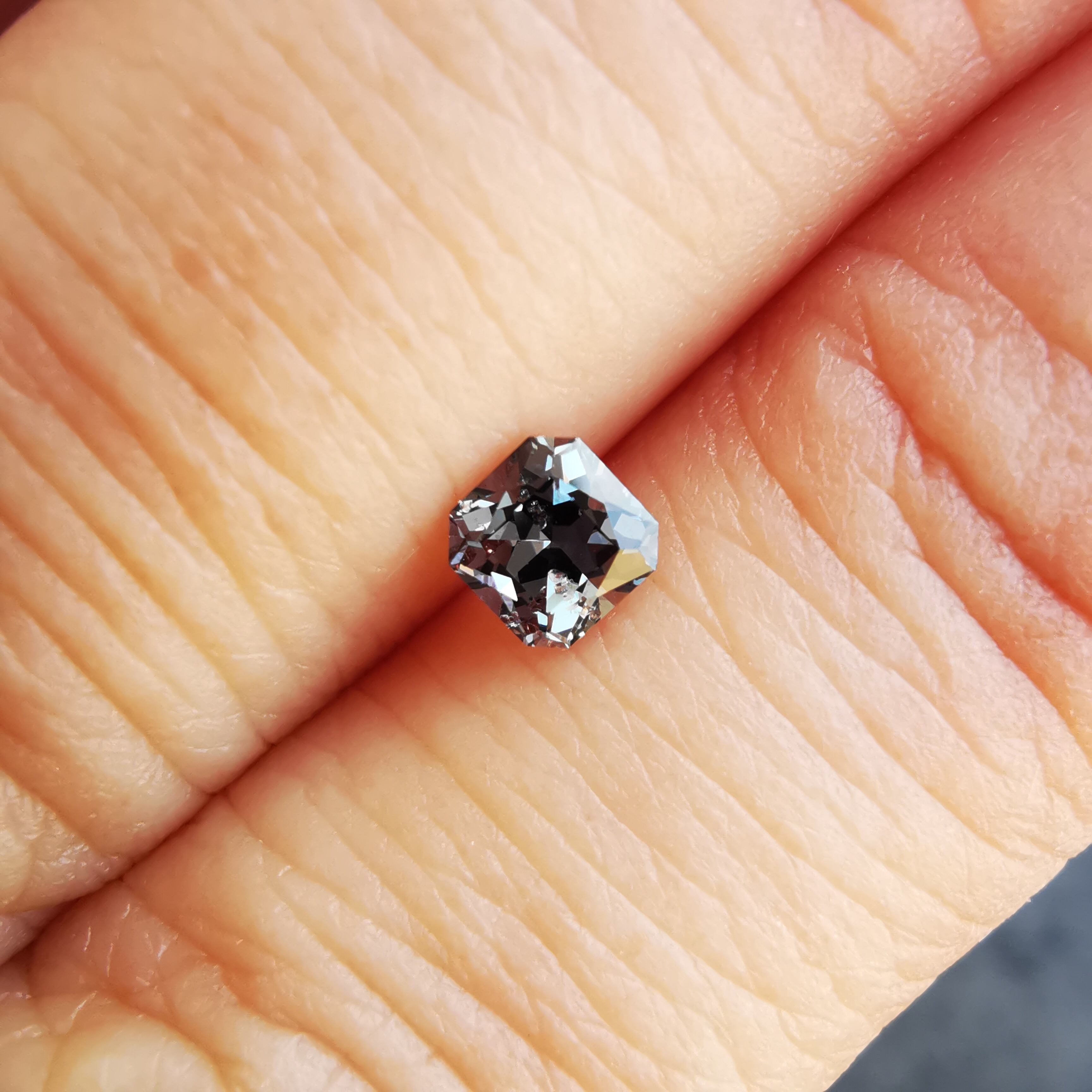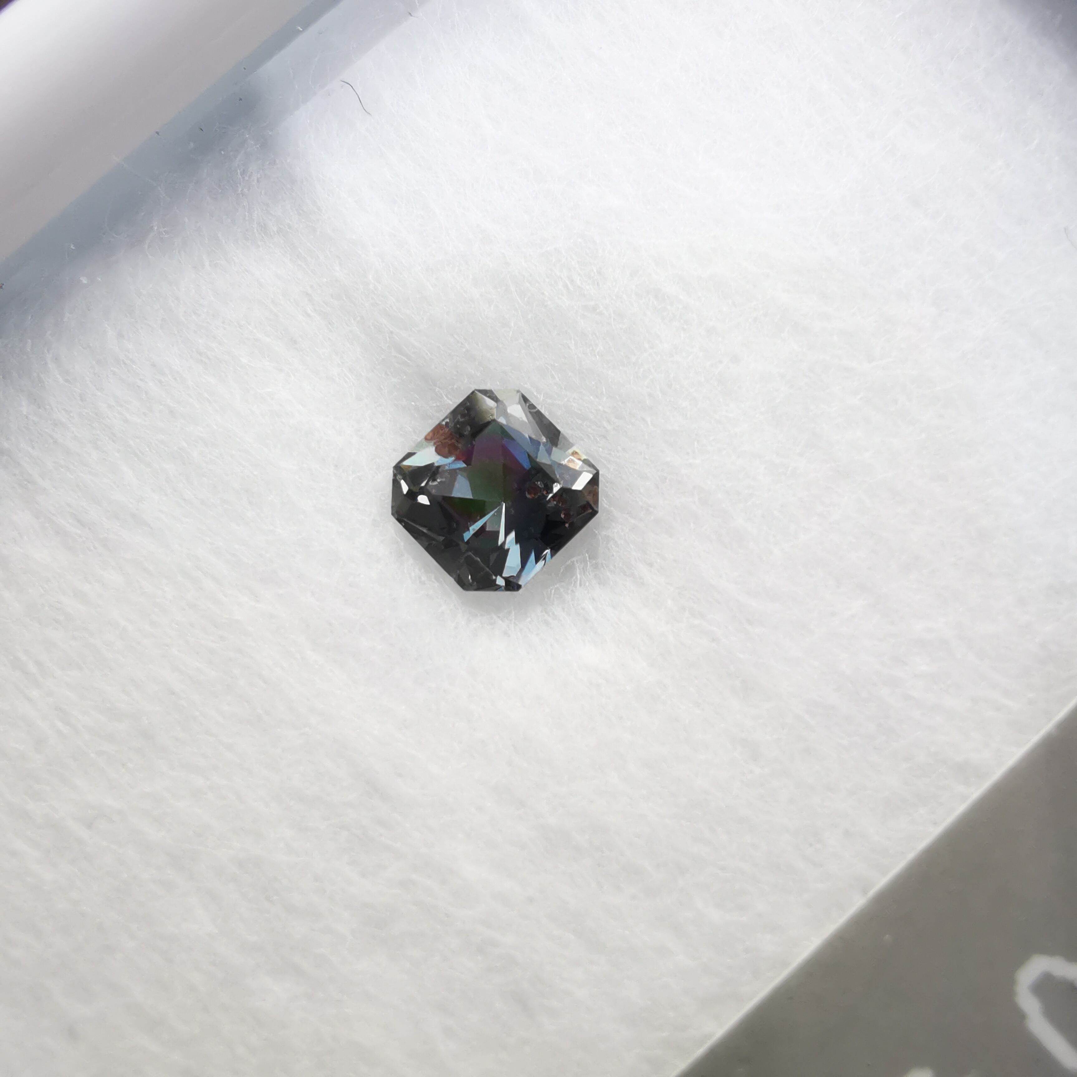 メタリックな輝きの透明グレーのサファイアに、赤いガーネットインクルージョンが入った一石です。