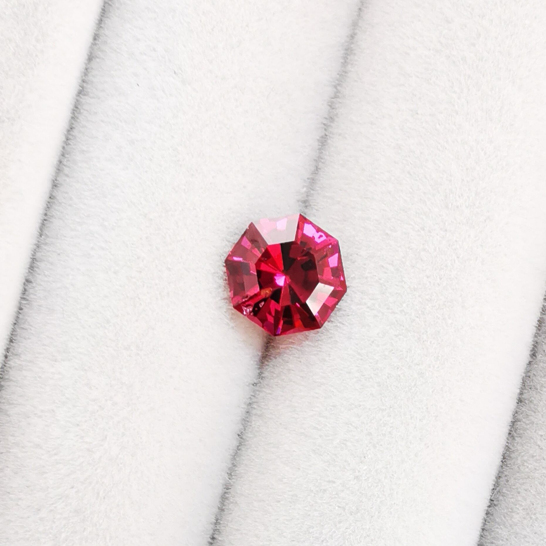 深く暗い赤色の中から、鮮やかな紅色のきらめきがほとばしるようにきらめく一石です。