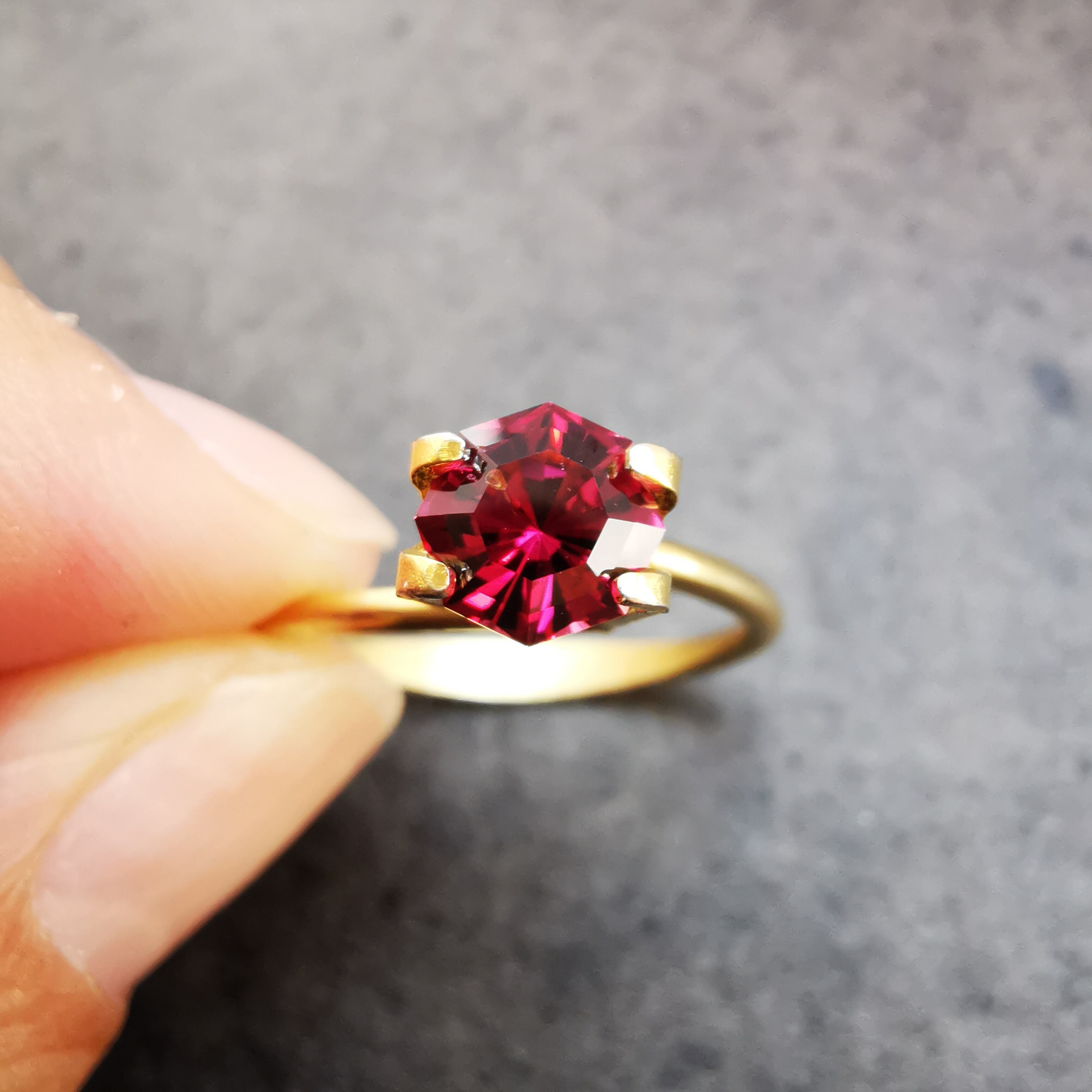 ロードライトガーネットは通常写真写りが良いため、肉眼より美しくならないよう気を付けるのですが、この石は違いました。