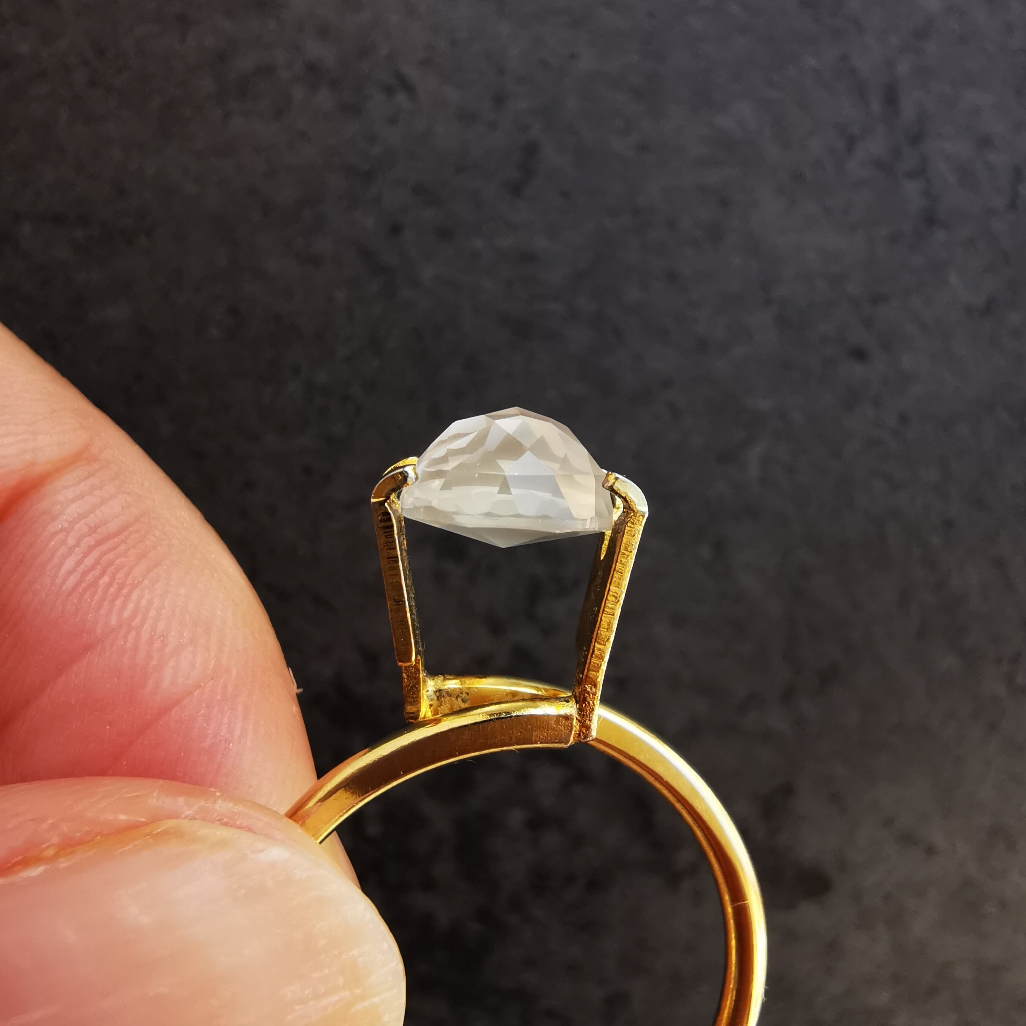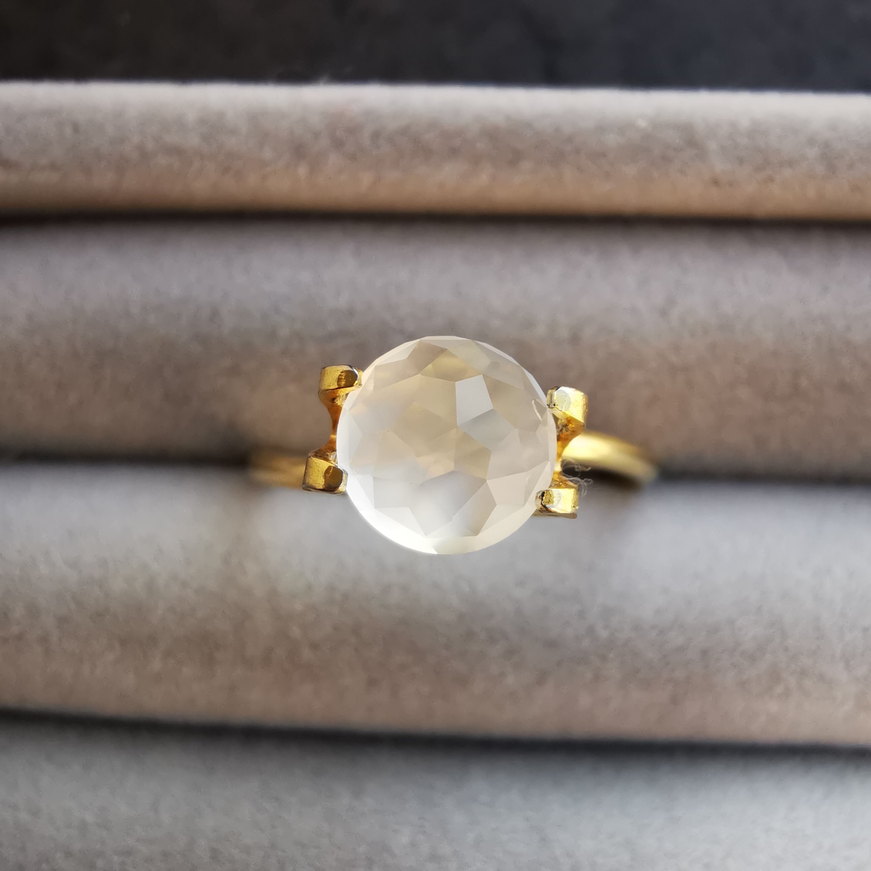 仕入元によるとゴールデンムーンストンとのことでしたが、黄みはごくわずか、青みのほぼないふわりと明るい色は、名前の通りお月様のようです。
