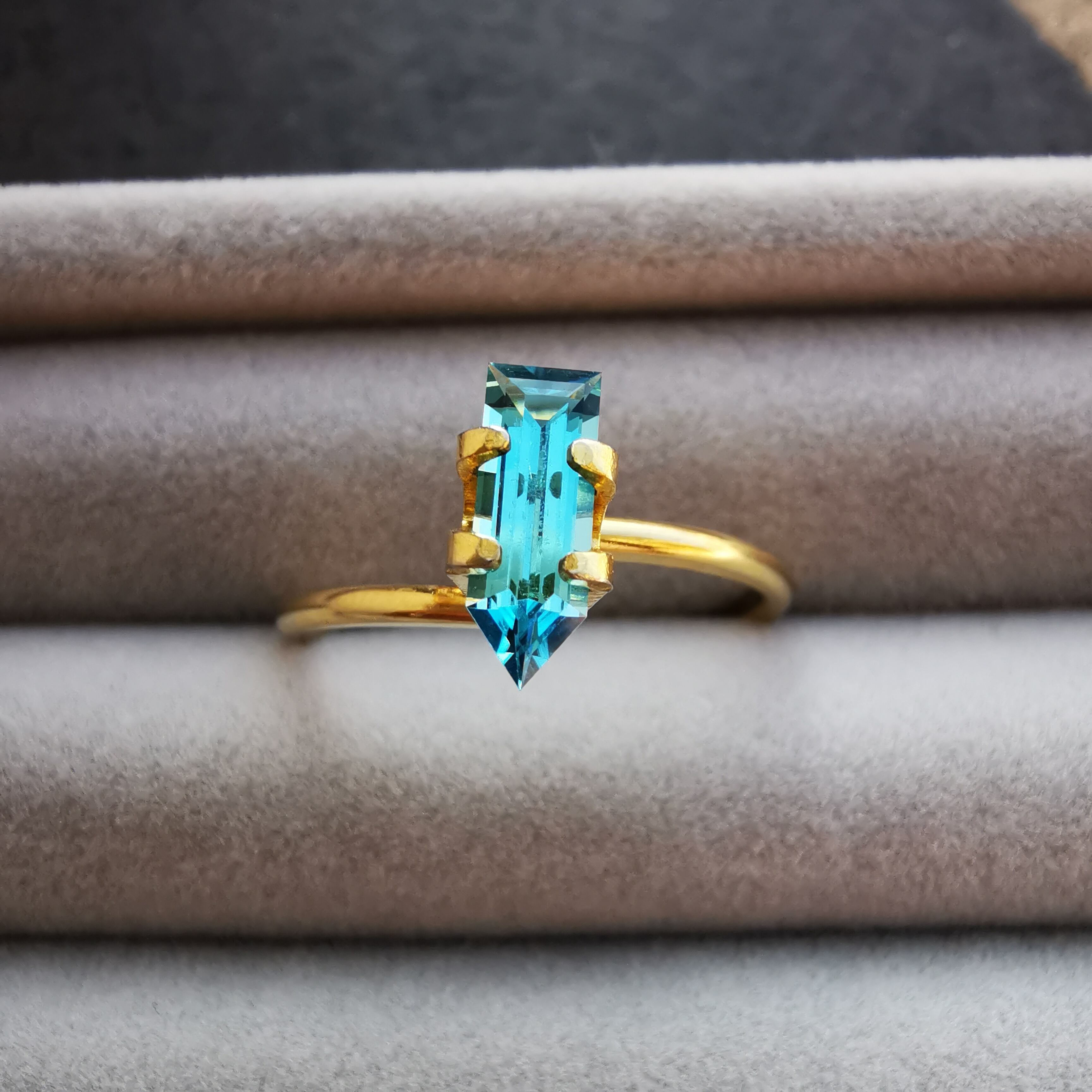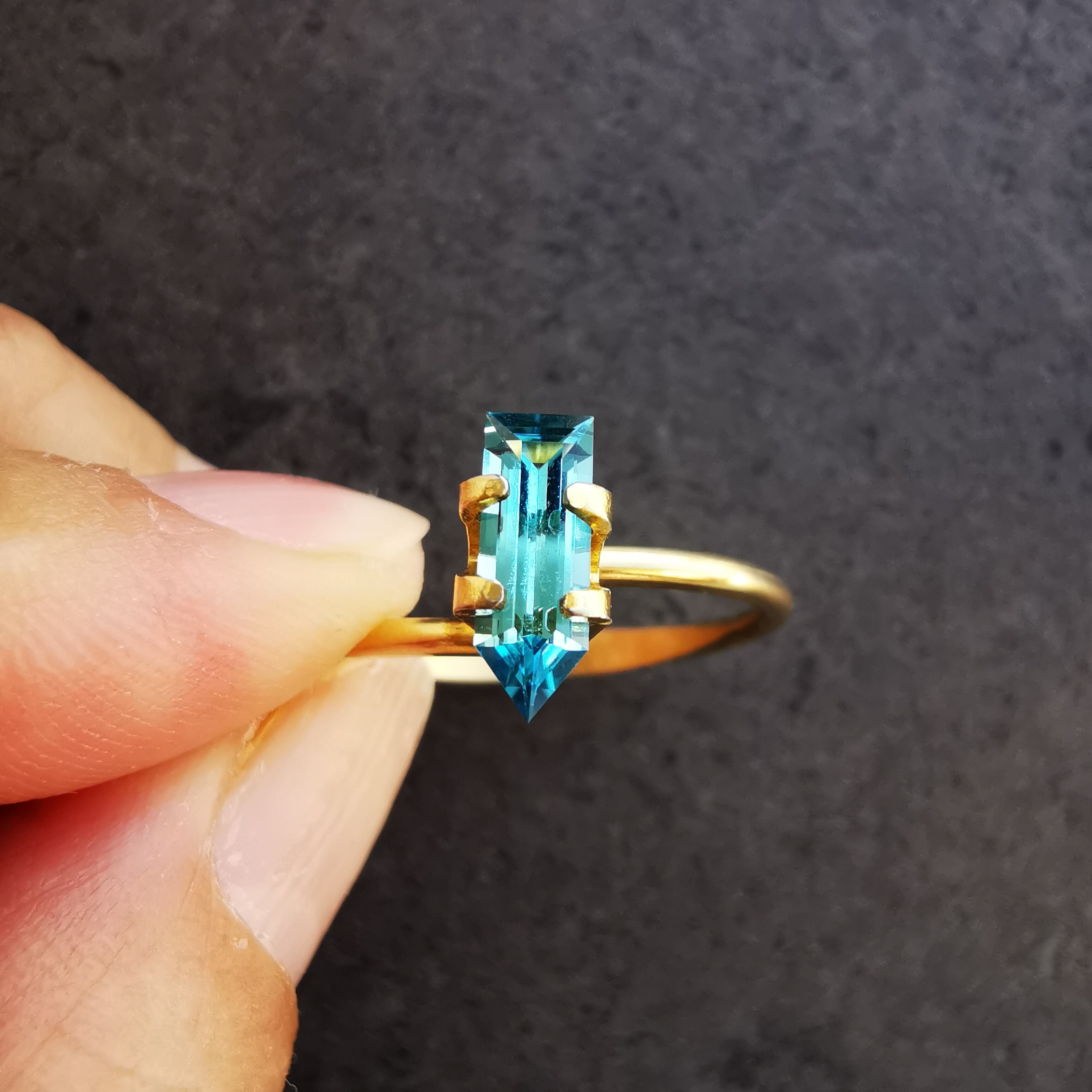 原石の形からトルマリンは単調な縦長カットが多くなりがちですが、鉛筆のような尖ったカットで色溜りにもアクセントが生まれます。