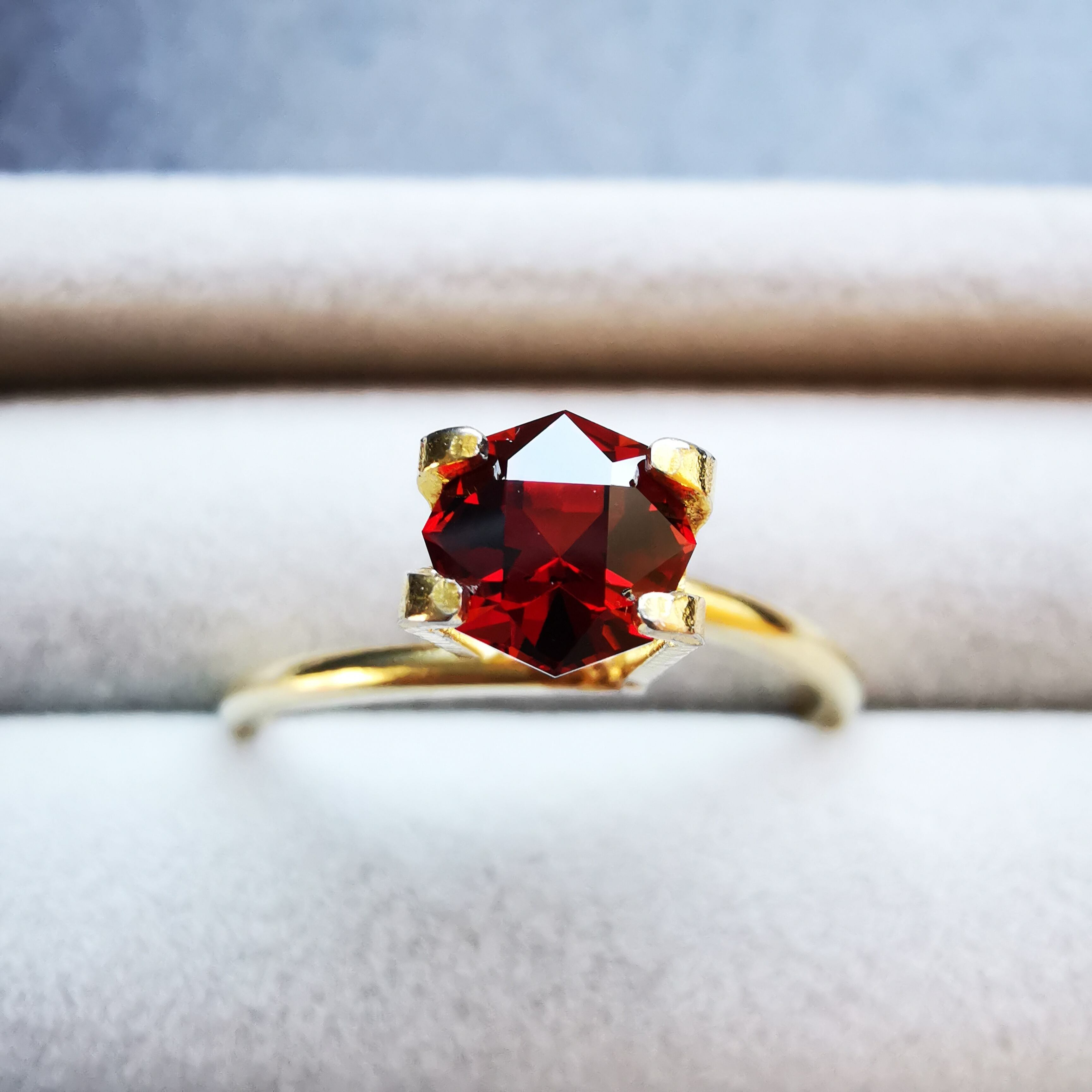 朱色を帯びた赤色の落ち着いたカラーの中から、鮮やかなきらめきが鋭く光ります。