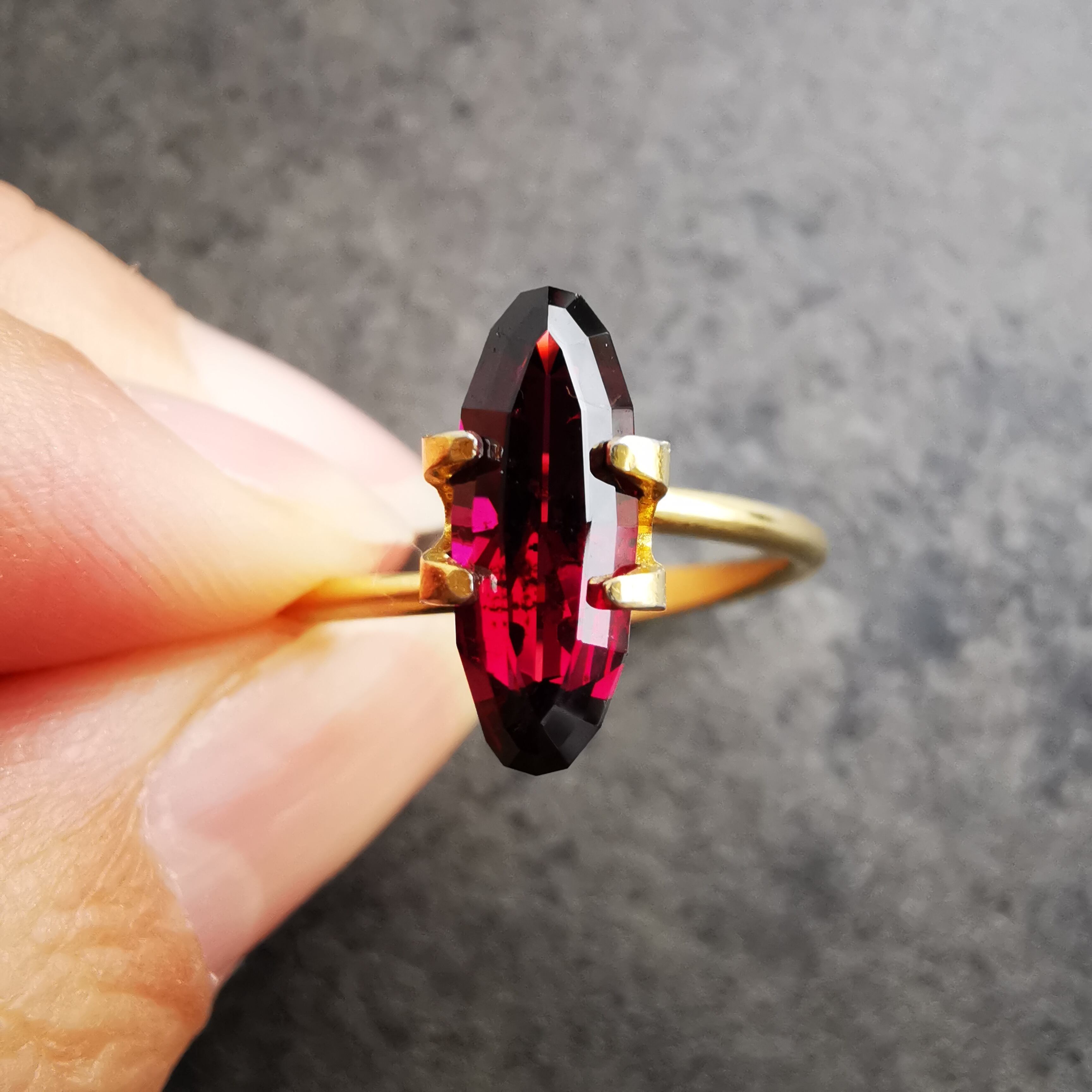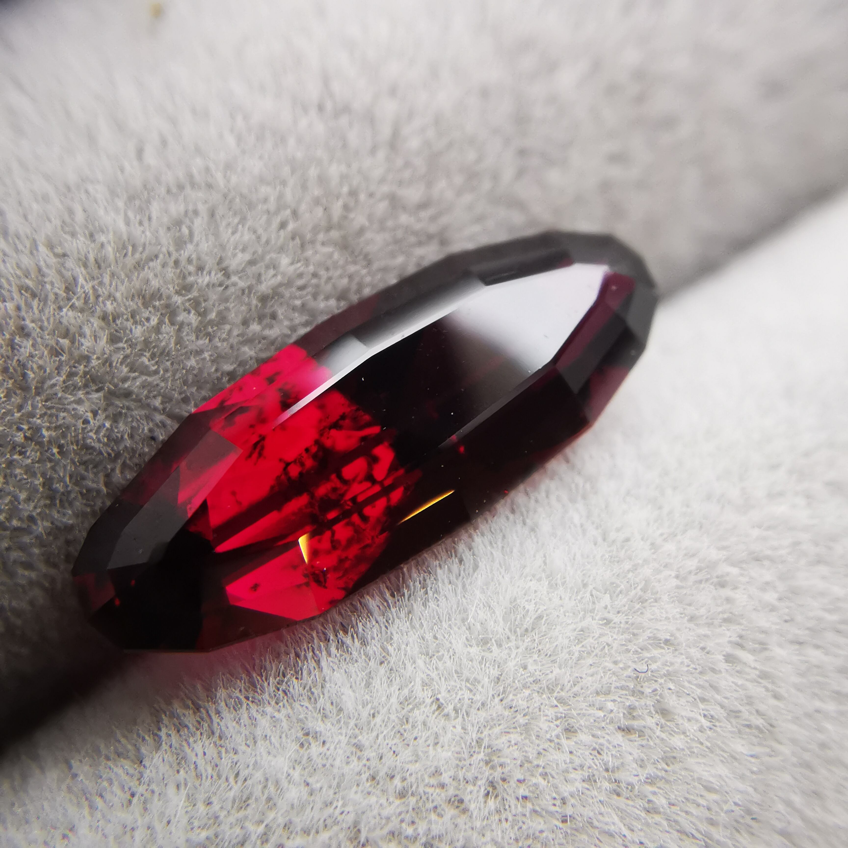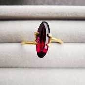 一見黒に近い石を傾けると、刺激的な赤がきらめきます。